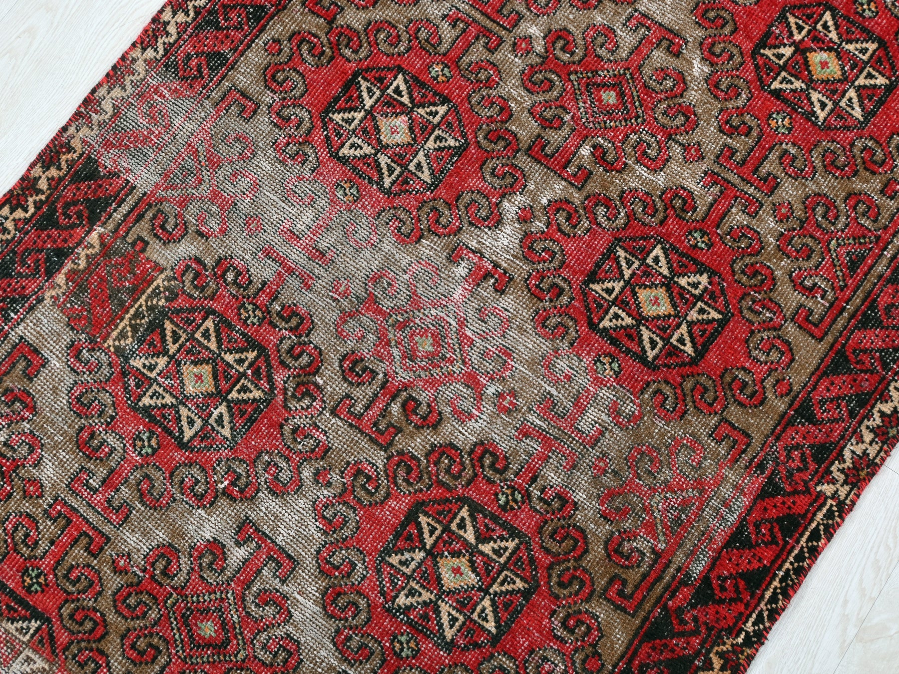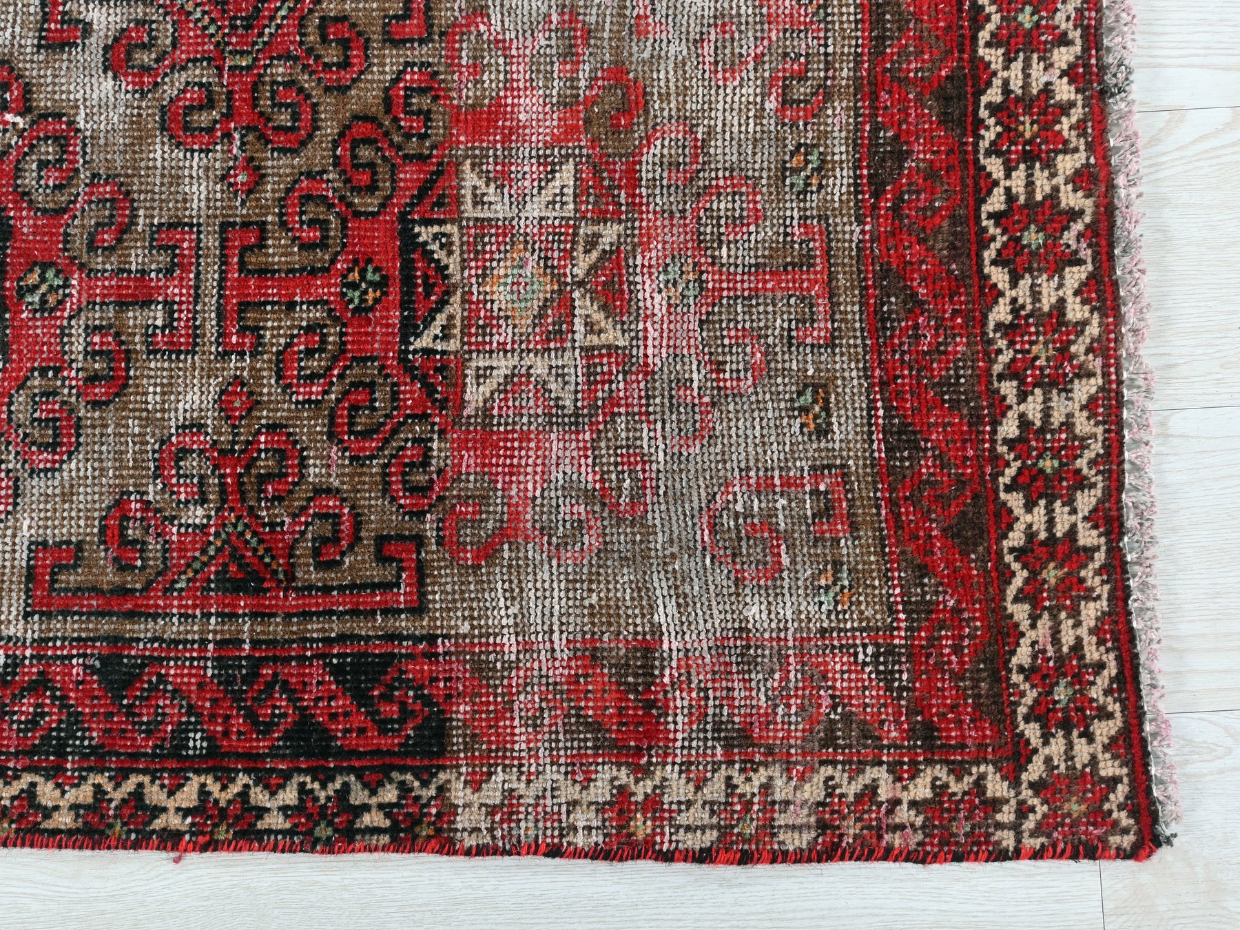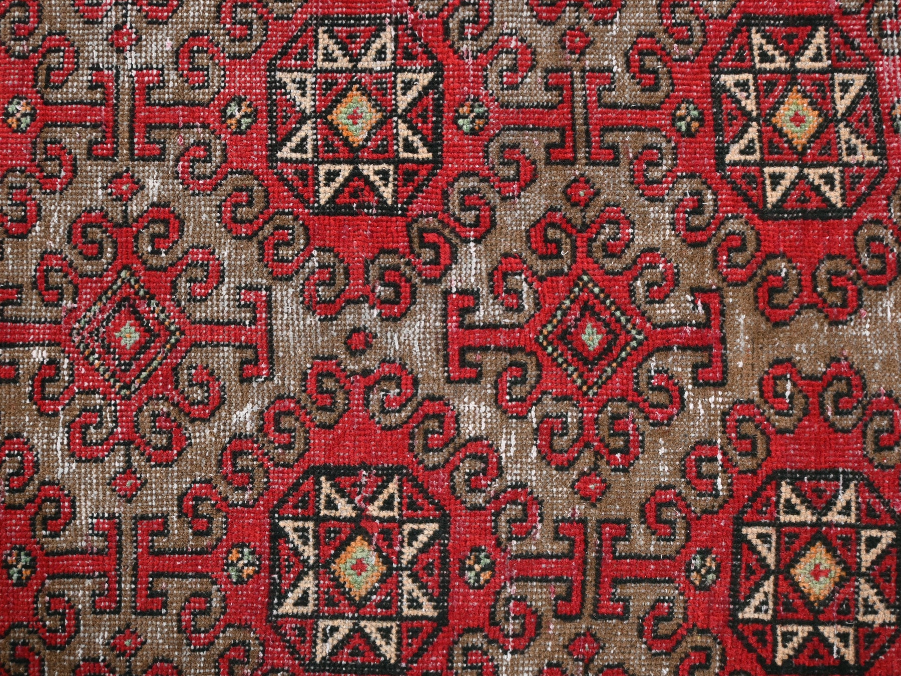 This is a hand-knotted, one-of-a-kind vintage rug. Due to the nature of this piece, there may be slight imperfections in its wear, shape, dimensions, and color. All of our rugs are professionally cleaned and repaired.
