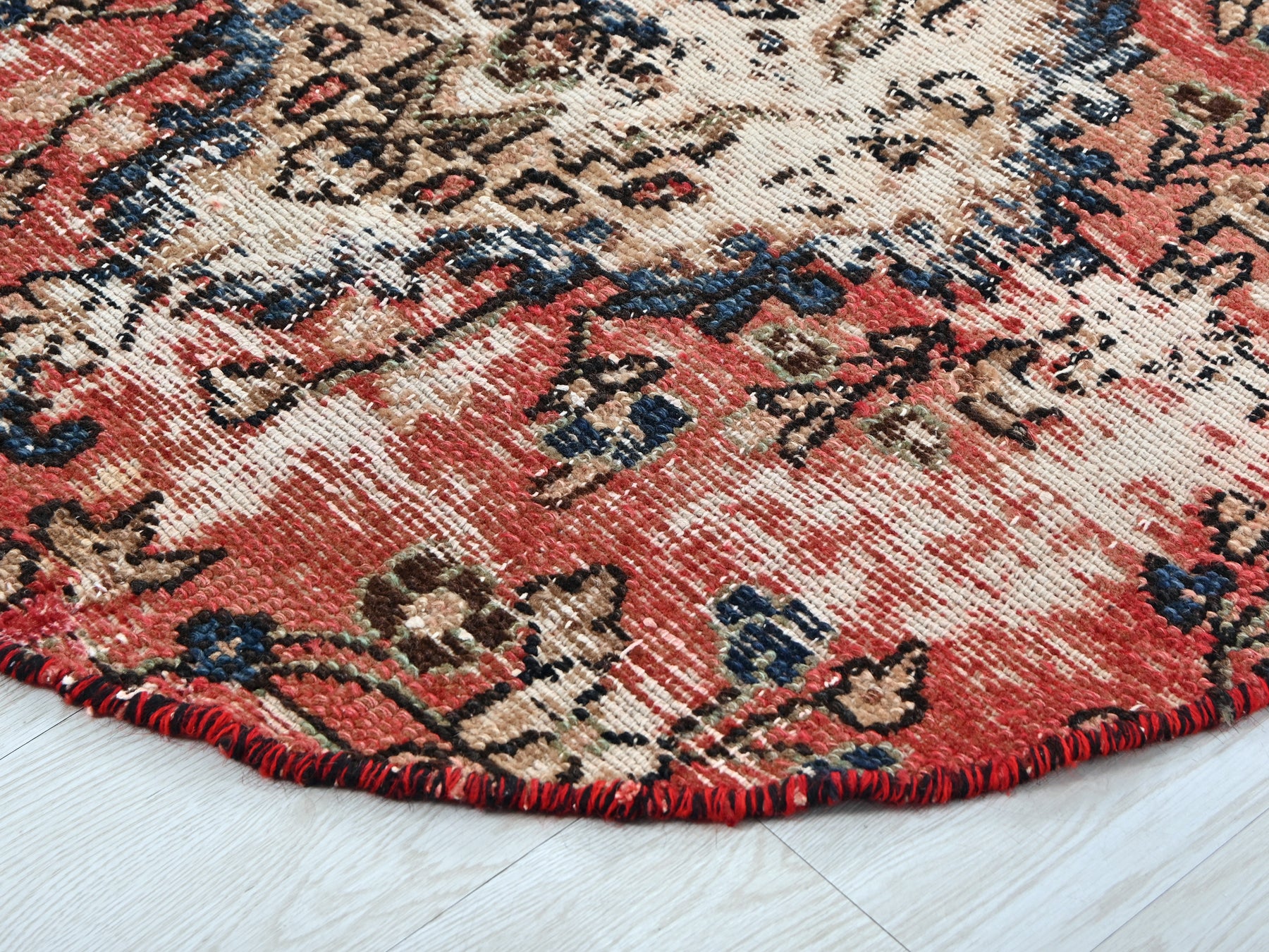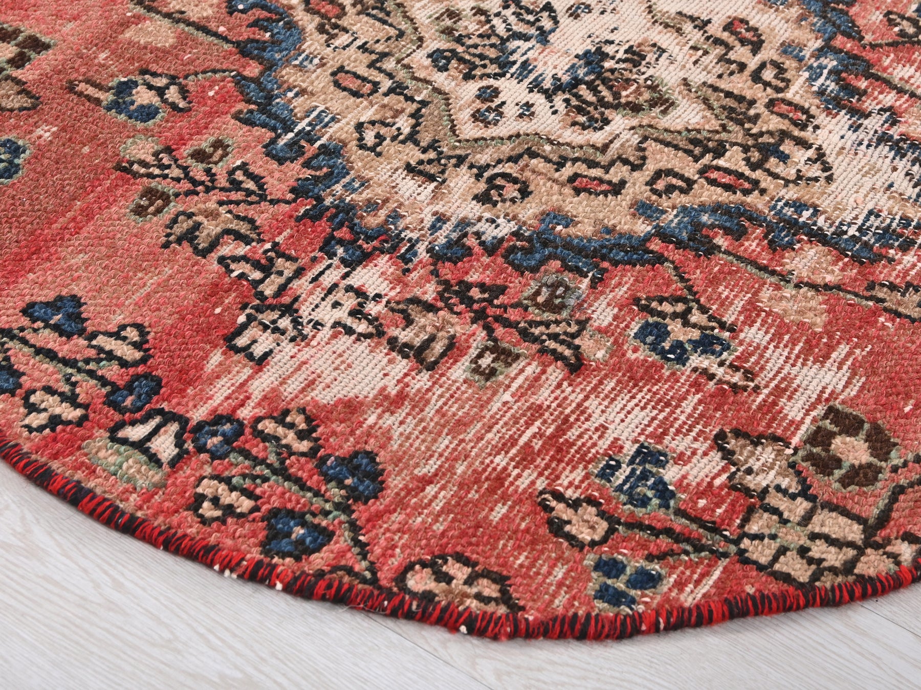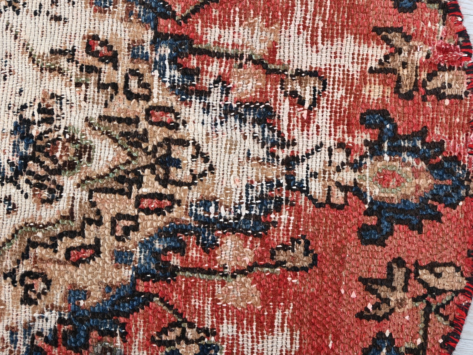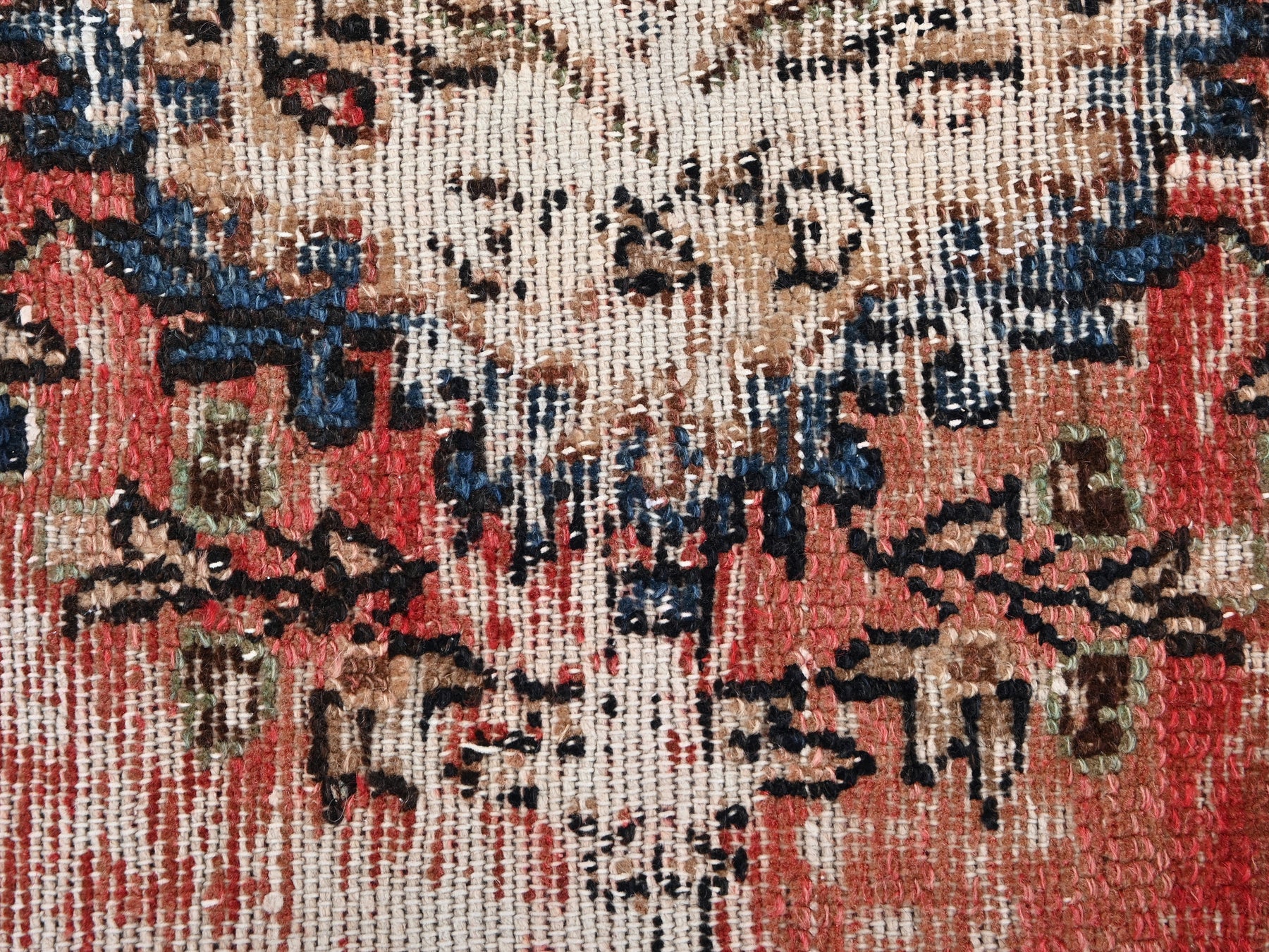 This is a hand-knotted, one-of-a-kind vintage rug. Due to the nature of this piece, there may be slight imperfections in its wear, shape, dimensions, and color. All of our rugs are professionally cleaned and repaired.