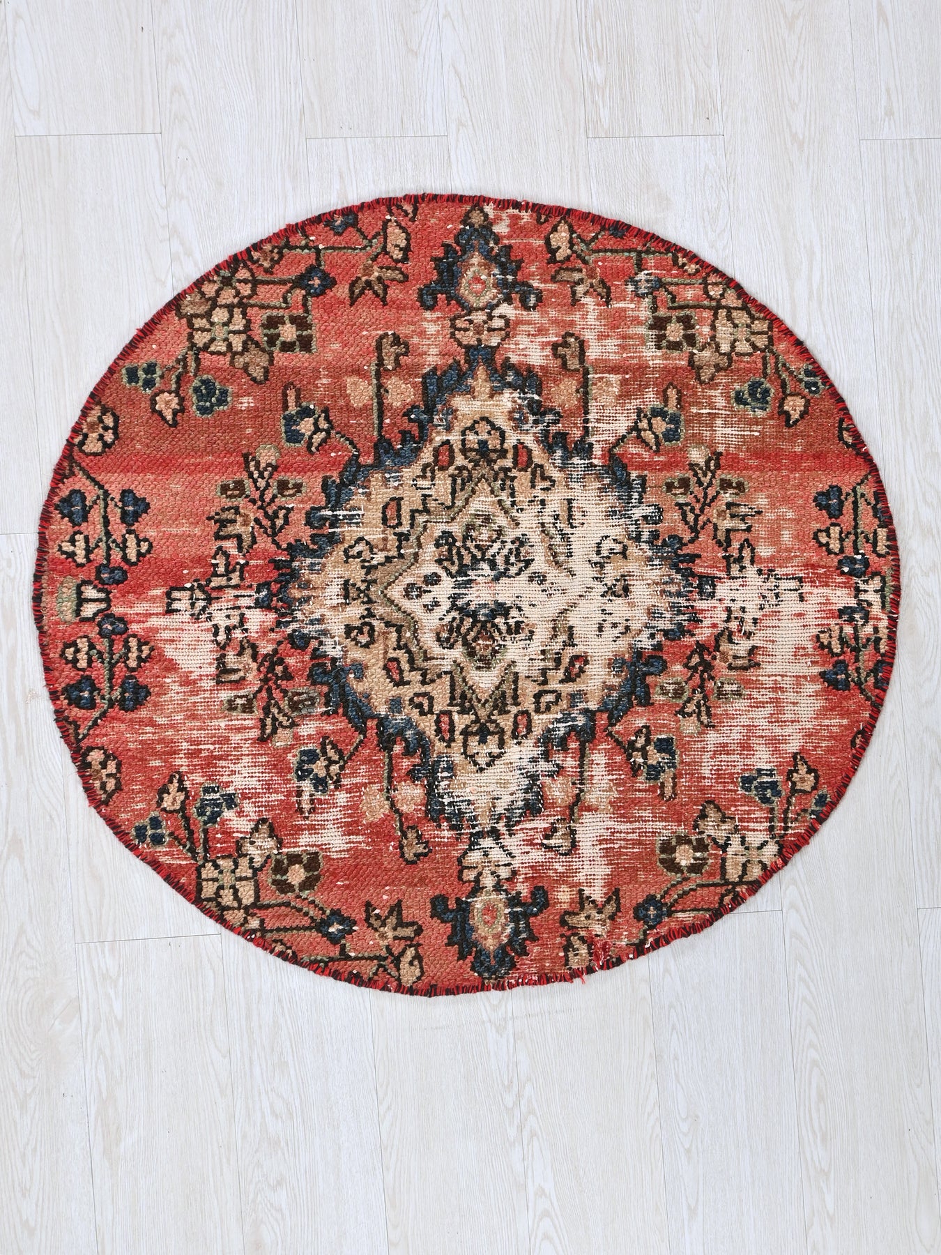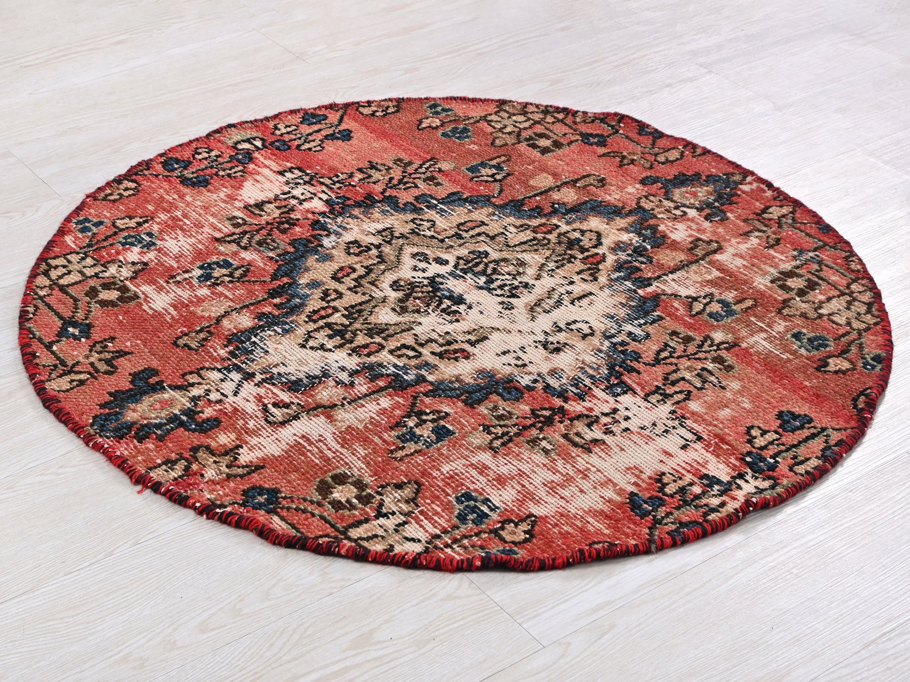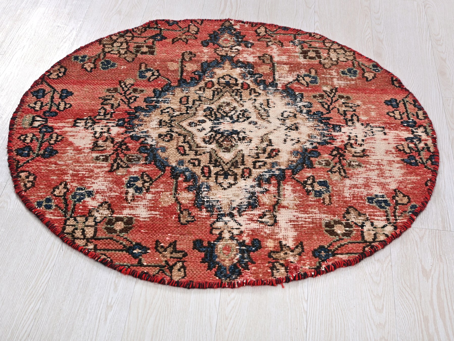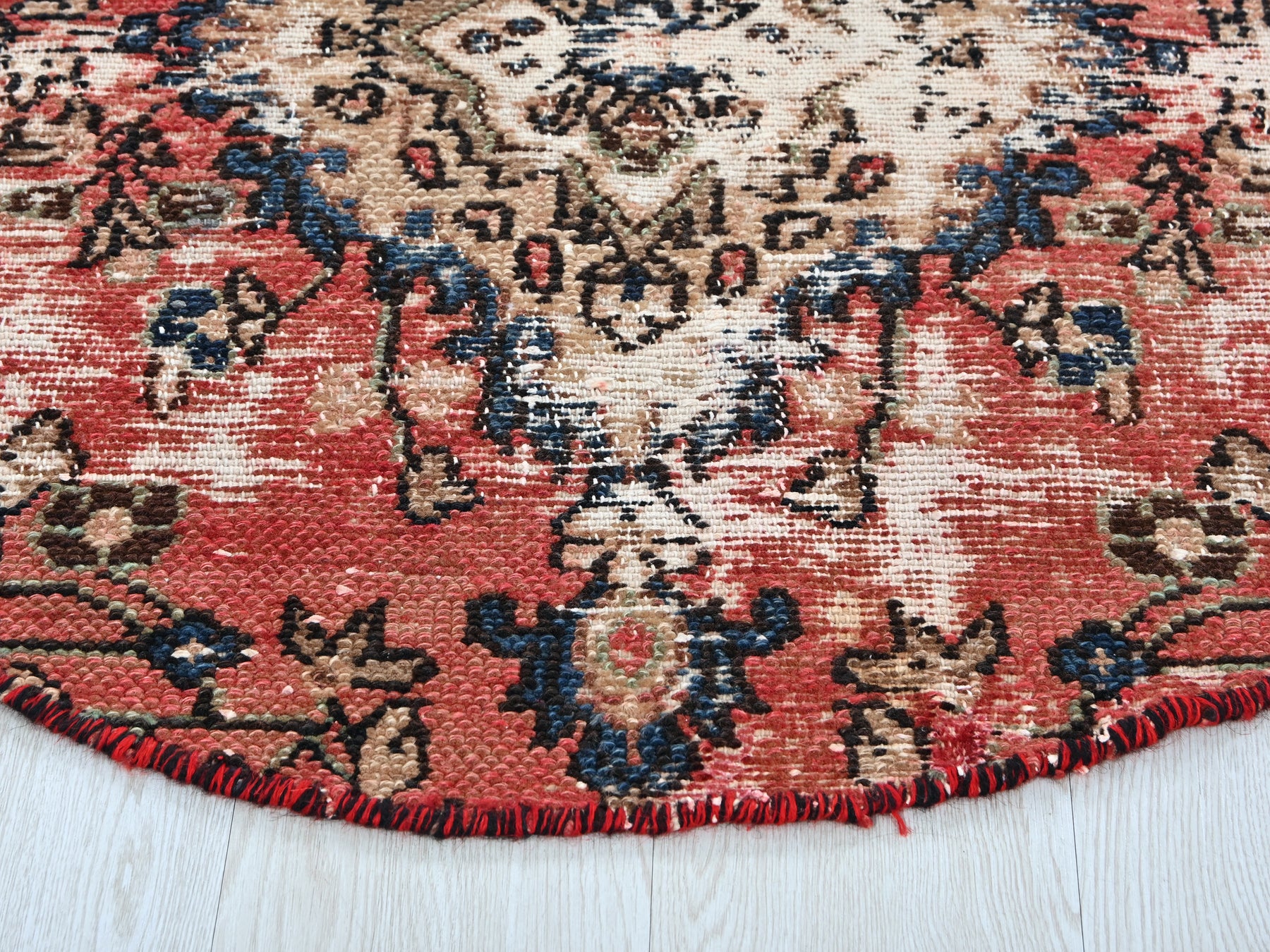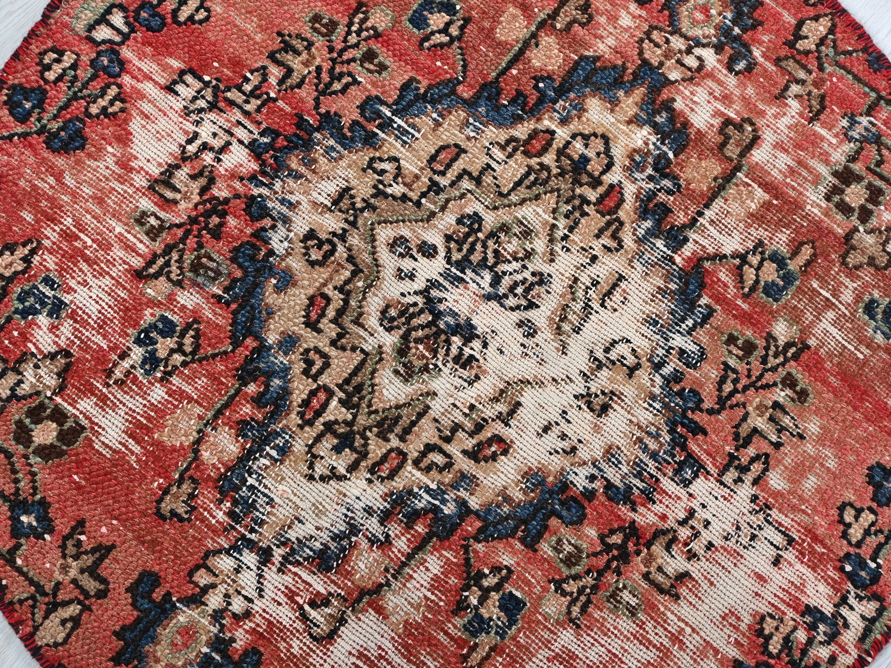 This is a hand-knotted, one-of-a-kind vintage rug. Due to the nature of this piece, there may be slight imperfections in its wear, shape, dimensions, and color. All of our rugs are professionally cleaned and repaired.