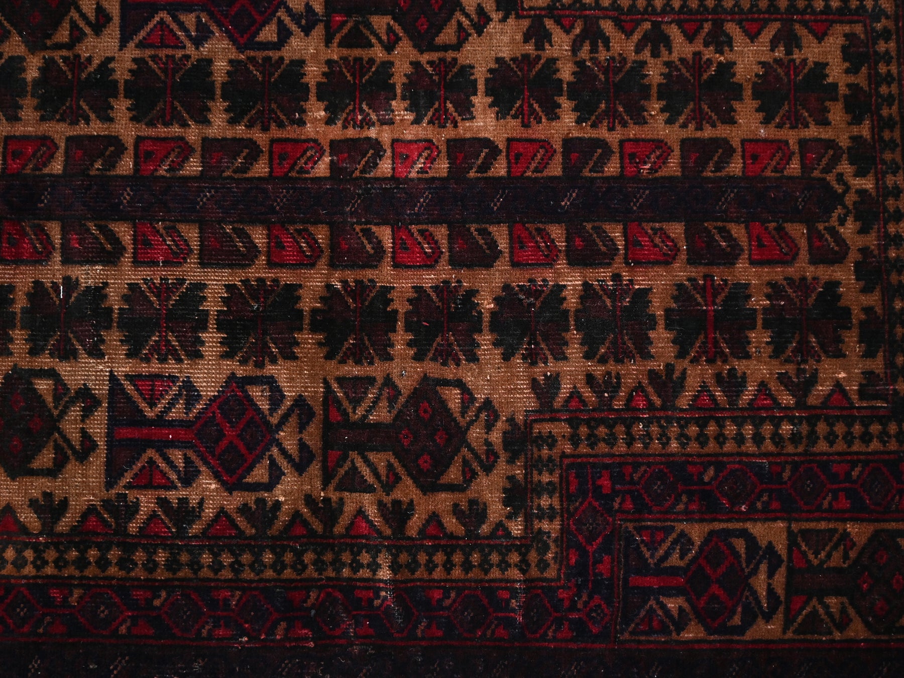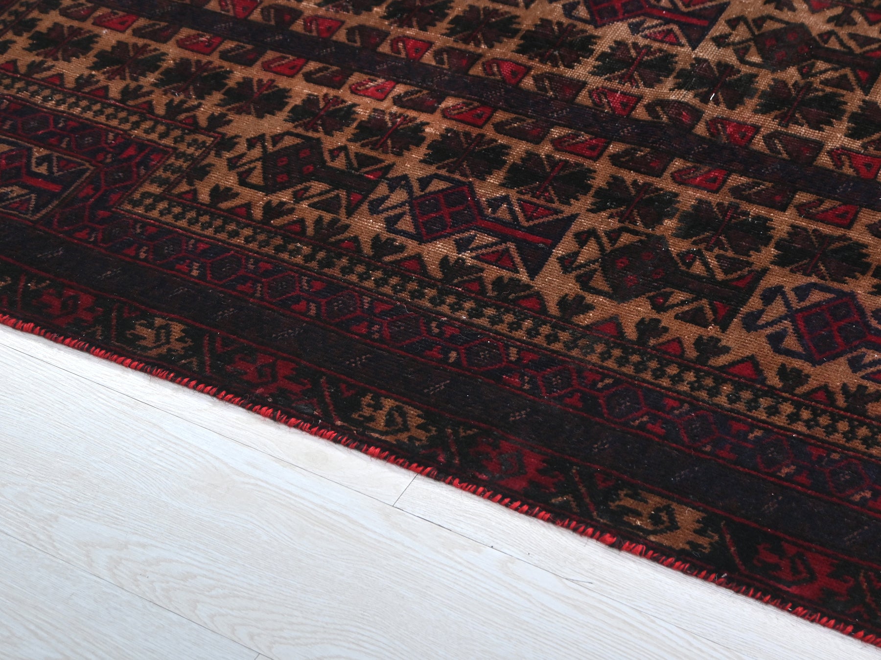 This is a hand-knotted, one-of-a-kind vintage rug. Due to the nature of this piece, there may be slight imperfections in its wear, shape, dimensions, and color. All of our rugs are professionally cleaned and repaired.