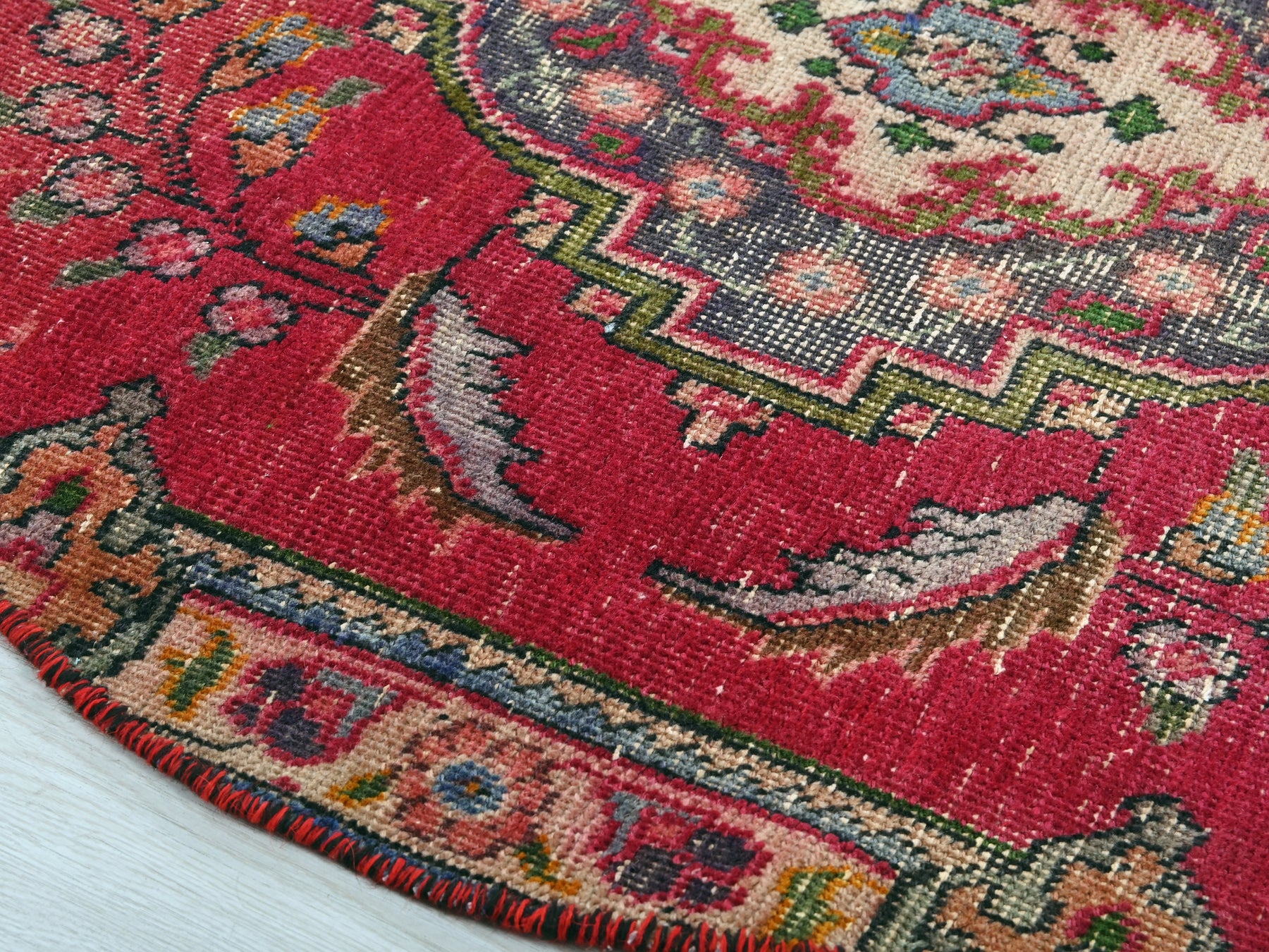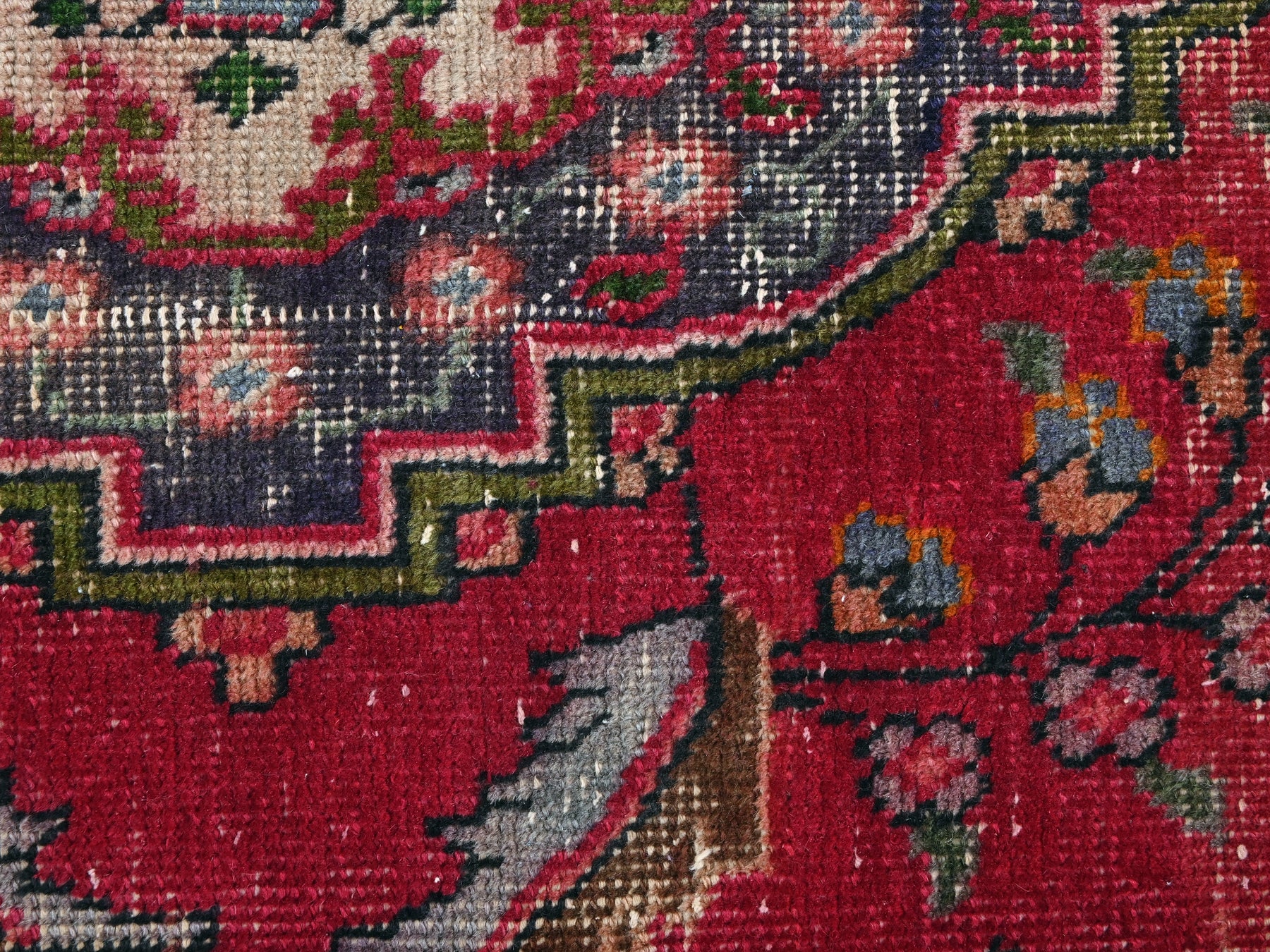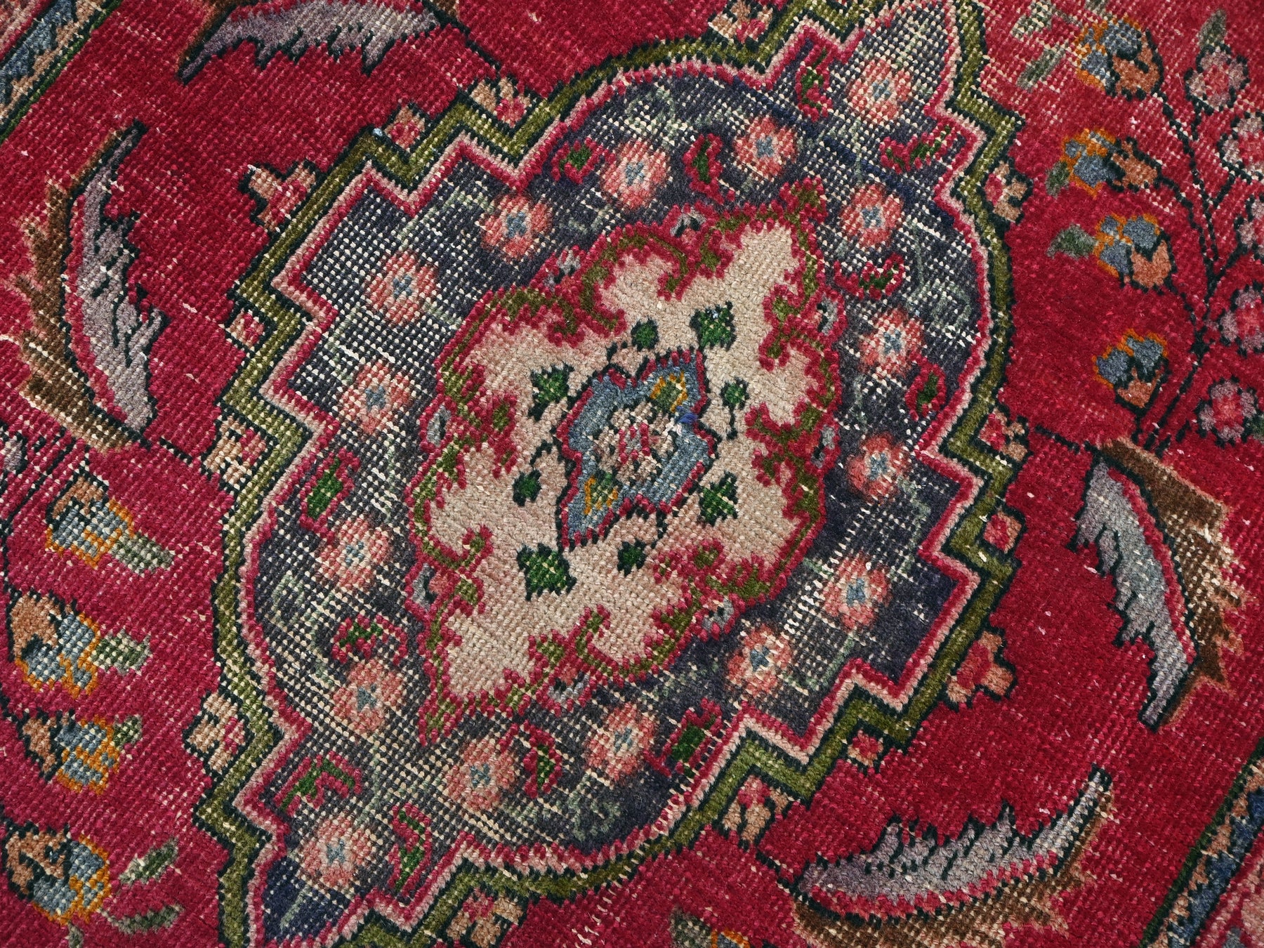 This is a hand-knotted, one-of-a-kind vintage rug. Due to the nature of this piece, there may be slight imperfections in its wear, shape, dimensions, and color. All of our rugs are professionally cleaned and repaired.