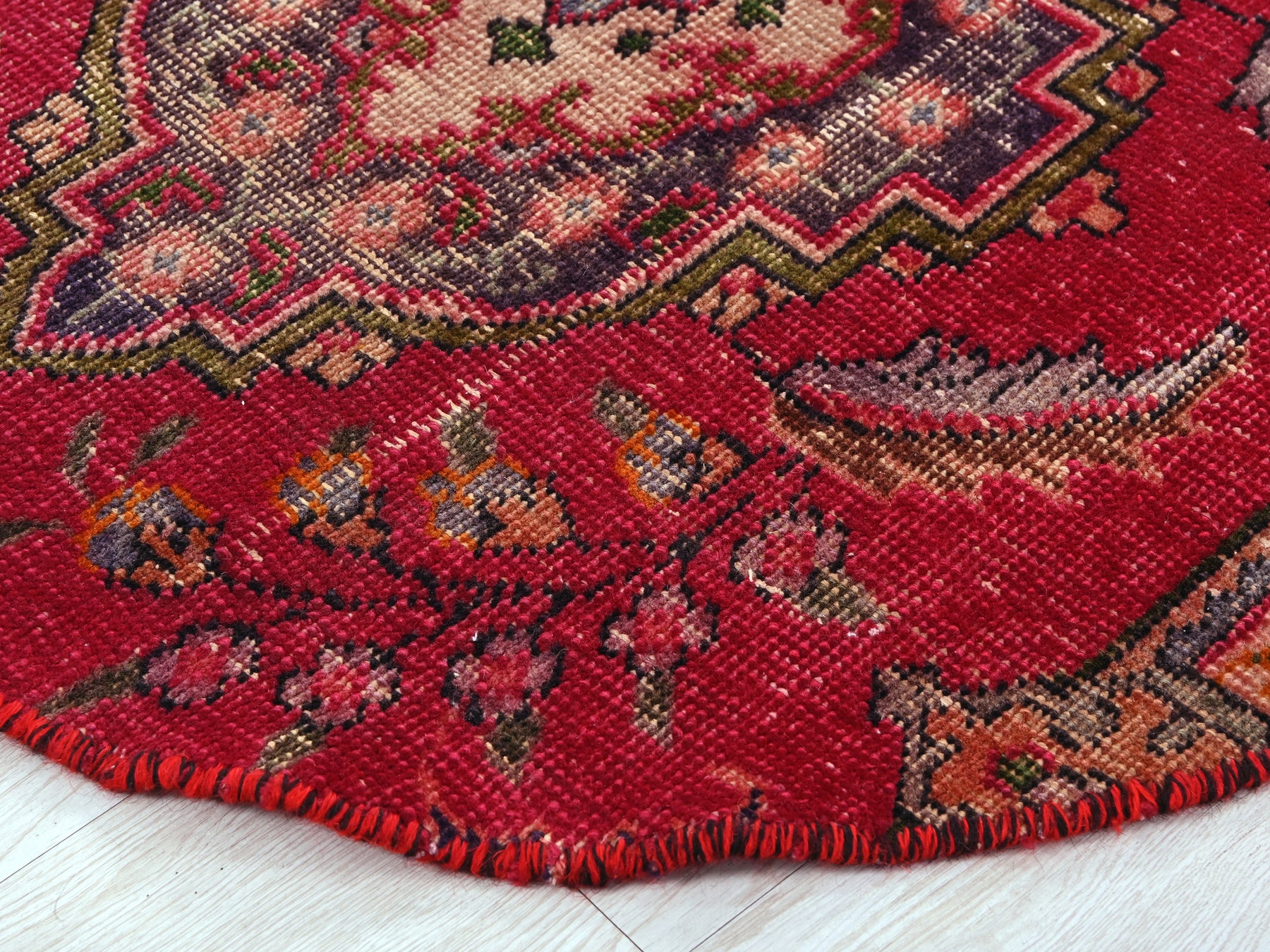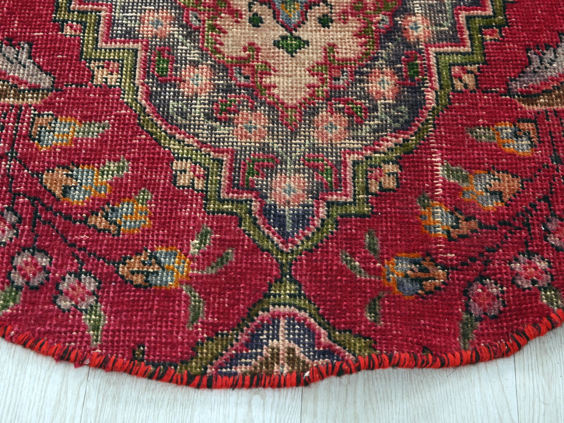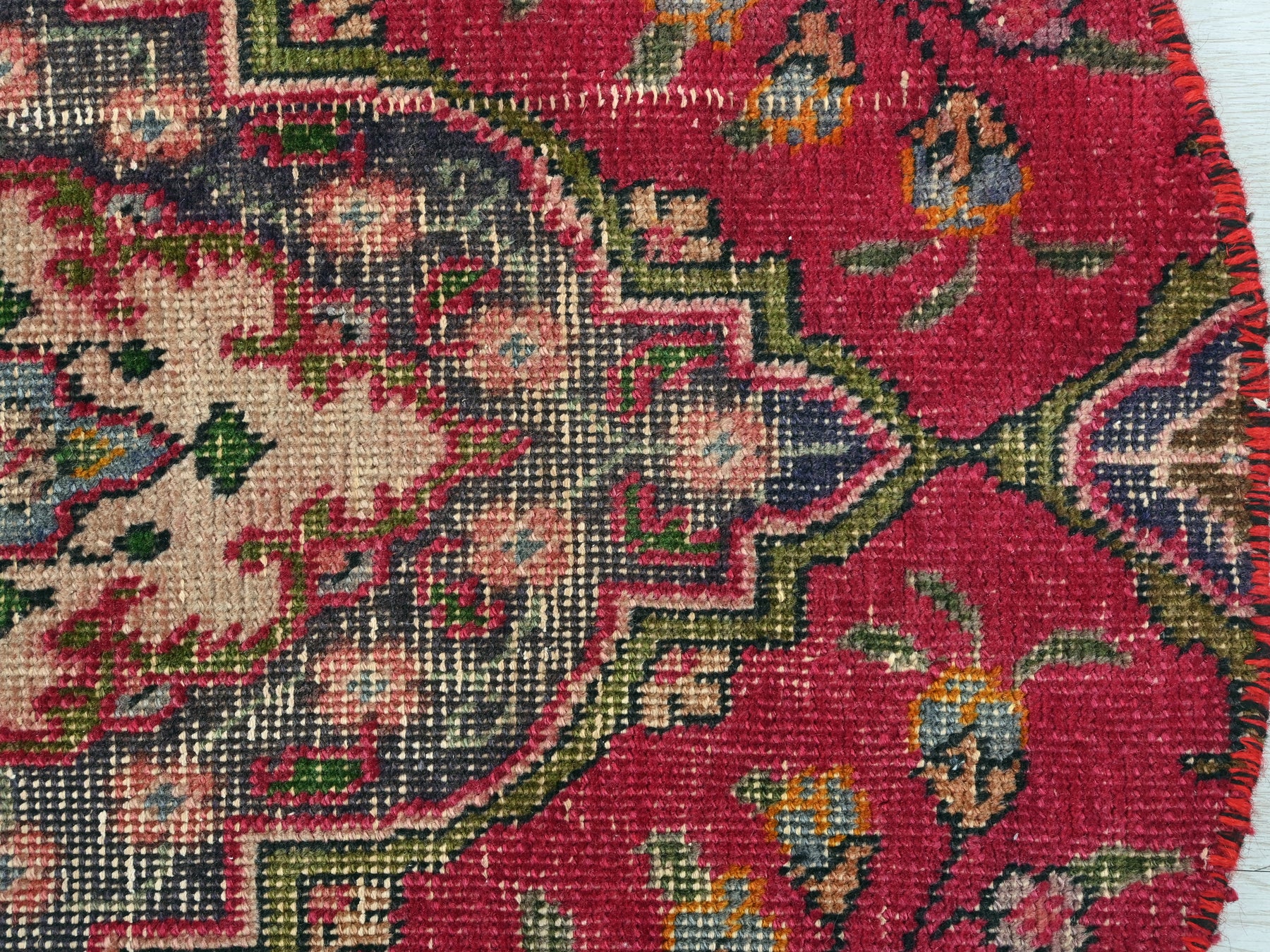 This is a hand-knotted, one-of-a-kind vintage rug. Due to the nature of this piece, there may be slight imperfections in its wear, shape, dimensions, and color. All of our rugs are professionally cleaned and repaired.