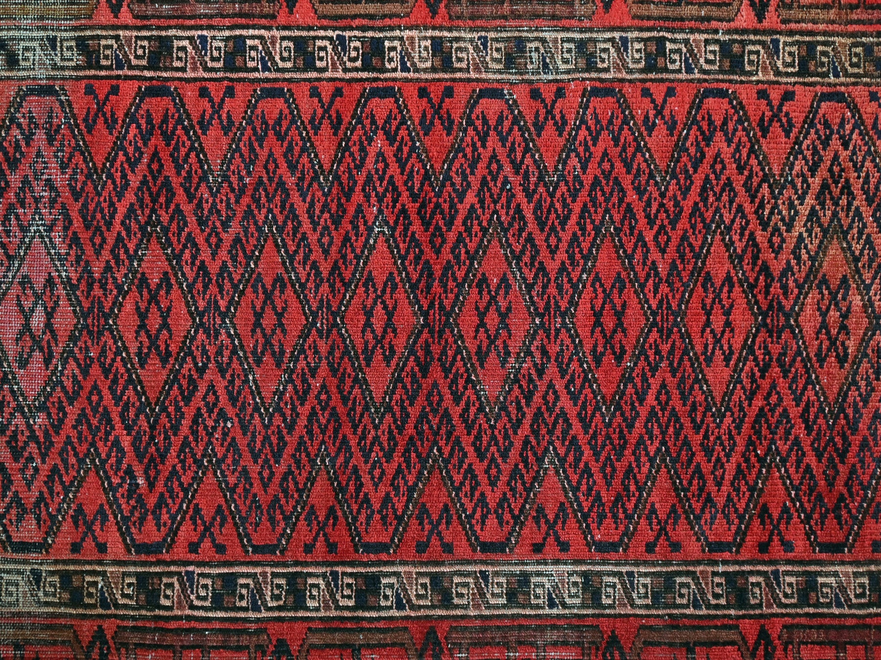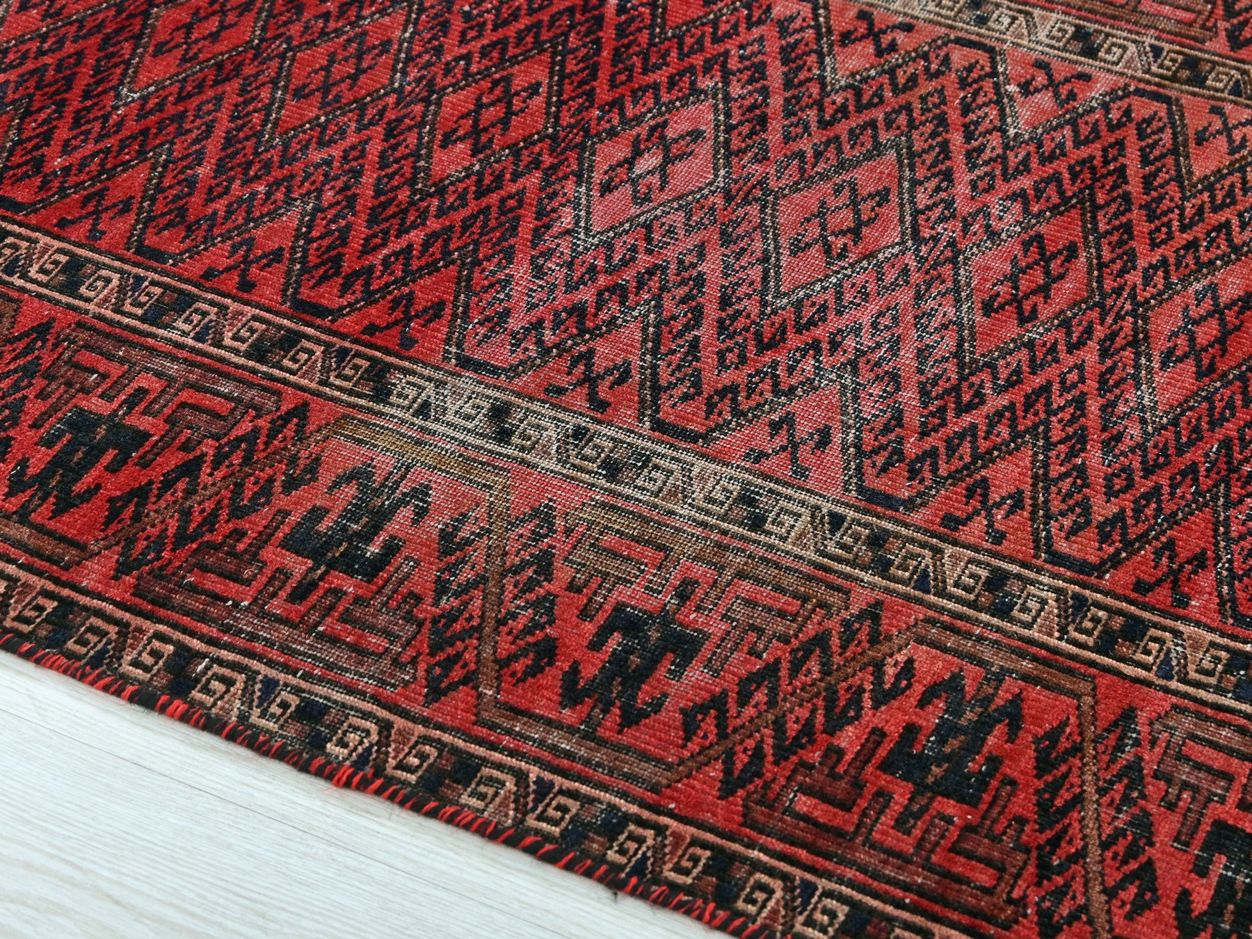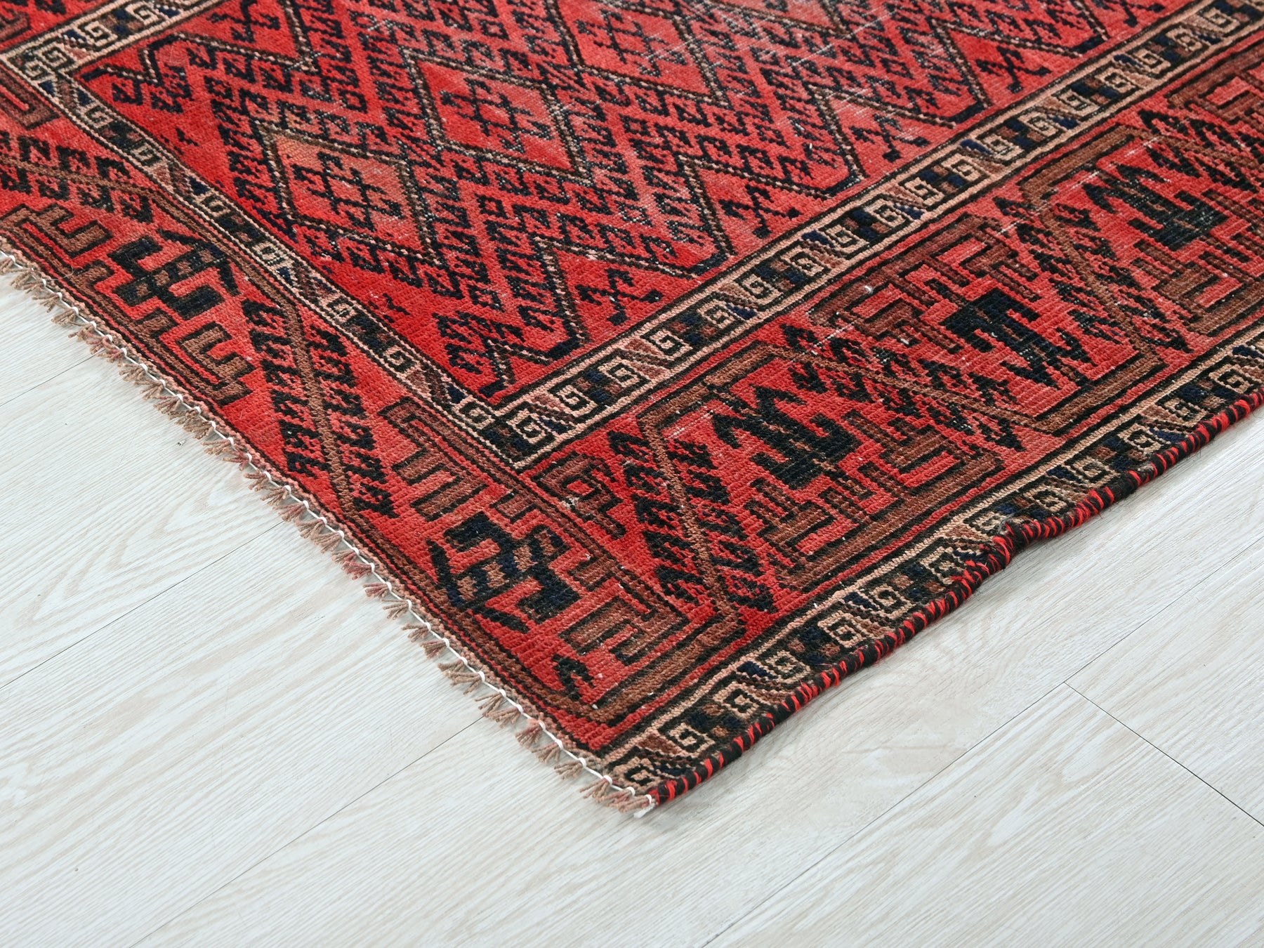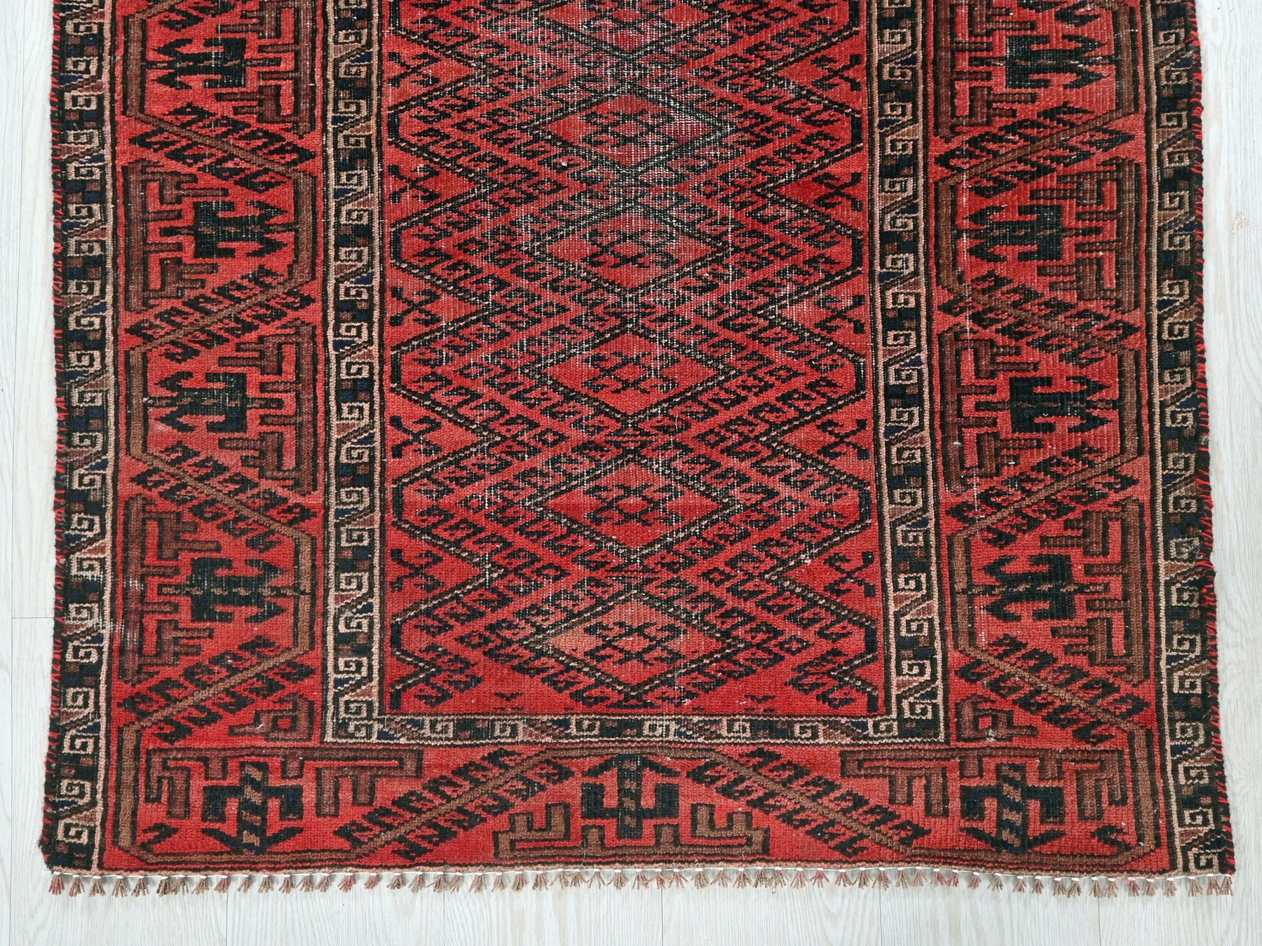 This is a hand-knotted, one-of-a-kind vintage rug. Due to the nature of this piece, there may be slight imperfections in its wear, shape, dimensions, and color. All of our rugs are professionally cleaned and repaired.