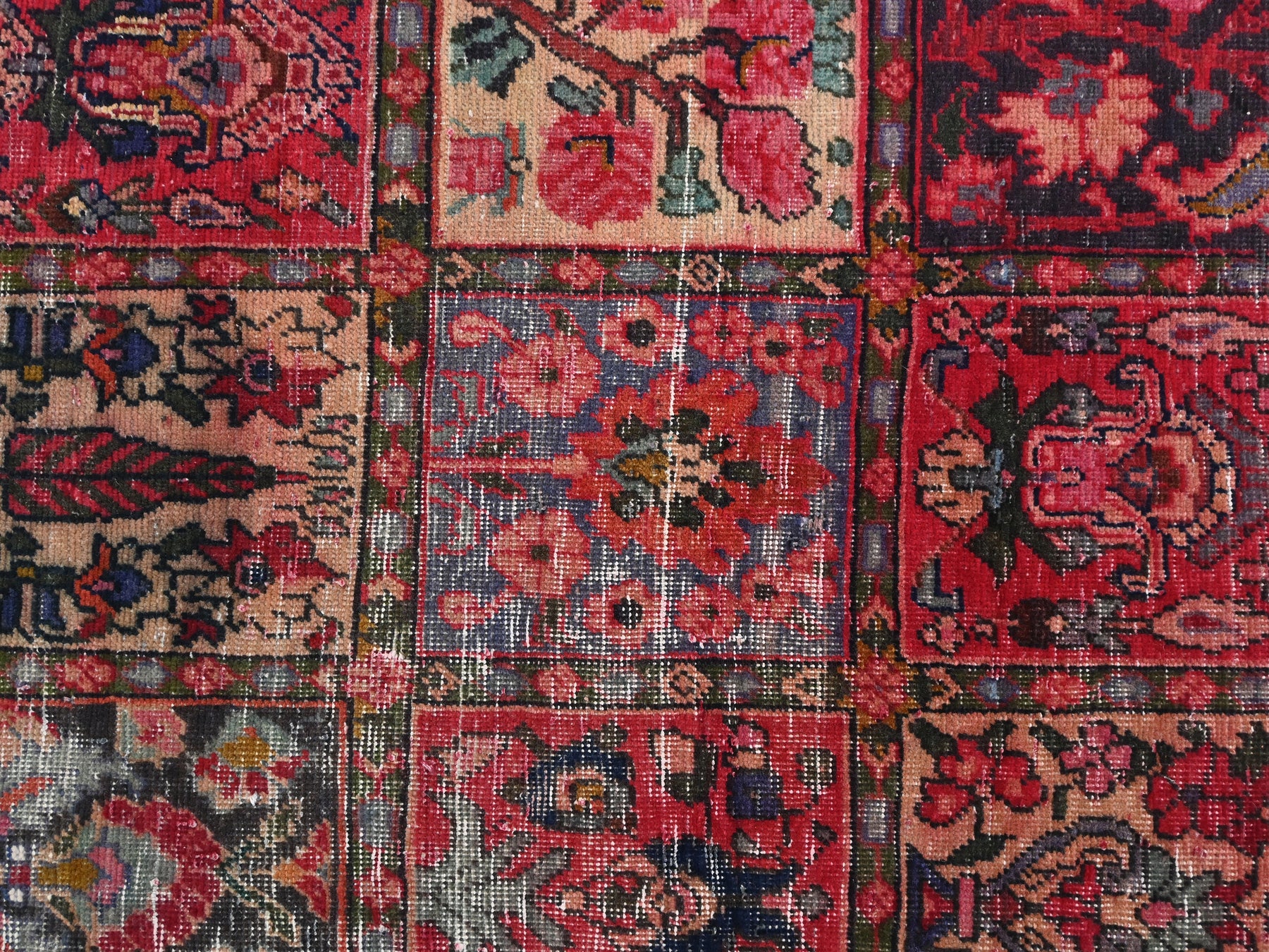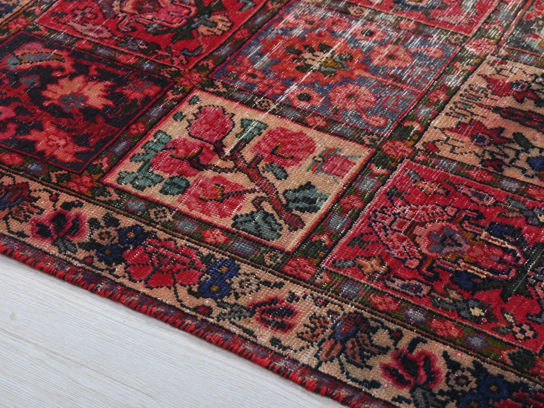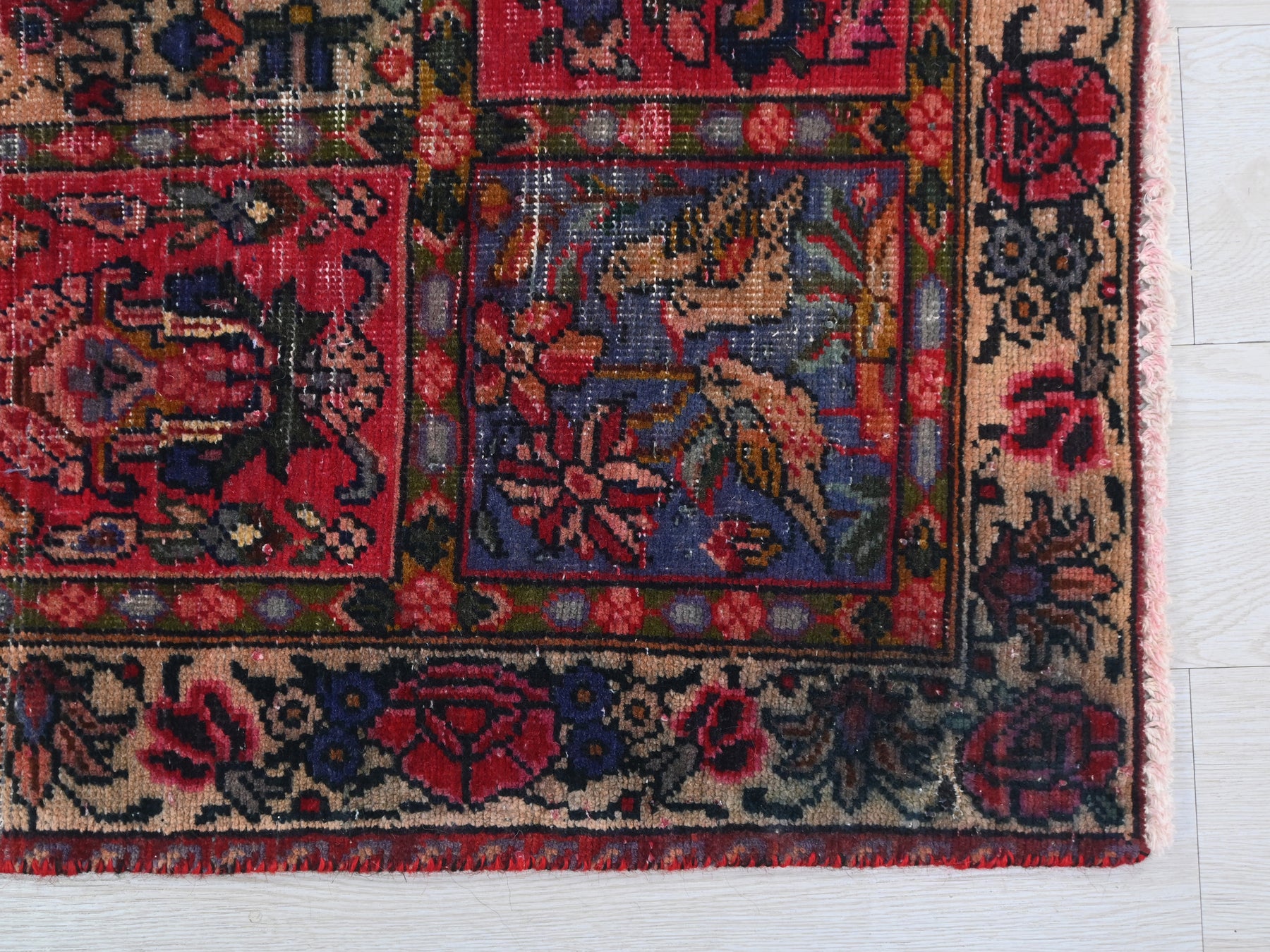 This is a hand-knotted, one-of-a-kind vintage rug. Due to the nature of this piece, there may be slight imperfections in its wear, shape, dimensions, and color. All of our rugs are professionally cleaned and repaired.