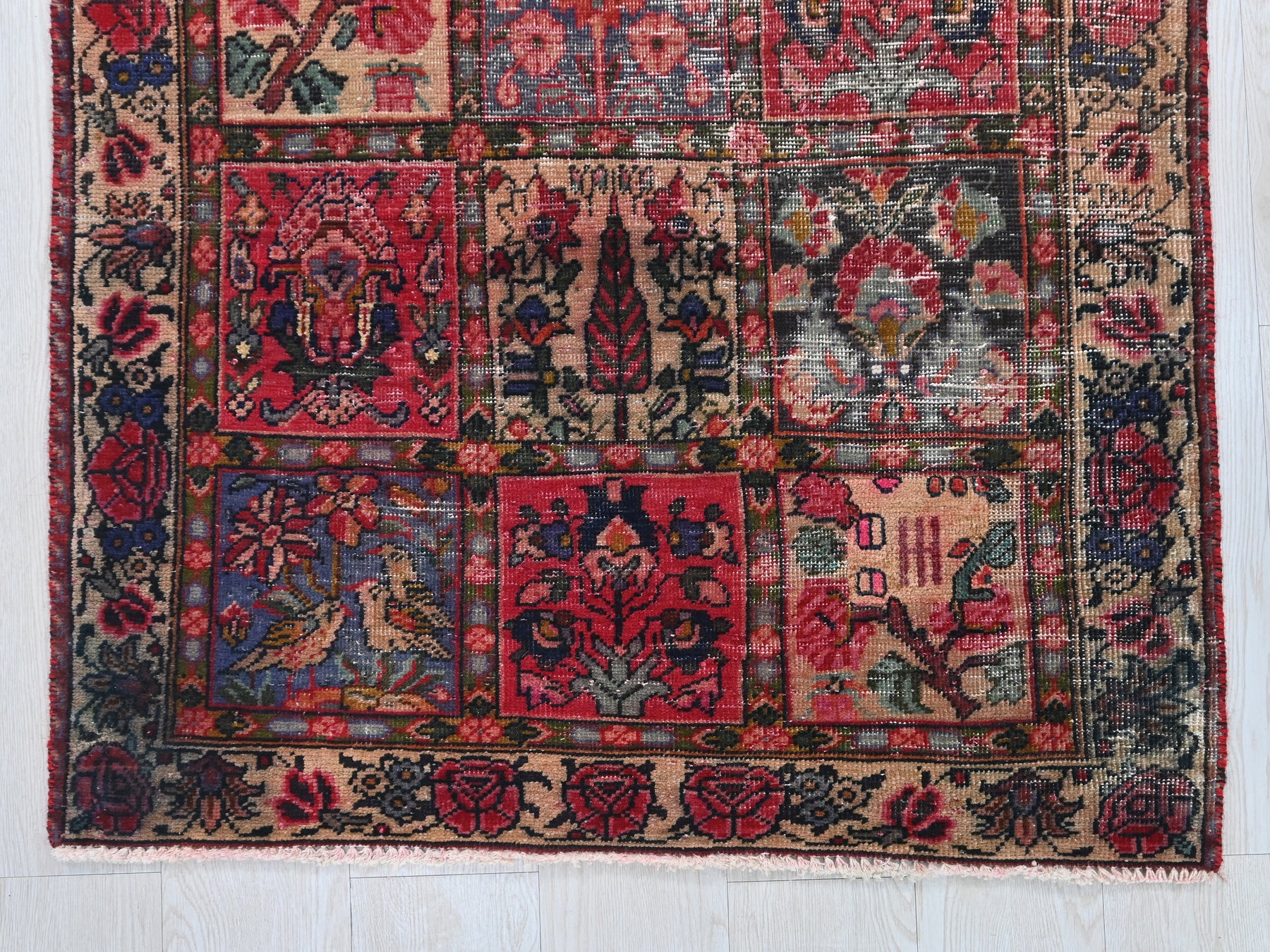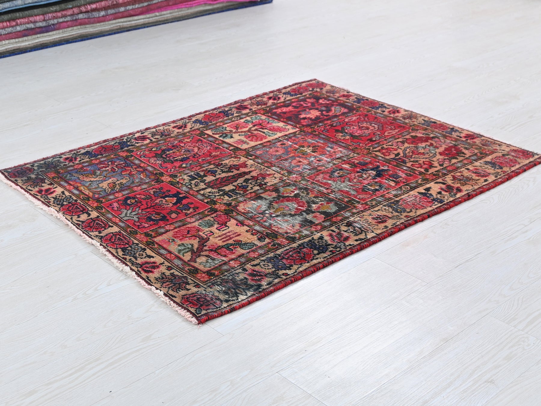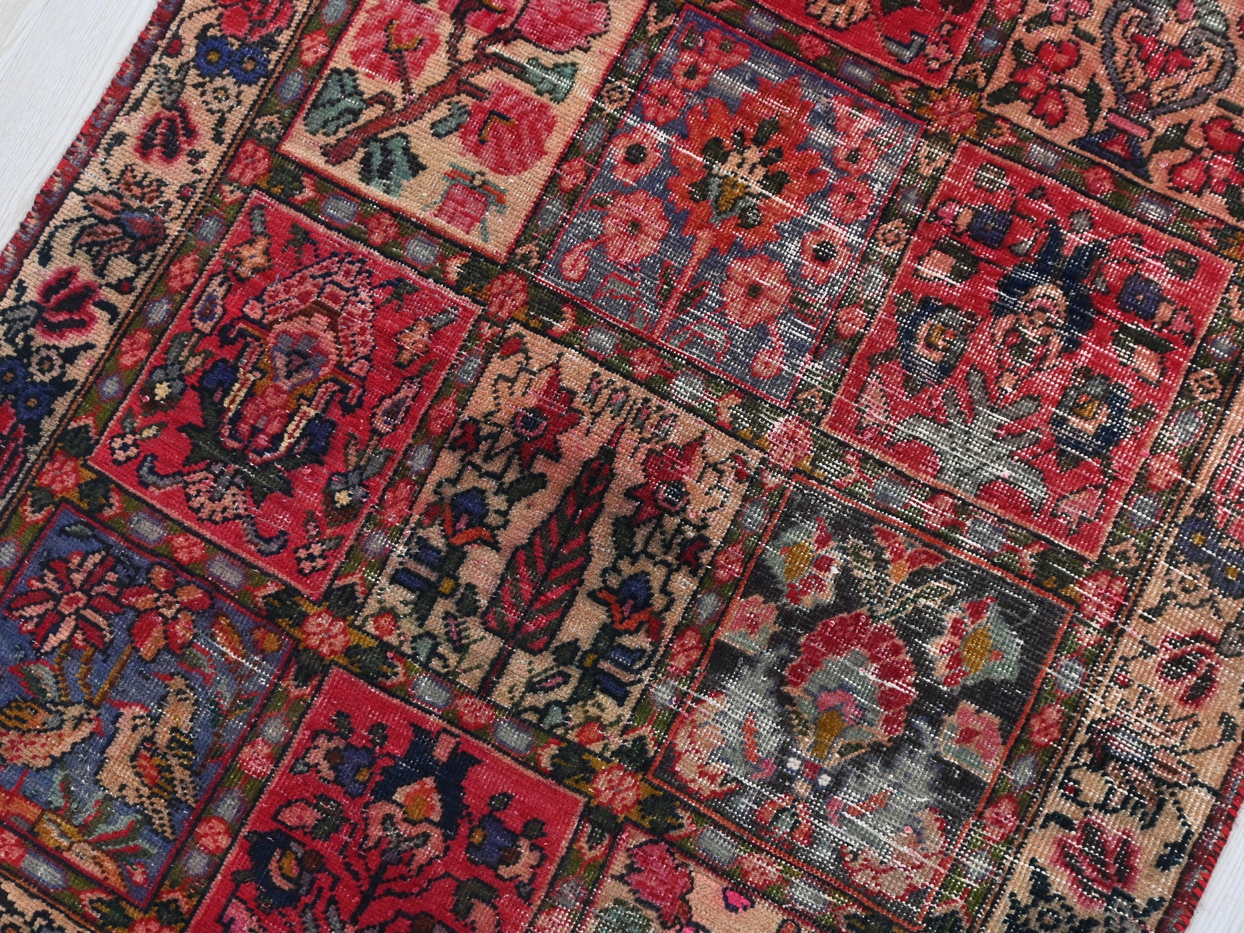 This is a hand-knotted, one-of-a-kind vintage rug. Due to the nature of this piece, there may be slight imperfections in its wear, shape, dimensions, and color. All of our rugs are professionally cleaned and repaired.