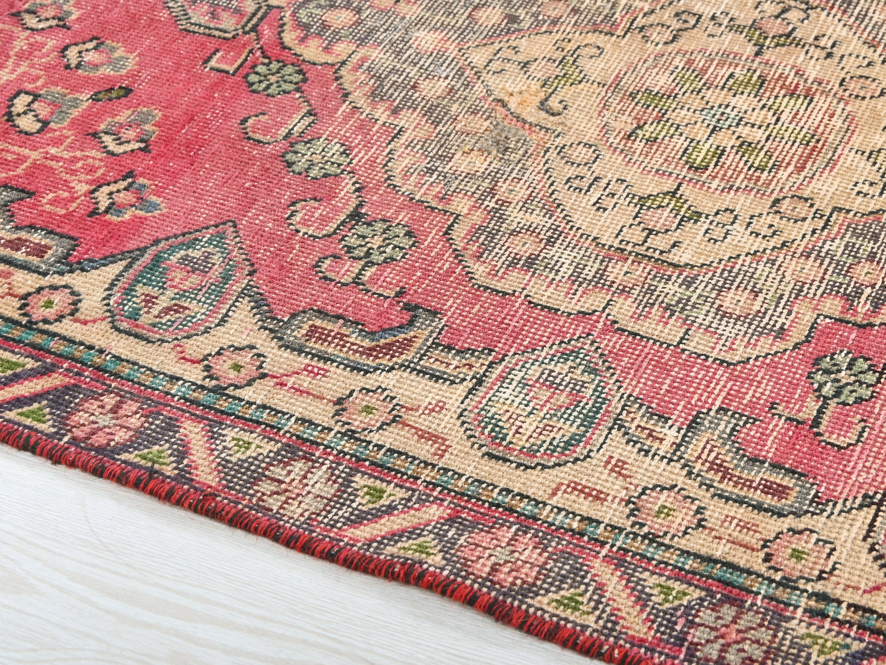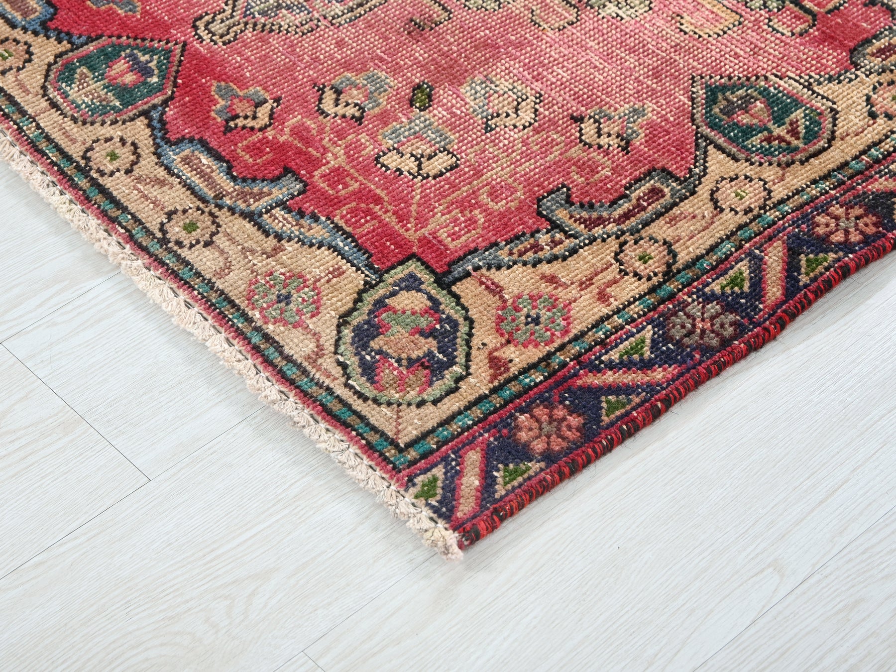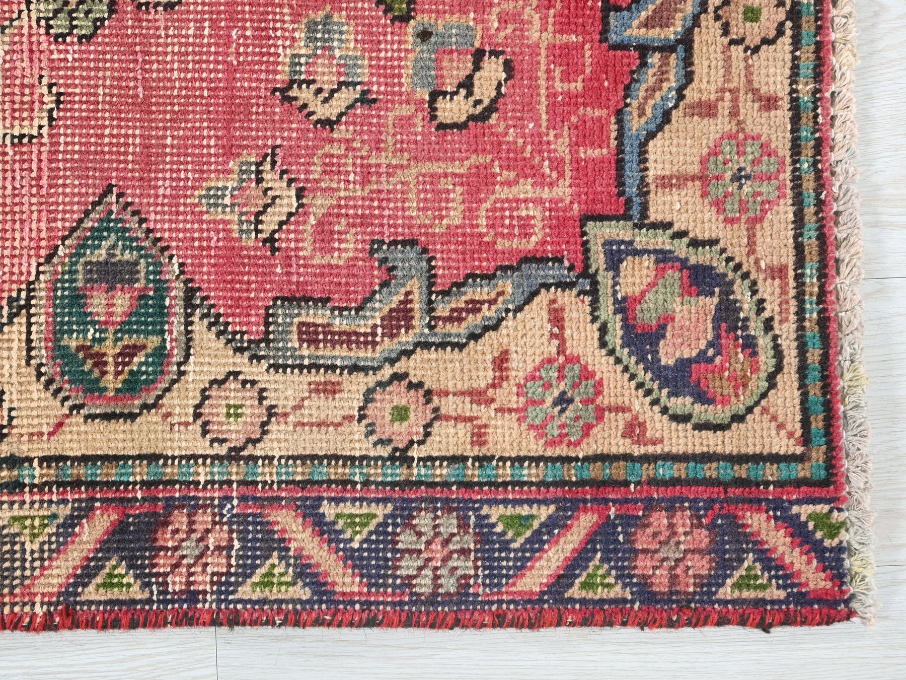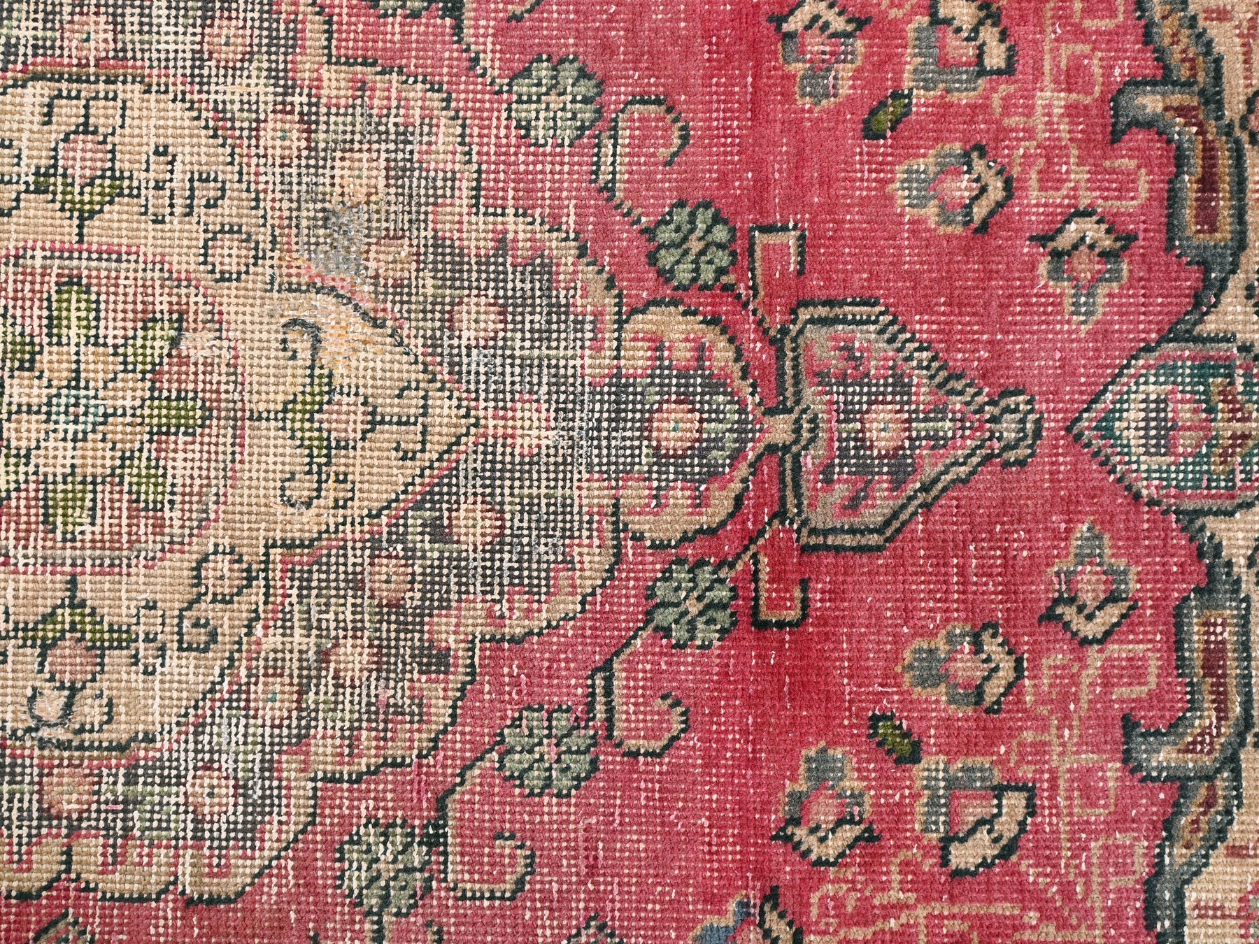 This is a hand-knotted, one-of-a-kind vintage rug. Due to the nature of this piece, there may be slight imperfections in its wear, shape, dimensions, and color. All of our rugs are professionally cleaned and repaired.
