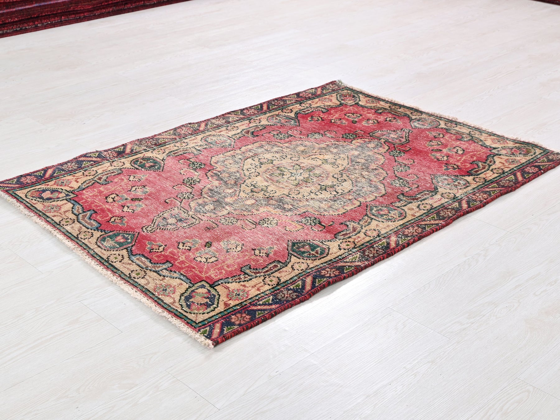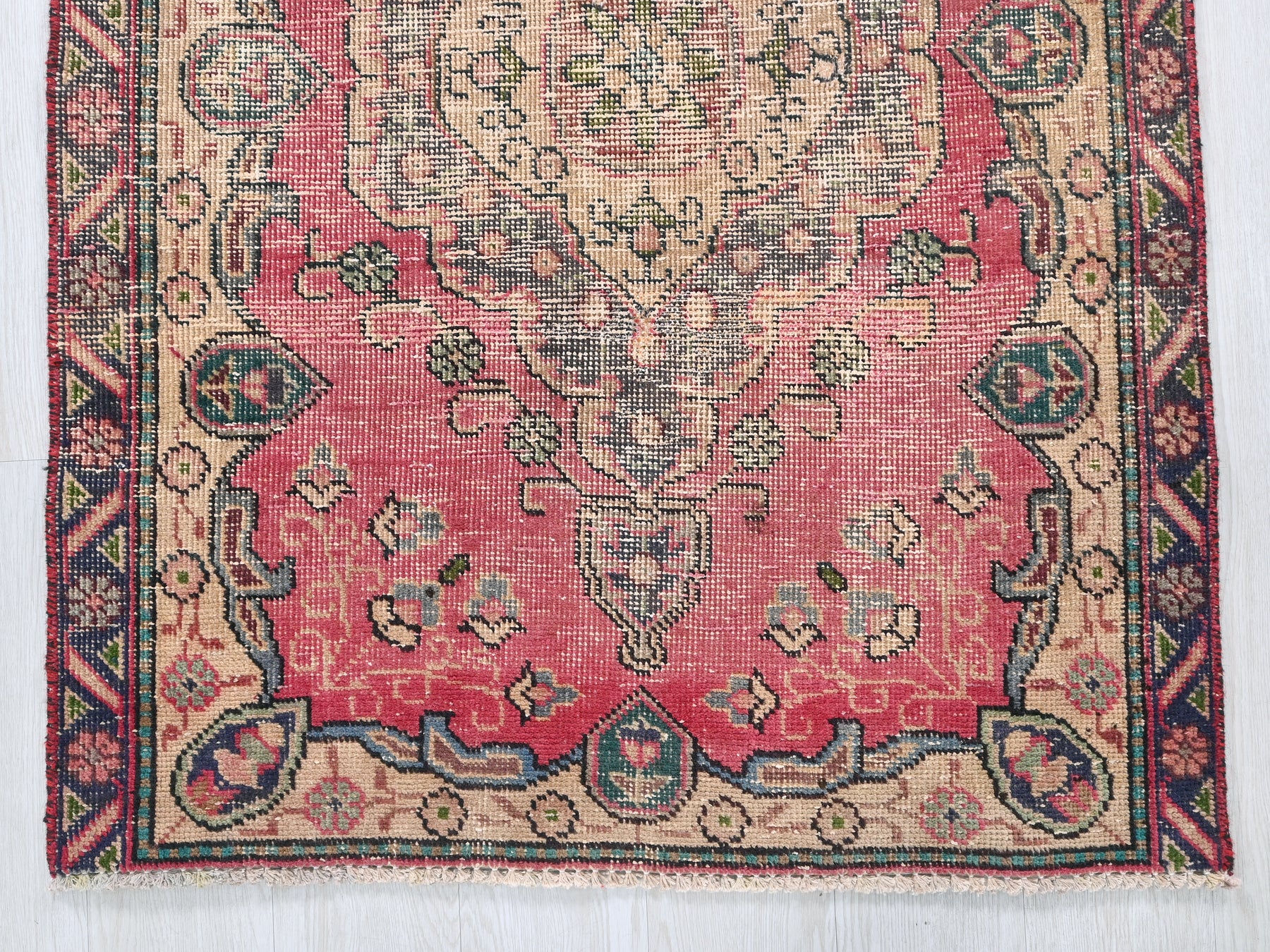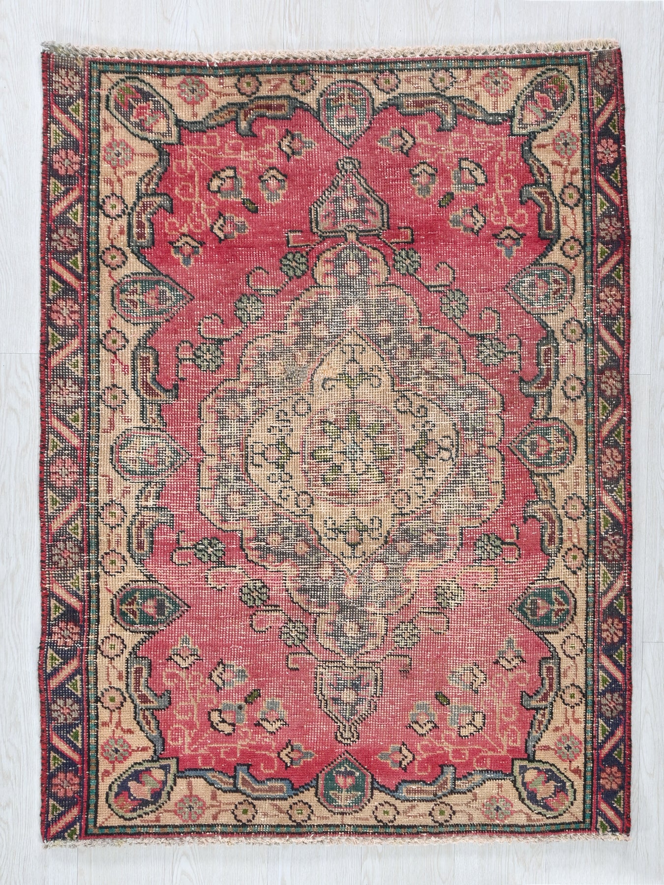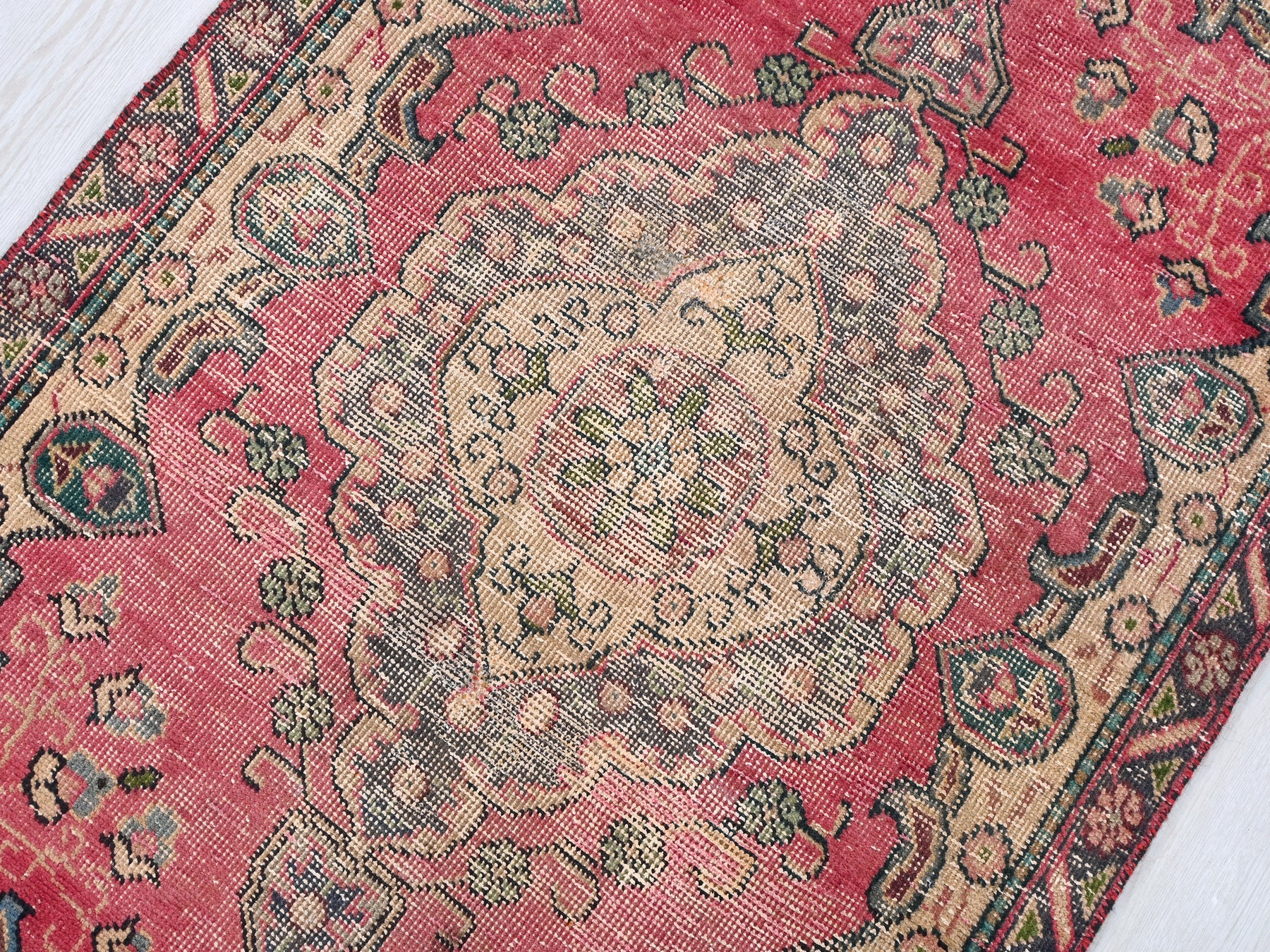 This is a hand-knotted, one-of-a-kind vintage rug. Due to the nature of this piece, there may be slight imperfections in its wear, shape, dimensions, and color. All of our rugs are professionally cleaned and repaired.
