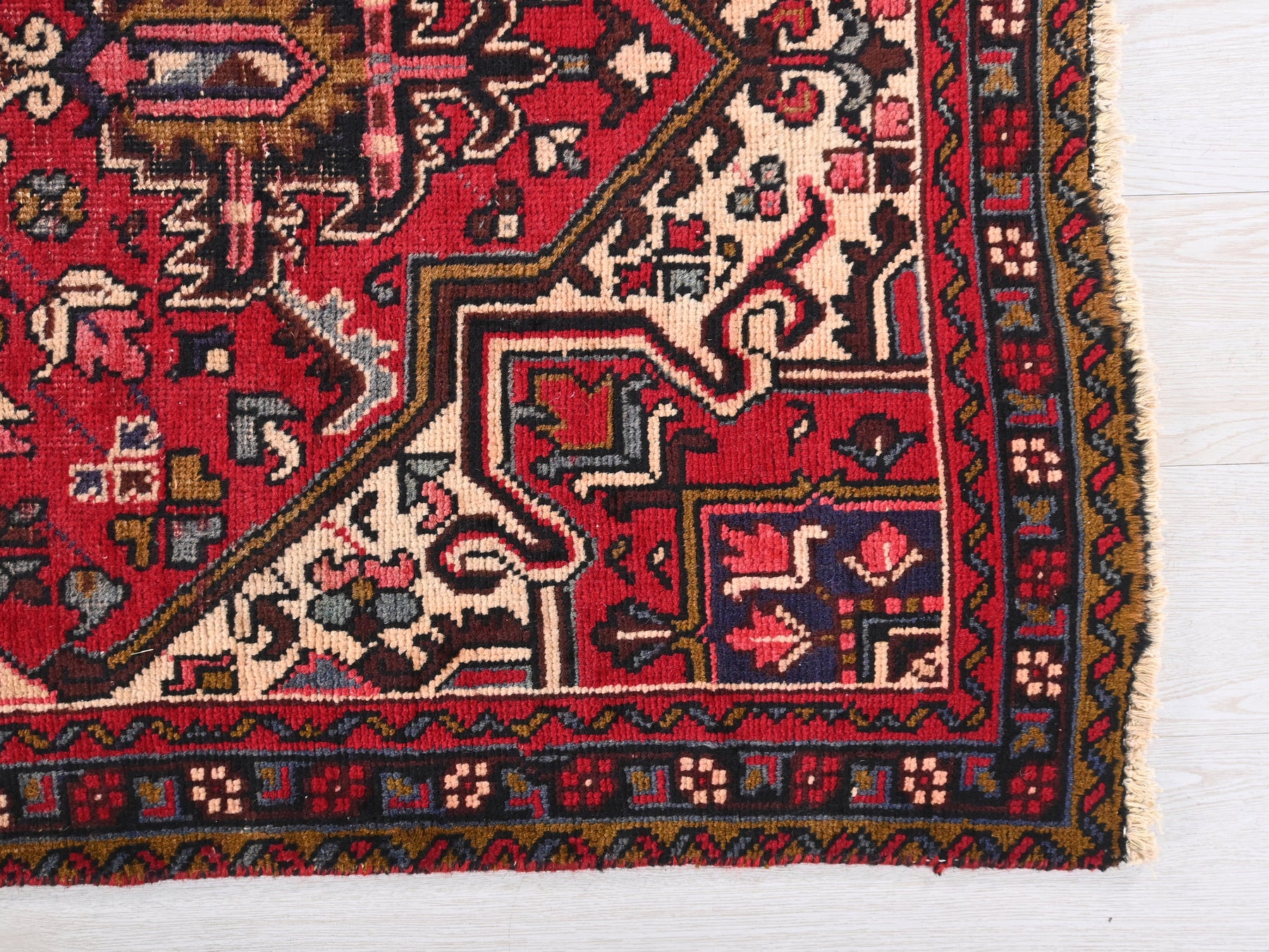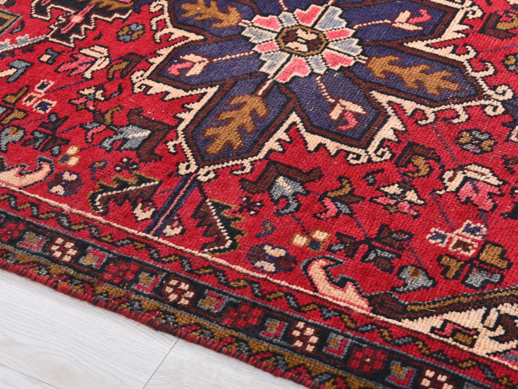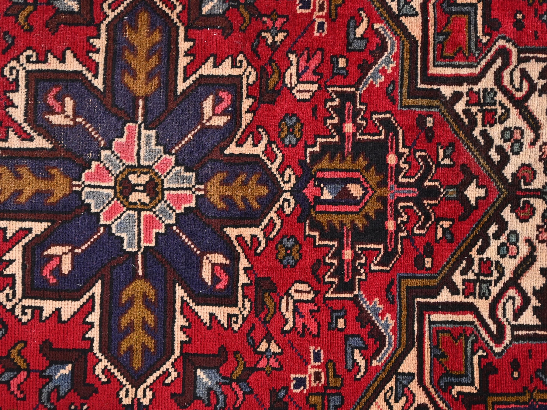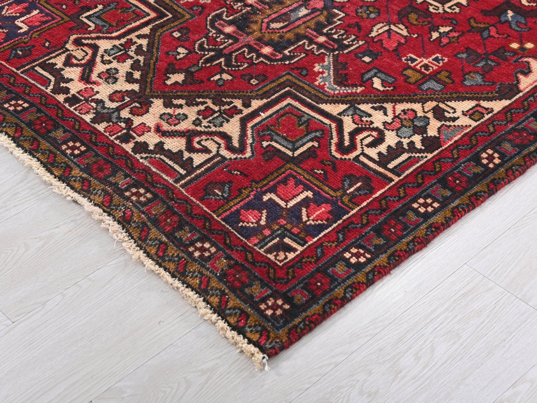 This is a hand-knotted, one-of-a-kind vintage rug. Due to the nature of this piece, there may be slight imperfections in its wear, shape, dimensions, and color. All of our rugs are professionally cleaned and repaired.