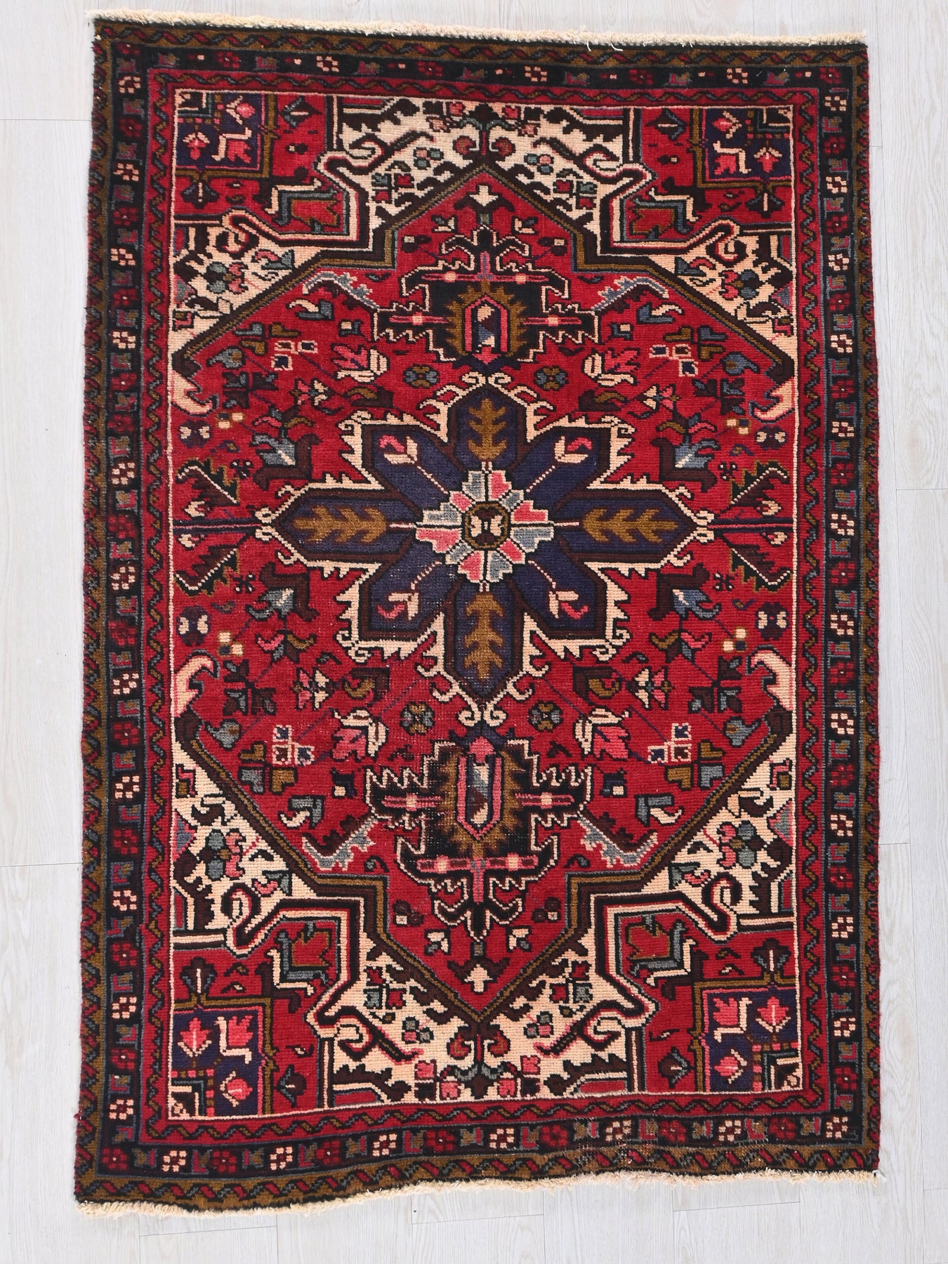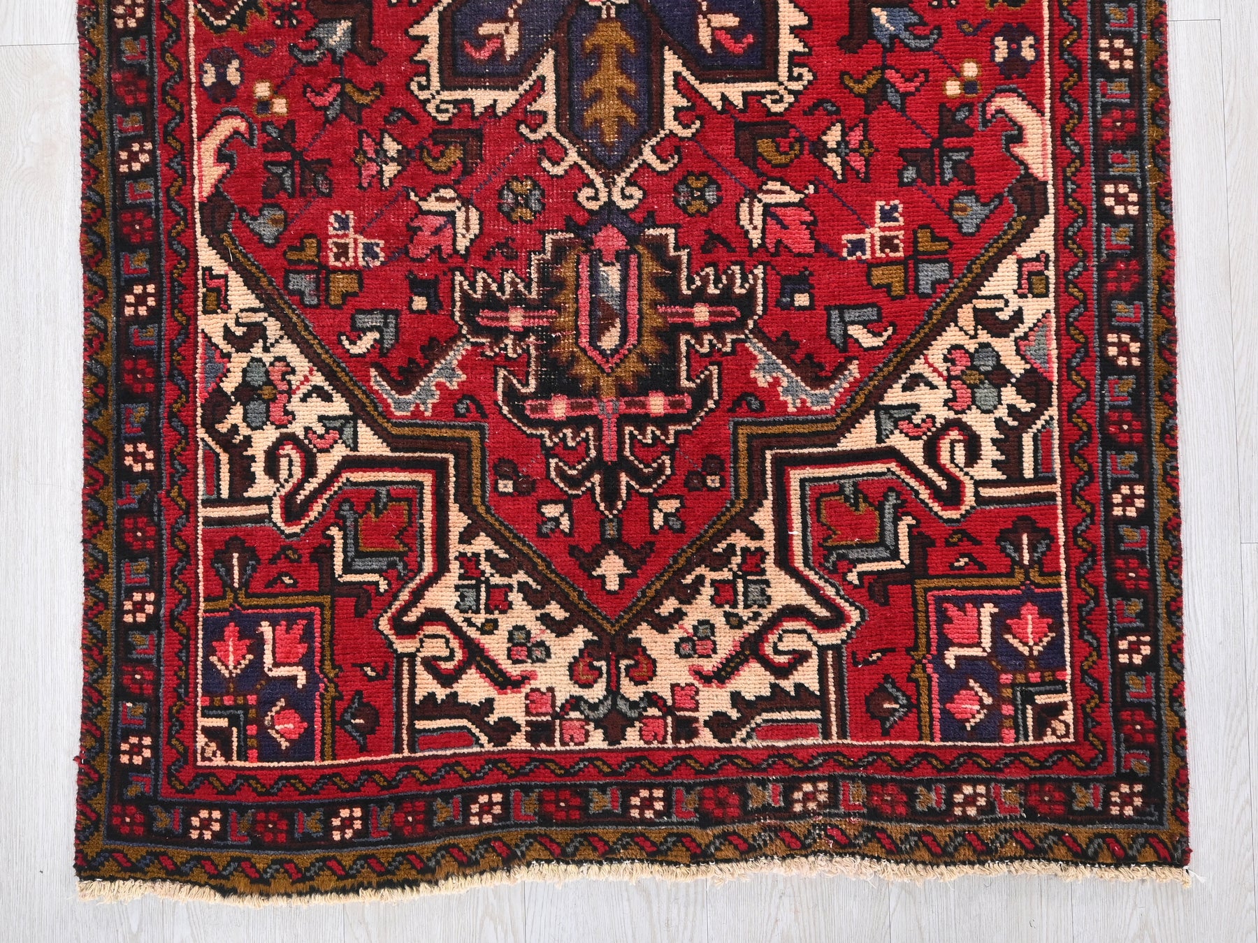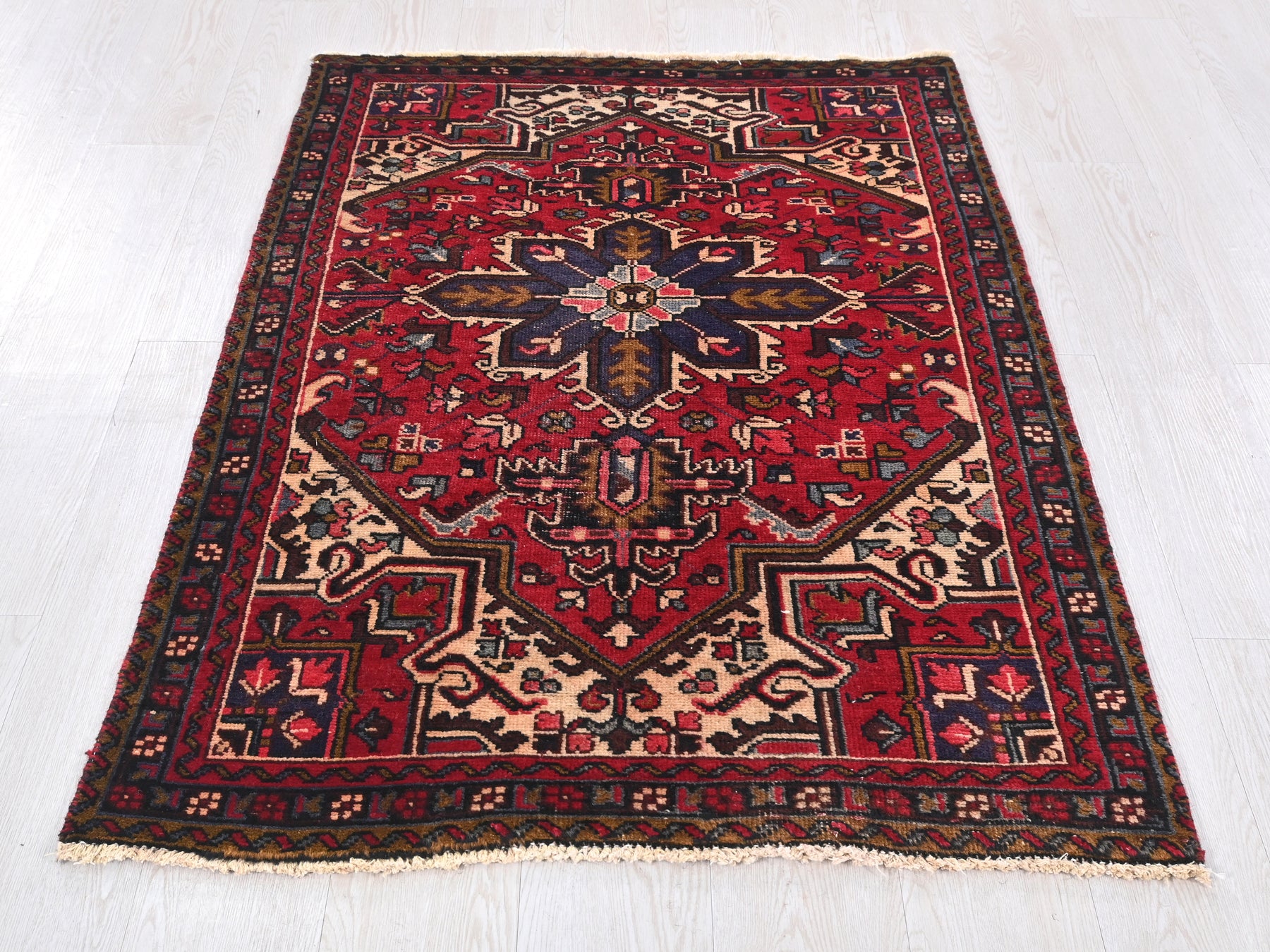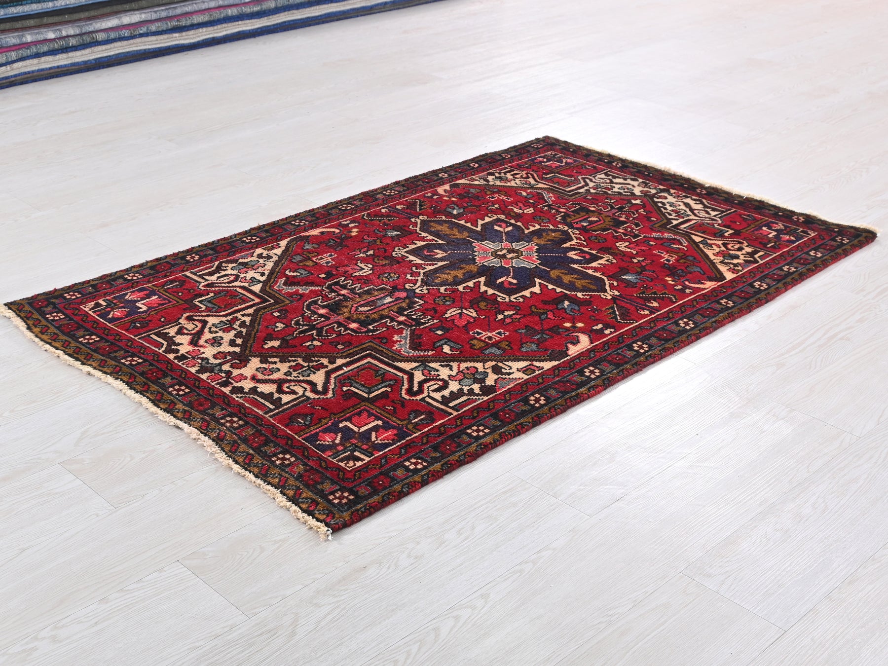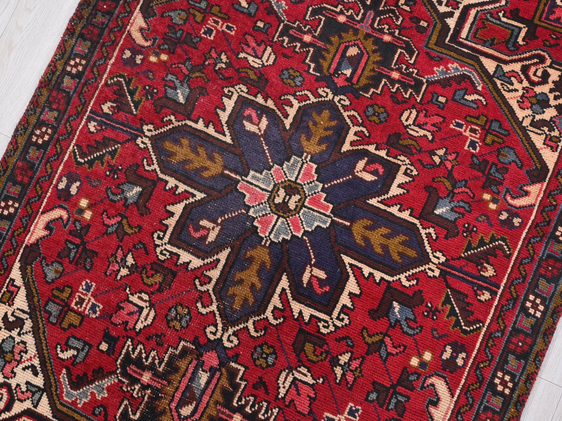 This is a hand-knotted, one-of-a-kind vintage rug. Due to the nature of this piece, there may be slight imperfections in its wear, shape, dimensions, and color. All of our rugs are professionally cleaned and repaired.