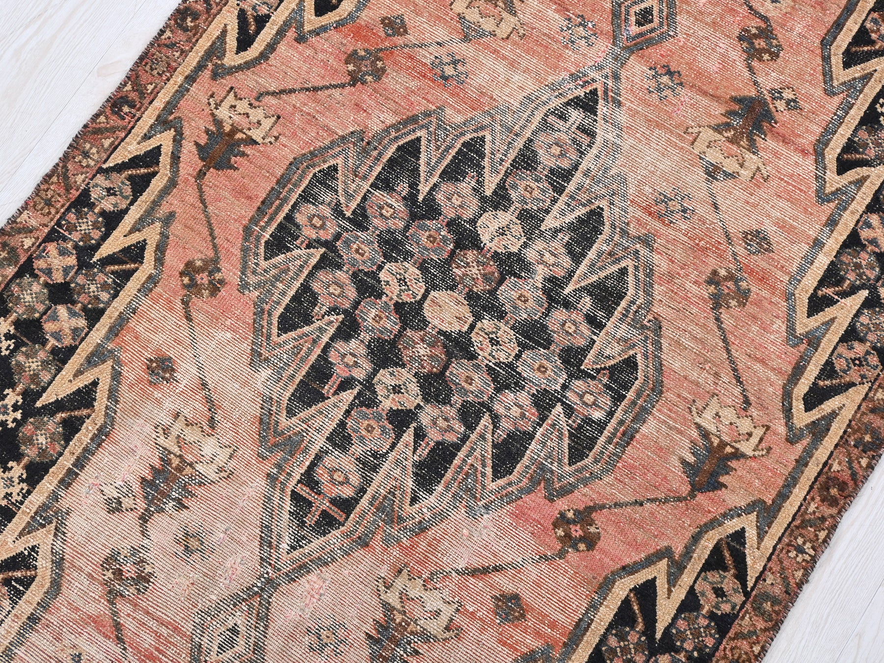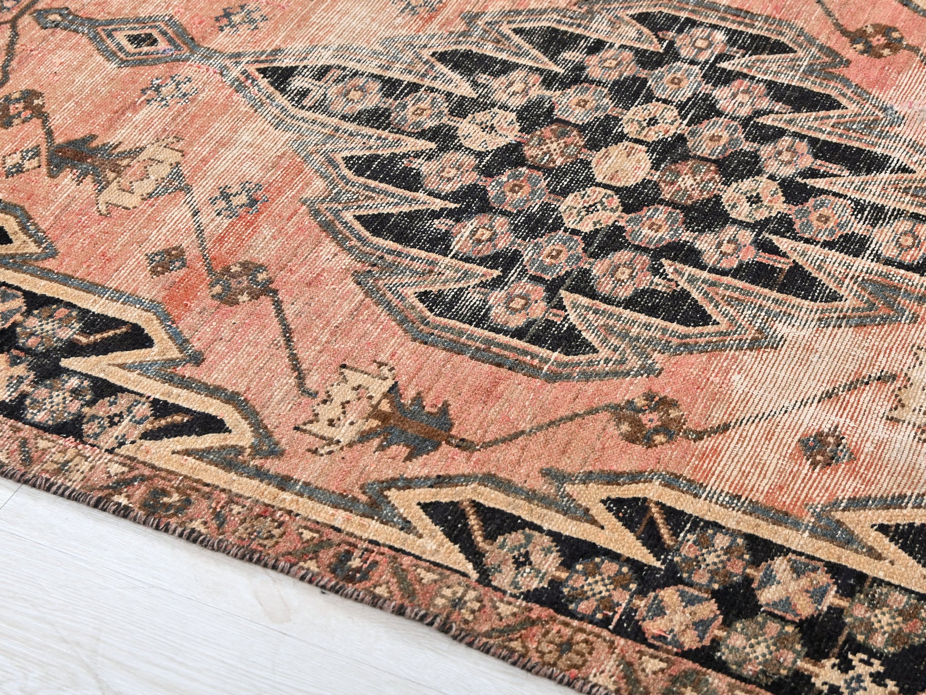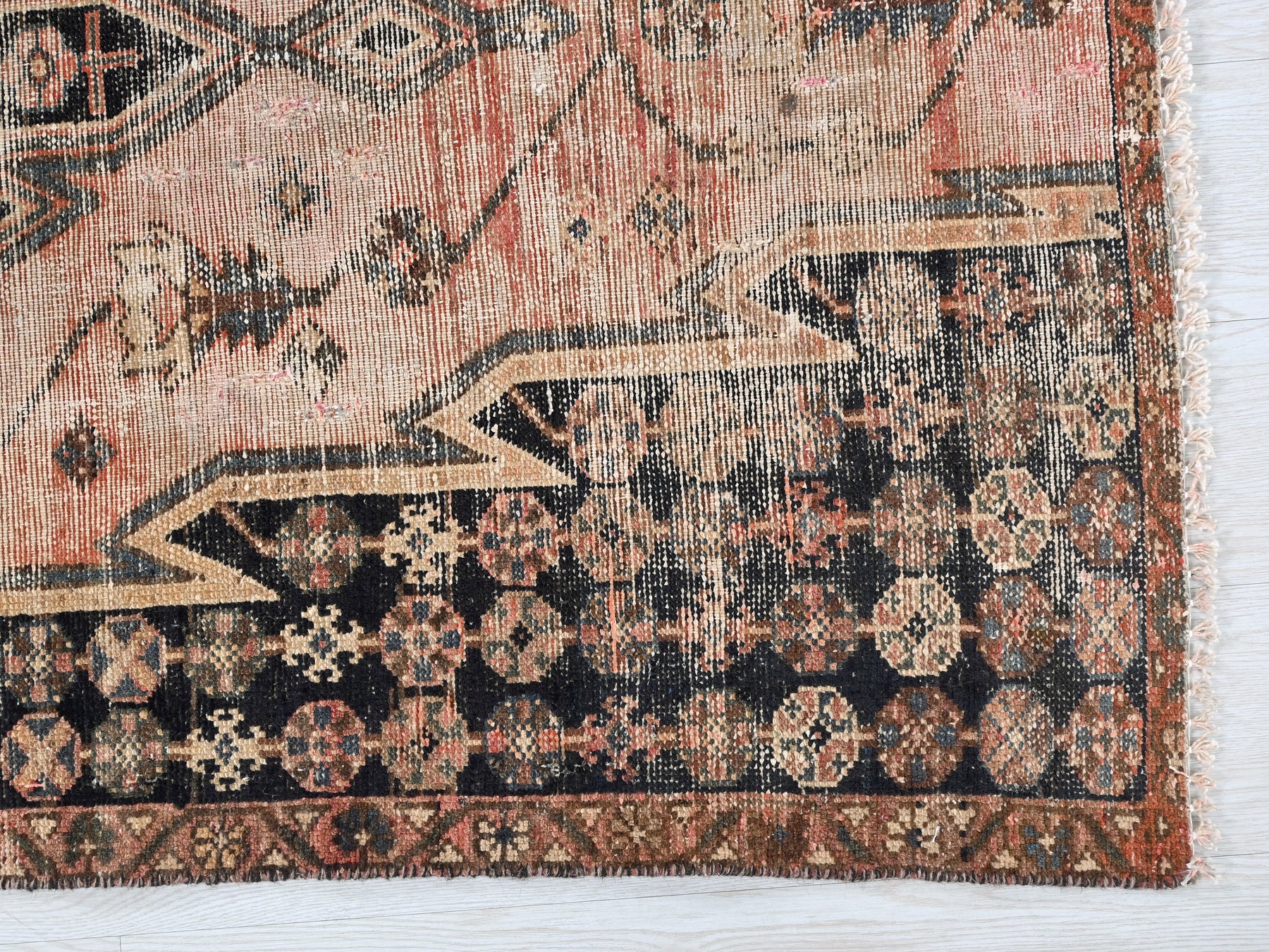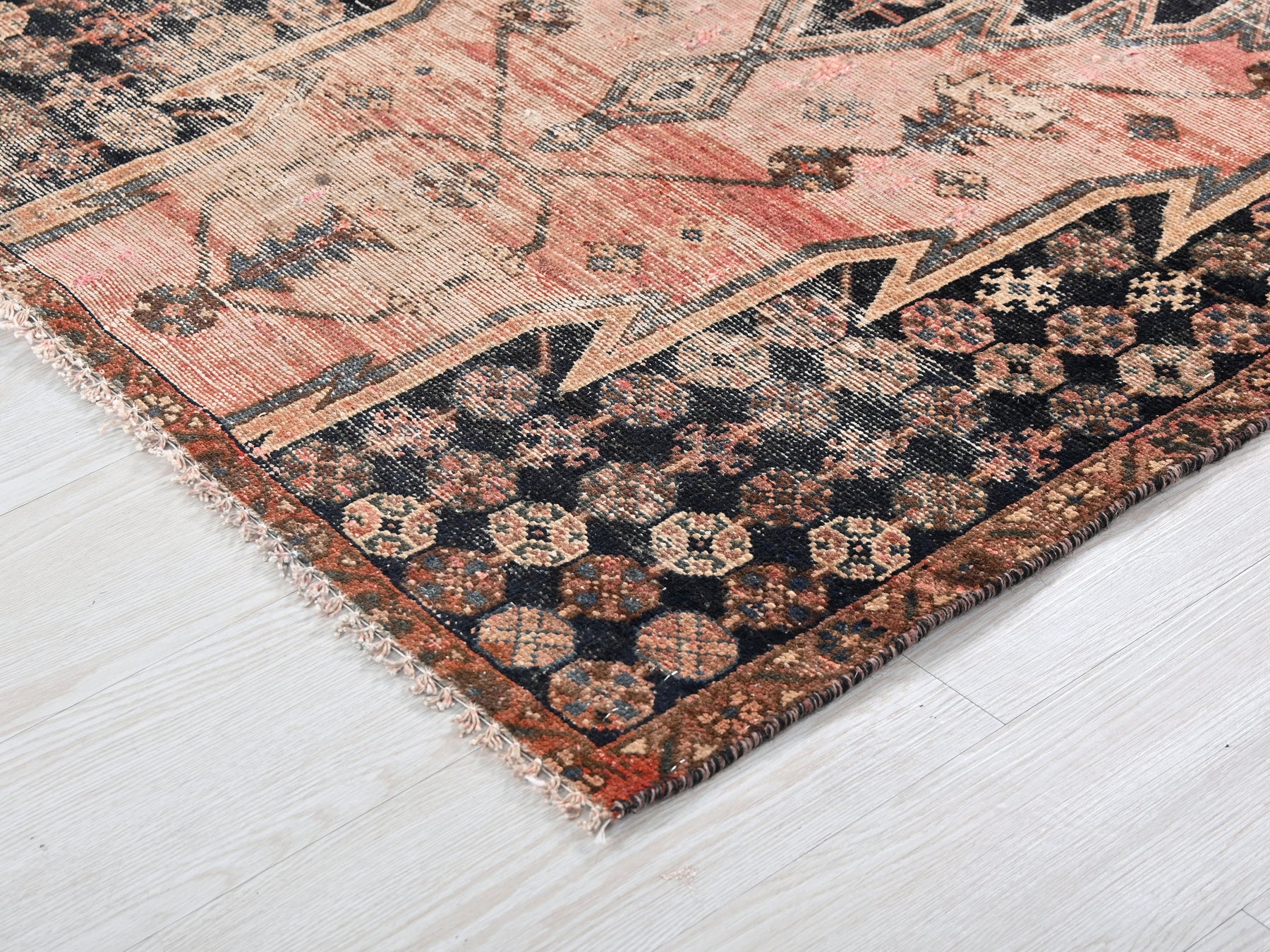 This is a hand-knotted, one-of-a-kind vintage rug. Due to the nature of this piece, there may be slight imperfections in its wear, shape, dimensions, and color. All of our rugs are professionally cleaned and repaired.