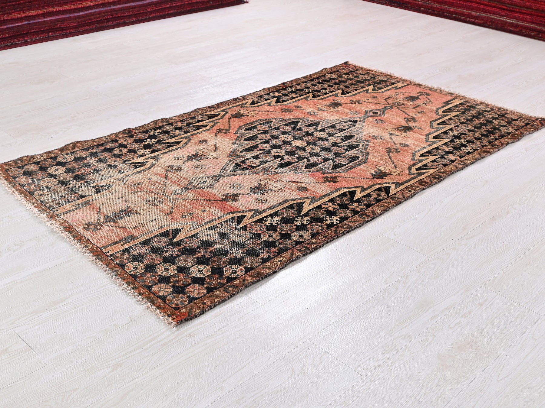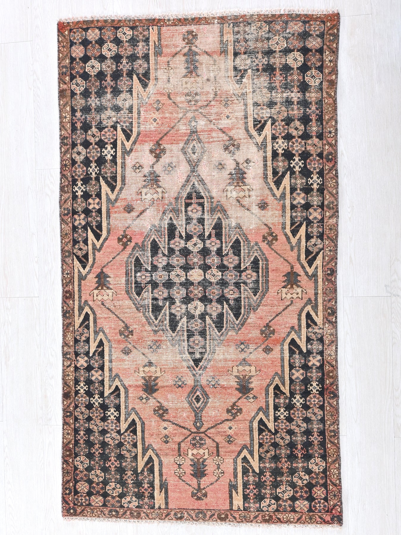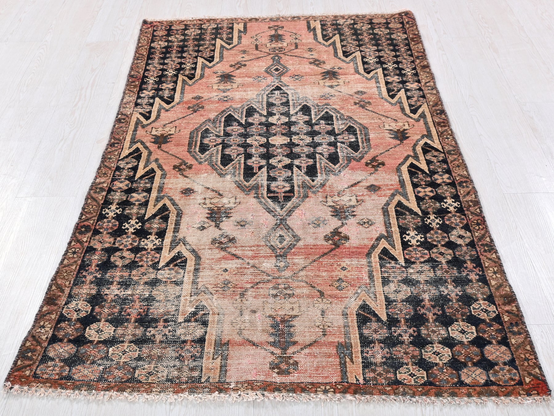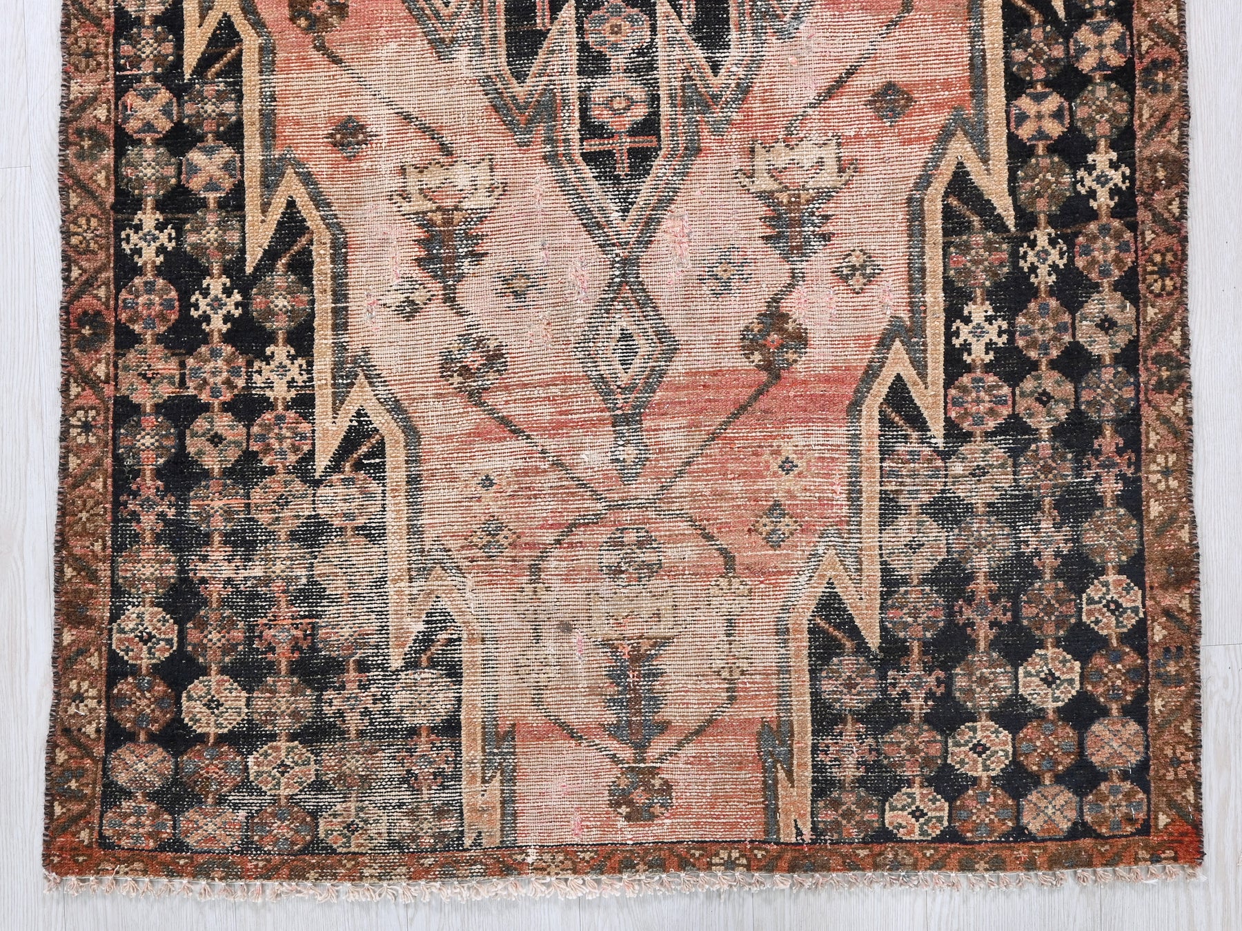This is a hand-knotted, one-of-a-kind vintage rug. Due to the nature of this piece, there may be slight imperfections in its wear, shape, dimensions, and color. All of our rugs are professionally cleaned and repaired.