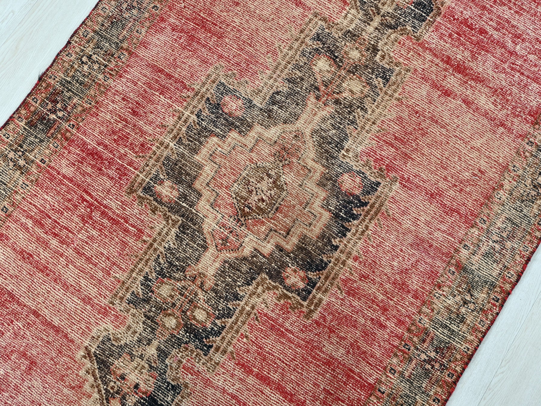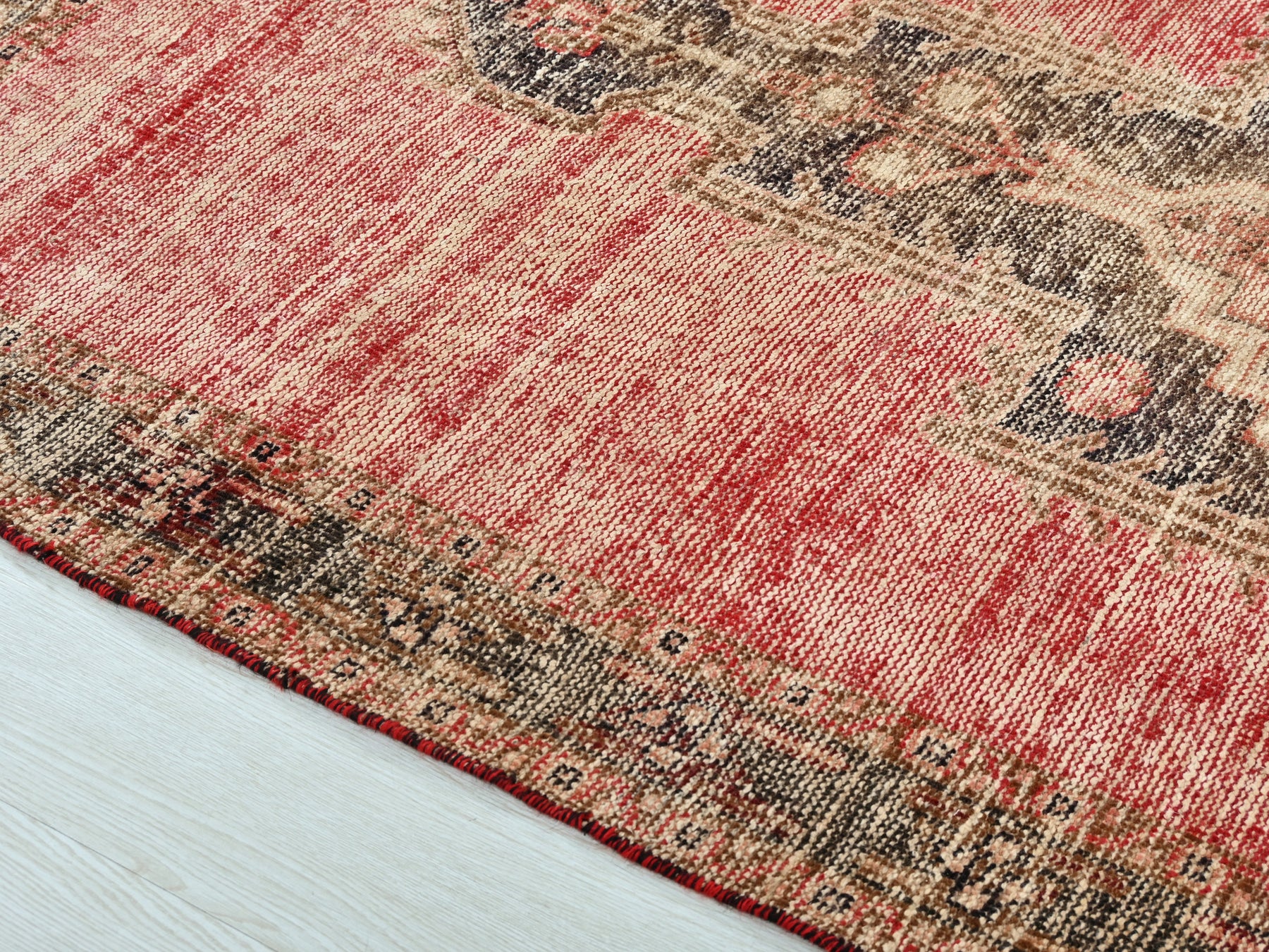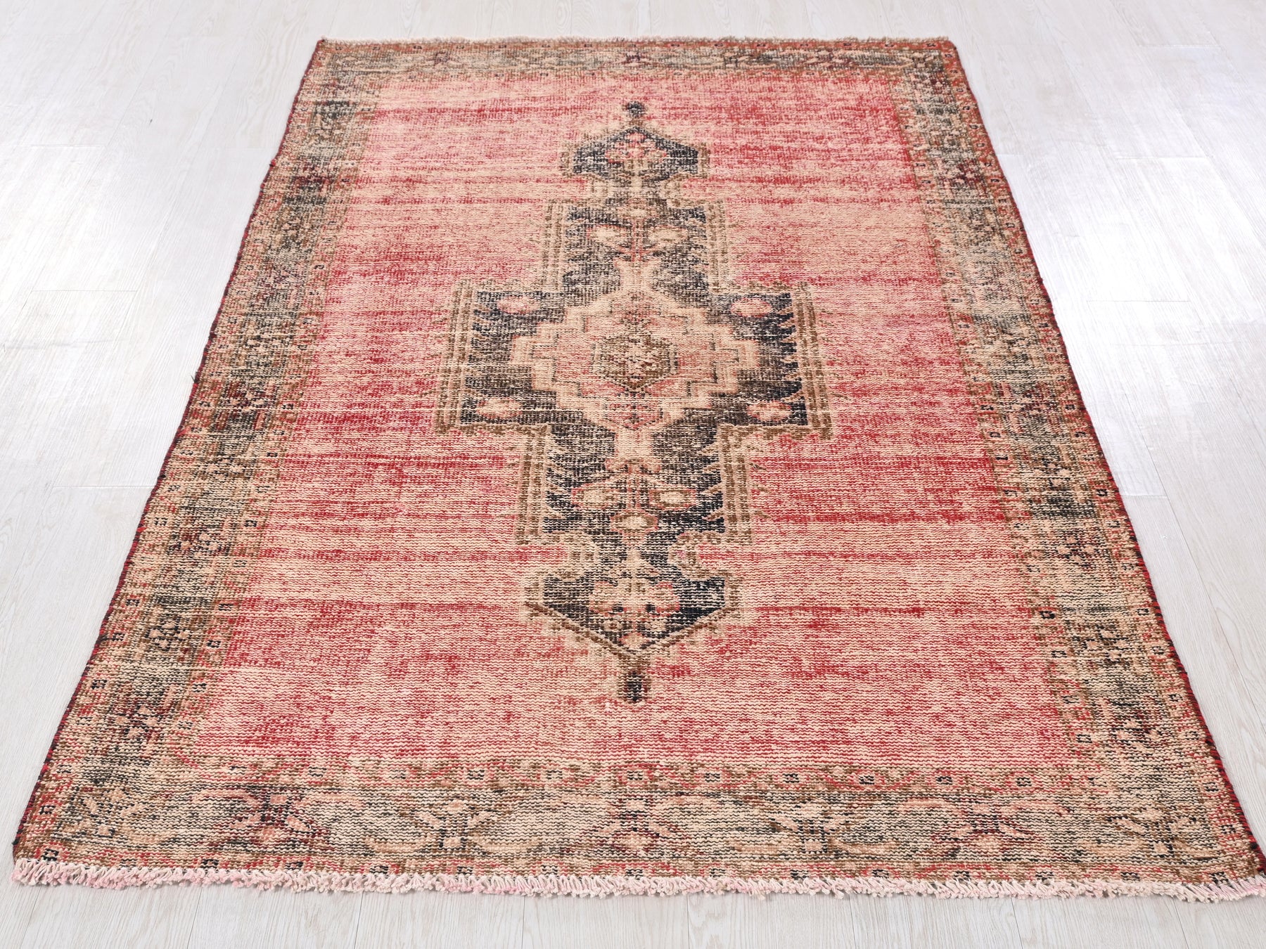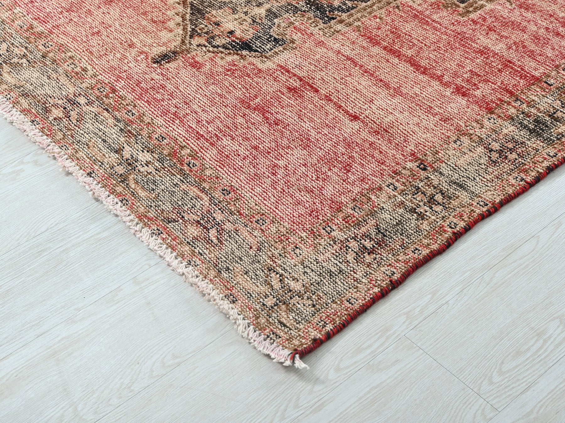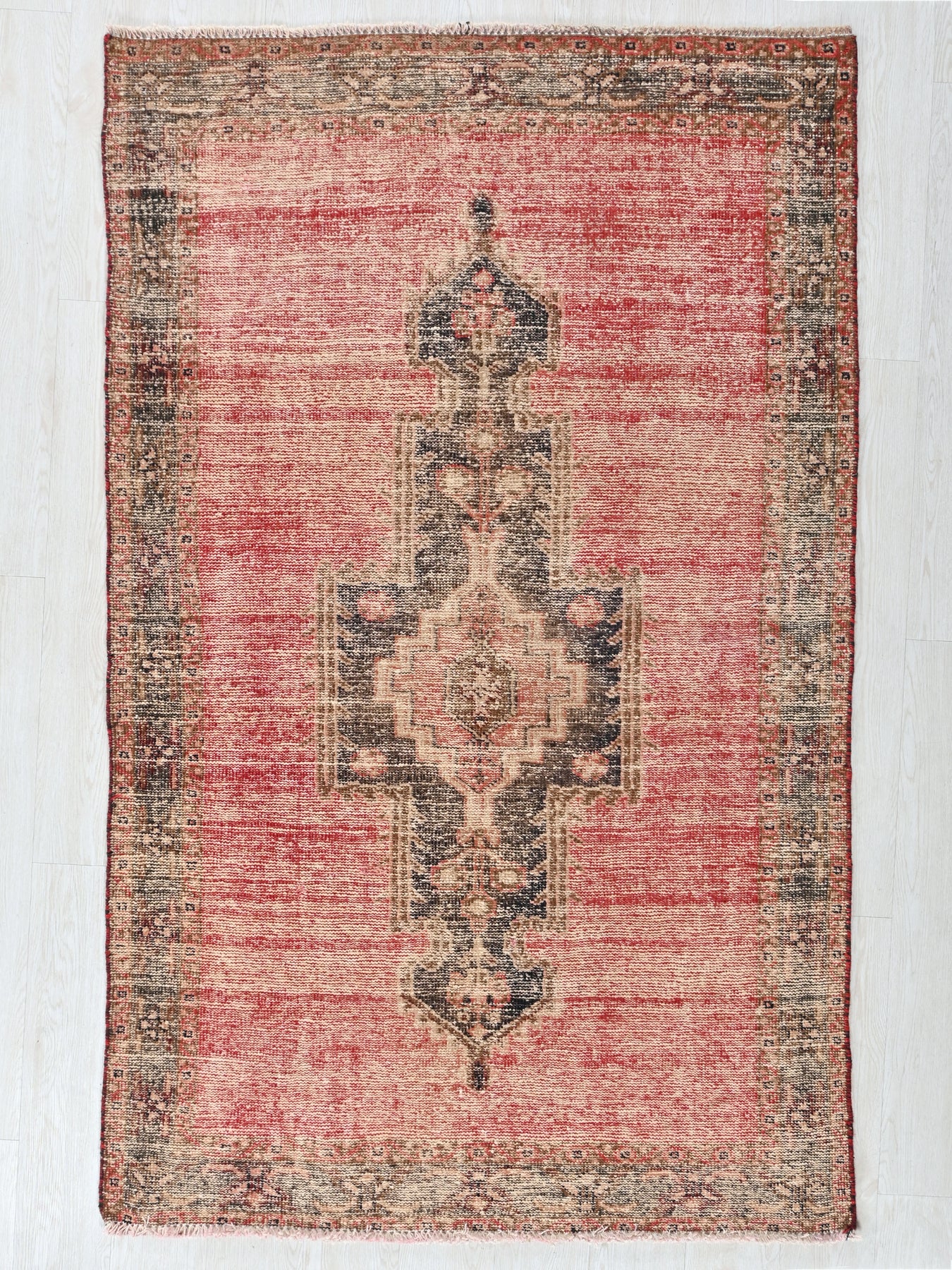 This is a hand-knotted, one-of-a-kind vintage rug. Due to the nature of this piece, there may be slight imperfections in its wear, shape, dimensions, and color. All of our rugs are professionally cleaned and repaired.