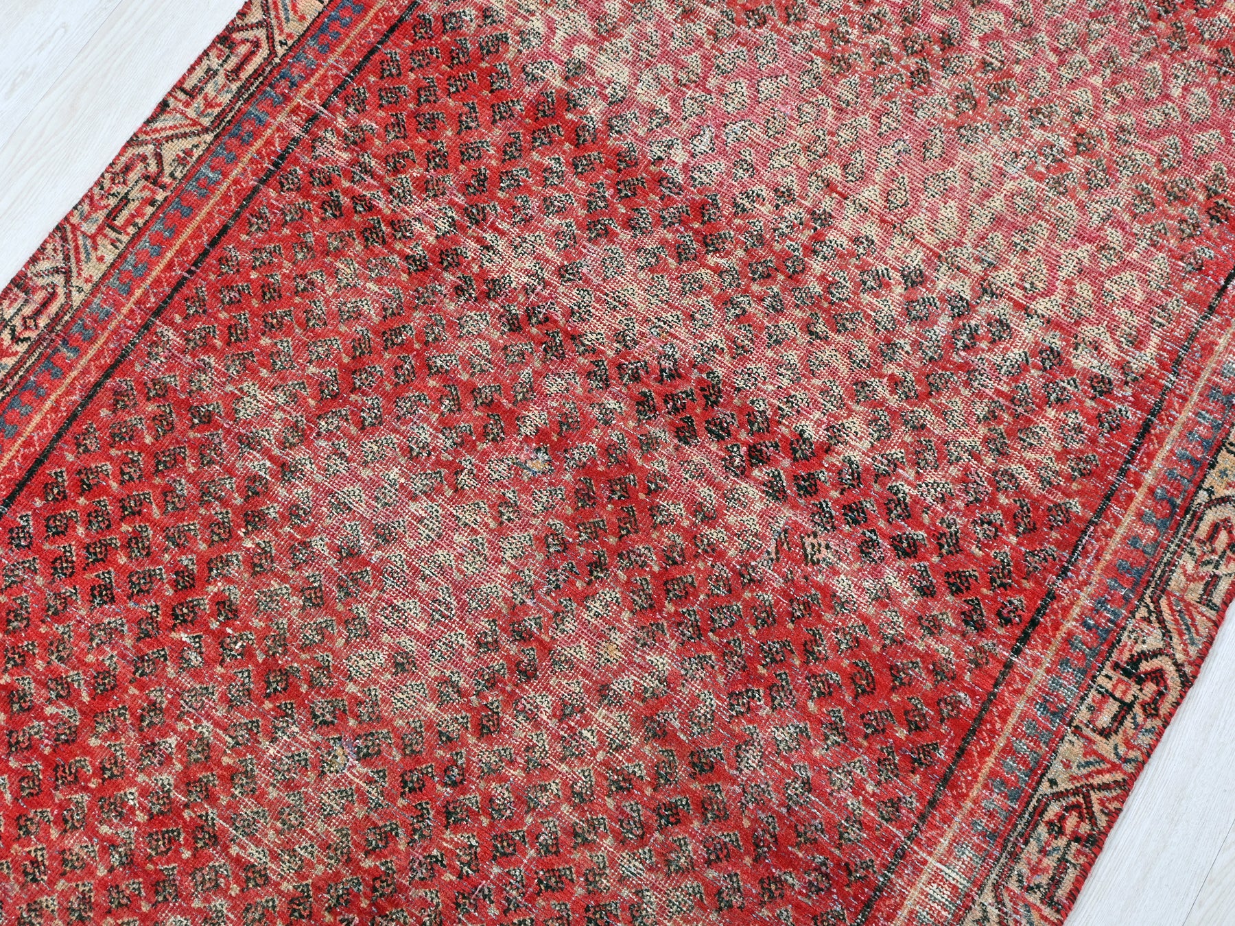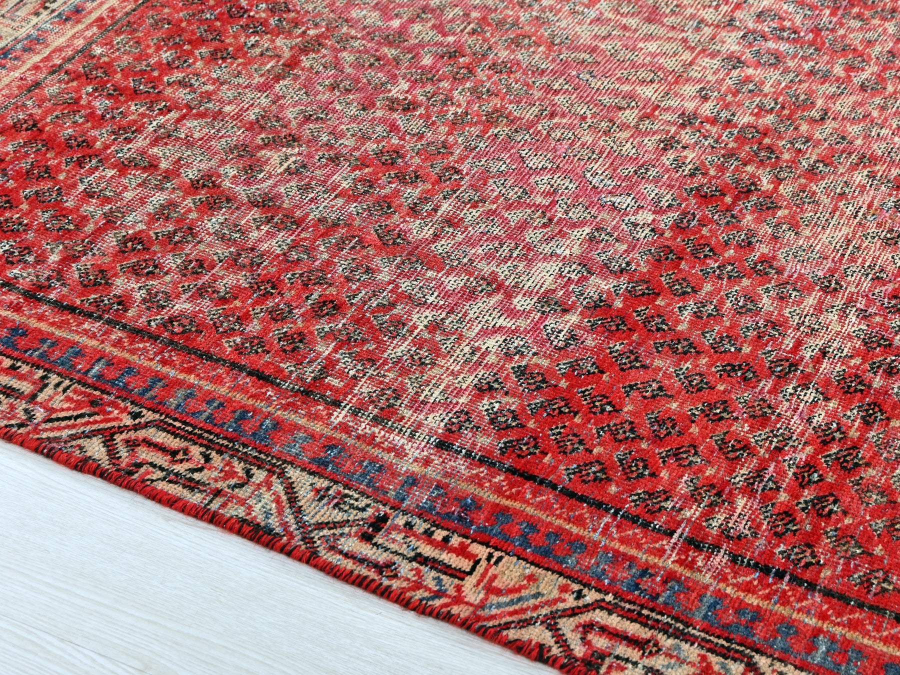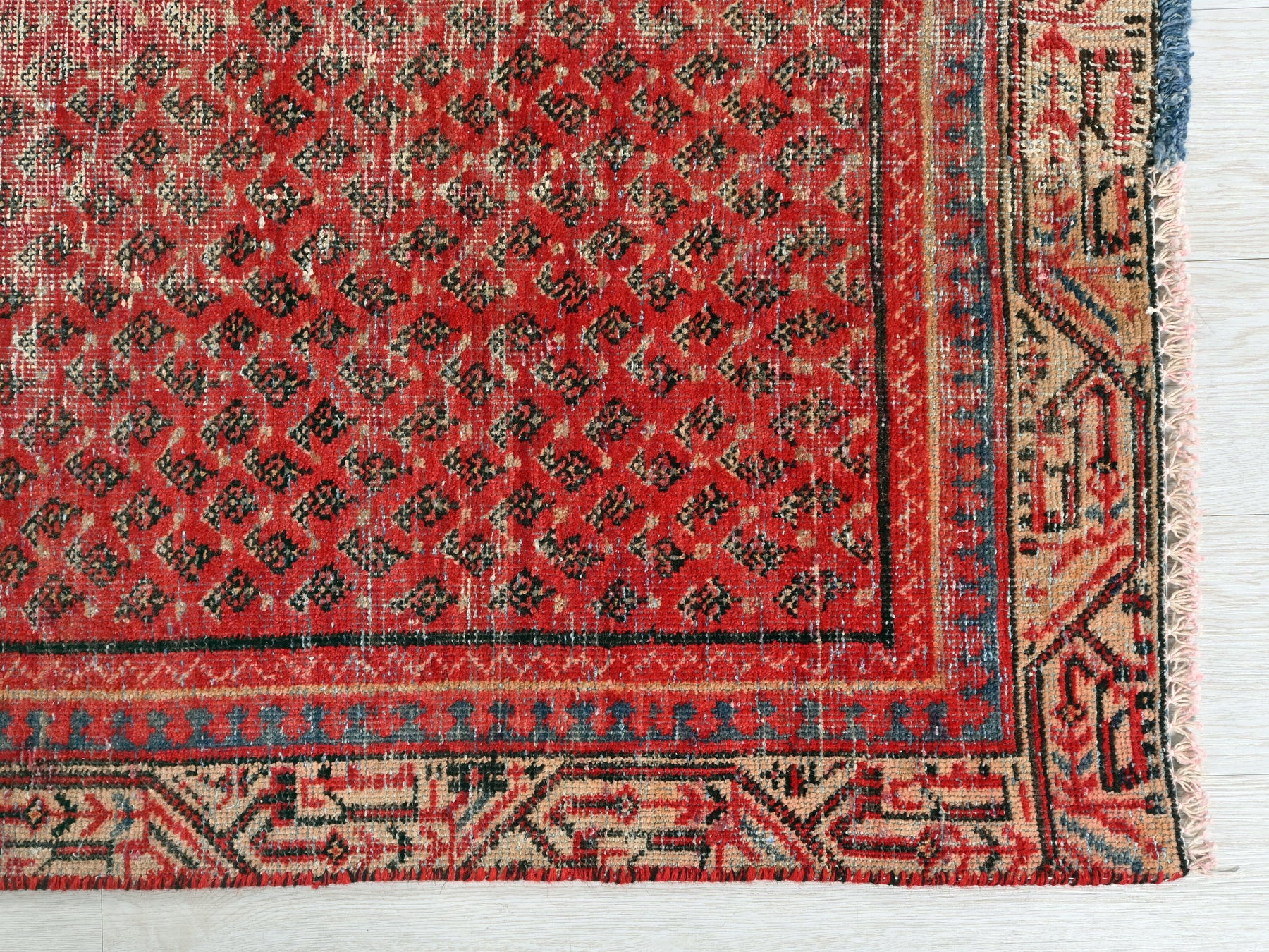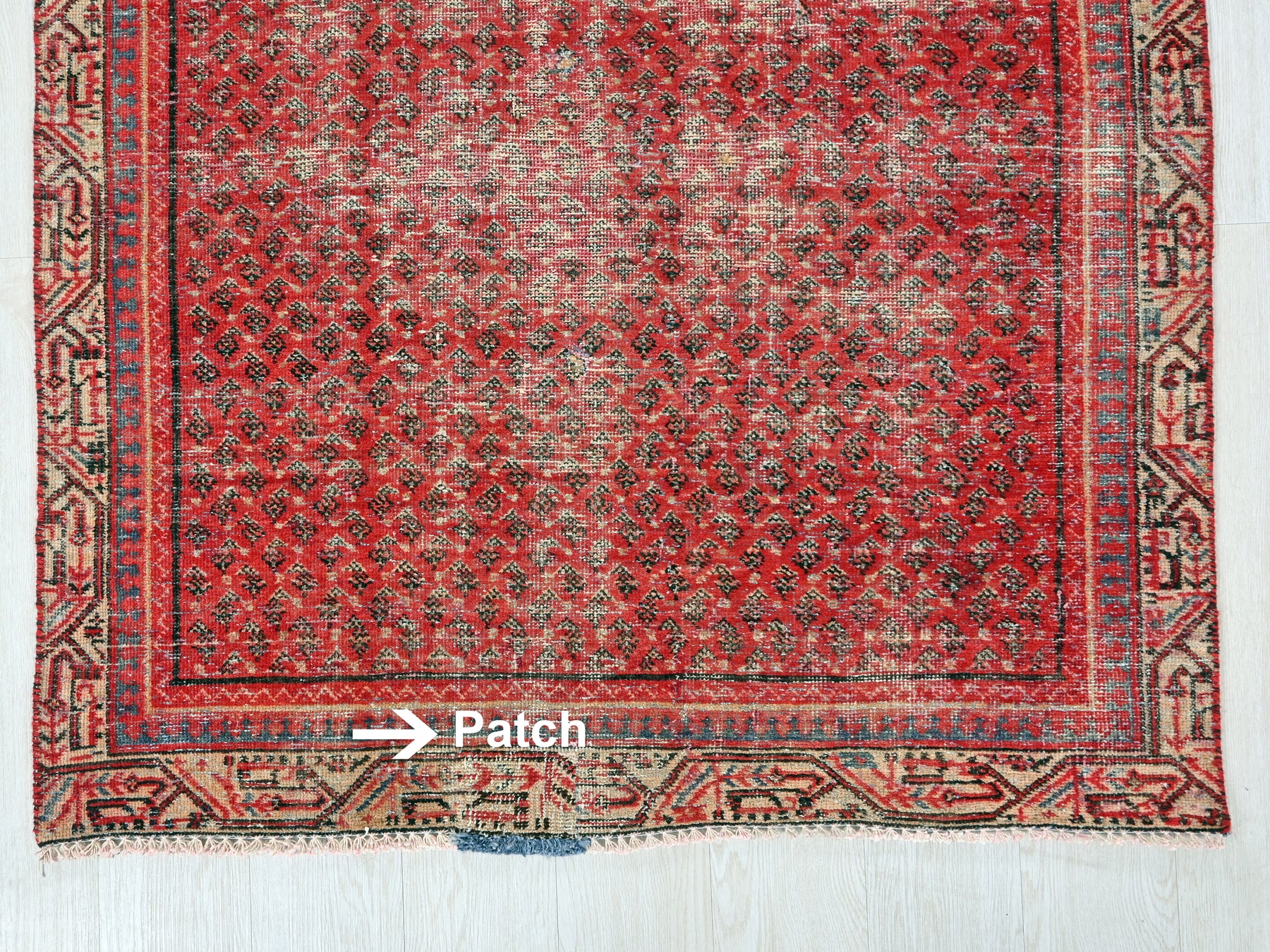 This is a hand-knotted, one-of-a-kind vintage rug. Due to the nature of this piece, there may be slight imperfections in its wear, shape, dimensions, and color. All of our rugs are professionally cleaned and repaired.
