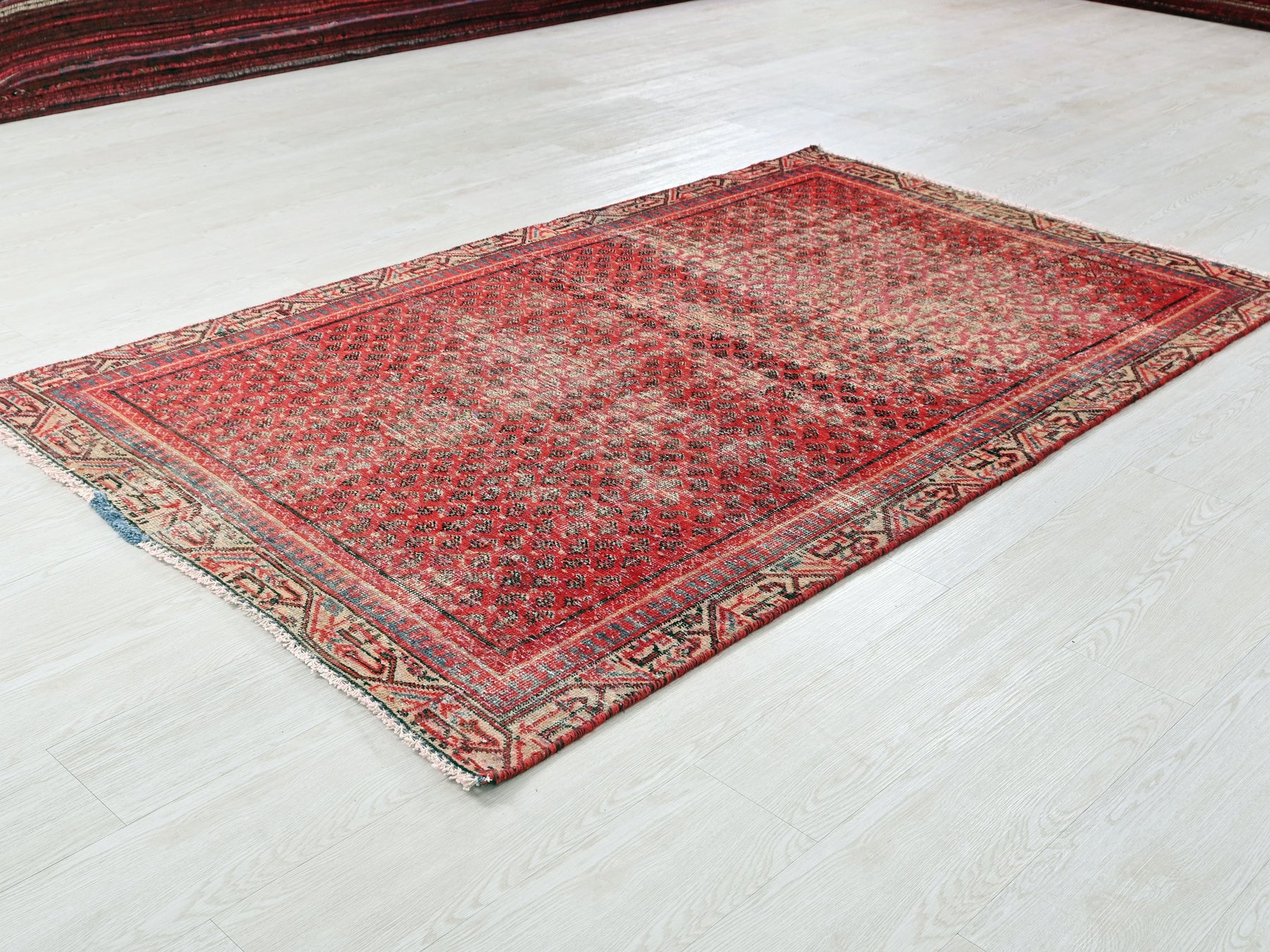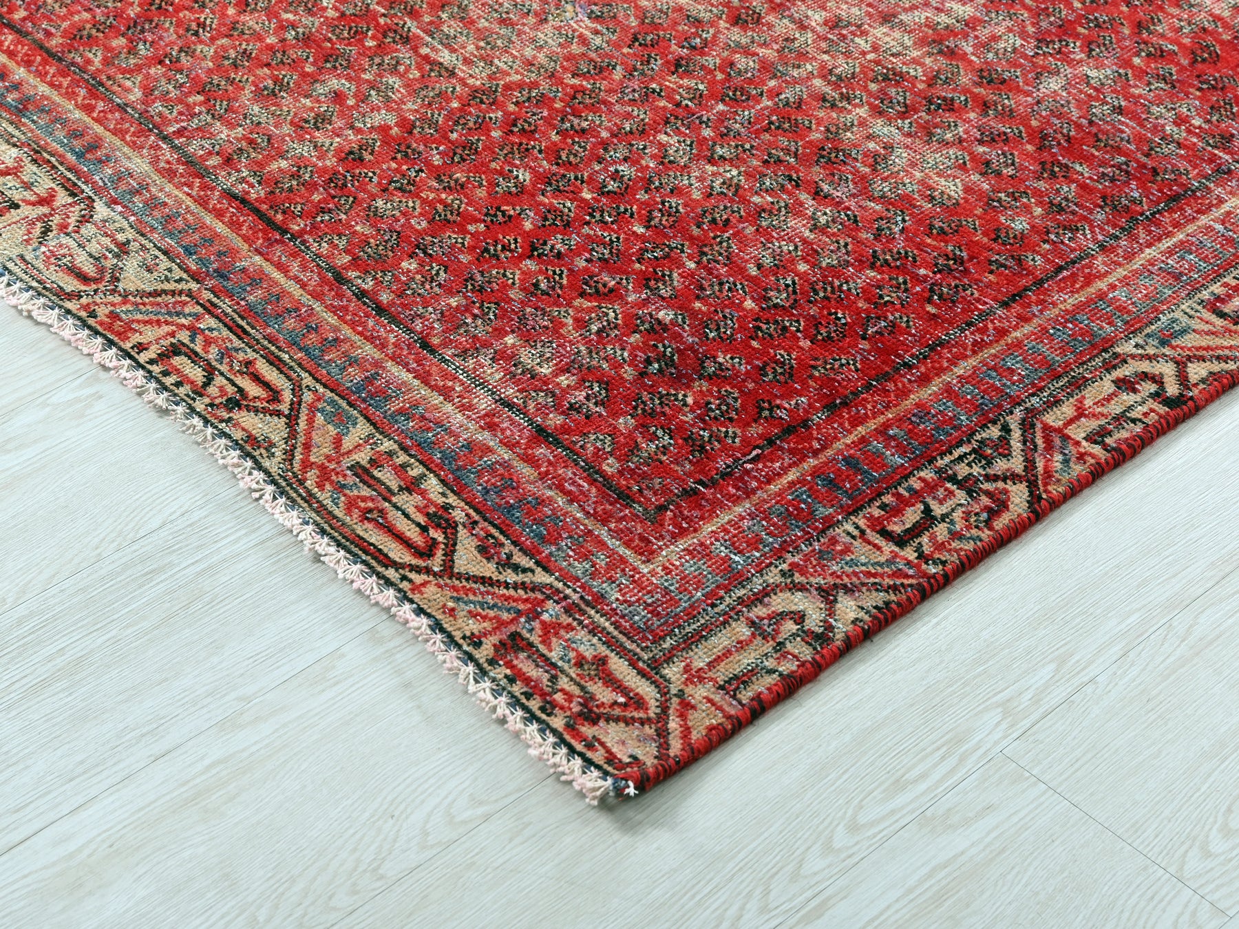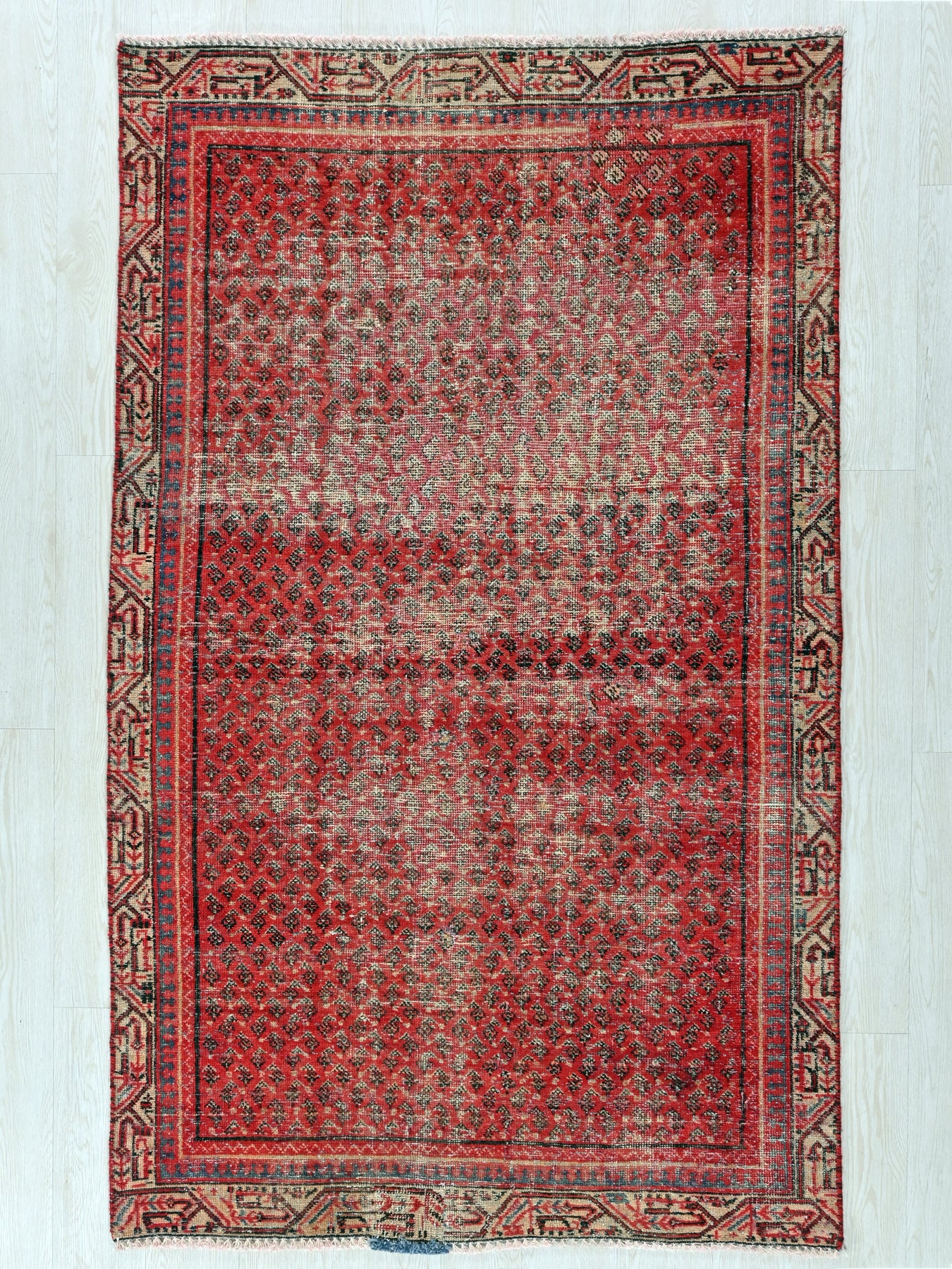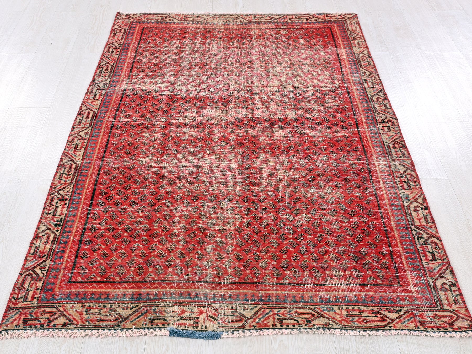 This is a hand-knotted, one-of-a-kind vintage rug. Due to the nature of this piece, there may be slight imperfections in its wear, shape, dimensions, and color. All of our rugs are professionally cleaned and repaired.
