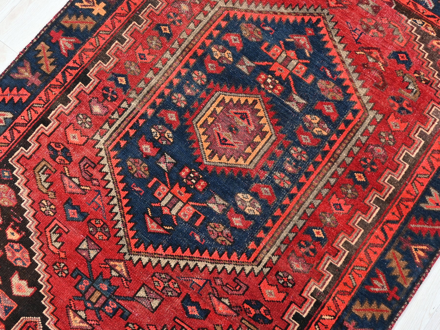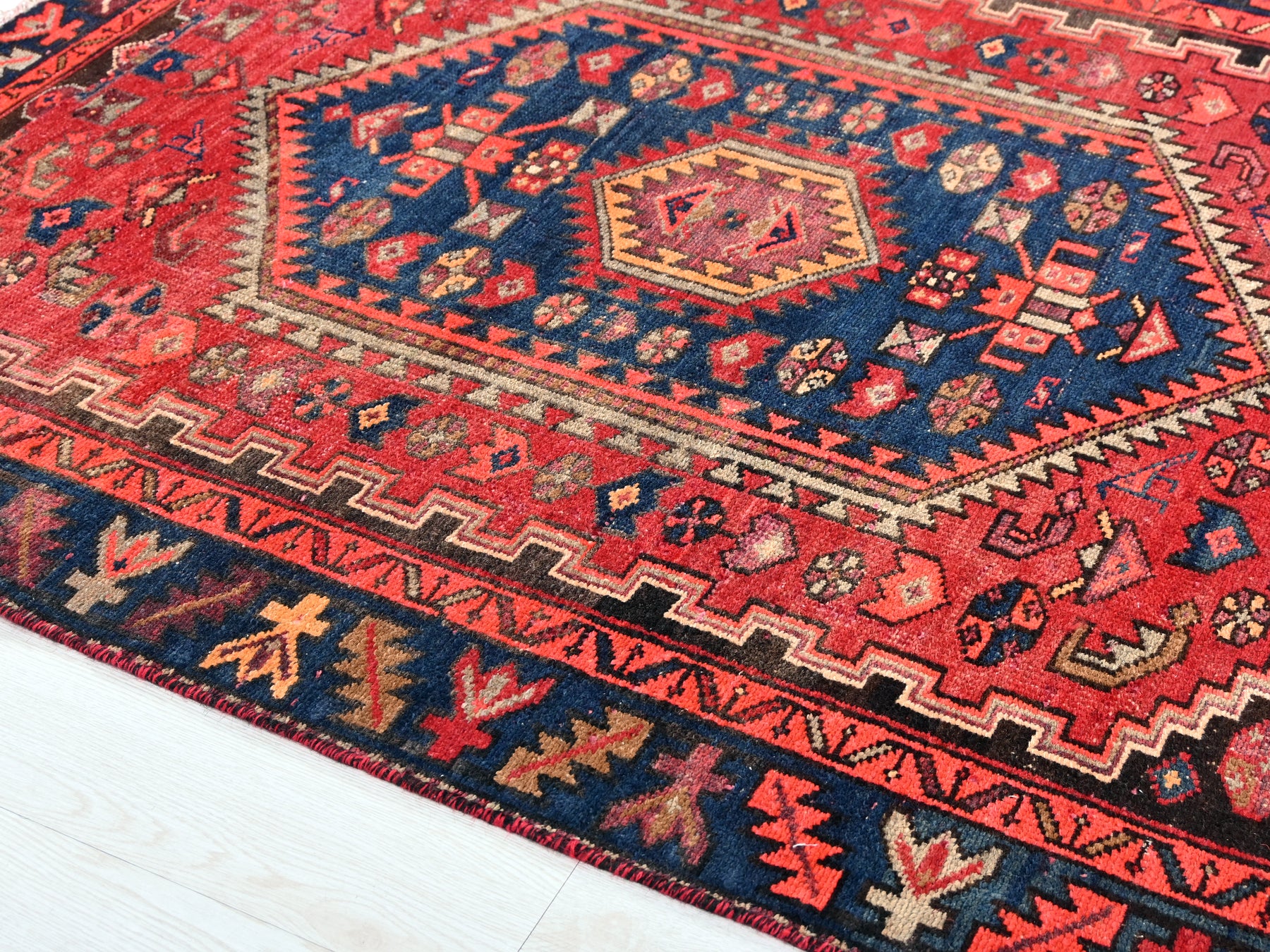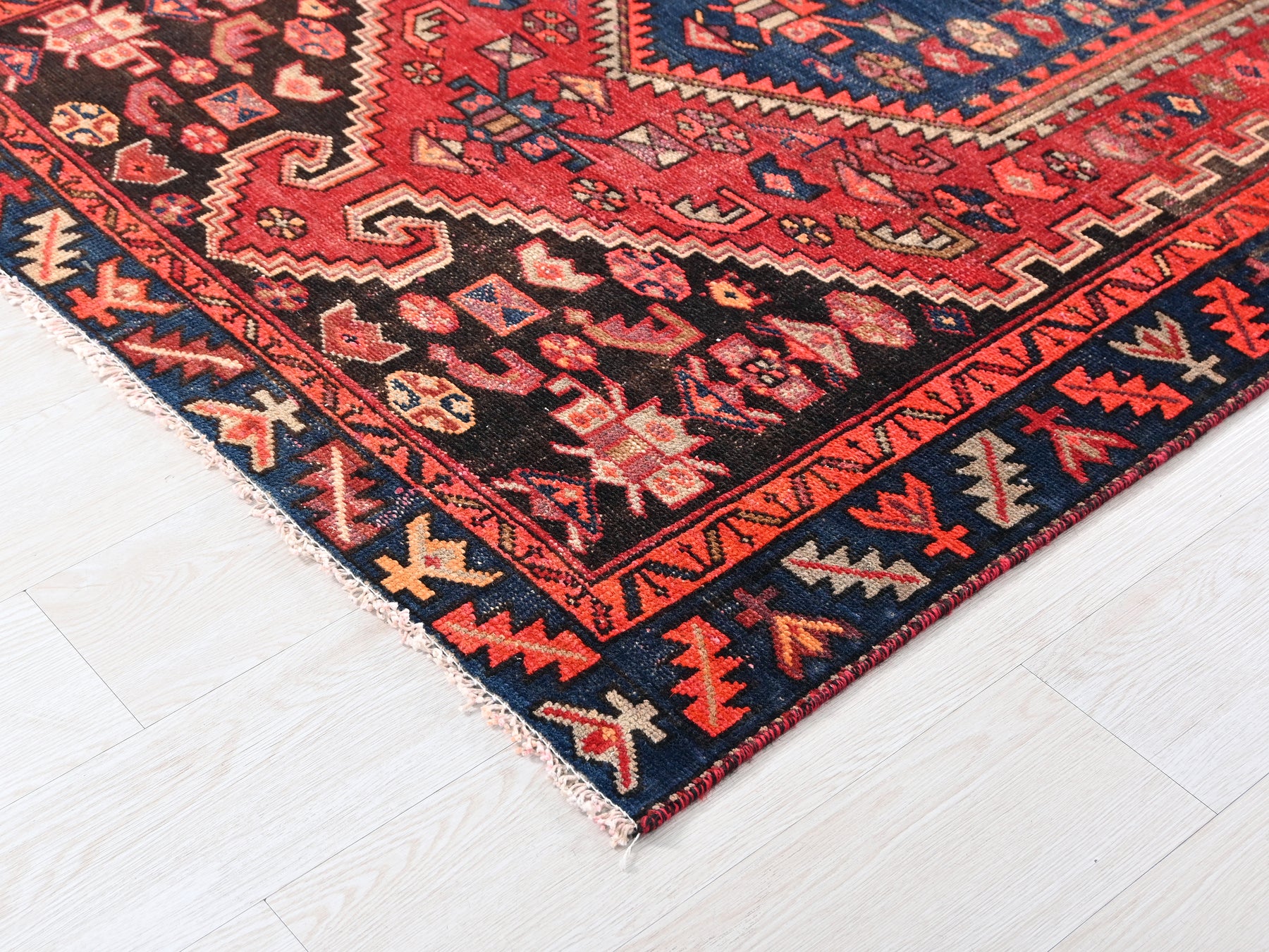 This is a hand-knotted, one-of-a-kind vintage rug. Due to the nature of this piece, there may be slight imperfections in its wear, shape, dimensions, and color. All of our rugs are professionally cleaned and repaired.