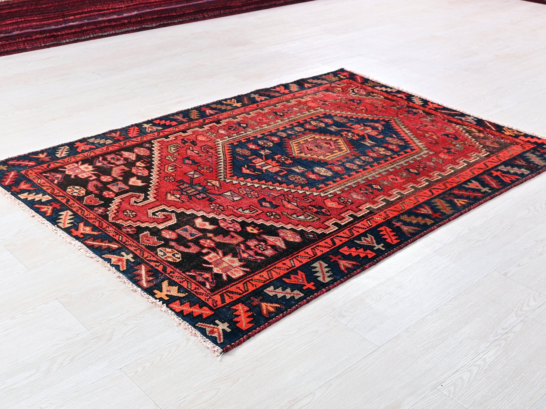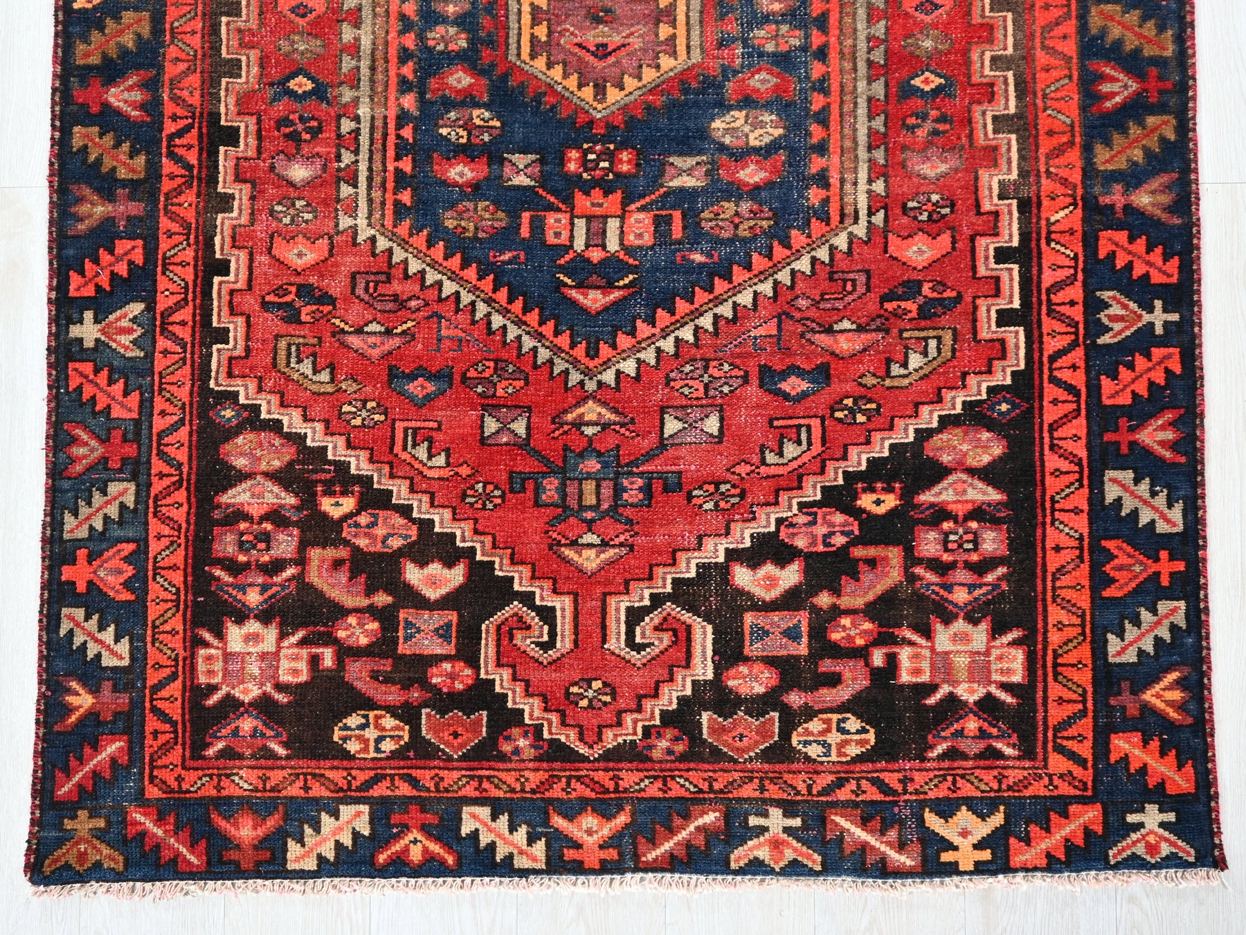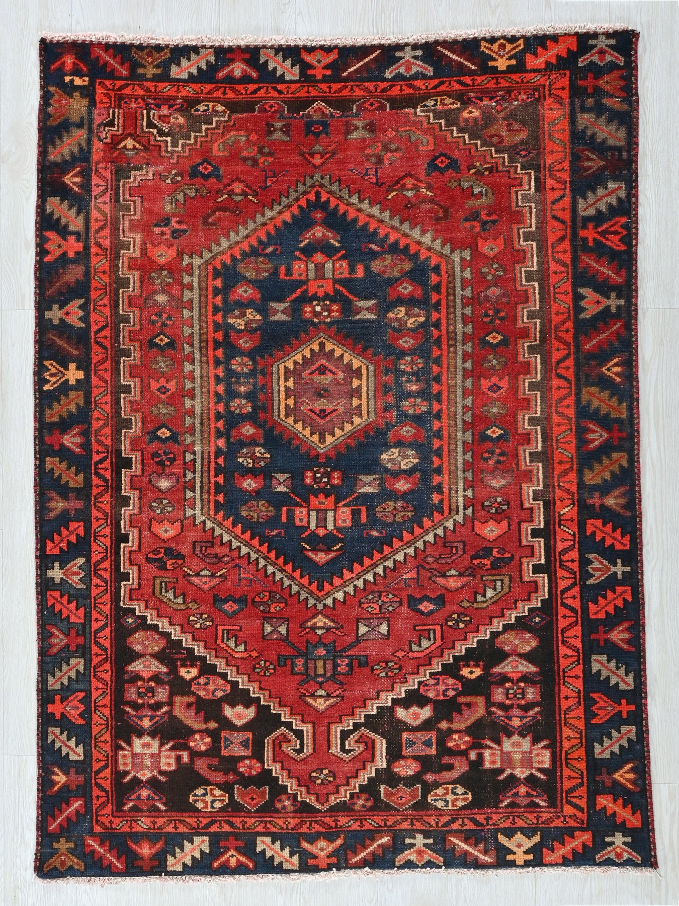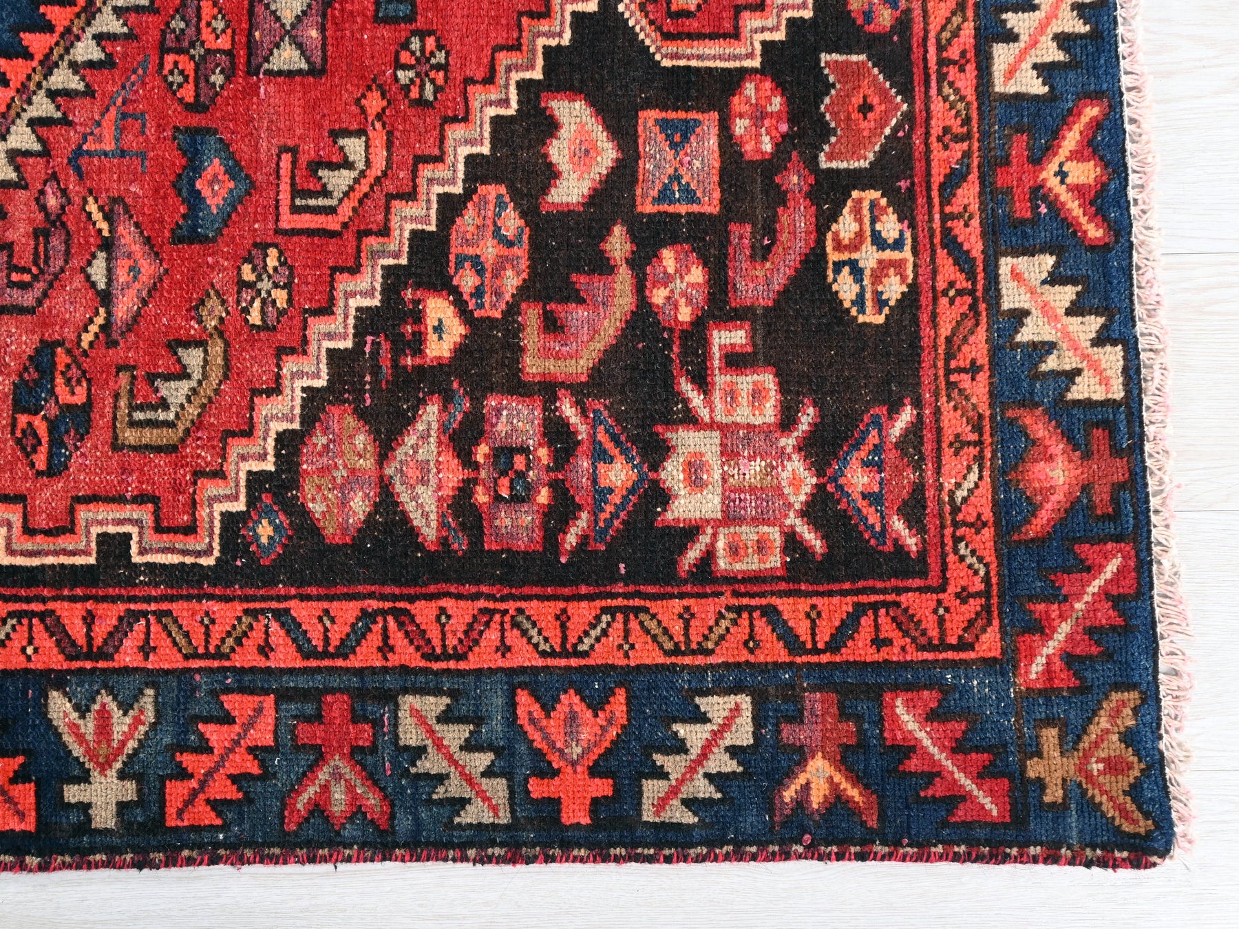 This is a hand-knotted, one-of-a-kind vintage rug. Due to the nature of this piece, there may be slight imperfections in its wear, shape, dimensions, and color. All of our rugs are professionally cleaned and repaired.