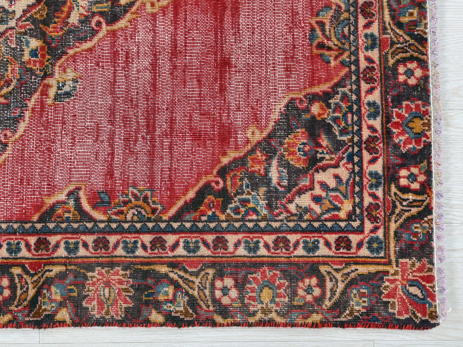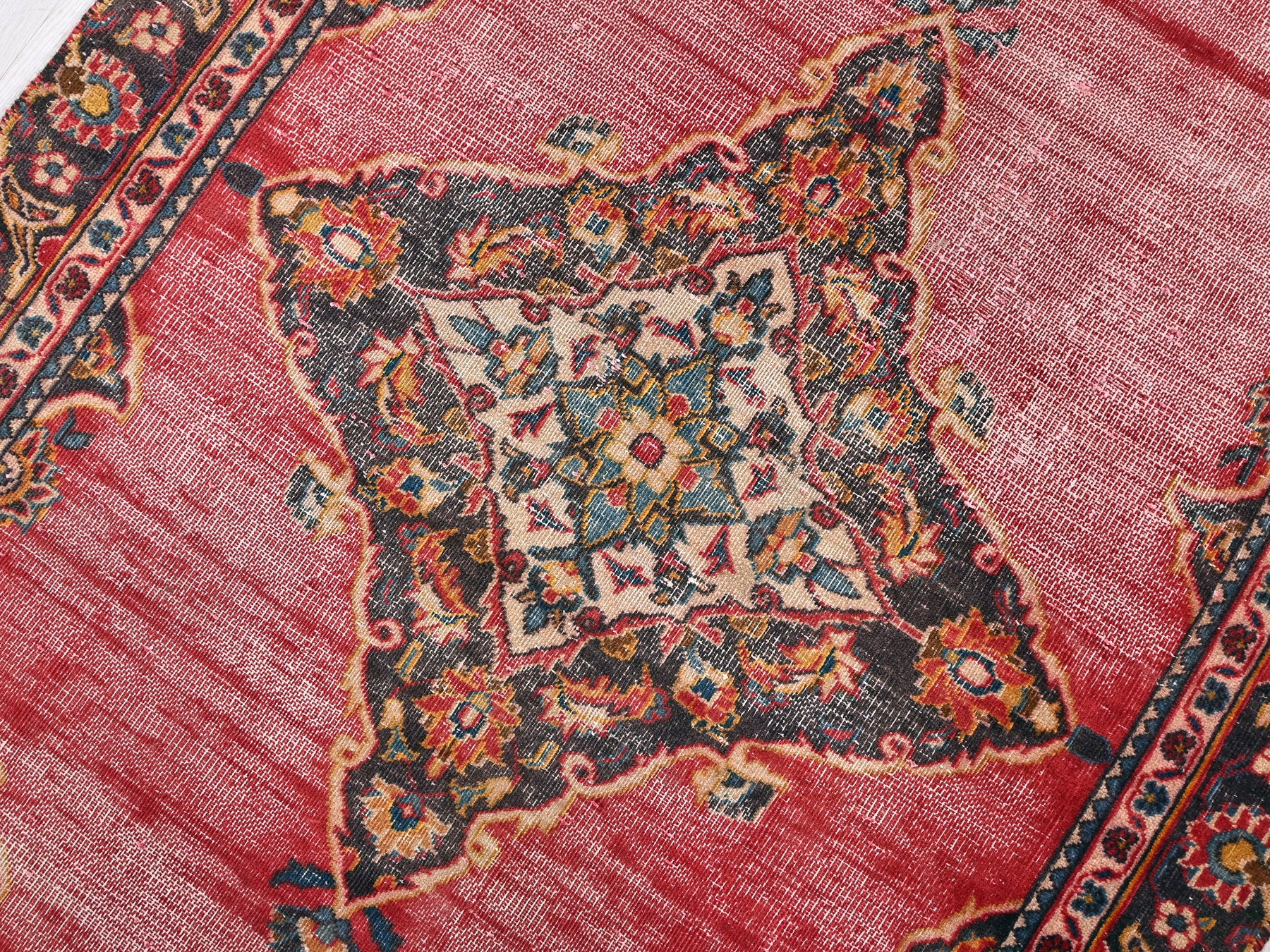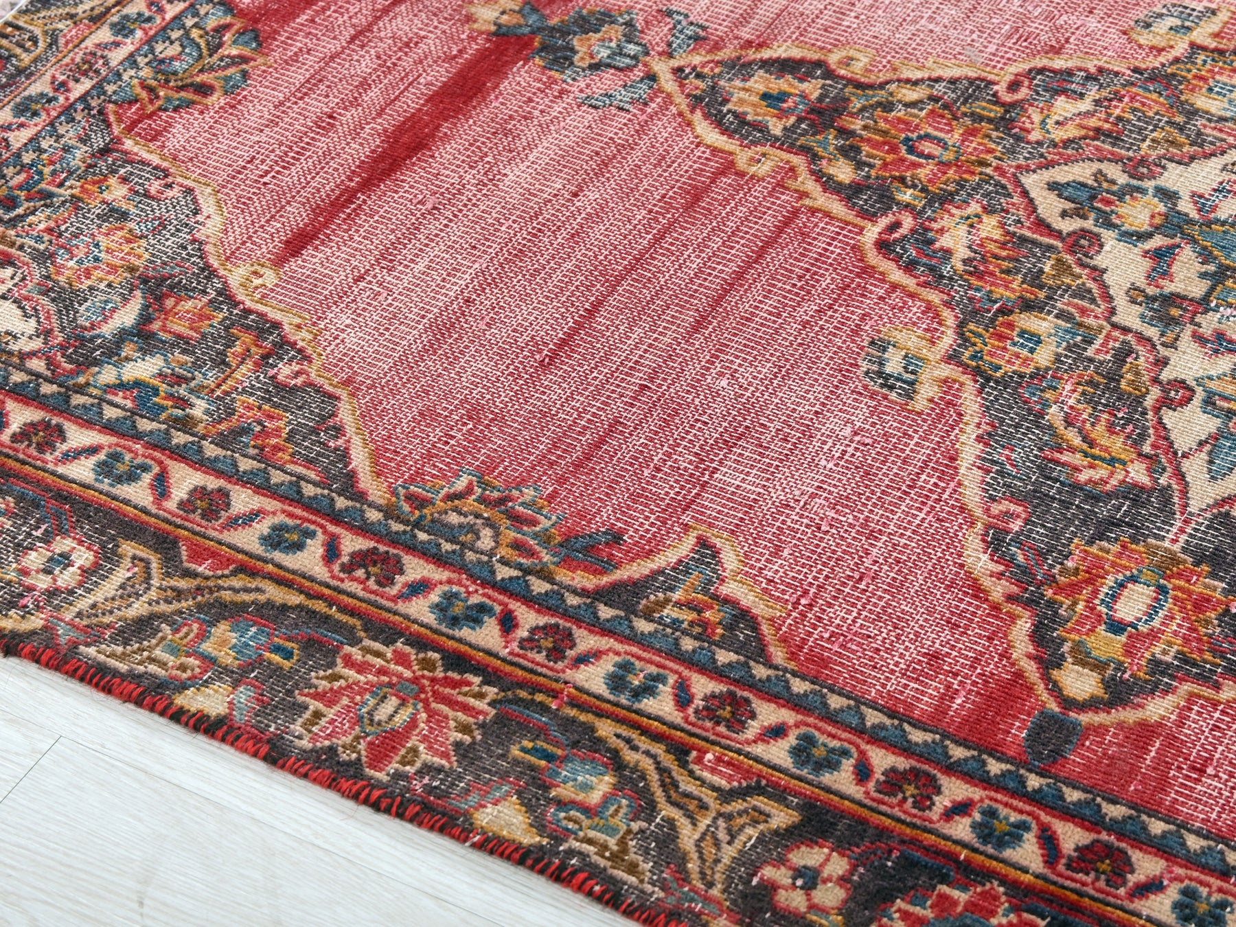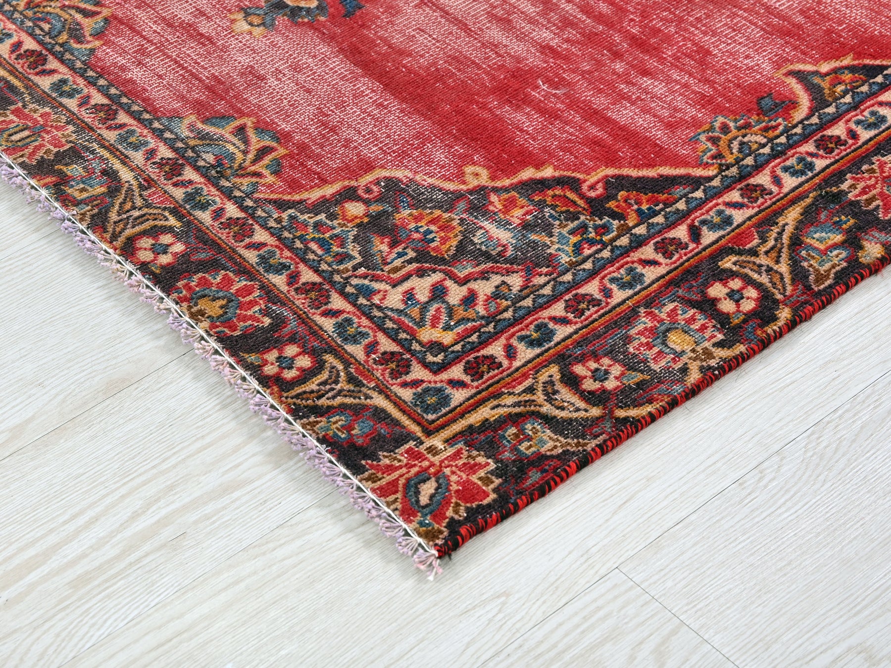 This is a hand-knotted, one-of-a-kind vintage rug. Due to the nature of this piece, there may be slight imperfections in its wear, shape, dimensions, and color. All of our rugs are professionally cleaned and repaired.