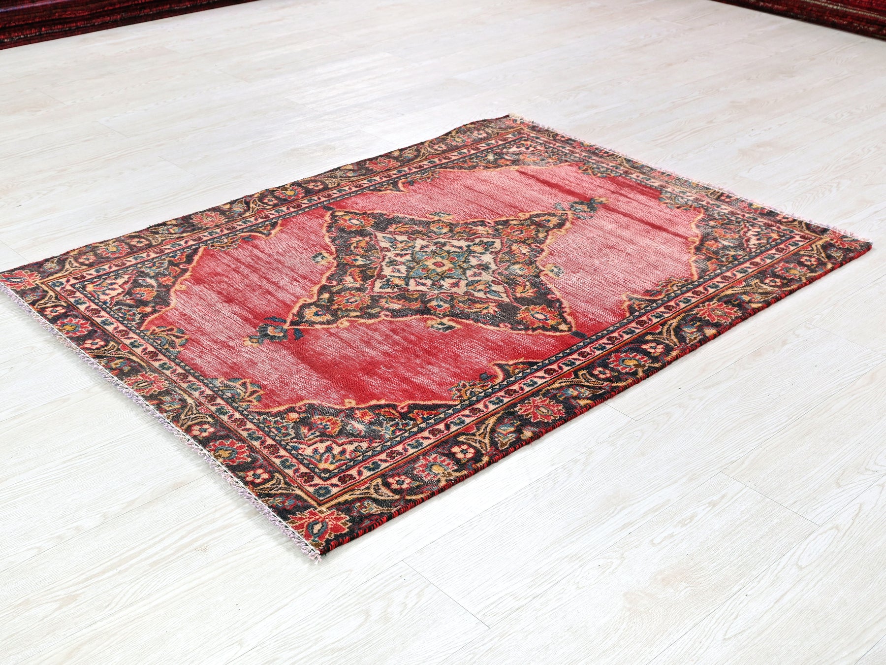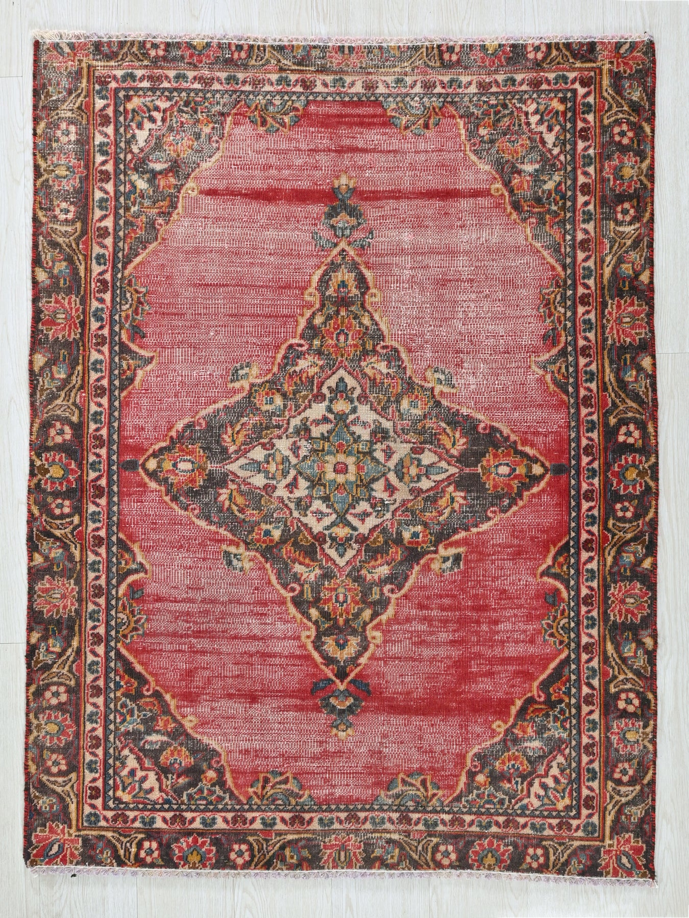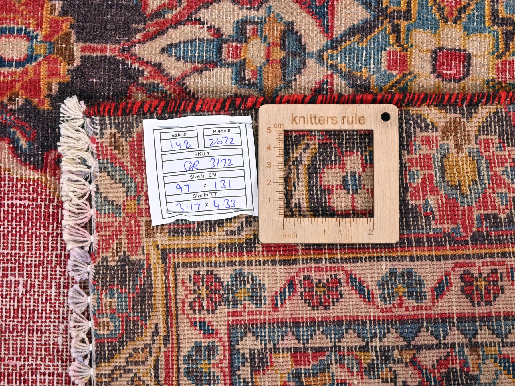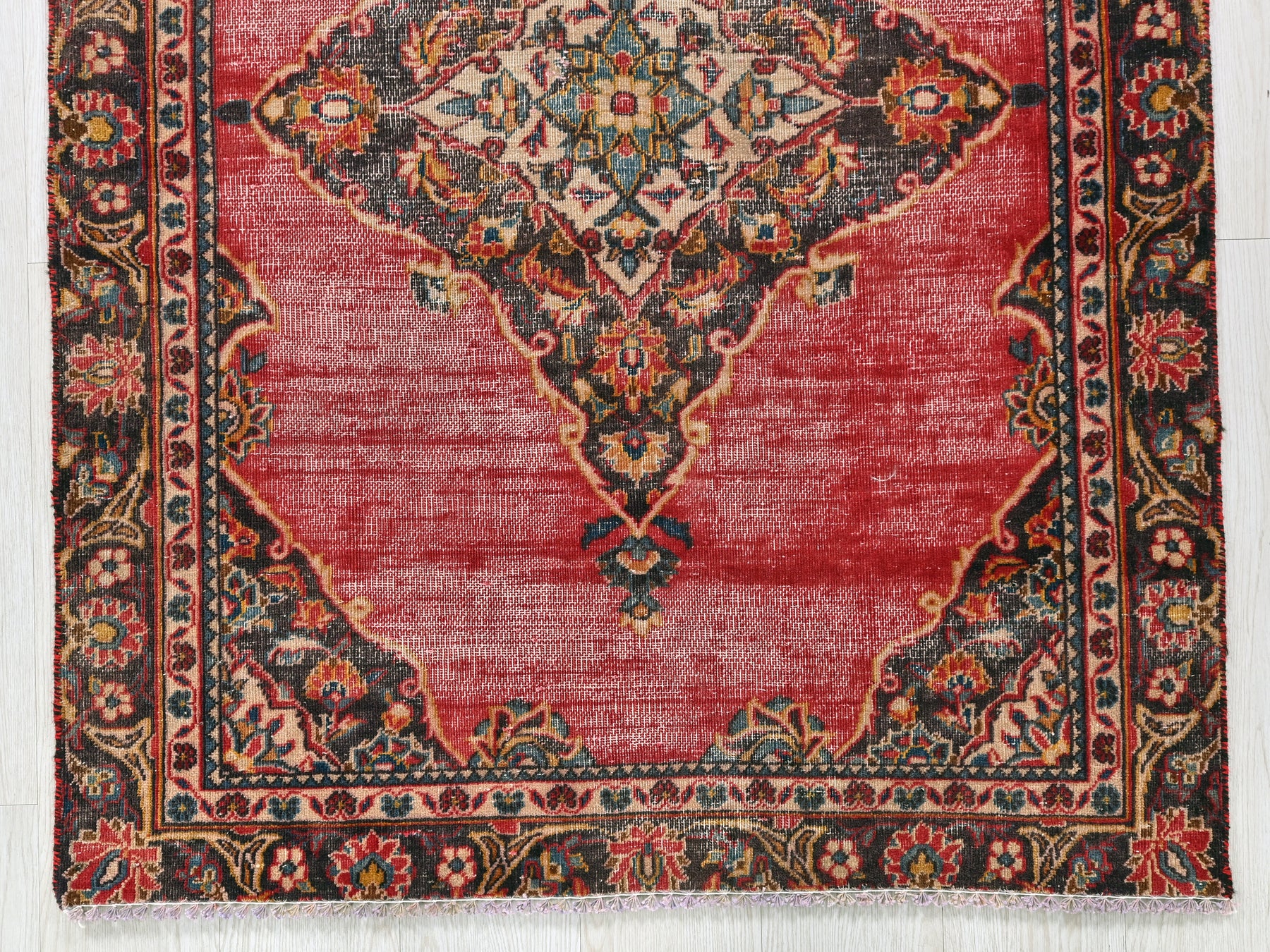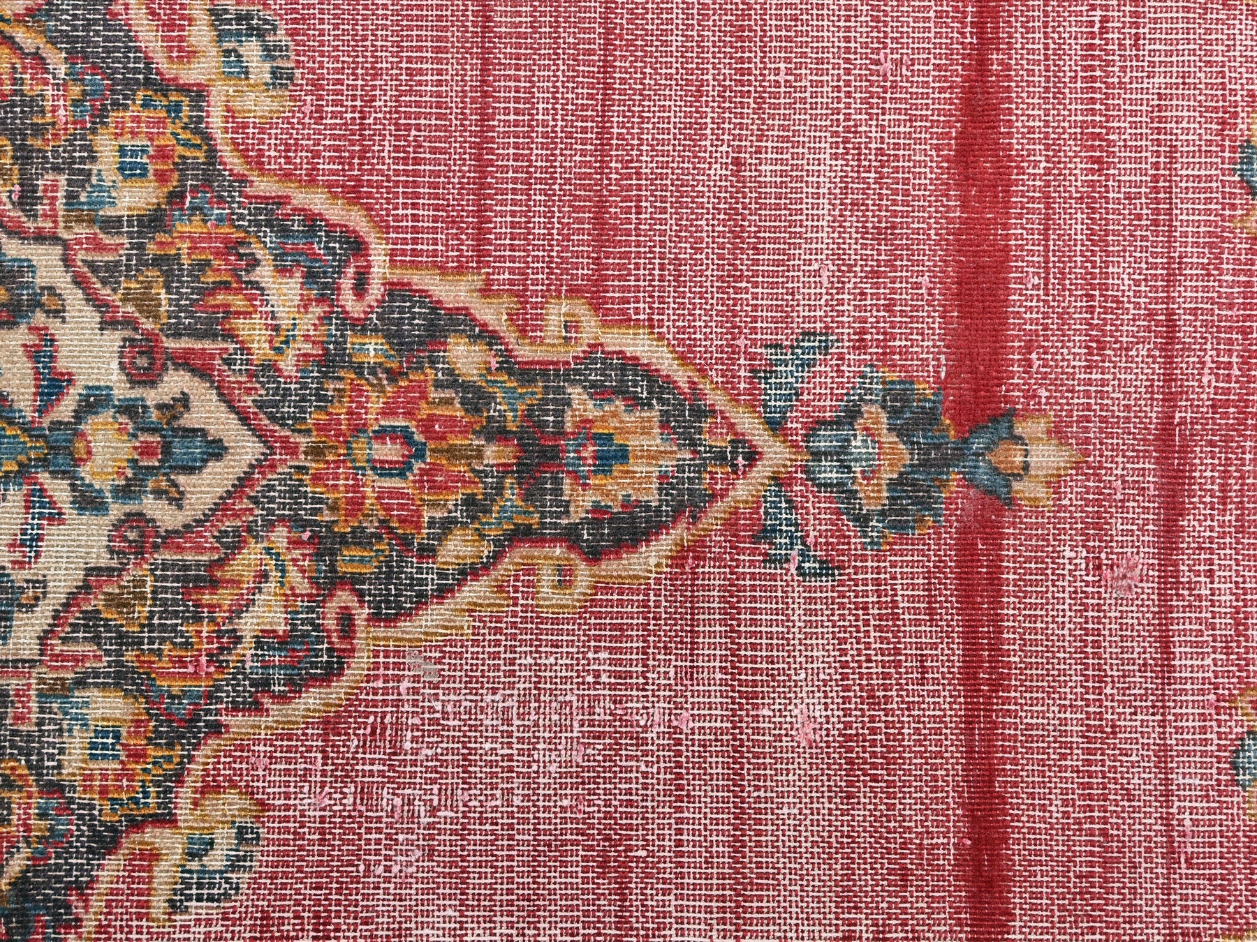 This is a hand-knotted, one-of-a-kind vintage rug. Due to the nature of this piece, there may be slight imperfections in its wear, shape, dimensions, and color. All of our rugs are professionally cleaned and repaired.