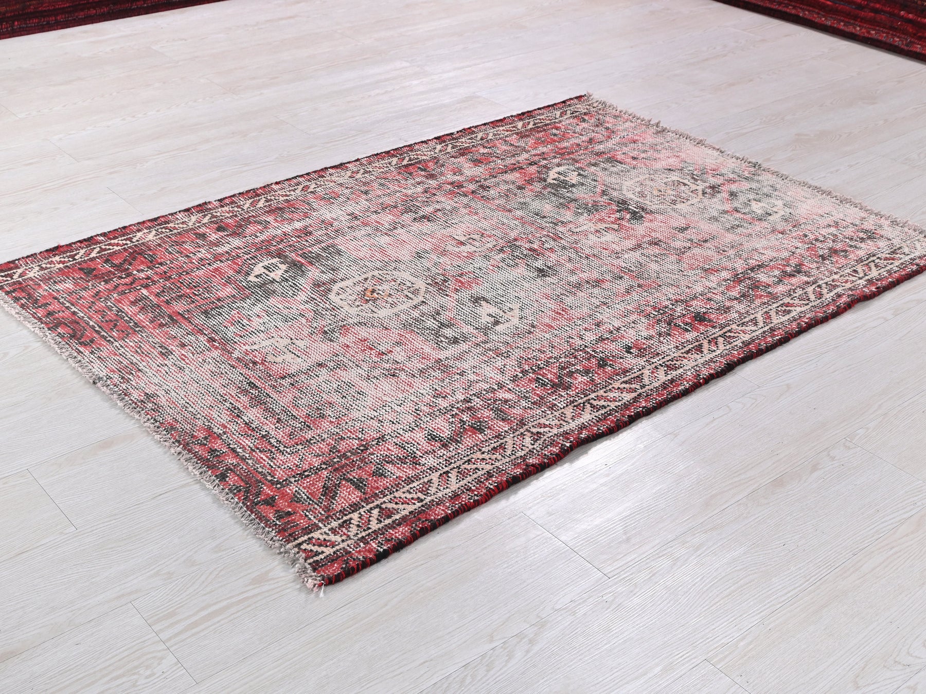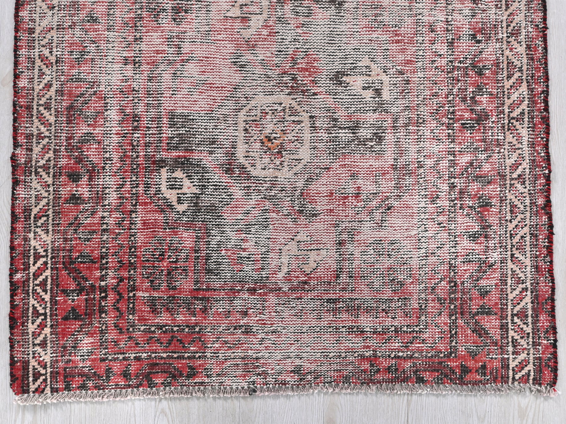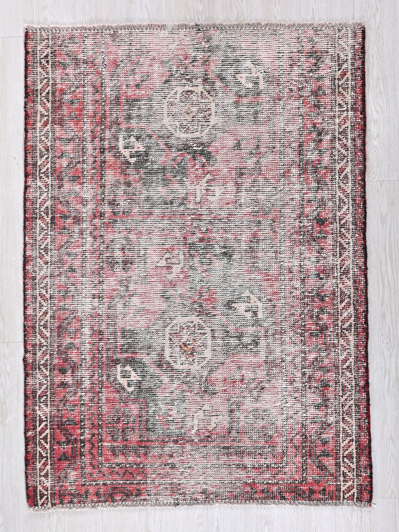 This is a hand-knotted, one-of-a-kind vintage rug. Due to the nature of this piece, there may be slight imperfections in its wear, shape, dimensions, and color. All of our rugs are professionally cleaned and repaired.