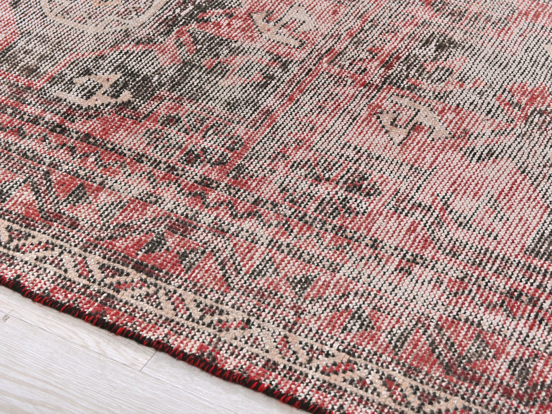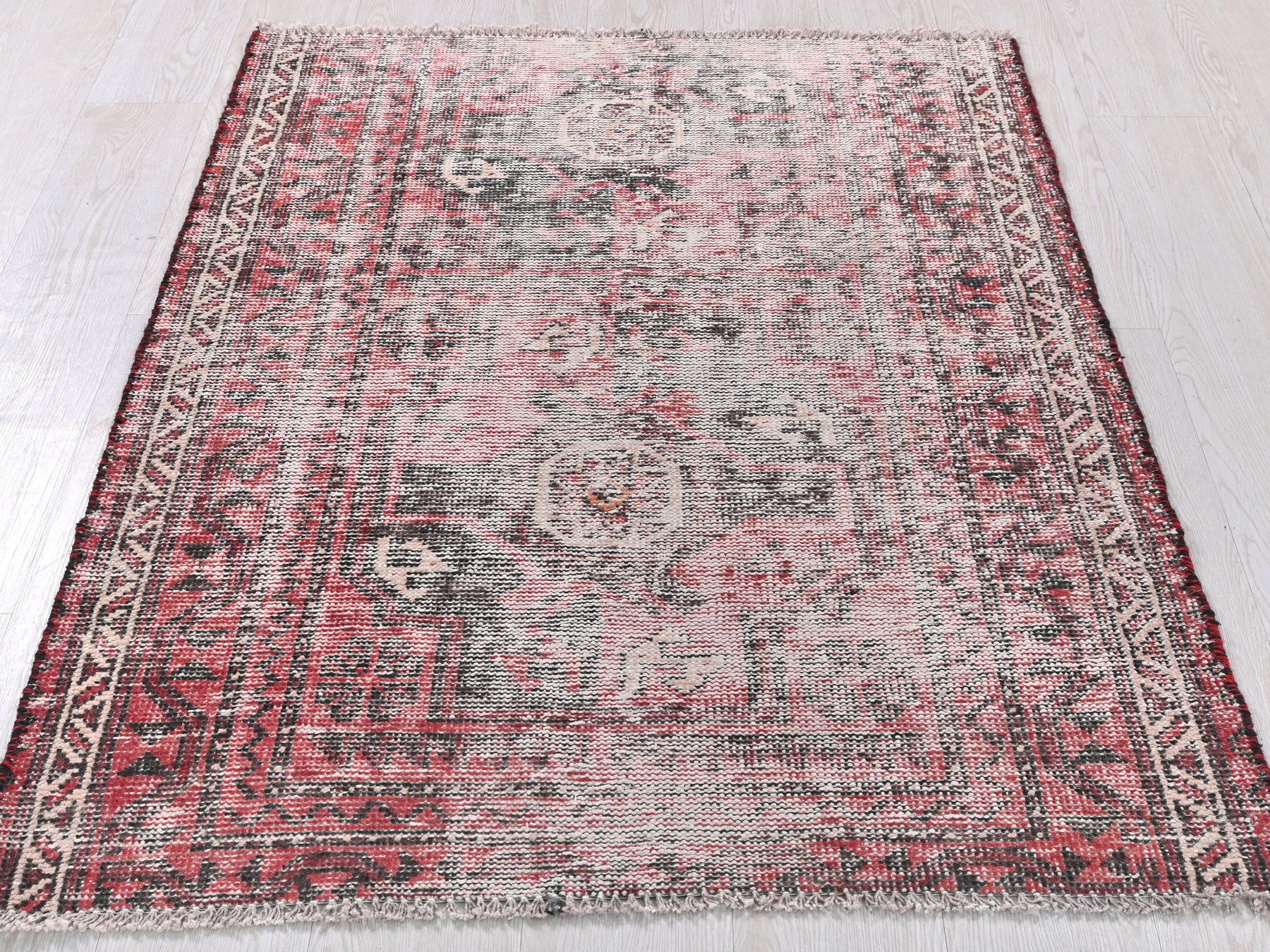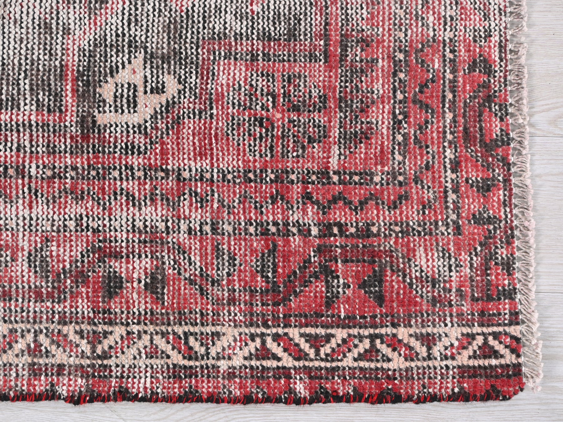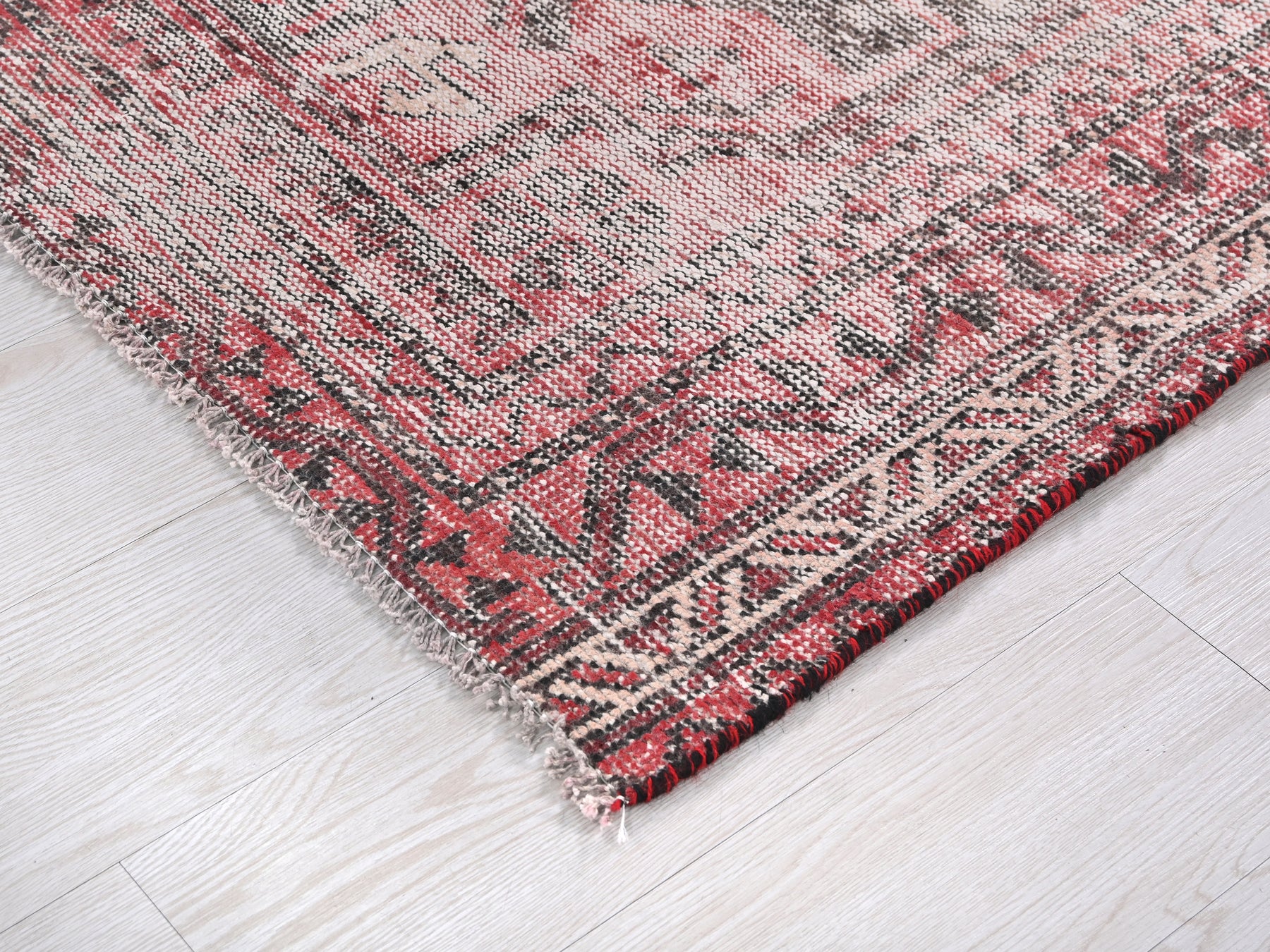 This is a hand-knotted, one-of-a-kind vintage rug. Due to the nature of this piece, there may be slight imperfections in its wear, shape, dimensions, and color. All of our rugs are professionally cleaned and repaired.