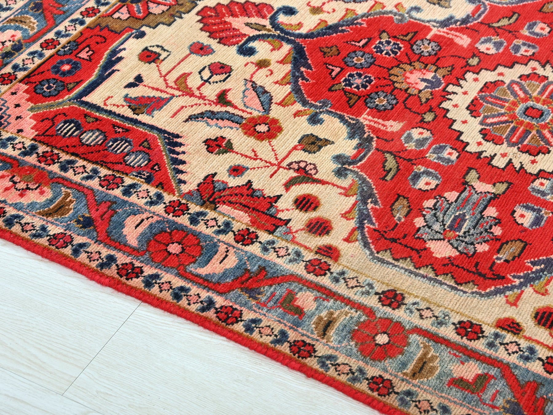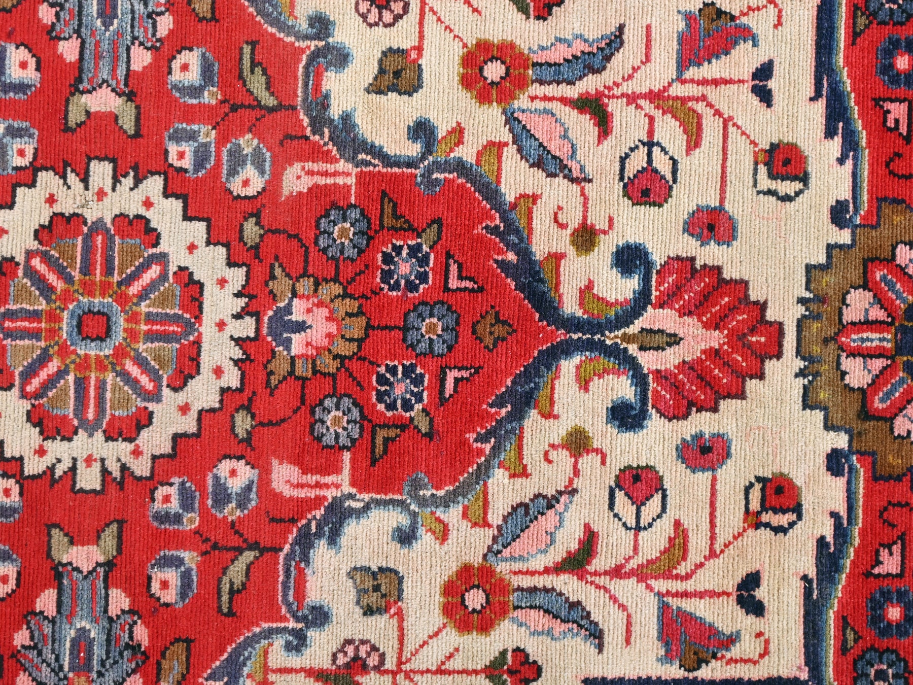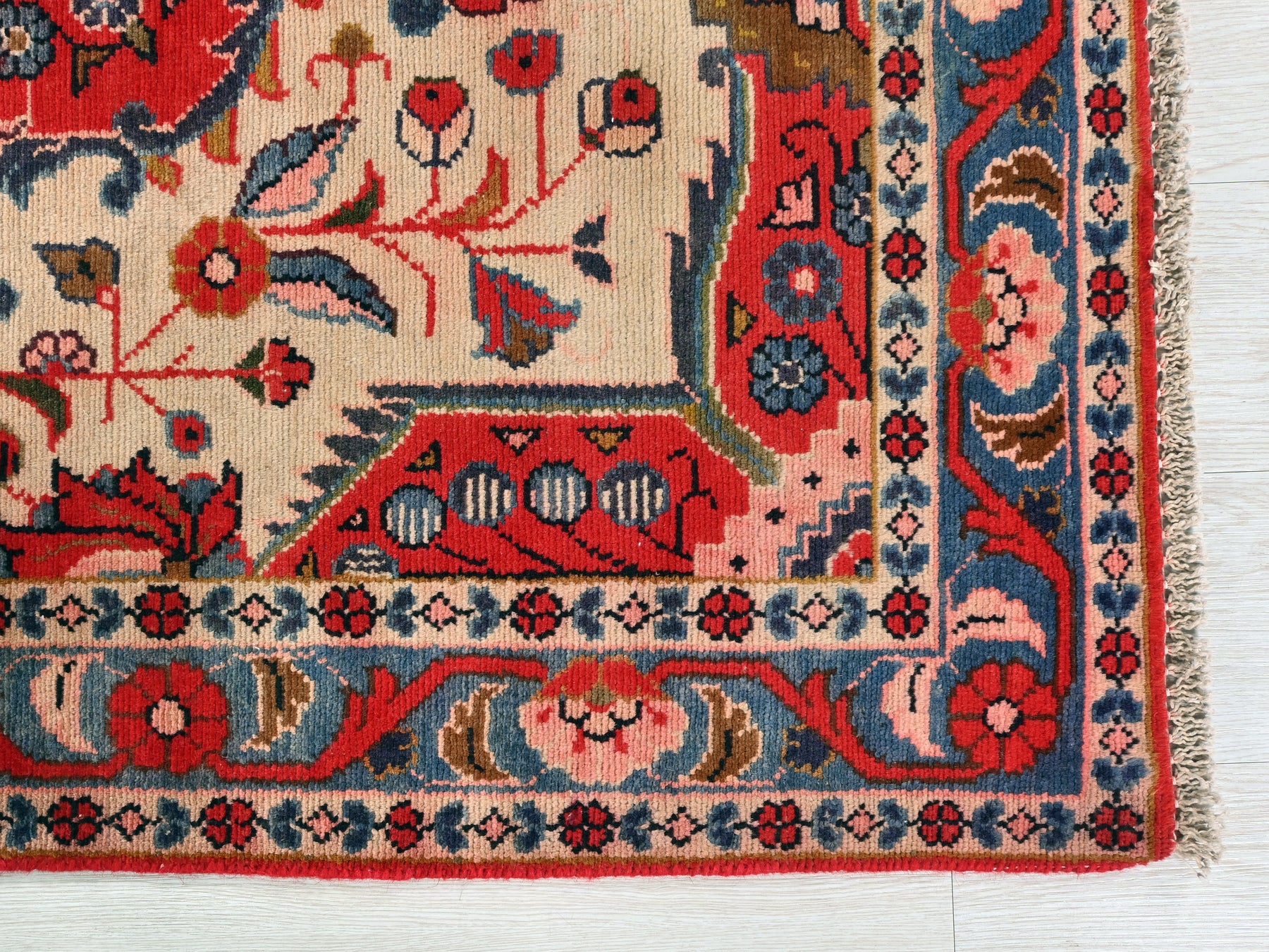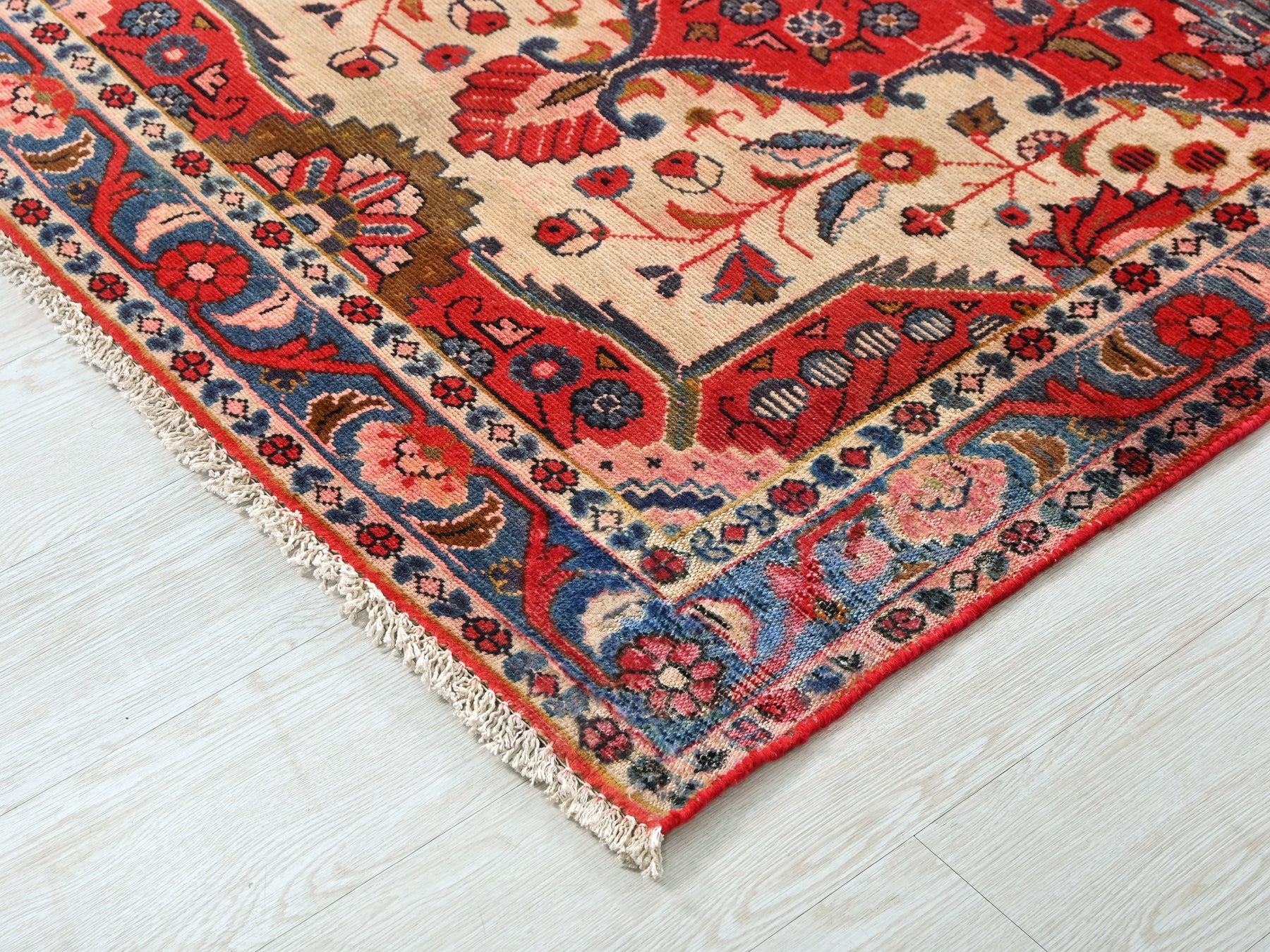 This is a hand-knotted, one-of-a-kind vintage rug. Due to the nature of this piece, there may be slight imperfections in its wear, shape, dimensions, and color. All of our rugs are professionally cleaned and repaired.