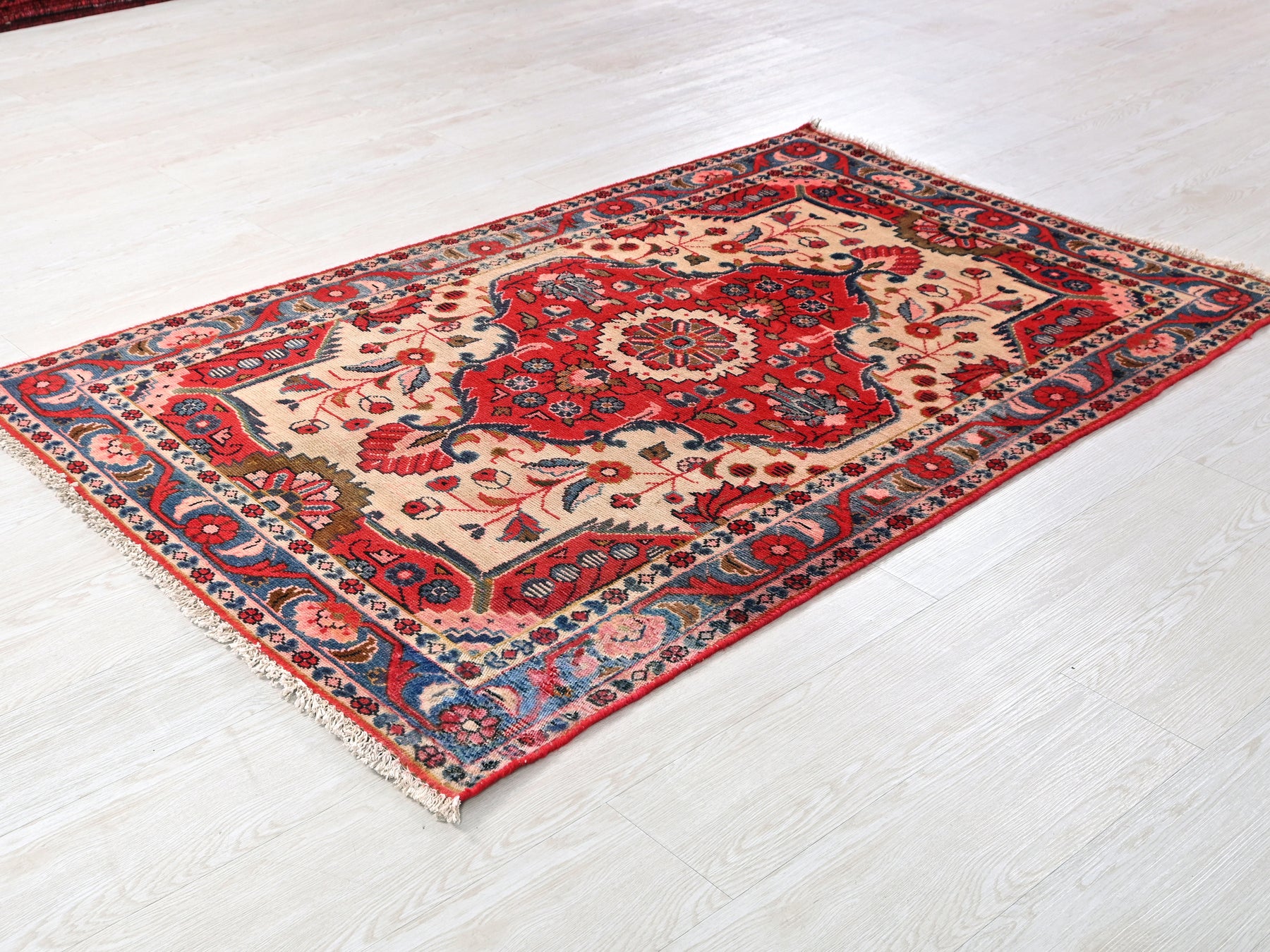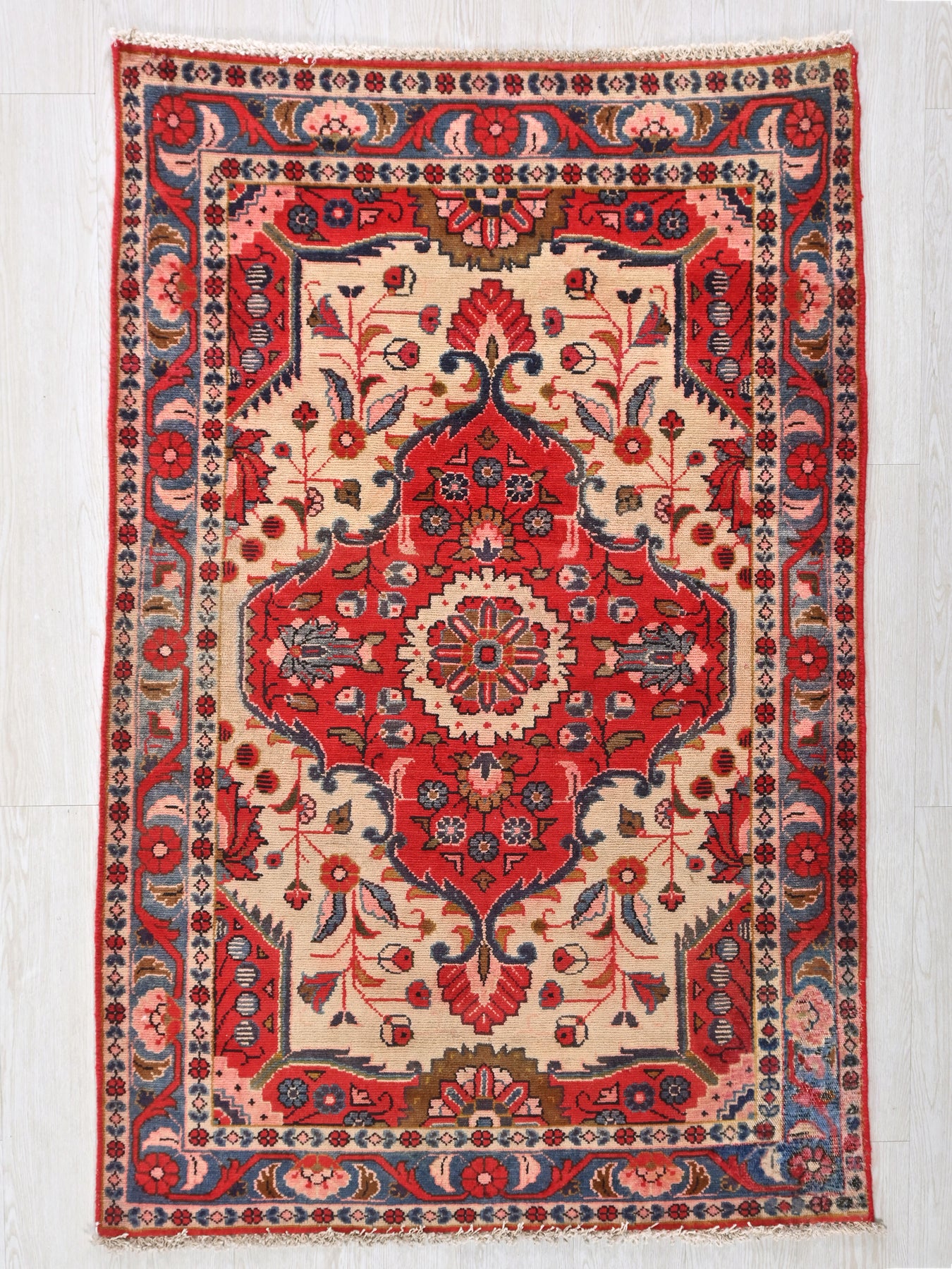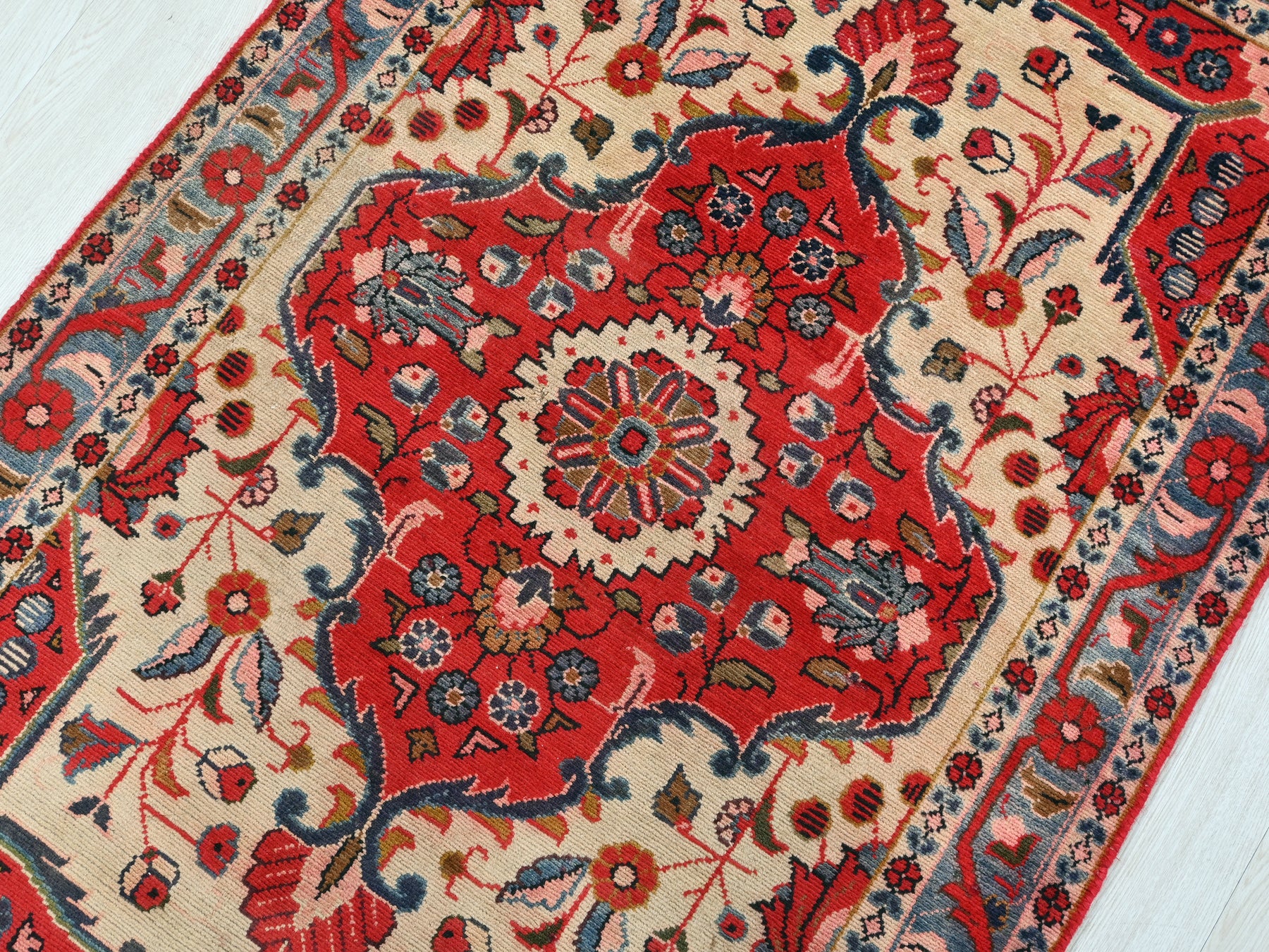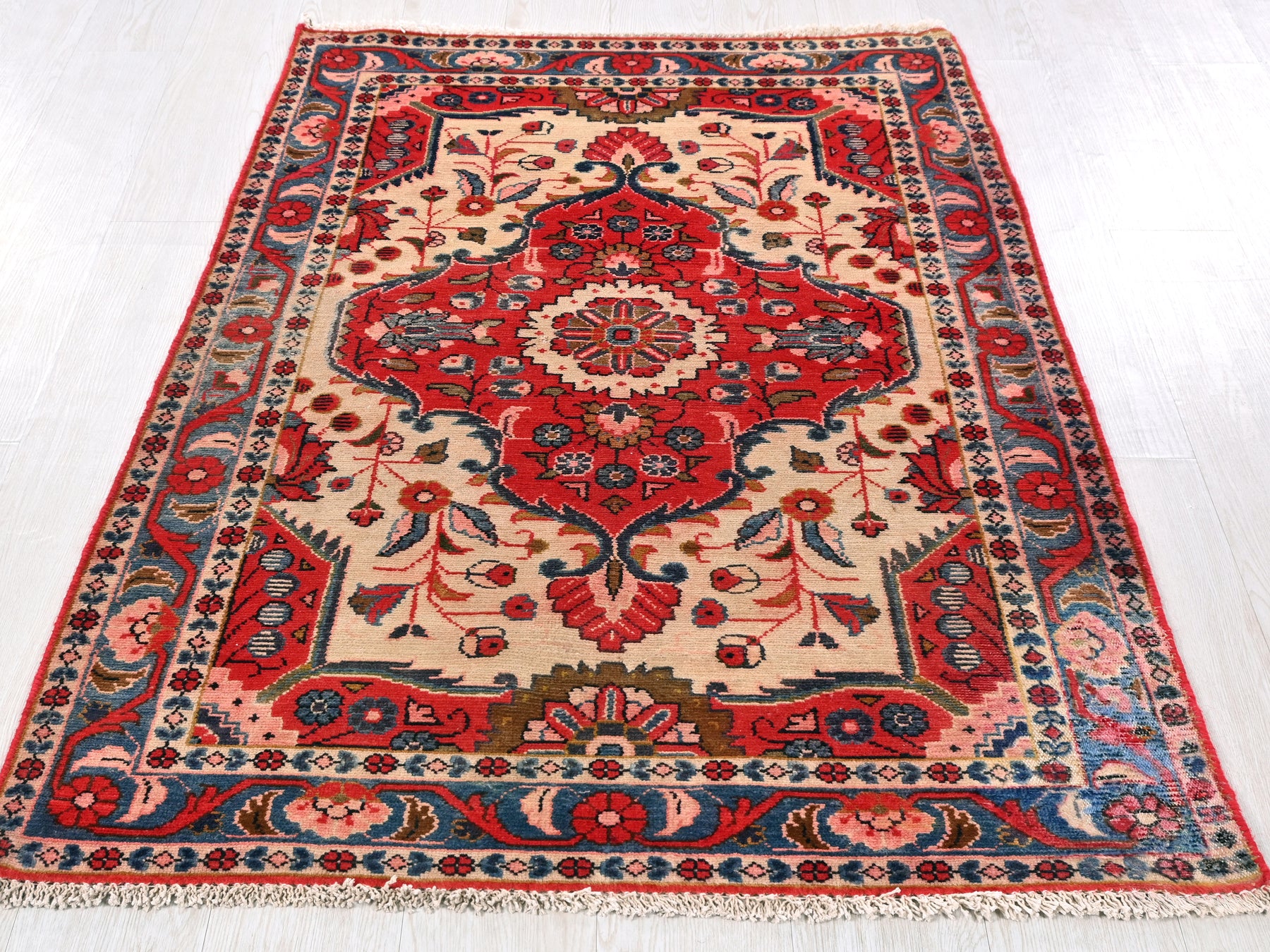 This is a hand-knotted, one-of-a-kind vintage rug. Due to the nature of this piece, there may be slight imperfections in its wear, shape, dimensions, and color. All of our rugs are professionally cleaned and repaired.