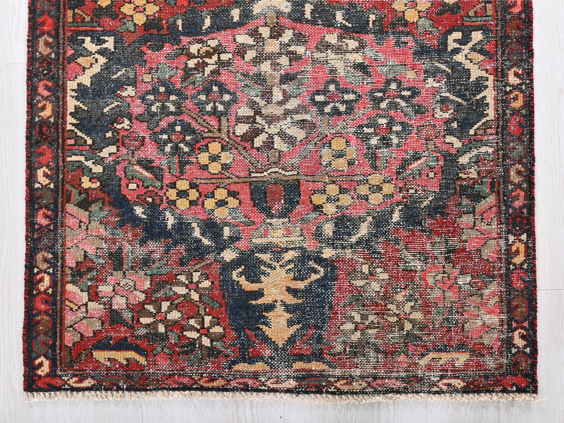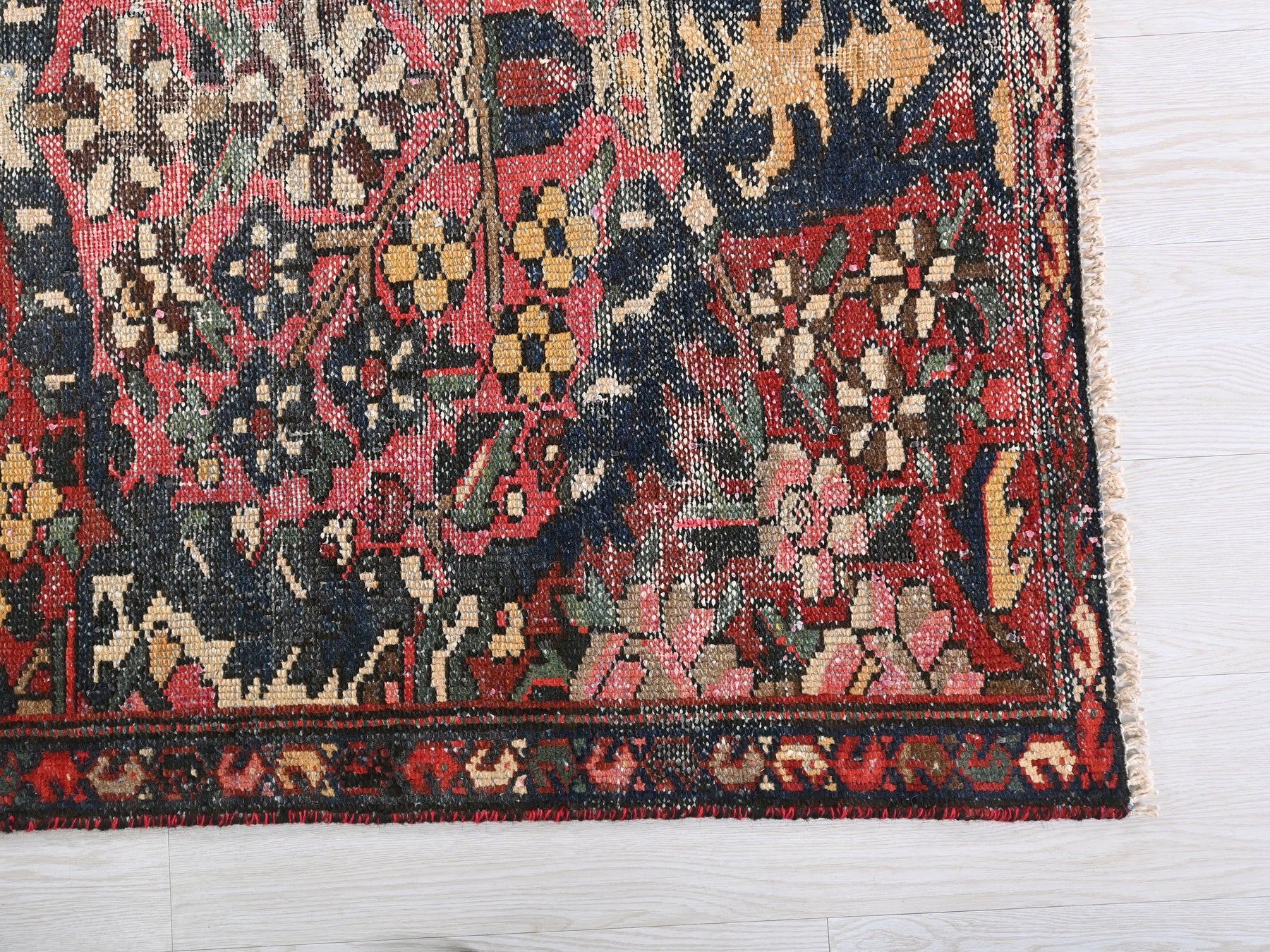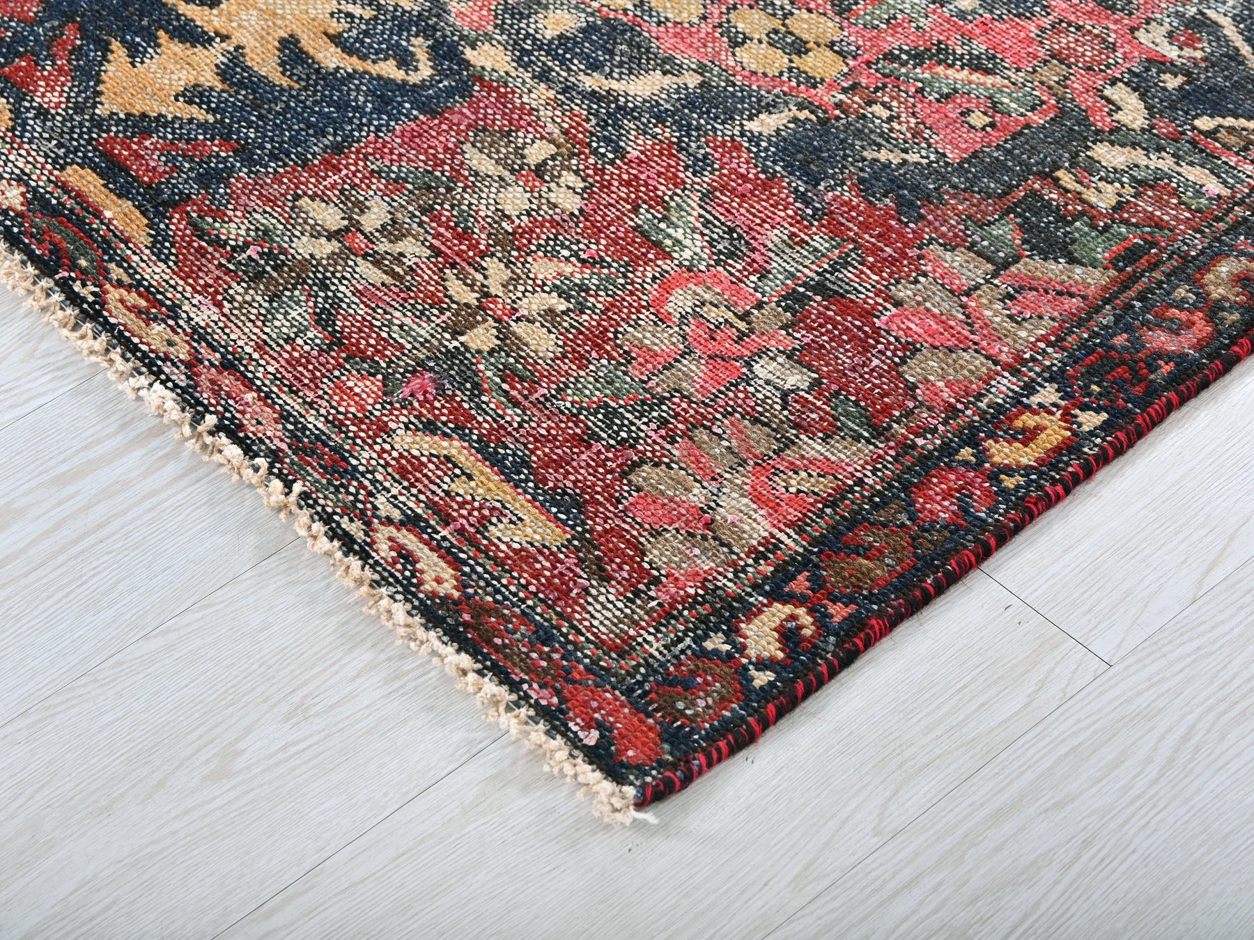 This is a hand-knotted, one-of-a-kind vintage rug. Due to the nature of this piece, there may be slight imperfections in its wear, shape, dimensions, and color. All of our rugs are professionally cleaned and repaired.
