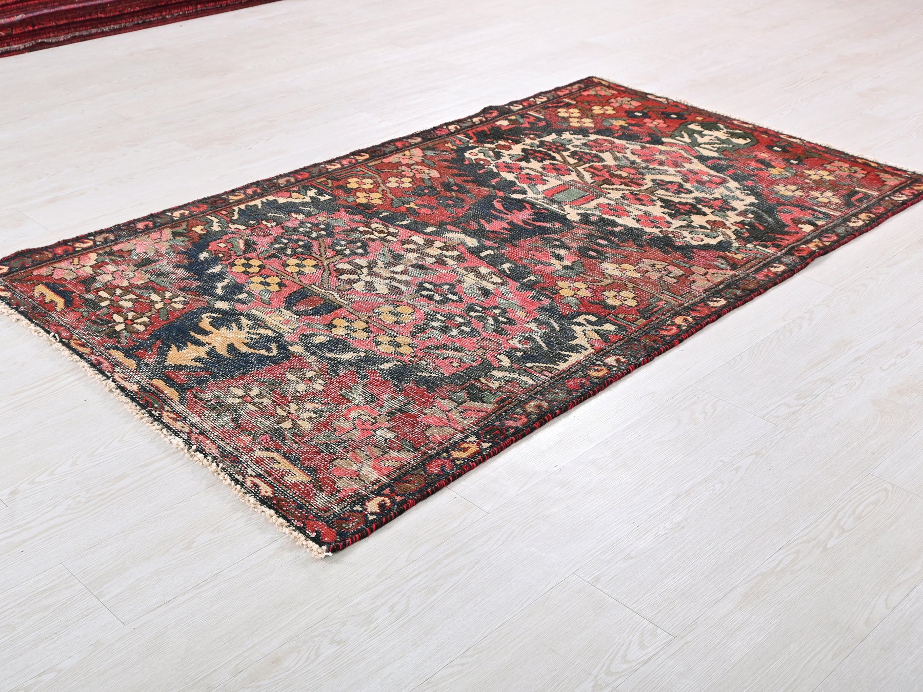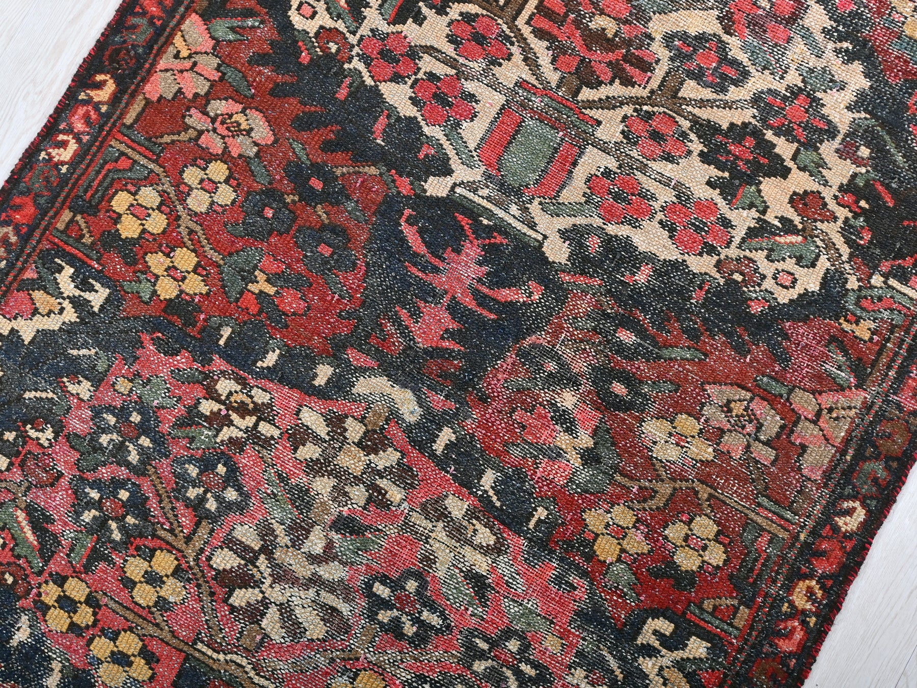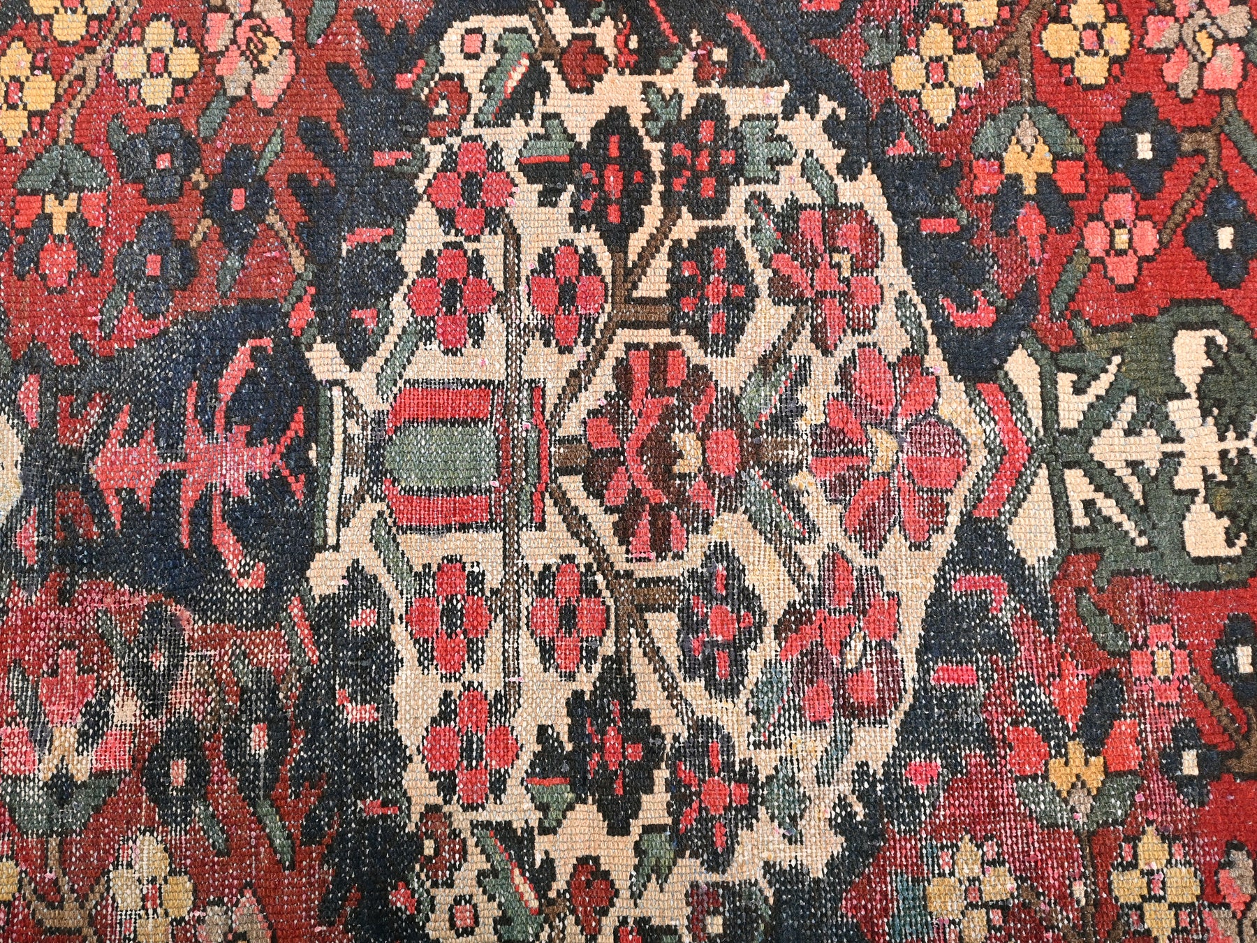 This is a hand-knotted, one-of-a-kind vintage rug. Due to the nature of this piece, there may be slight imperfections in its wear, shape, dimensions, and color. All of our rugs are professionally cleaned and repaired.