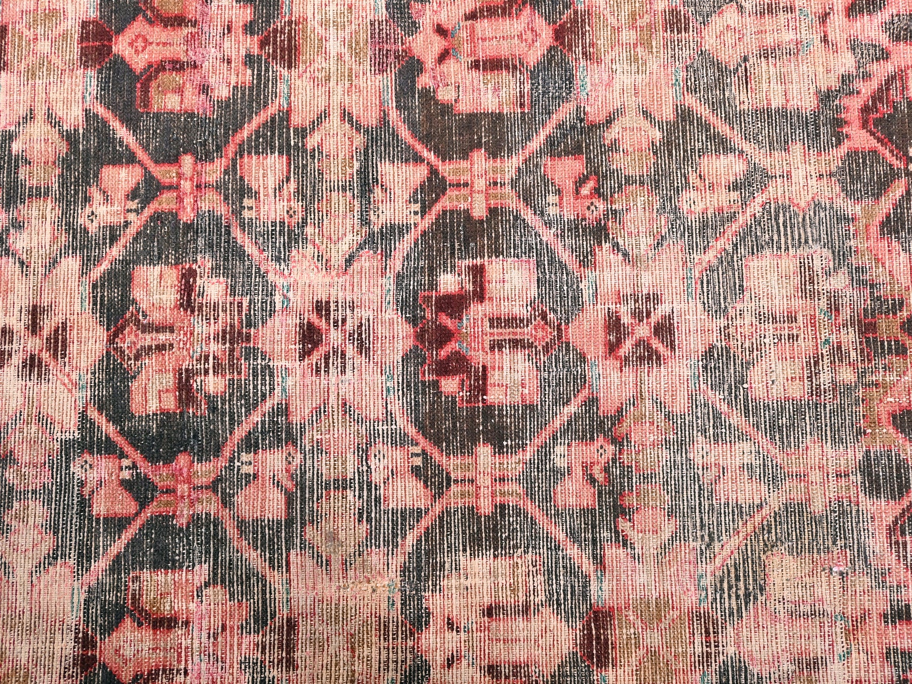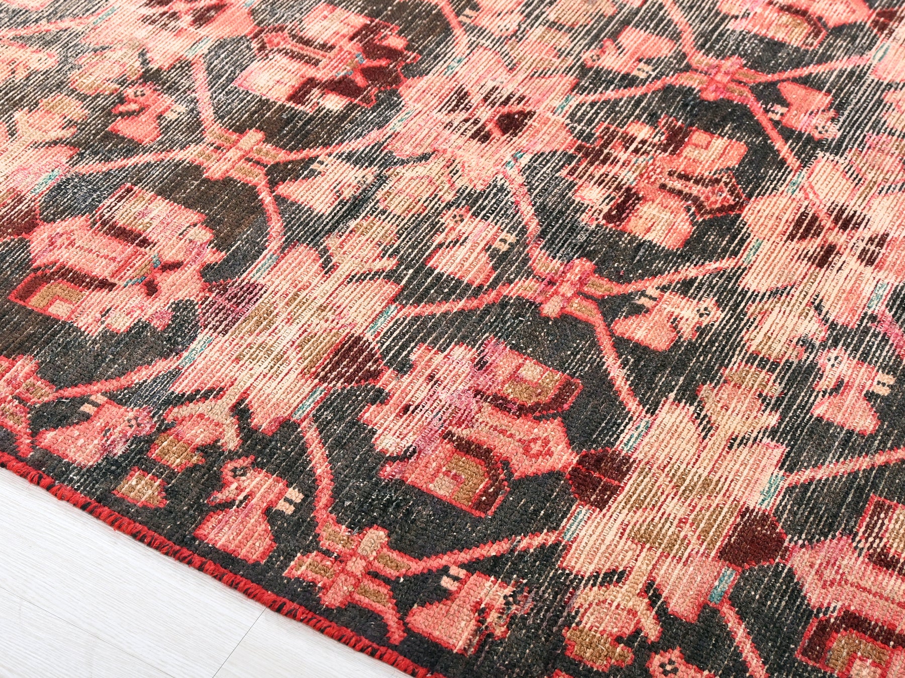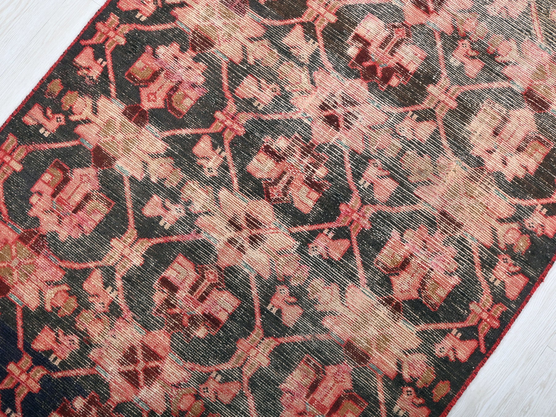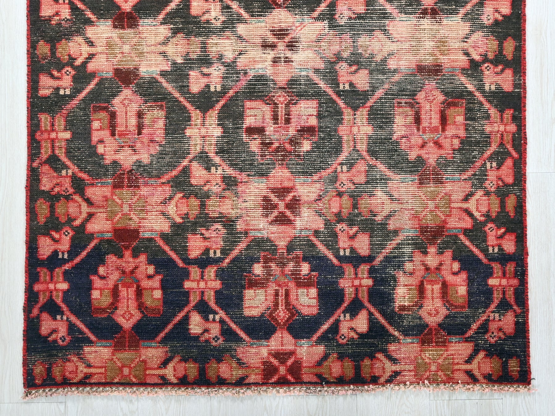 This is a hand-knotted, one-of-a-kind vintage rug. Due to the nature of this piece, there may be slight imperfections in its wear, shape, dimensions, and color. All of our rugs are professionally cleaned and repaired.