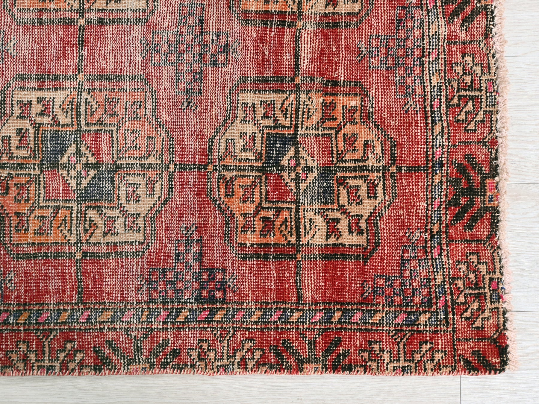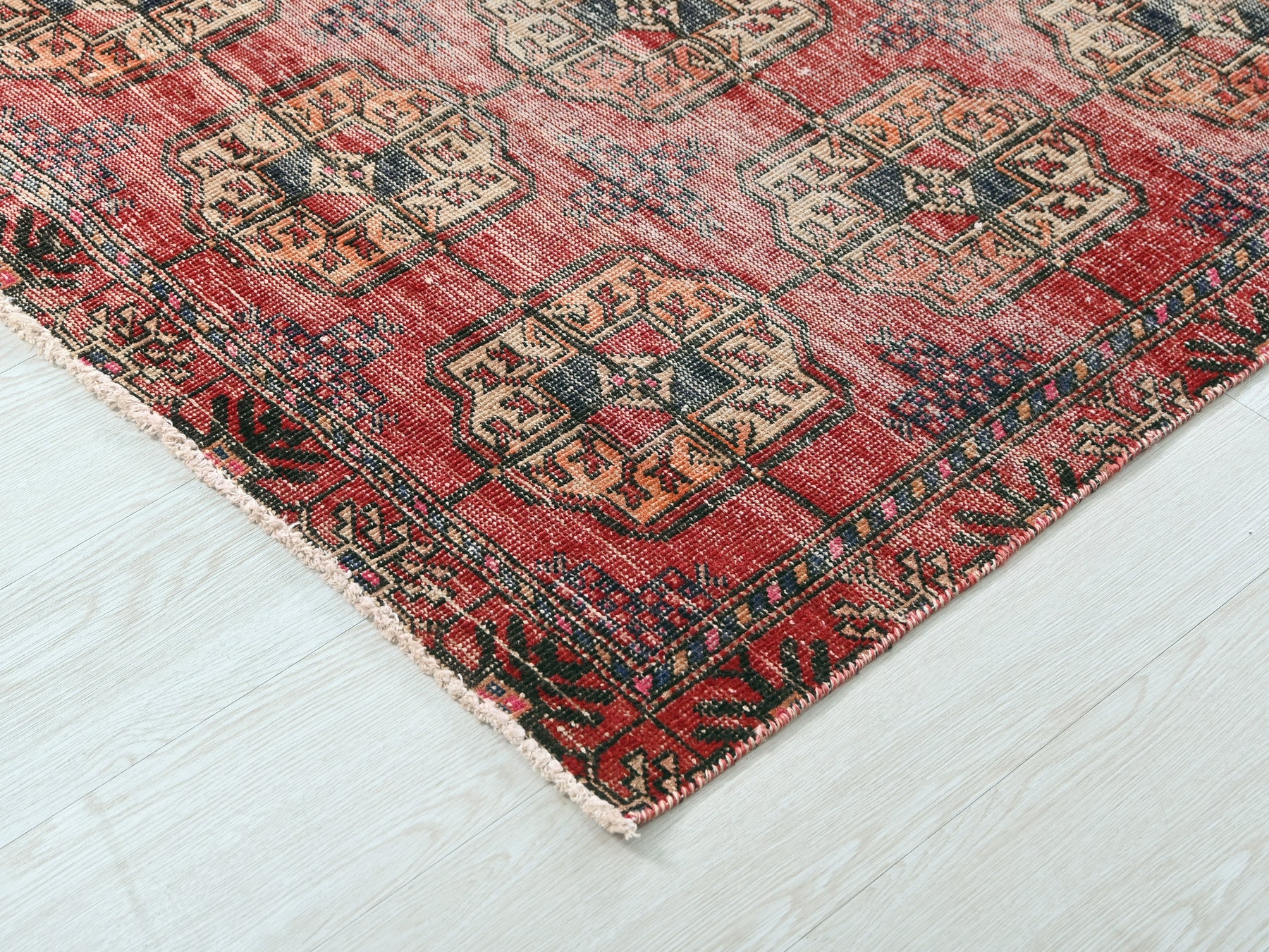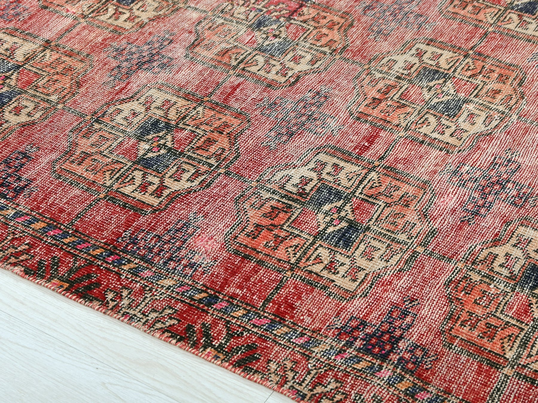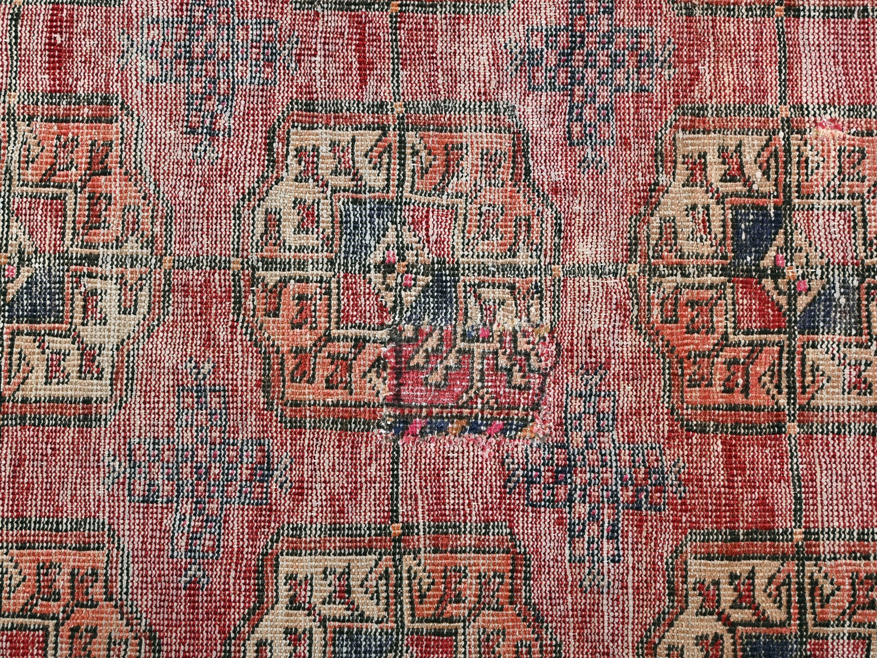 This is a hand-knotted, one-of-a-kind vintage rug. Due to the nature of this piece, there may be slight imperfections in its wear, shape, dimensions, and color. All of our rugs are professionally cleaned and repaired.