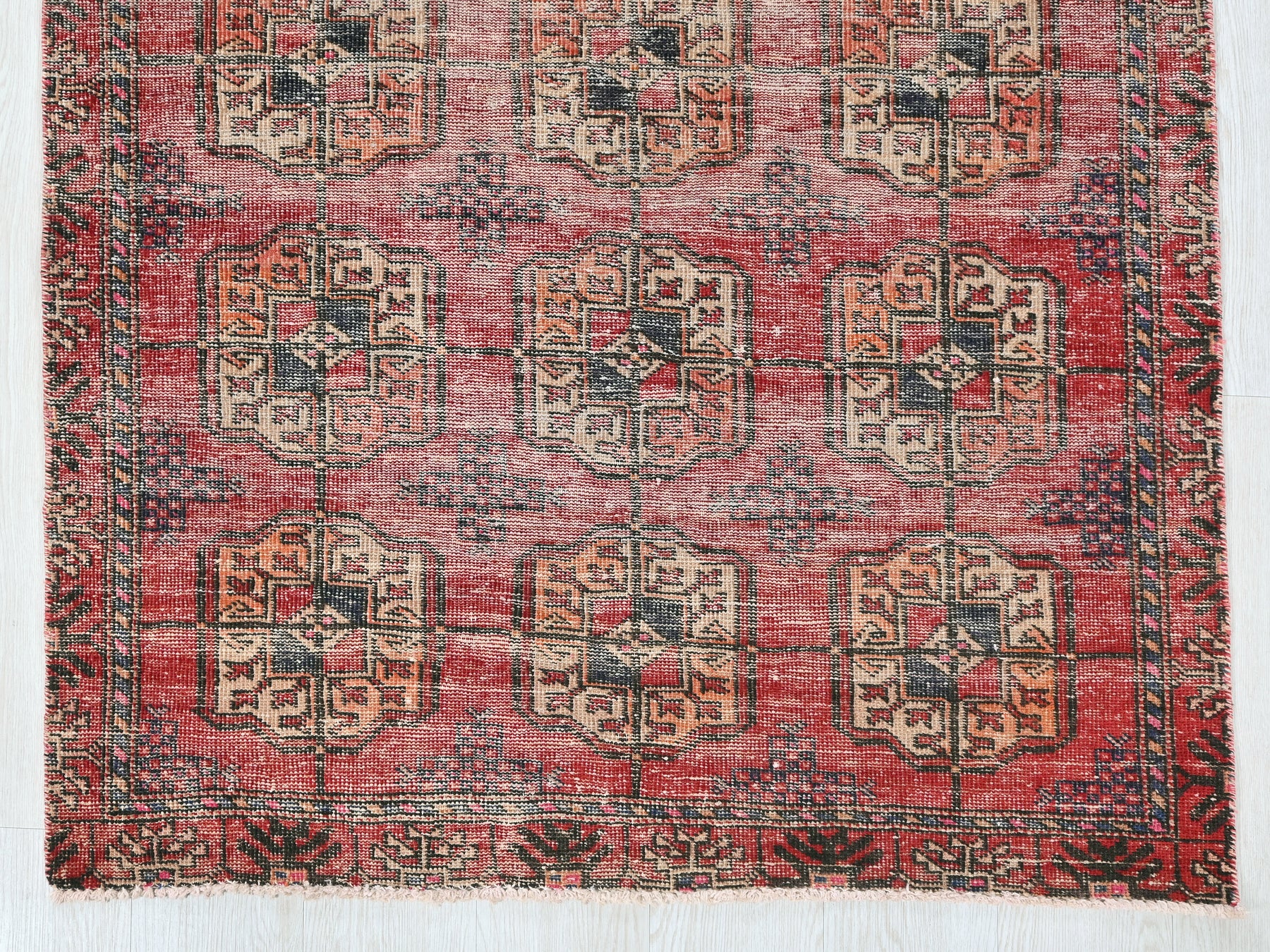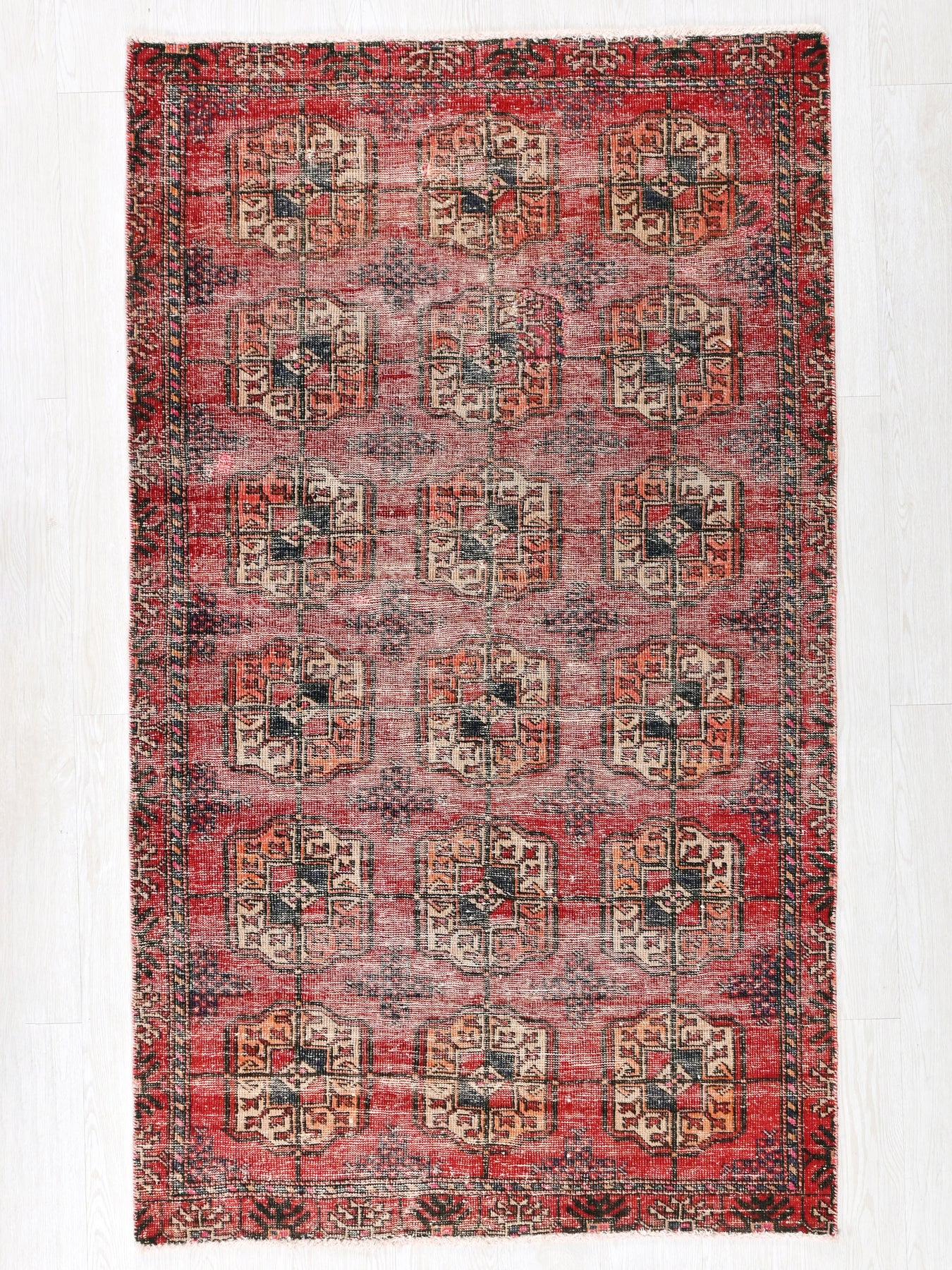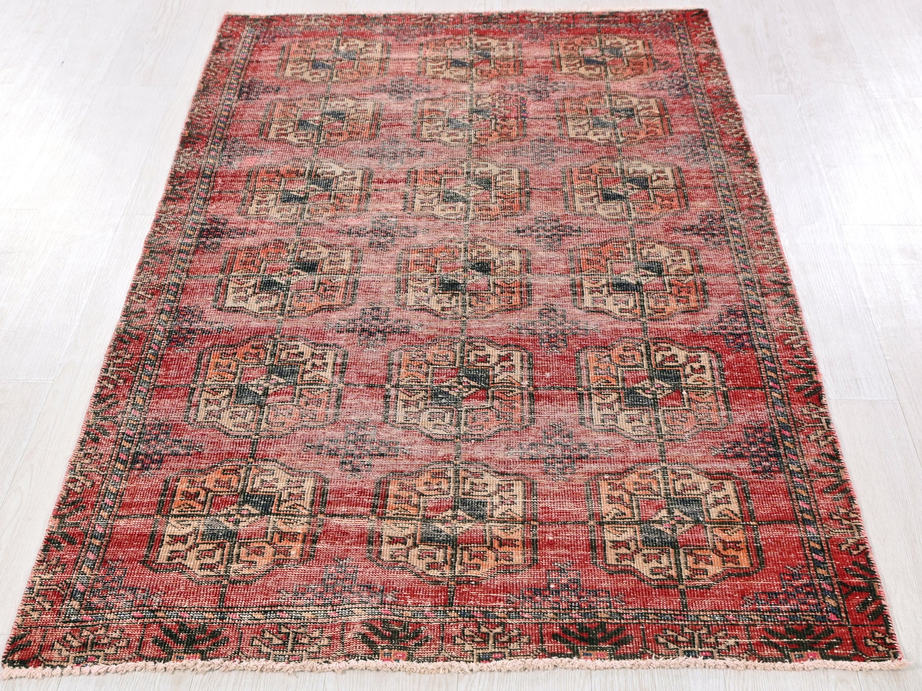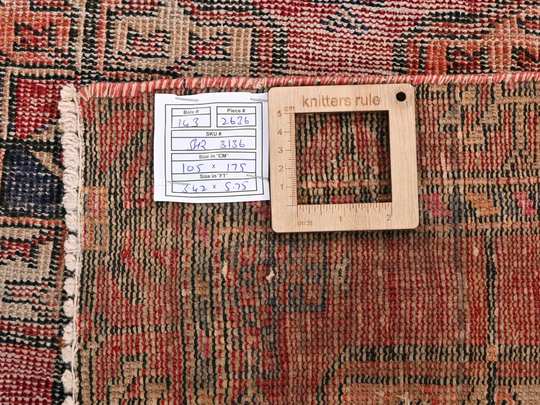 This is a hand-knotted, one-of-a-kind vintage rug. Due to the nature of this piece, there may be slight imperfections in its wear, shape, dimensions, and color. All of our rugs are professionally cleaned and repaired.