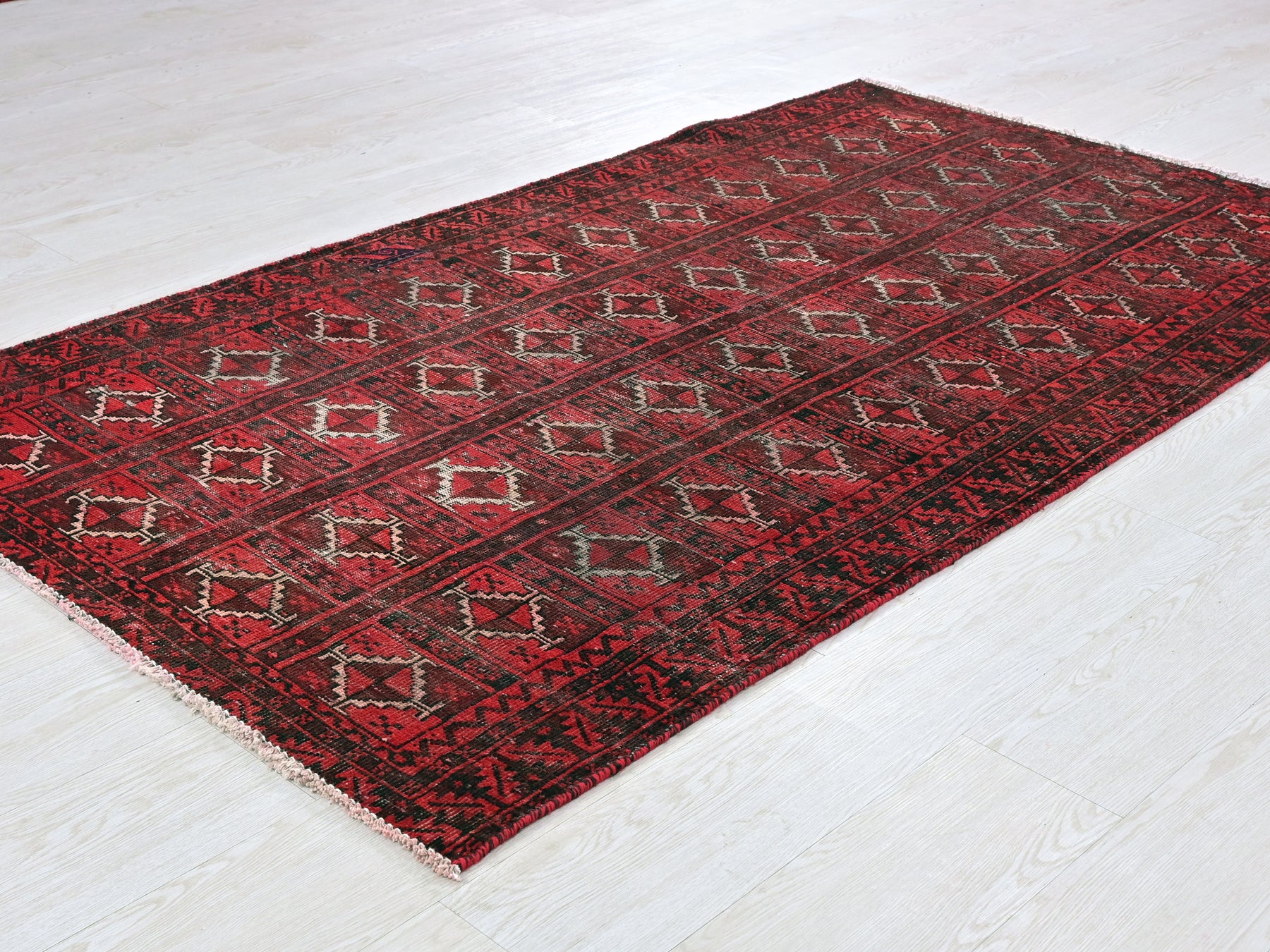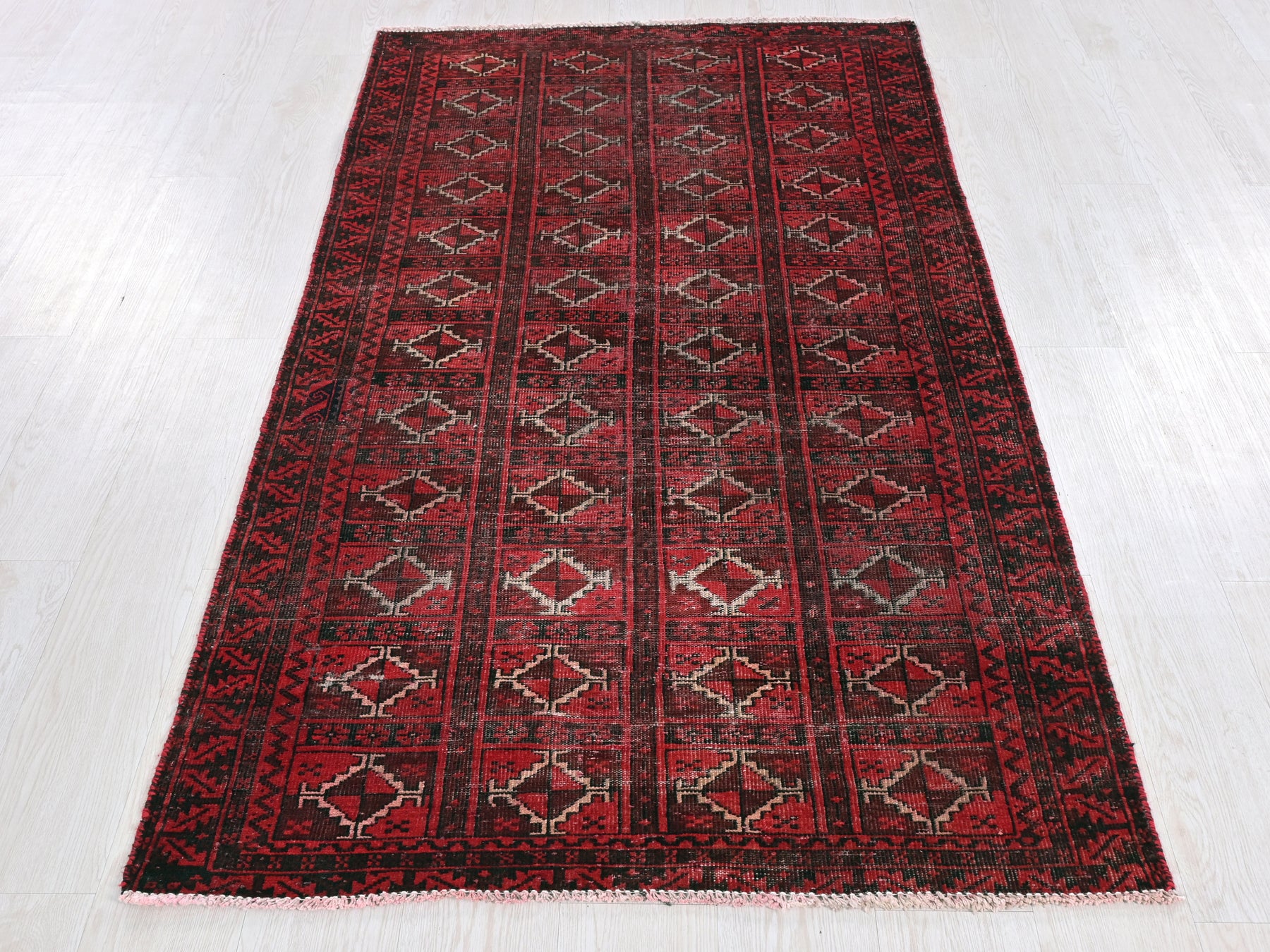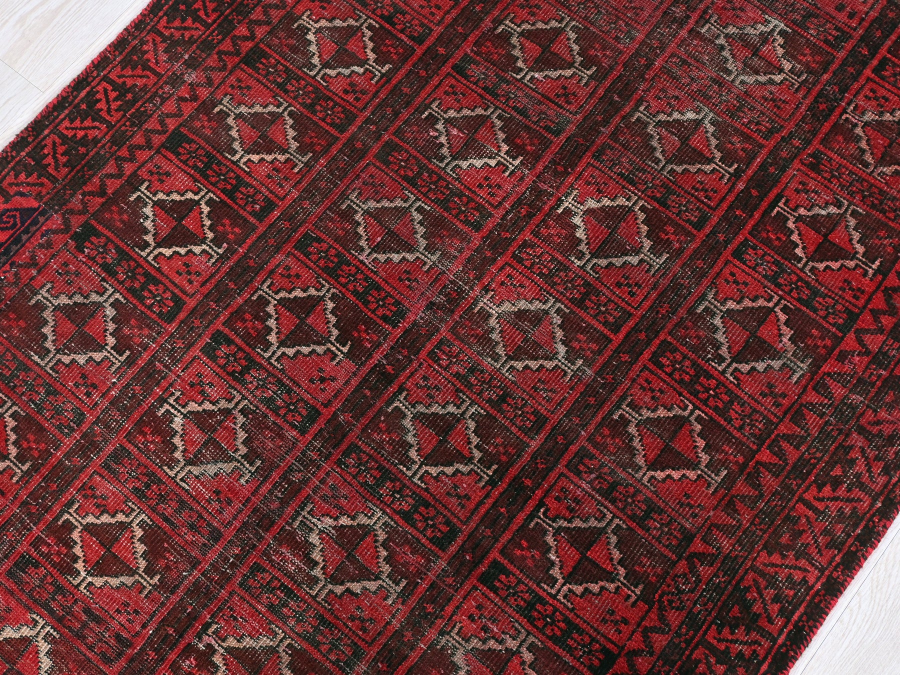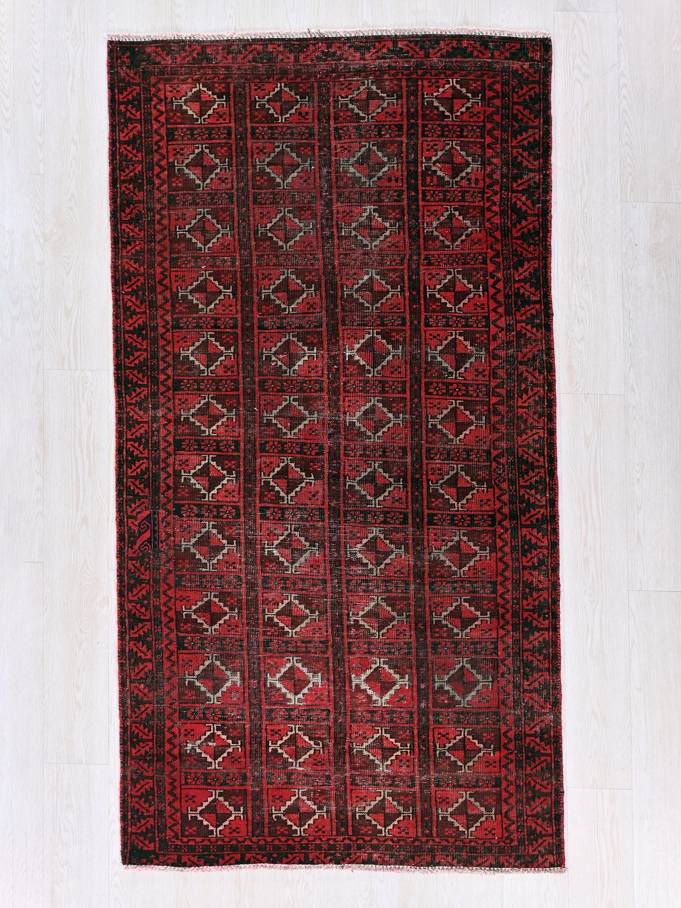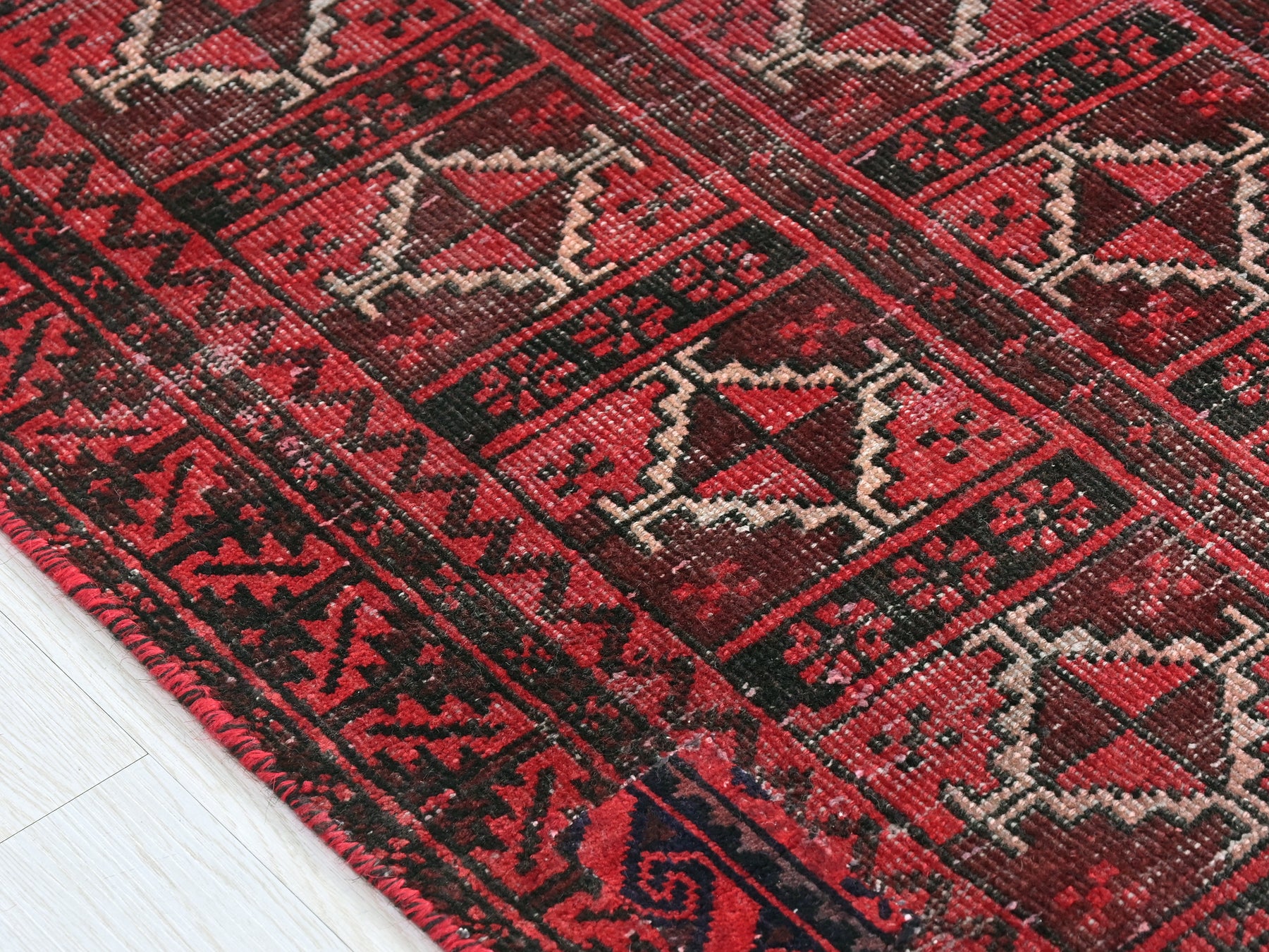 This is a hand-knotted, one-of-a-kind vintage rug. Due to the nature of this piece, there may be slight imperfections in its wear, shape, dimensions, and color. All of our rugs are professionally cleaned and repaired.