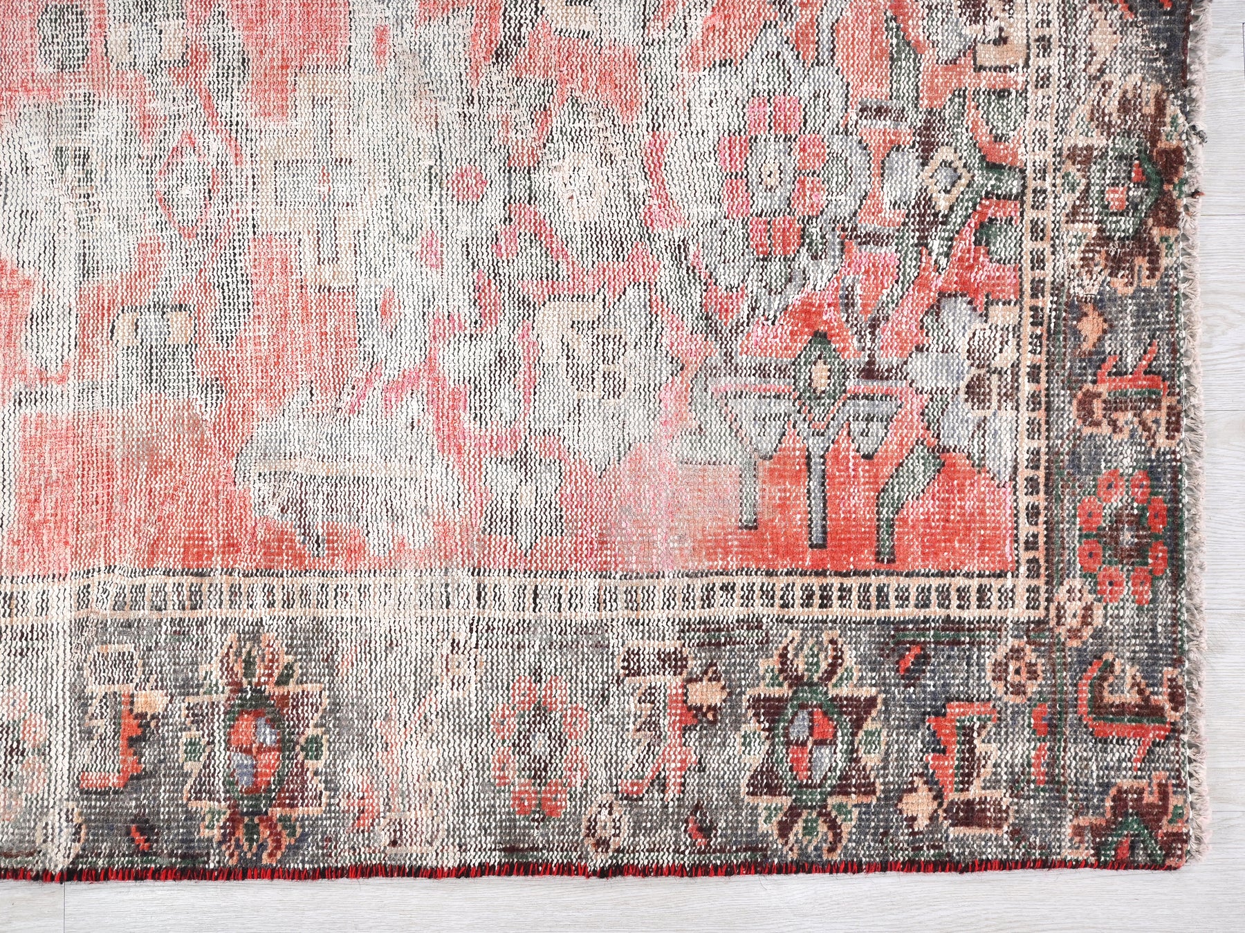 This is a hand-knotted, one-of-a-kind vintage rug. Due to the nature of this piece, there may be slight imperfections in its wear, shape, dimensions, and color. All of our rugs are professionally cleaned and repaired.