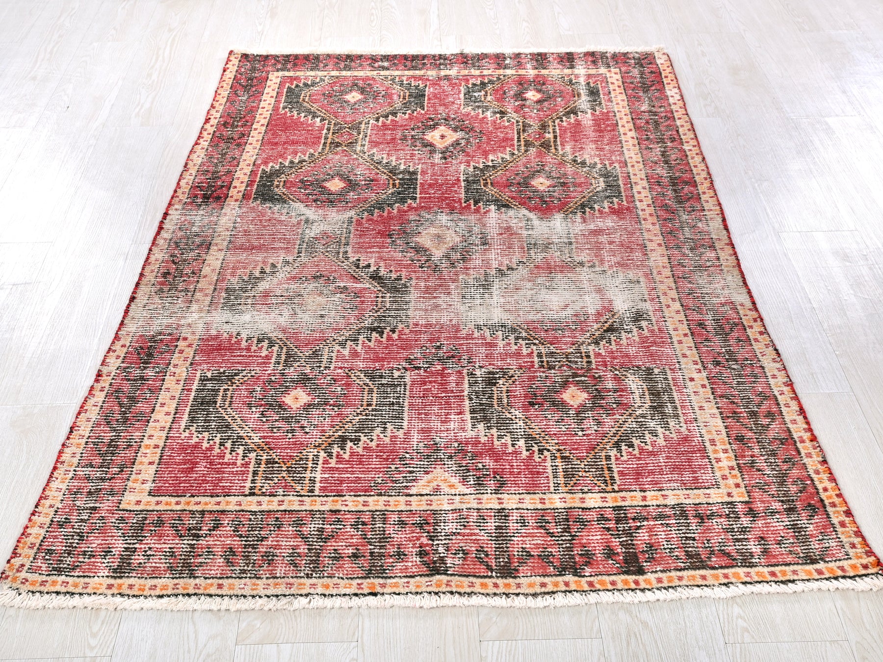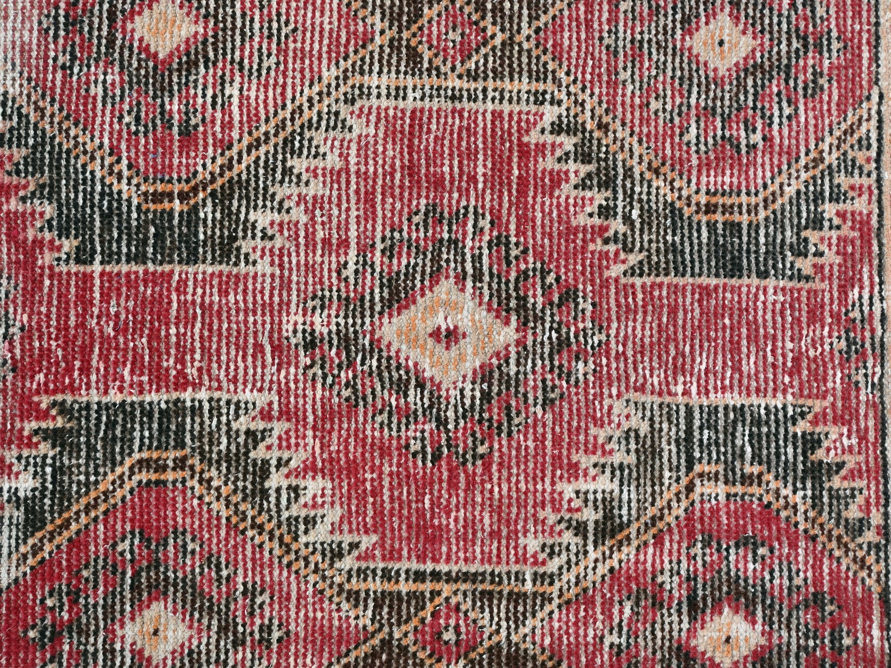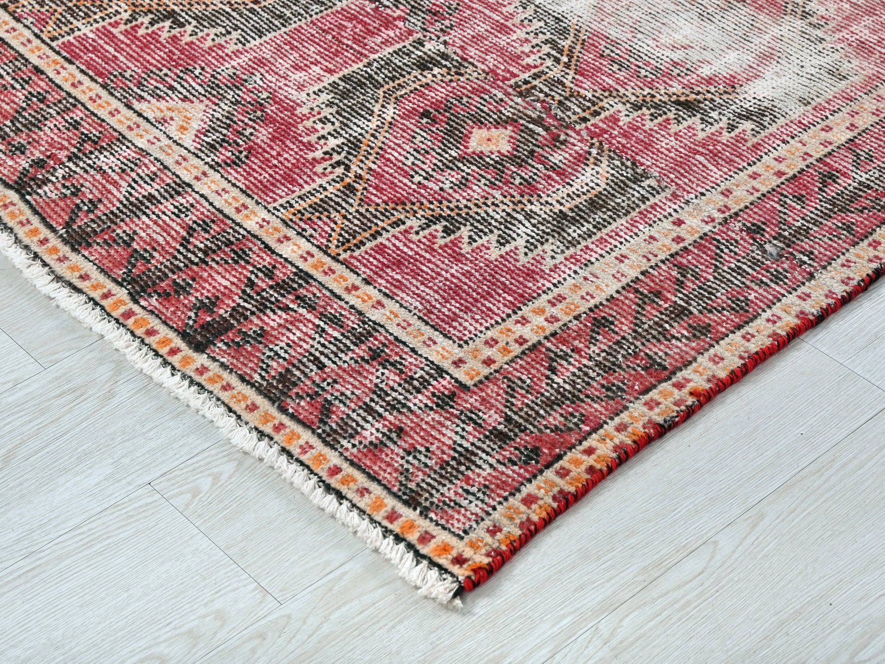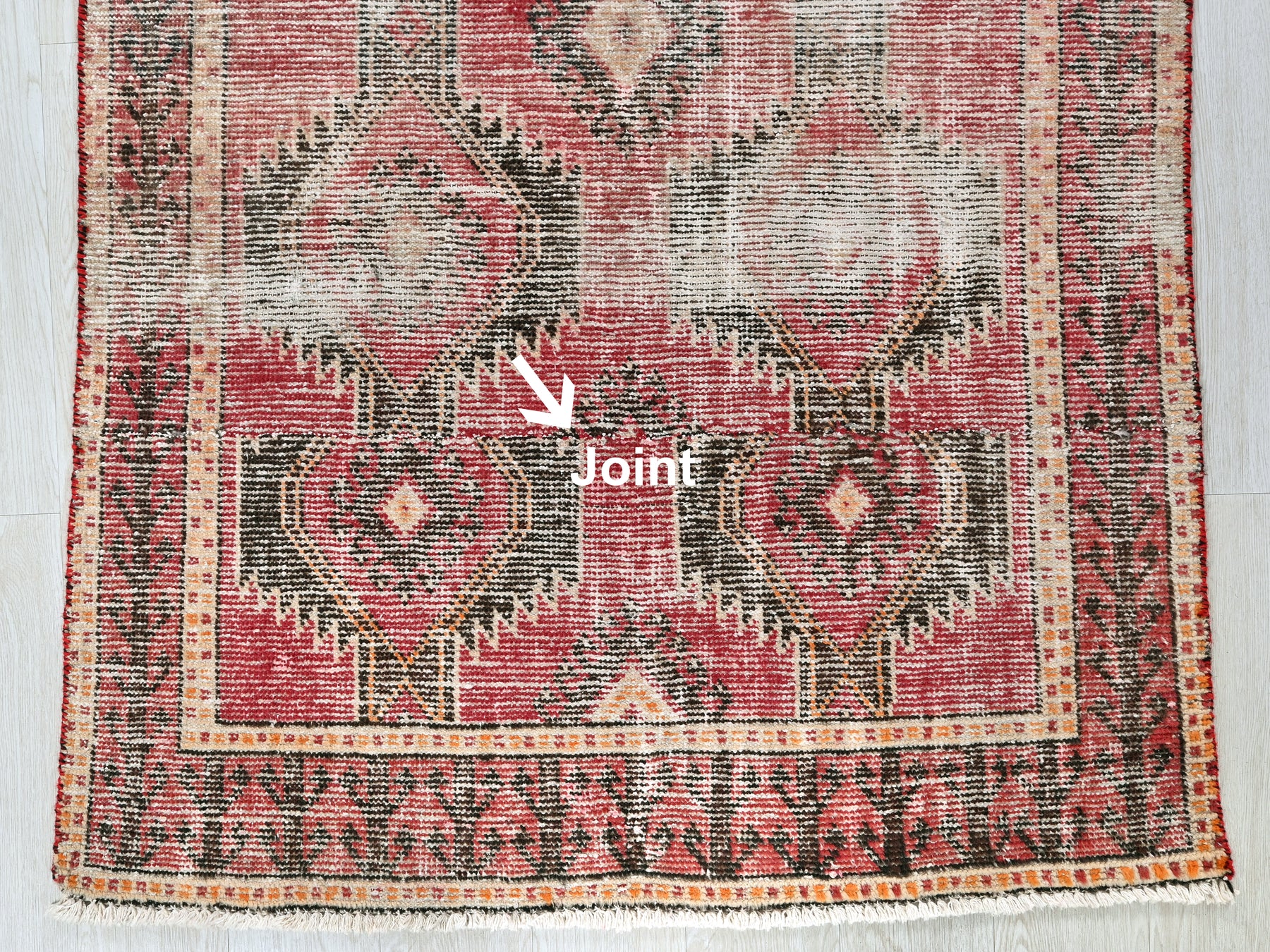 This is a hand-knotted, one-of-a-kind vintage rug. Due to the nature of this piece, there may be slight imperfections in its wear, shape, dimensions, and color. All of our rugs are professionally cleaned and repaired.