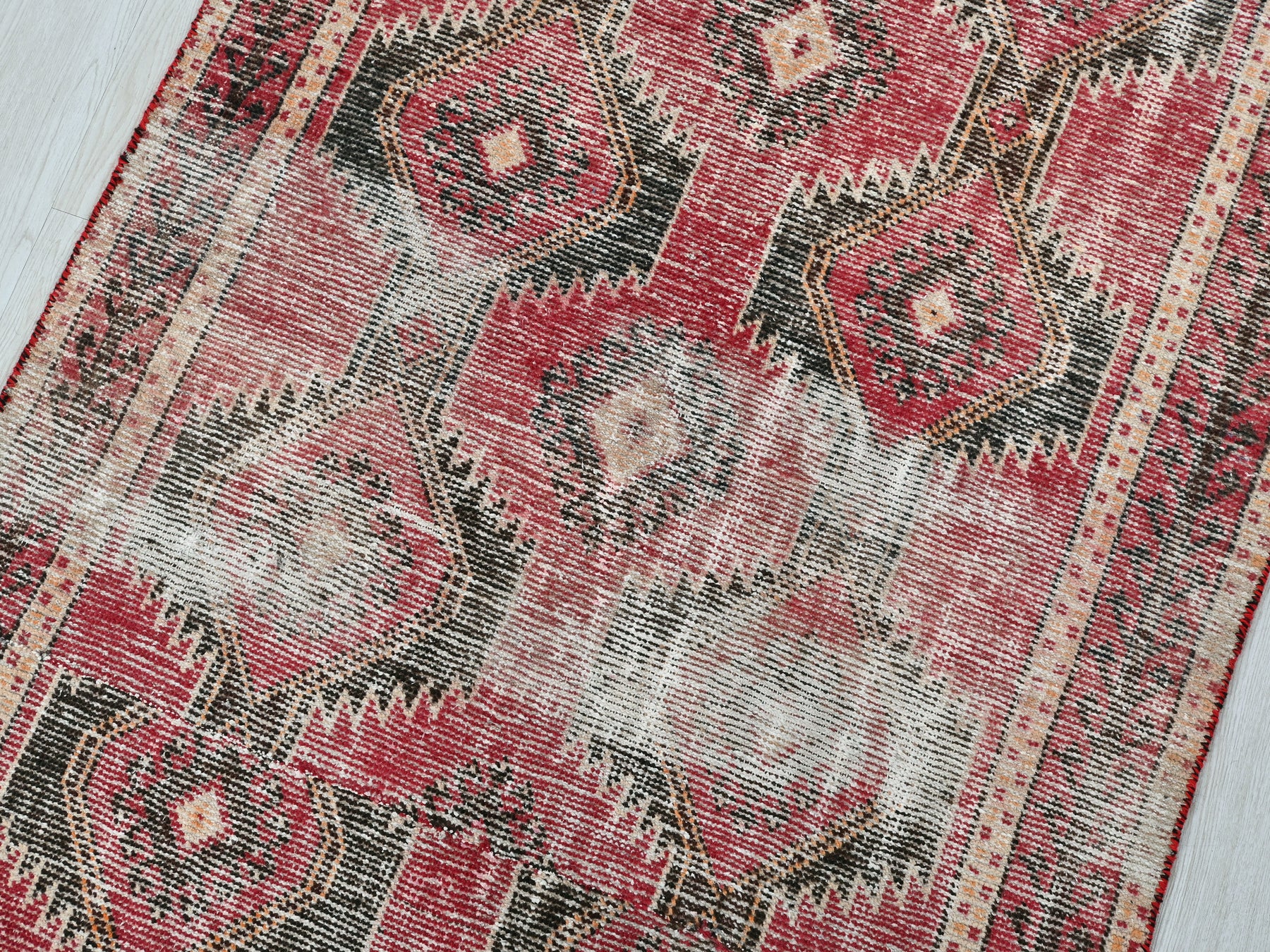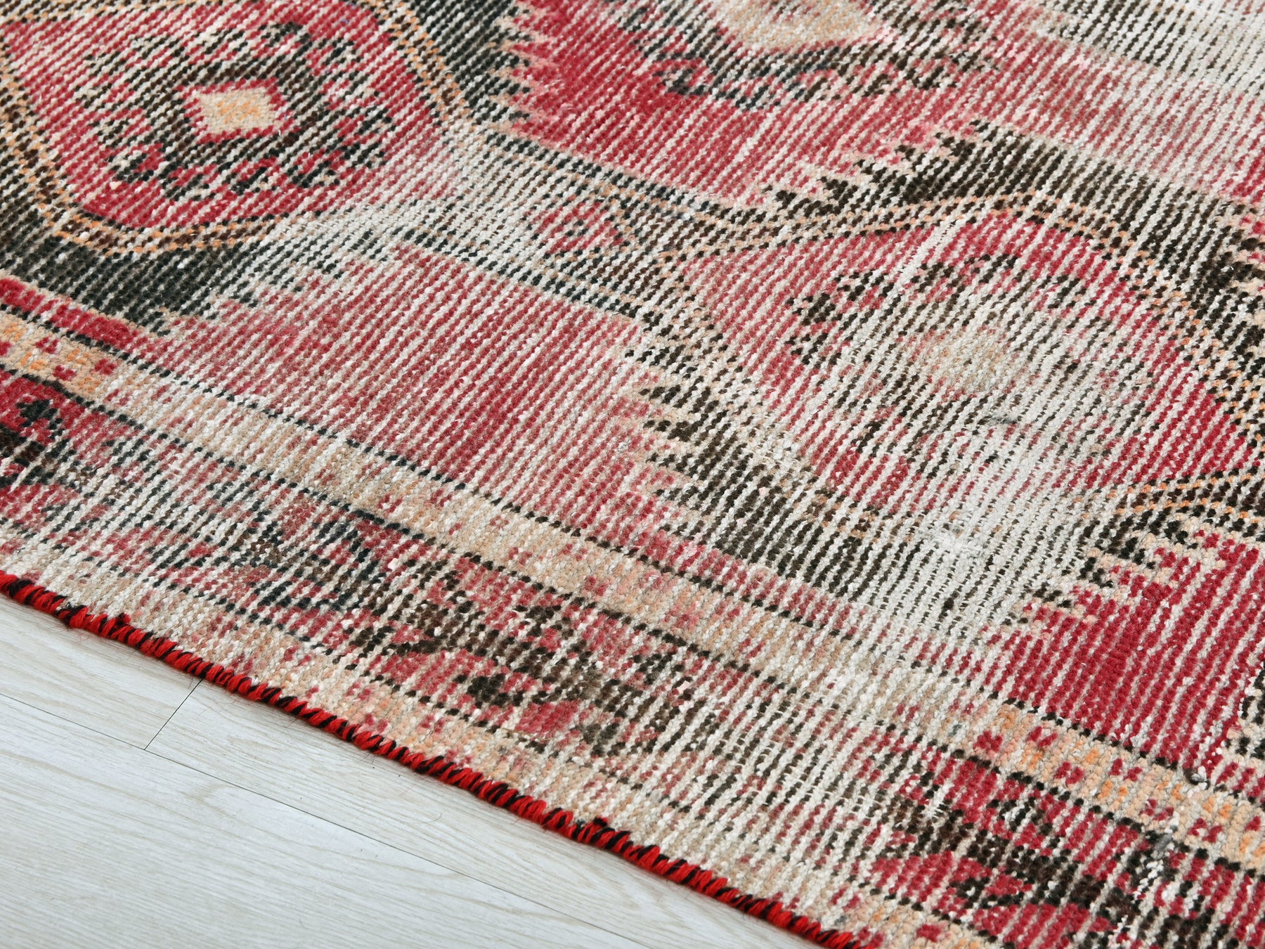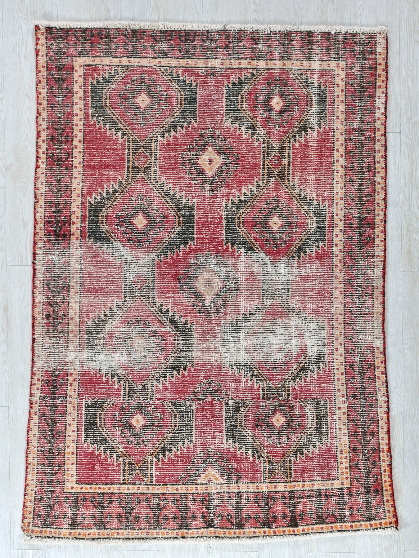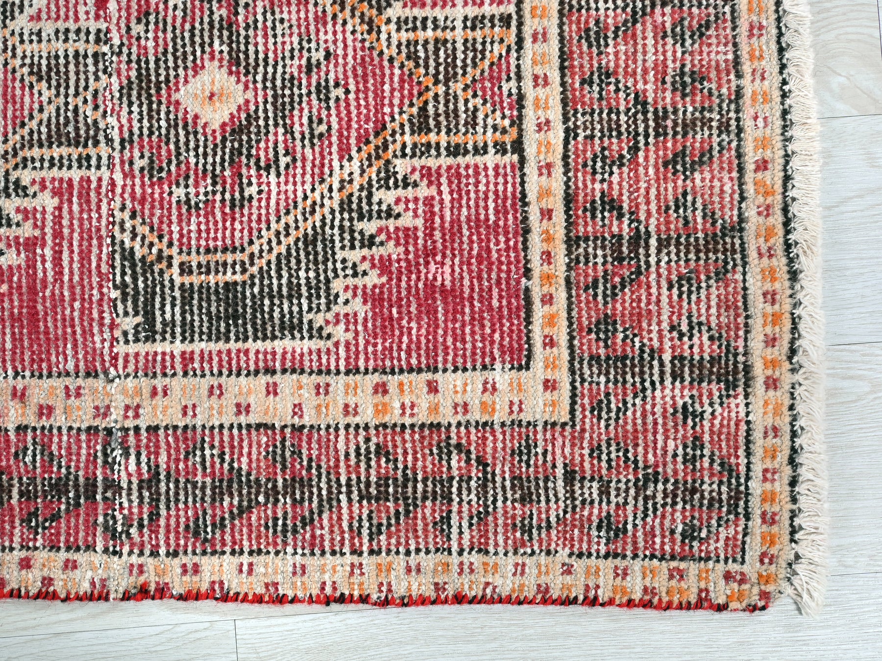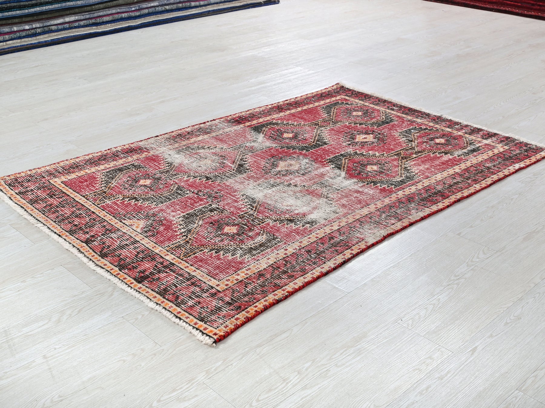 This is a hand-knotted, one-of-a-kind vintage rug. Due to the nature of this piece, there may be slight imperfections in its wear, shape, dimensions, and color. All of our rugs are professionally cleaned and repaired.