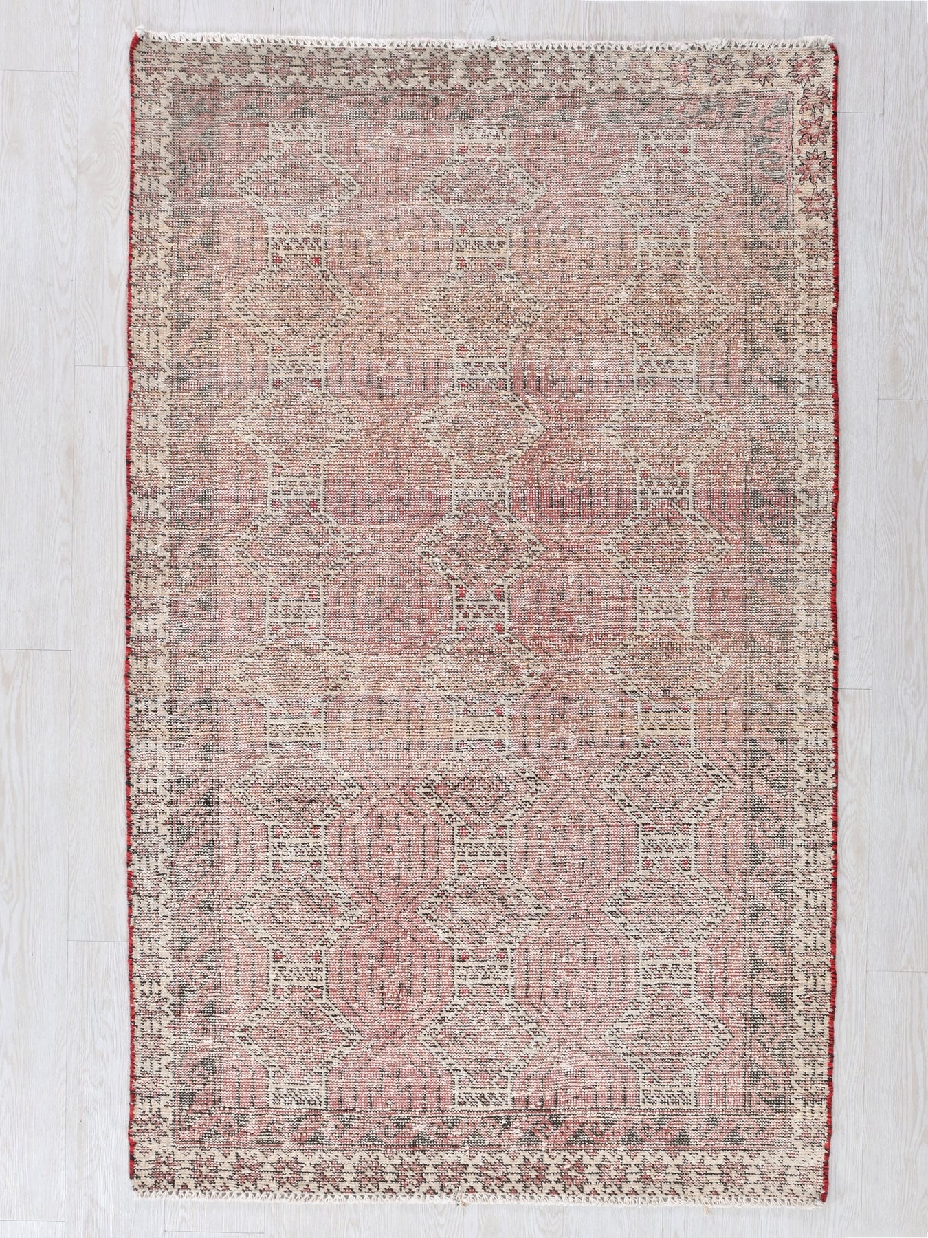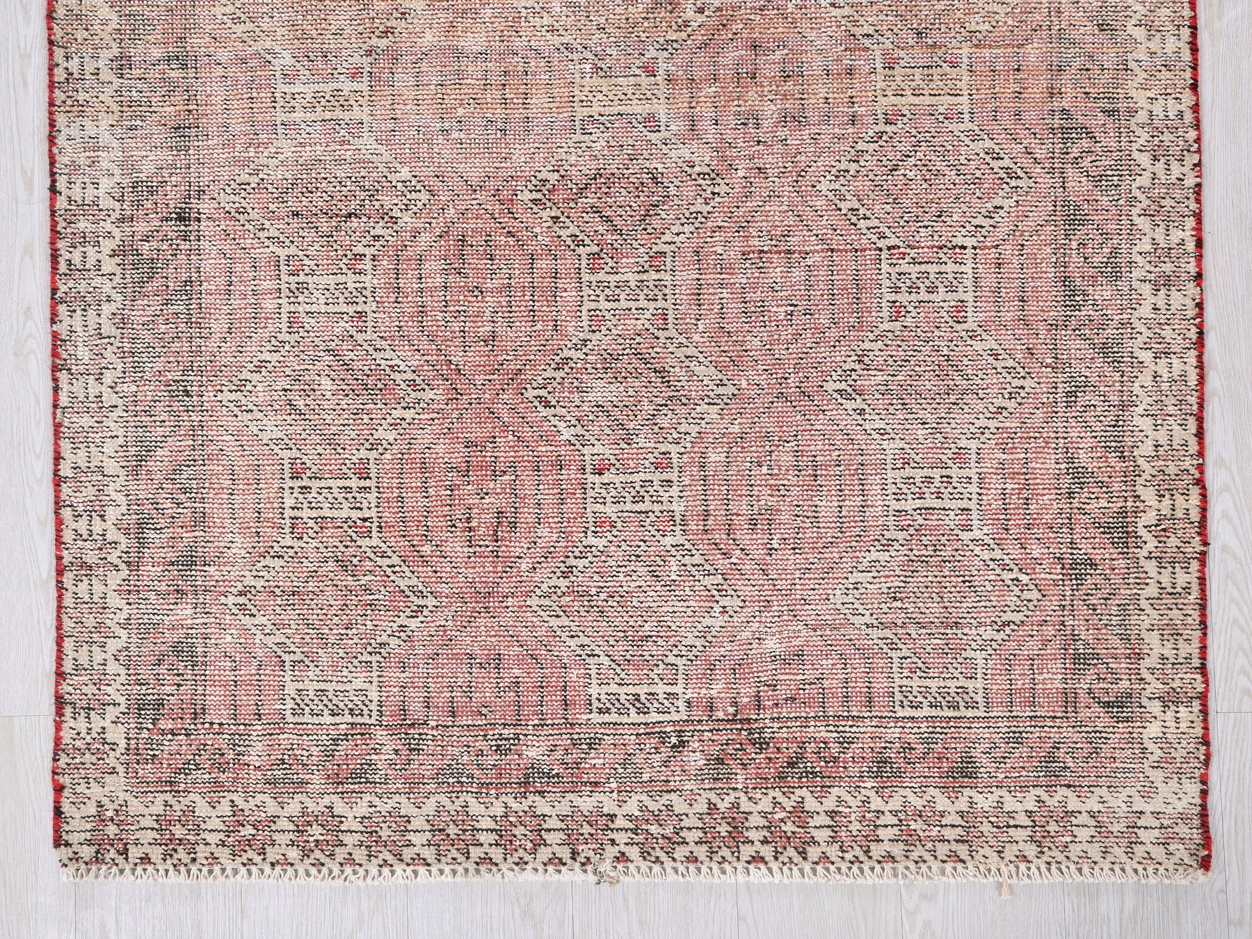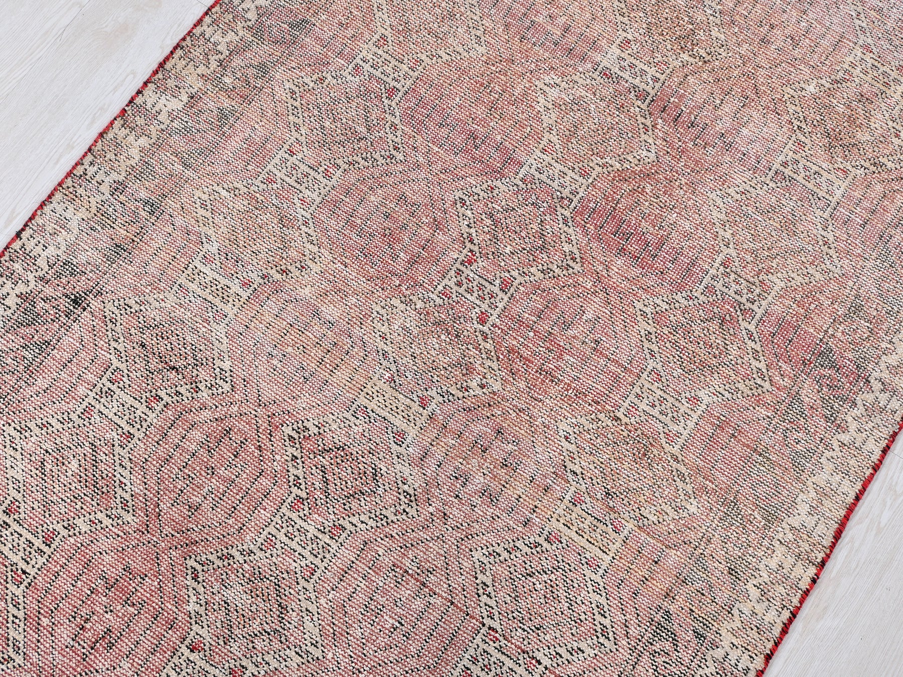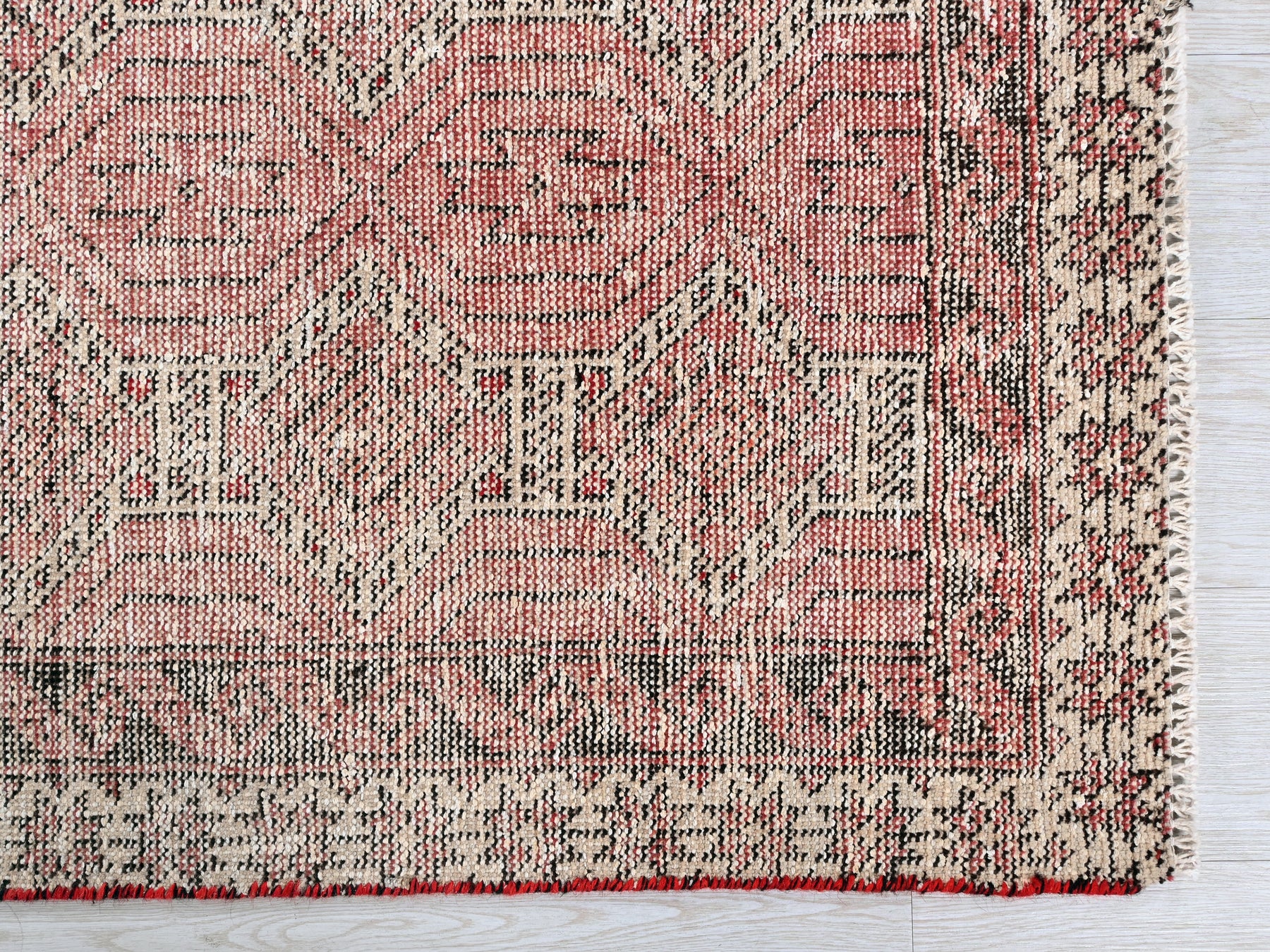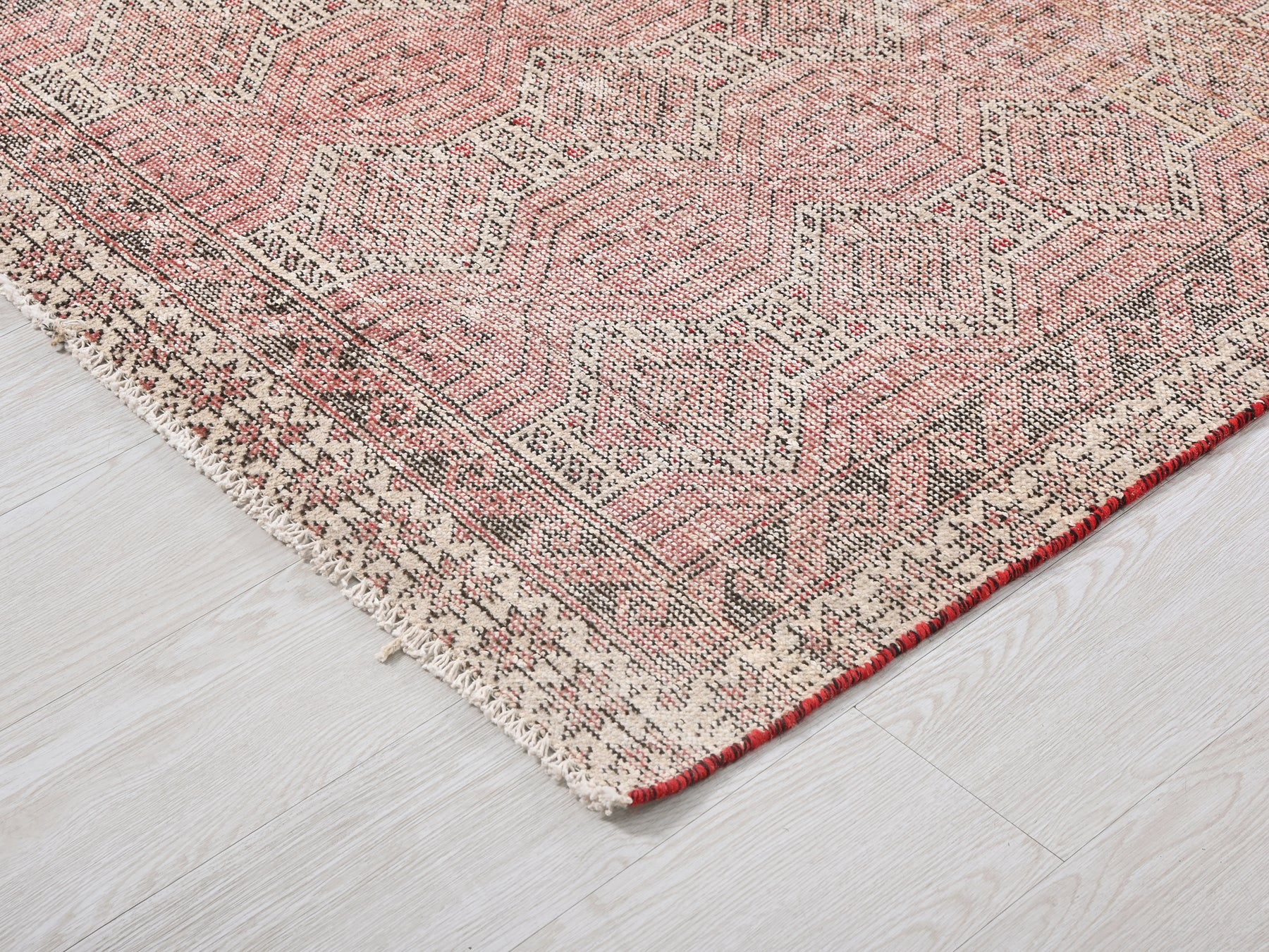 This is a hand-knotted, one-of-a-kind vintage rug. Due to the nature of this piece, there may be slight imperfections in its wear, shape, dimensions, and color. All of our rugs are professionally cleaned and repaired.