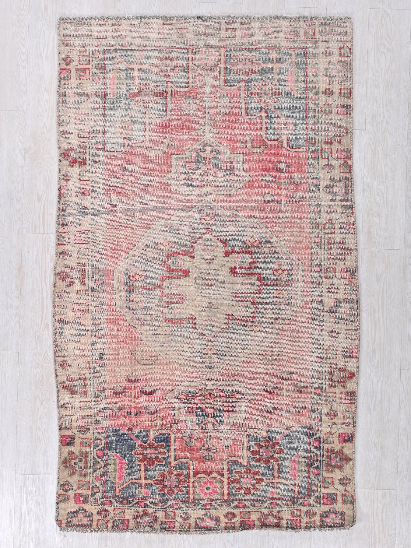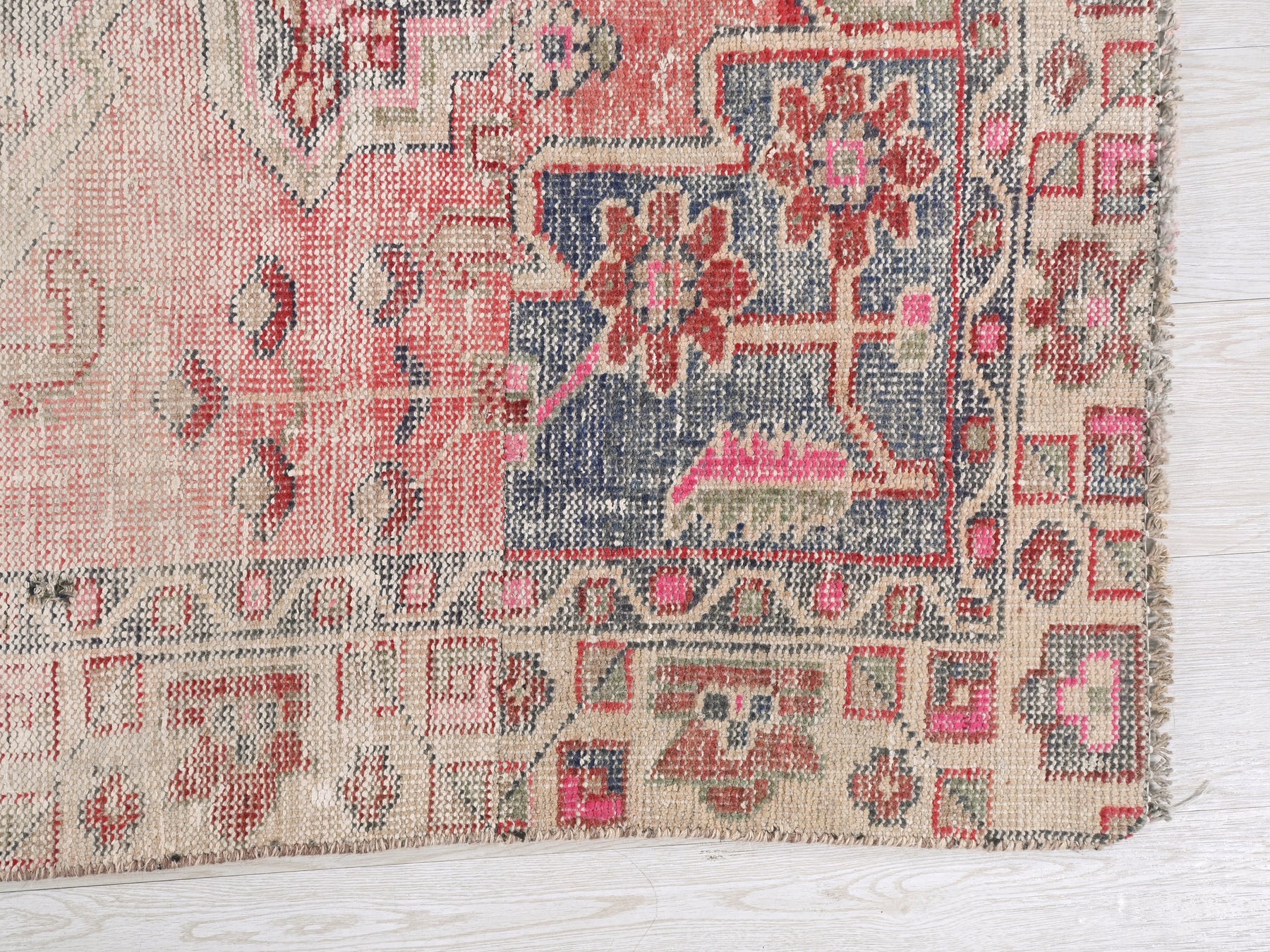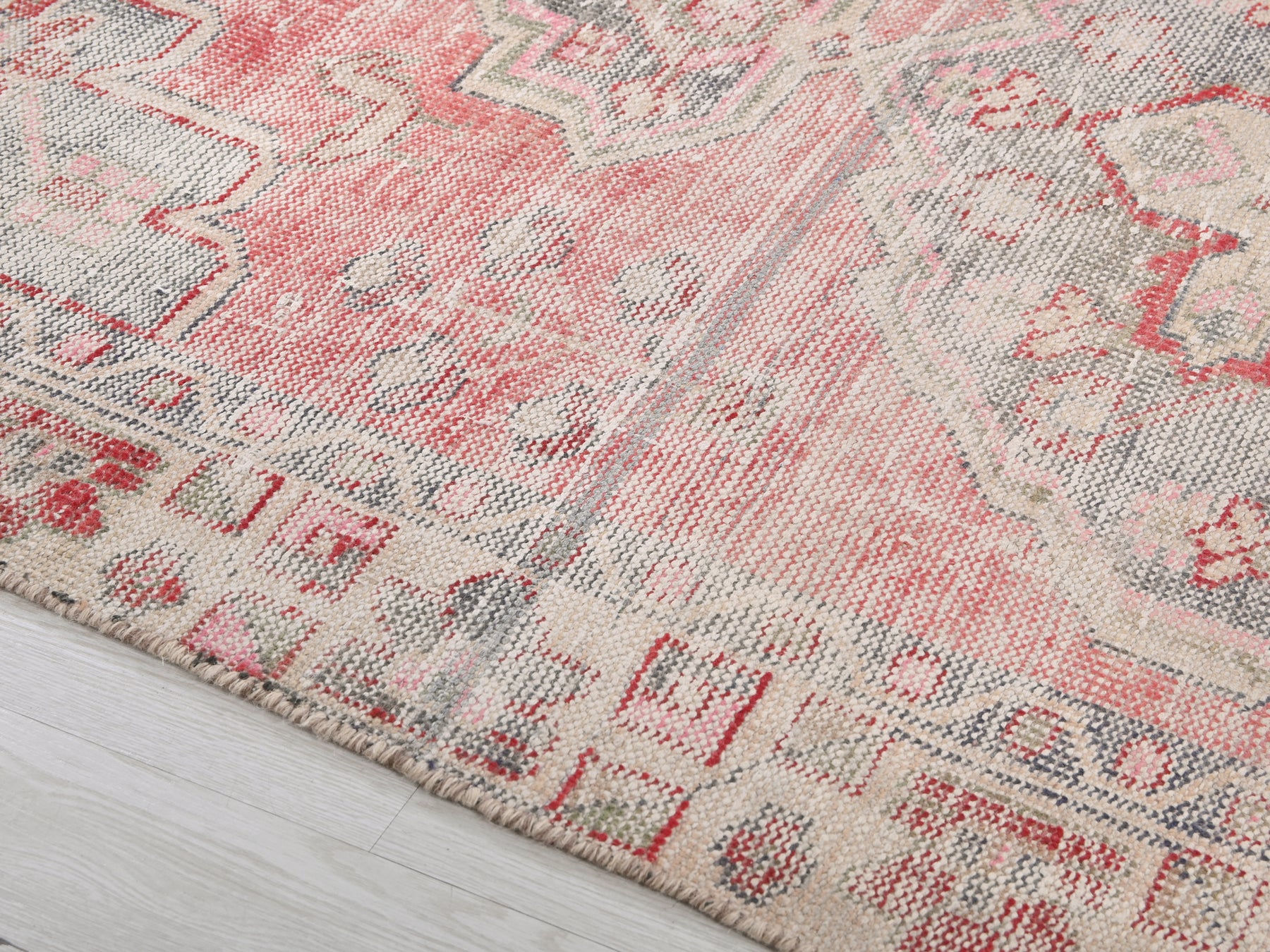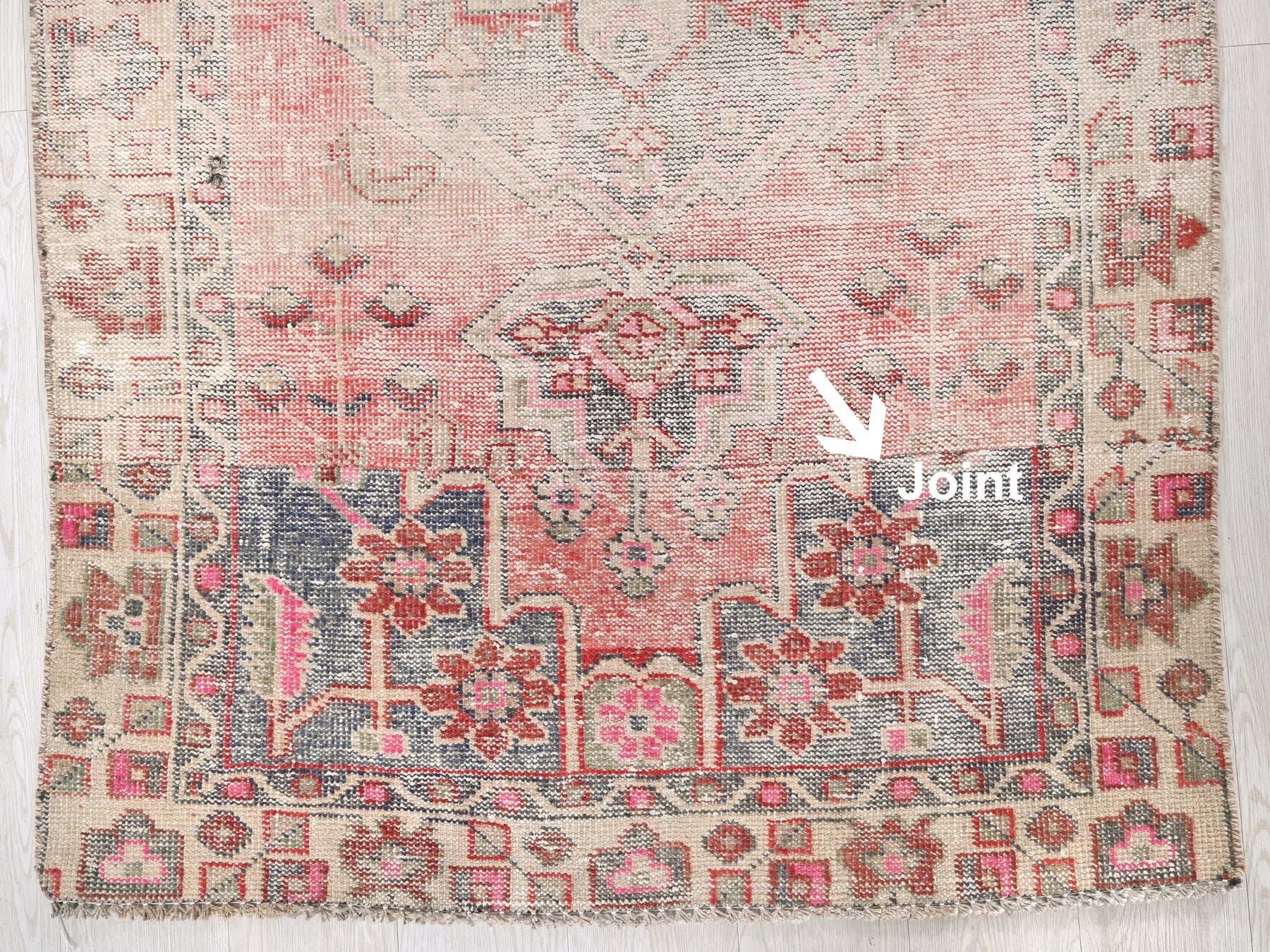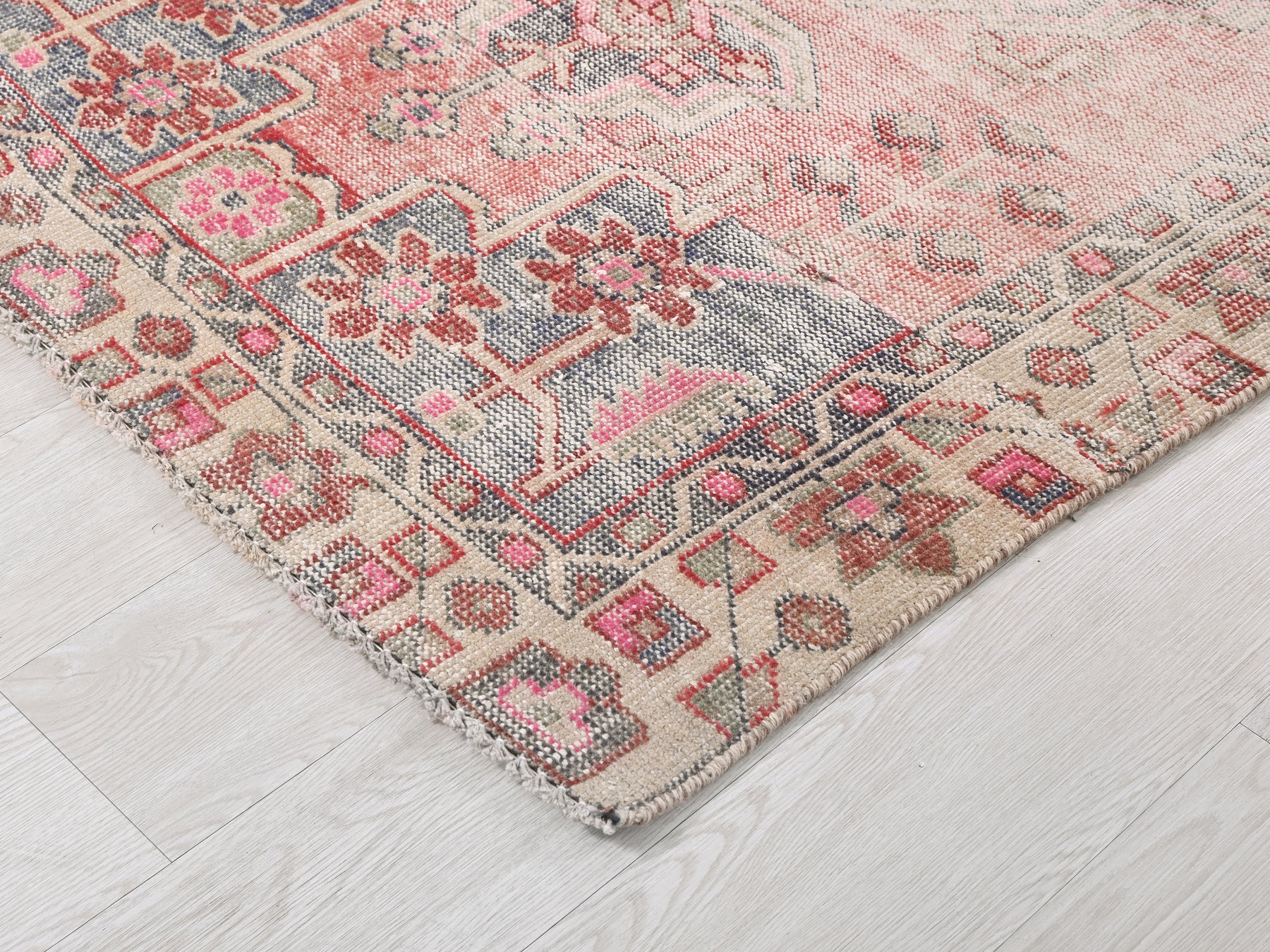 This is a hand-knotted, one-of-a-kind vintage rug. Due to the nature of this piece, there may be slight imperfections in its wear, shape, dimensions, and color. All of our rugs are professionally cleaned and repaired.