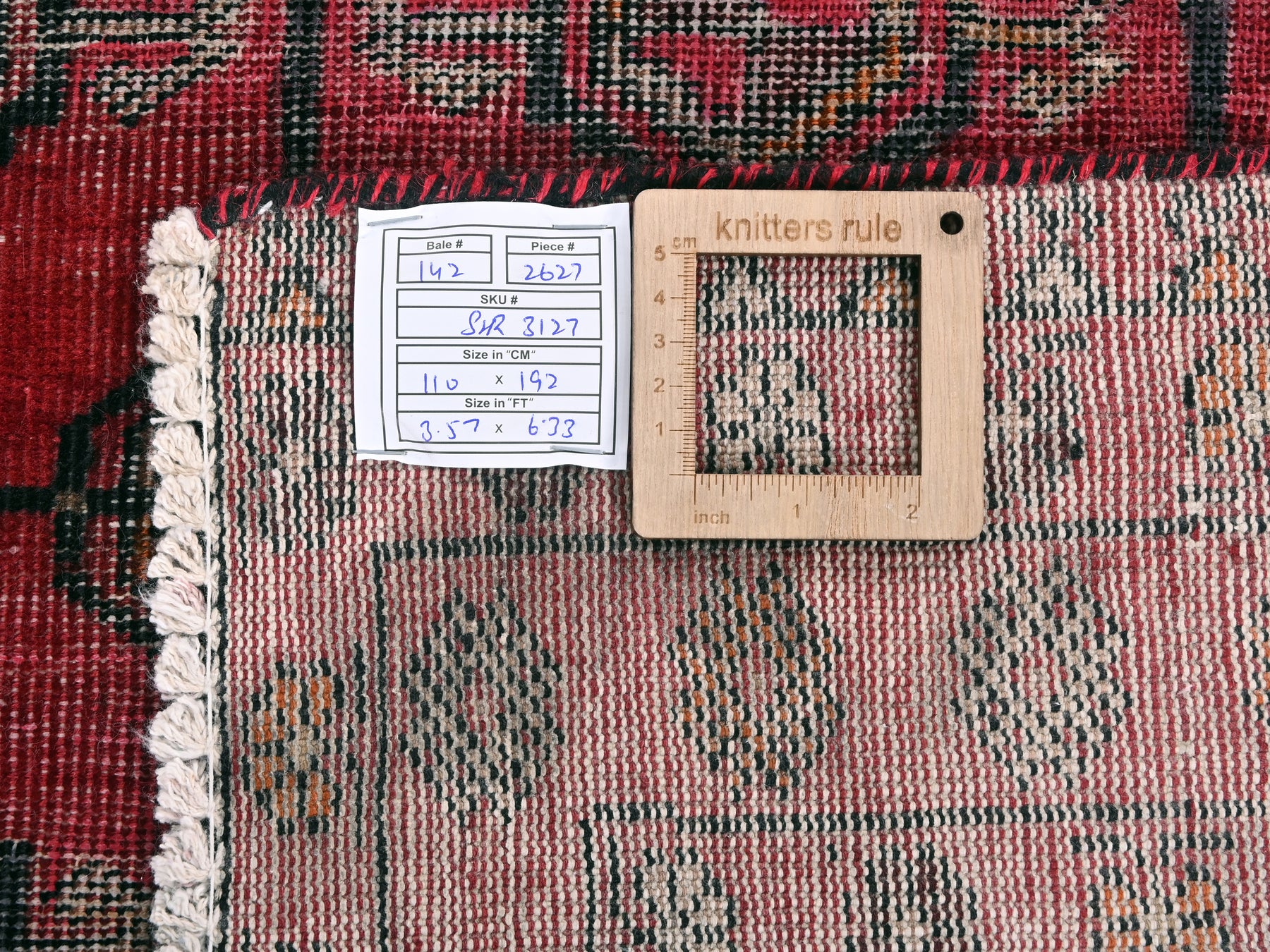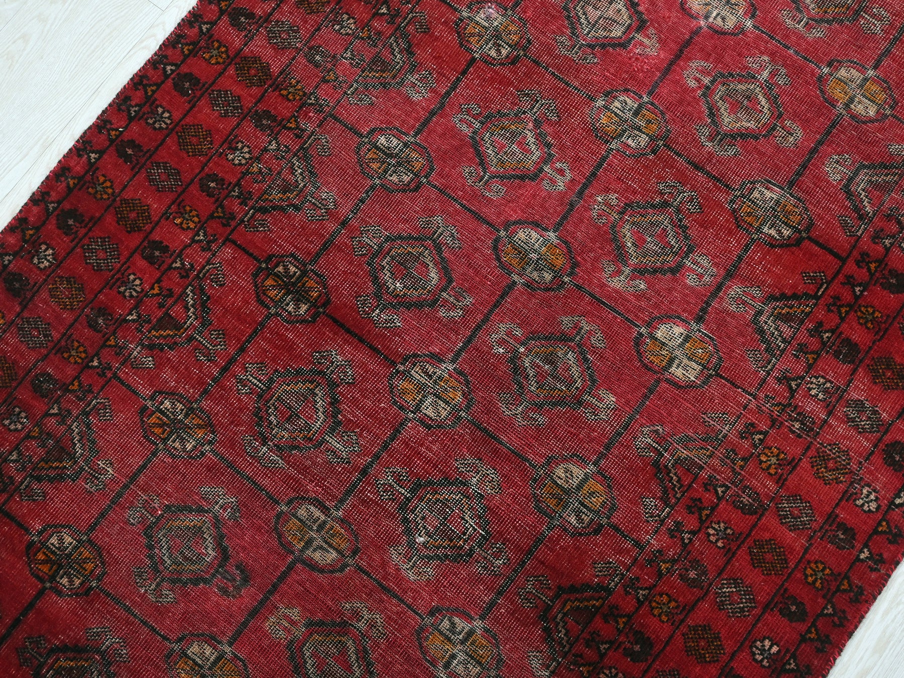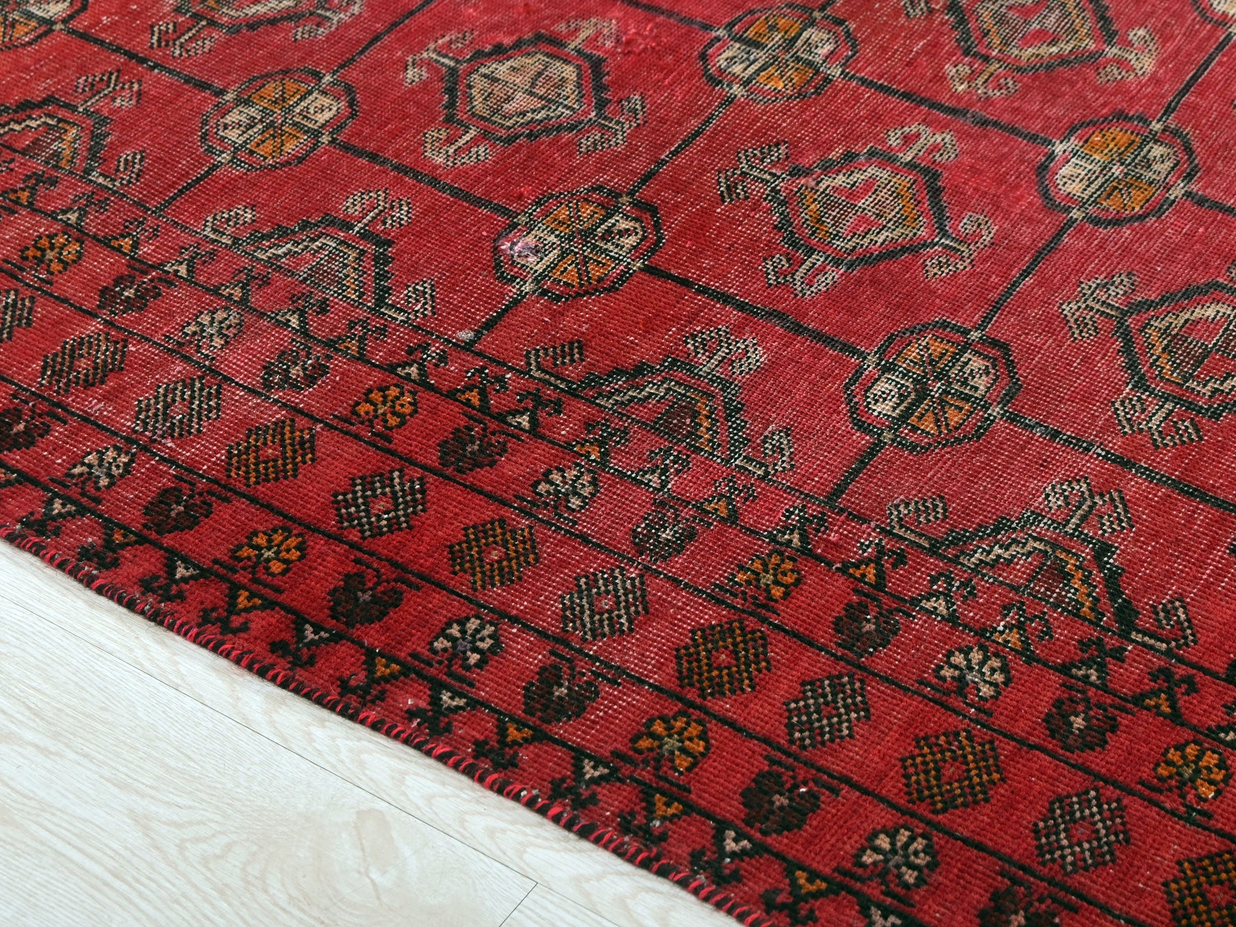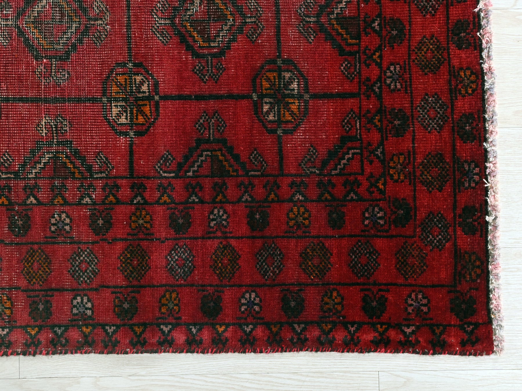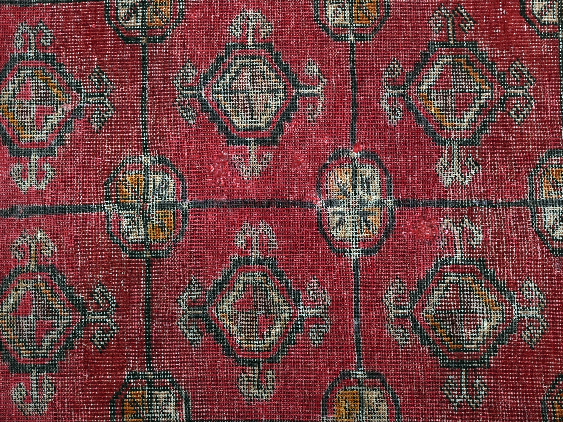 This is a hand-knotted, one-of-a-kind vintage rug. Due to the nature of this piece, there may be slight imperfections in its wear, shape, dimensions, and color. All of our rugs are professionally cleaned and repaired.