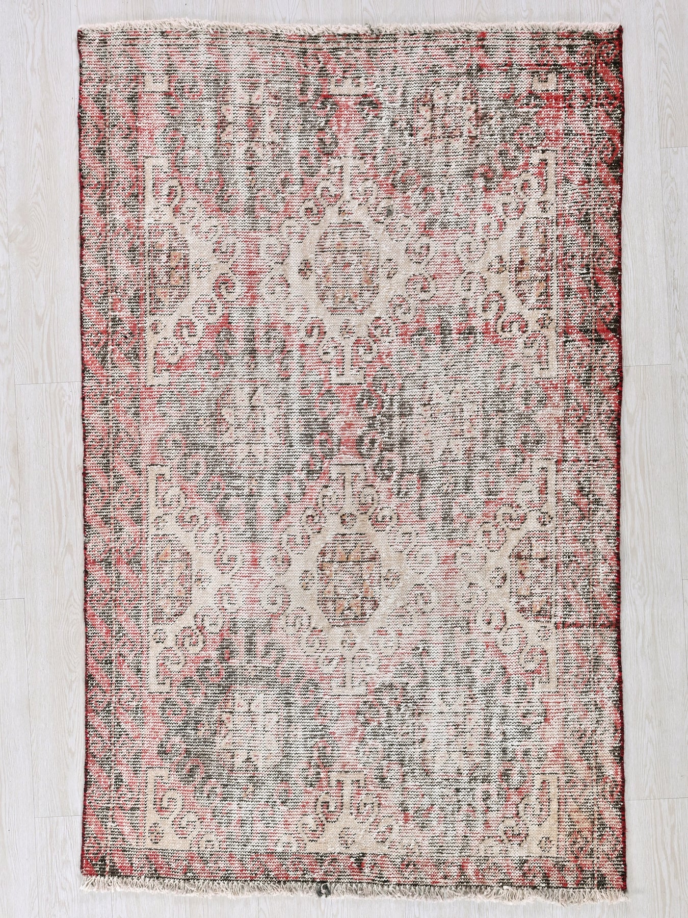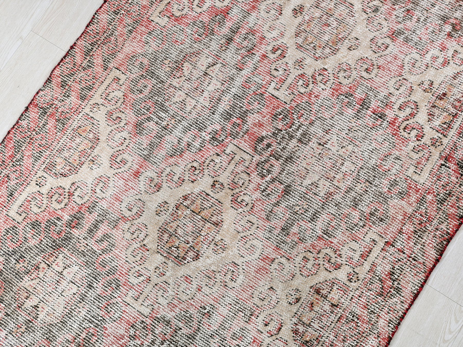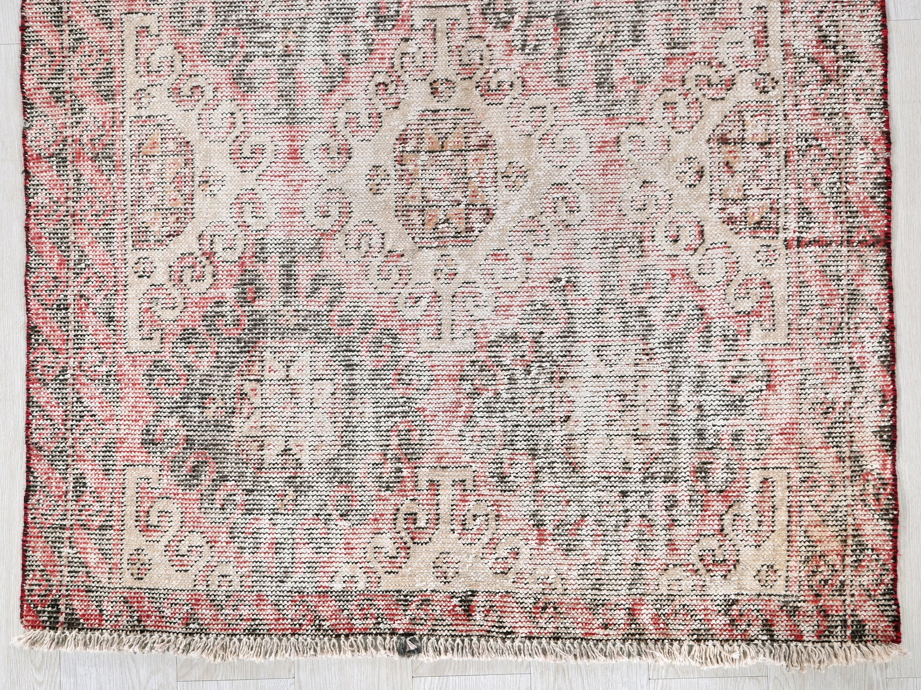This is a hand-knotted, one-of-a-kind vintage rug. Due to the nature of this piece, there may be slight imperfections in its wear, shape, dimensions, and color. All of our rugs are professionally cleaned and repaired.