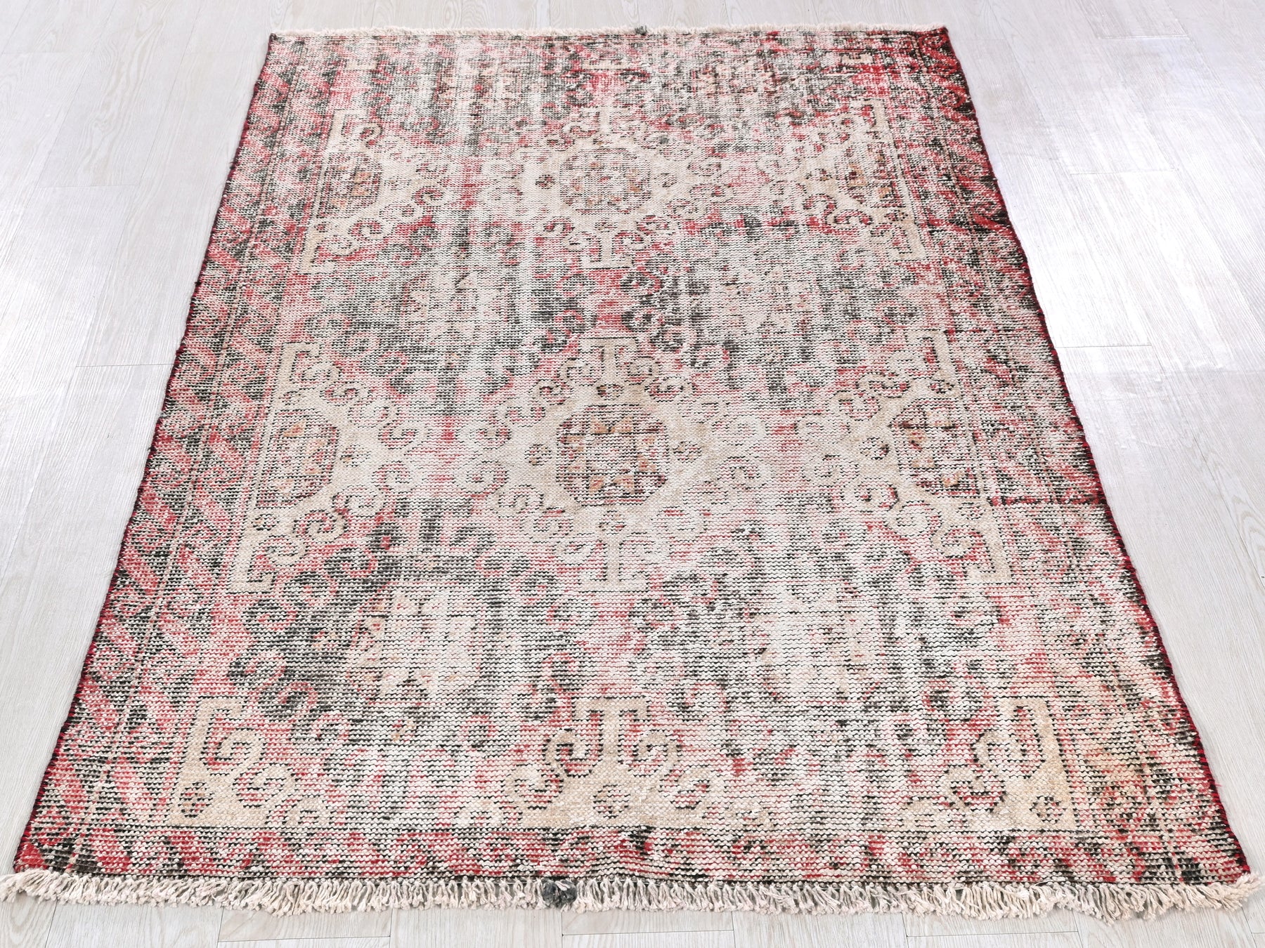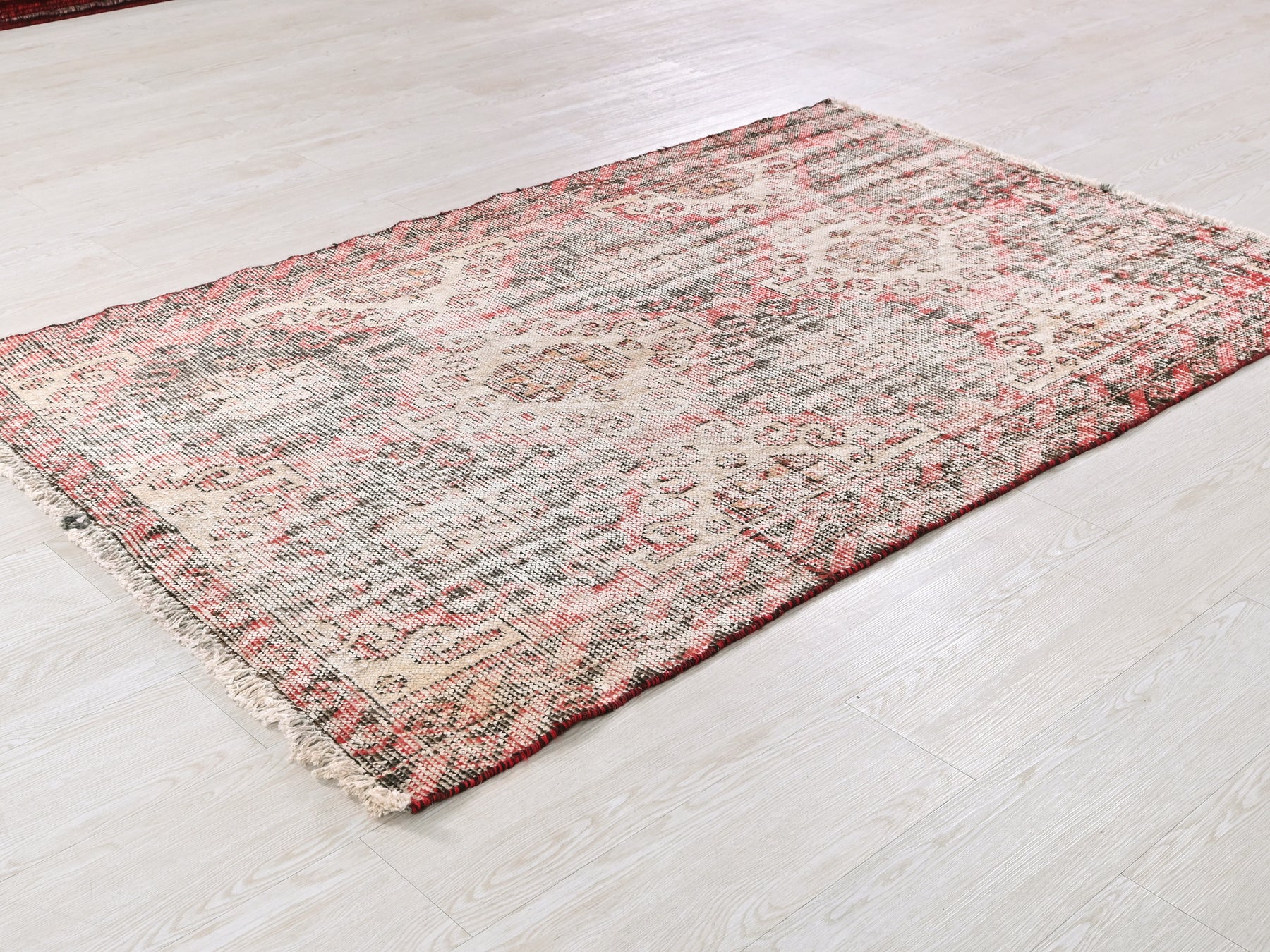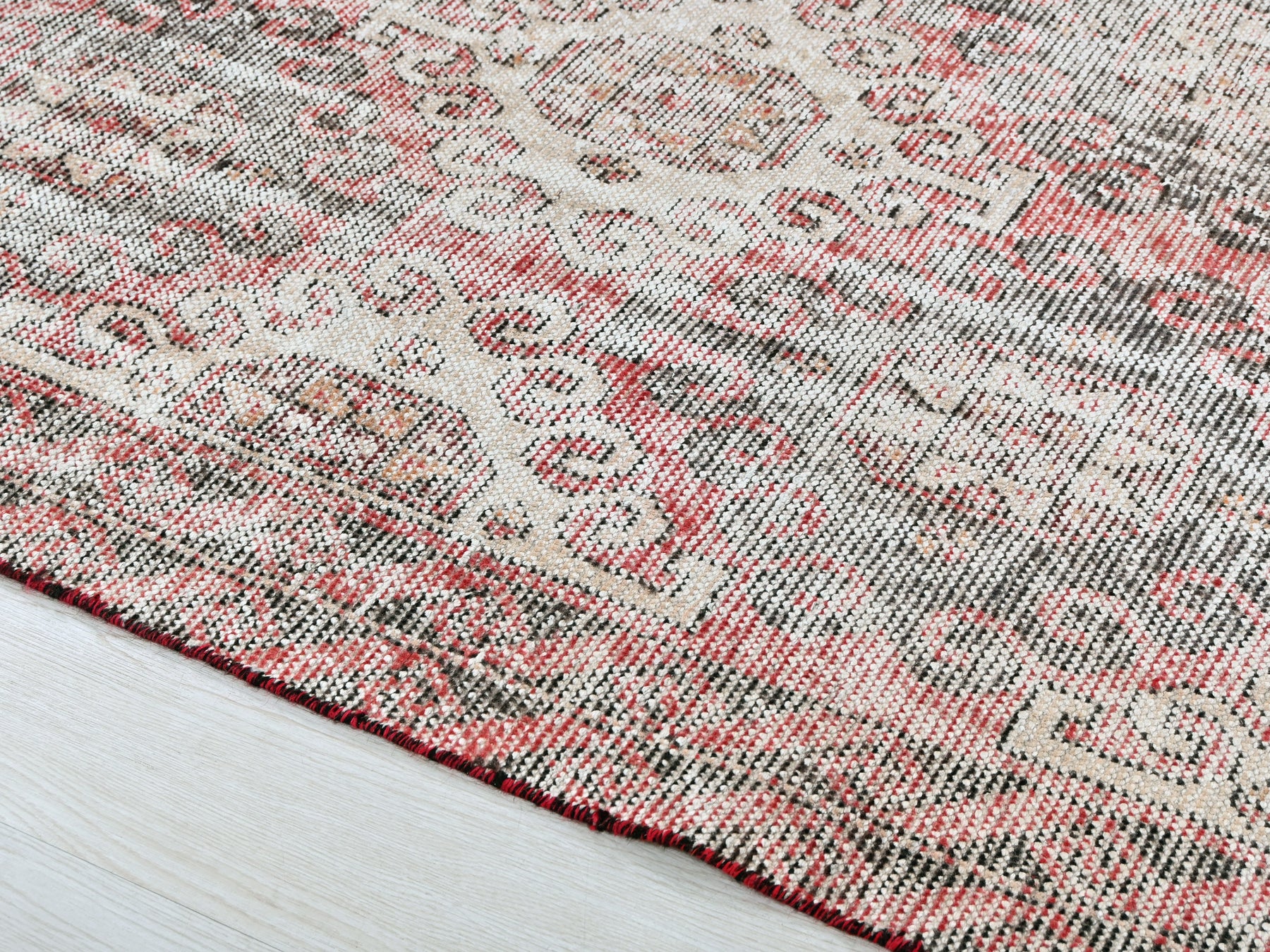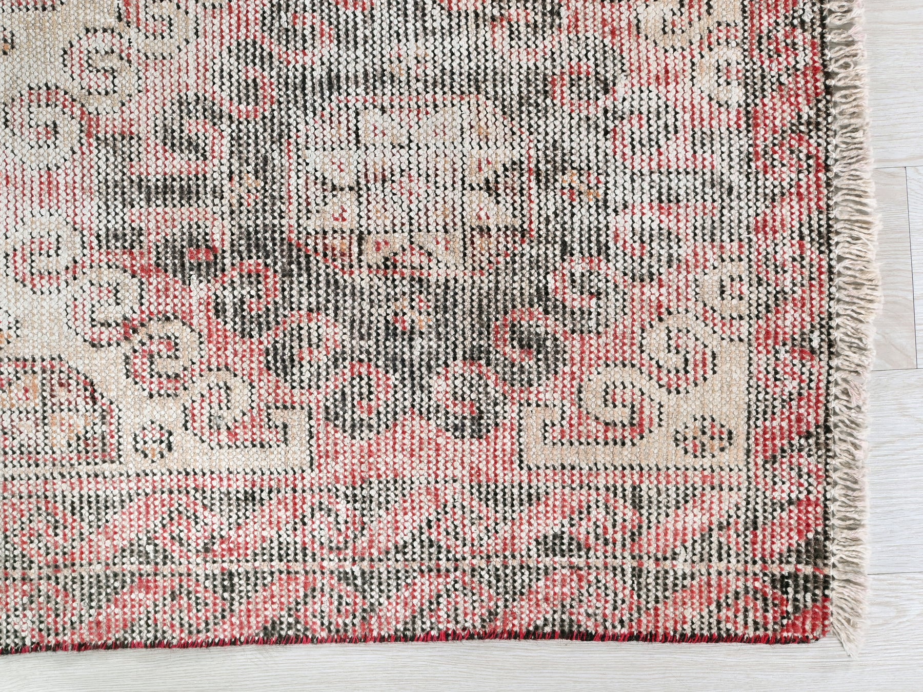 This is a hand-knotted, one-of-a-kind vintage rug. Due to the nature of this piece, there may be slight imperfections in its wear, shape, dimensions, and color. All of our rugs are professionally cleaned and repaired.