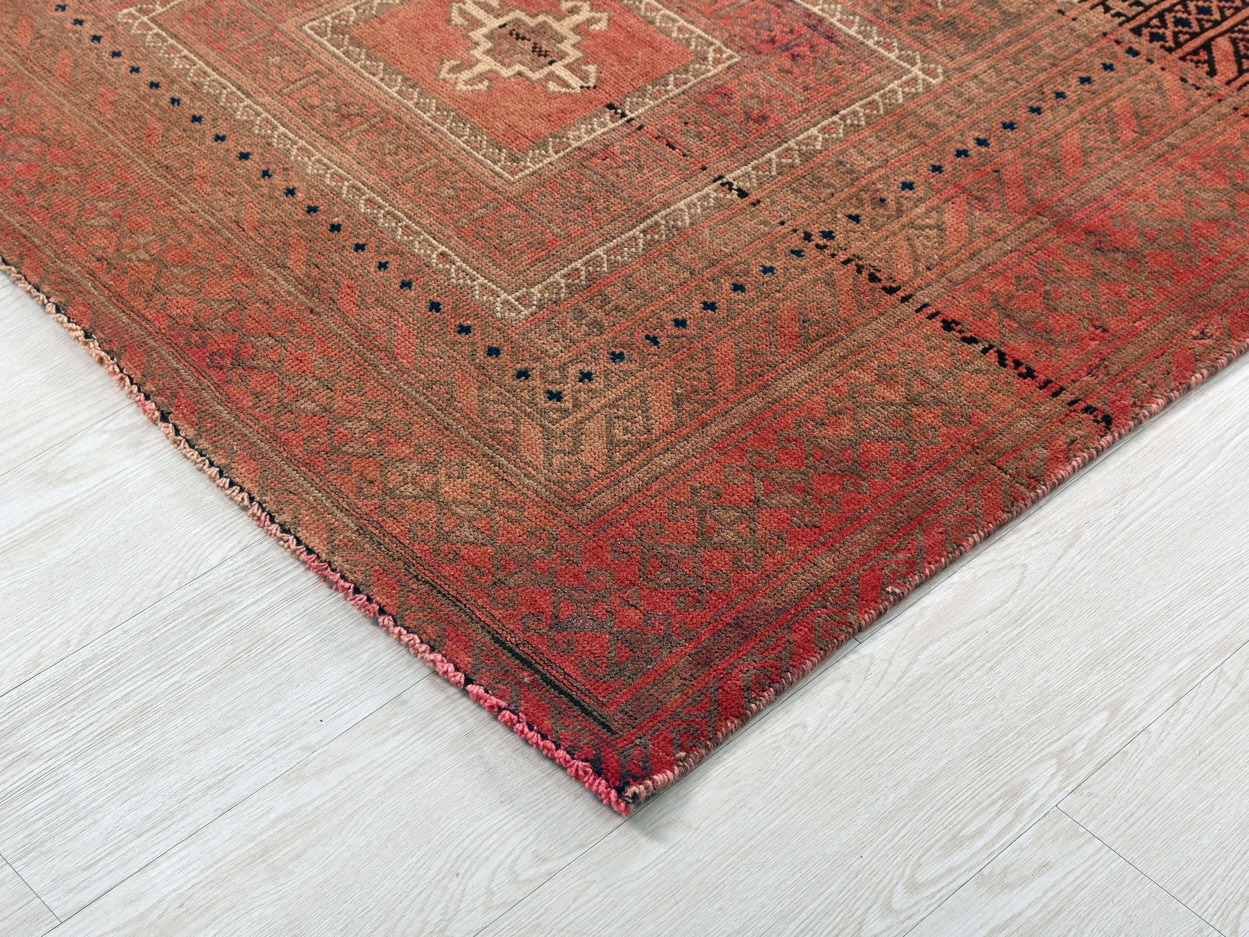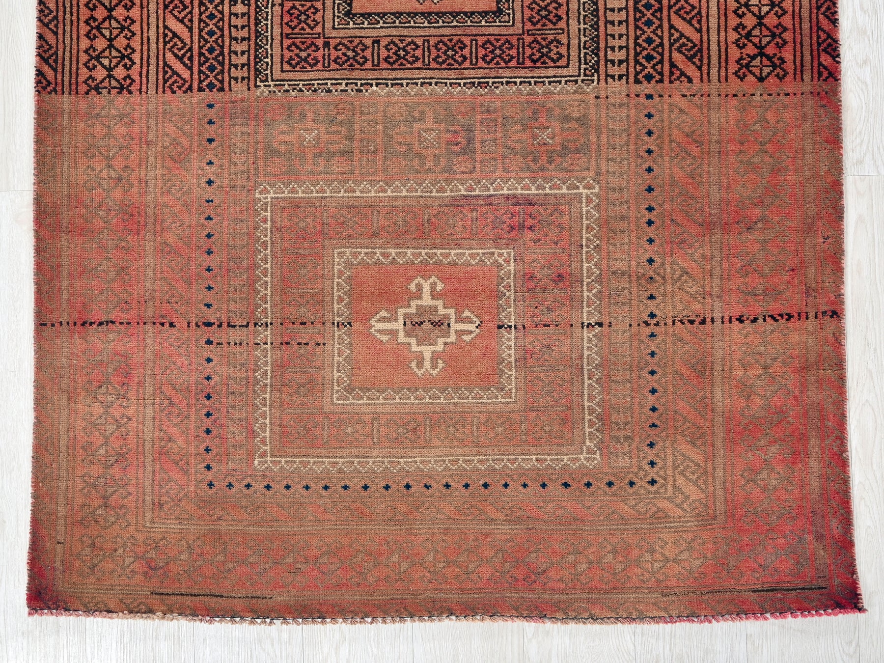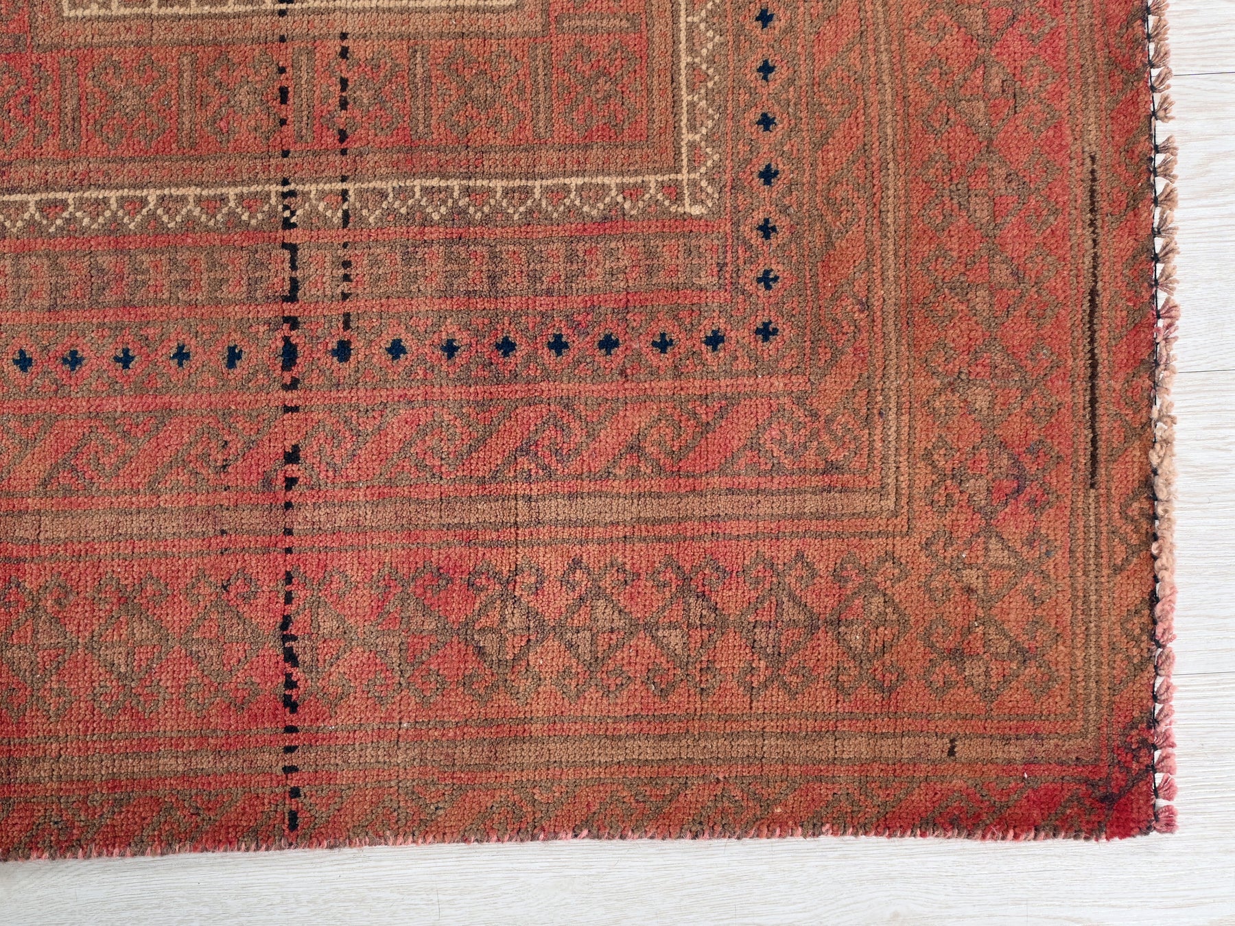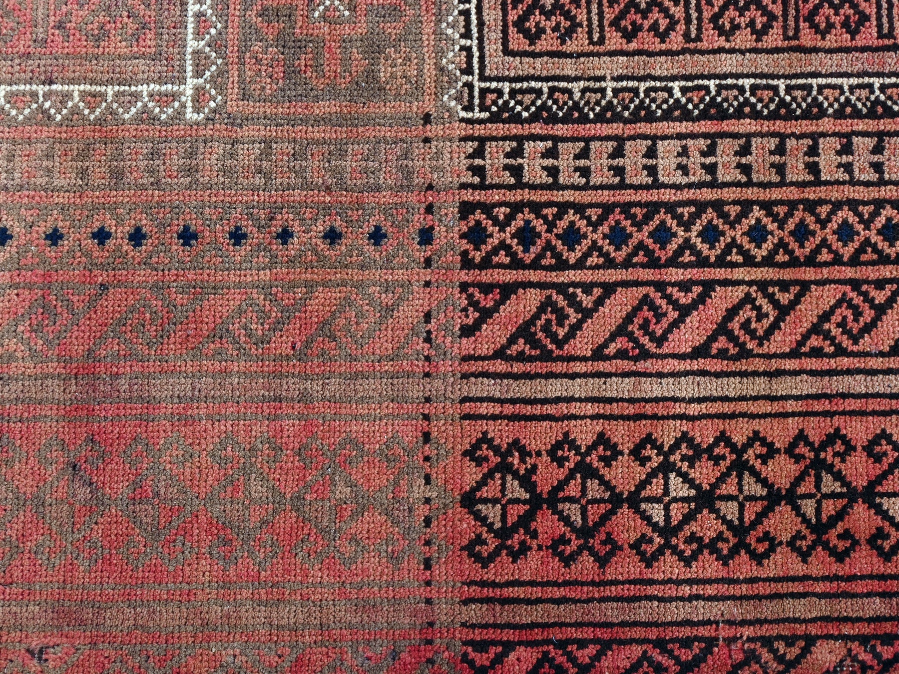 This is a hand-knotted, one-of-a-kind vintage rug. Due to the nature of this piece, there may be slight imperfections in its wear, shape, dimensions, and color. All of our rugs are professionally cleaned and repaired.