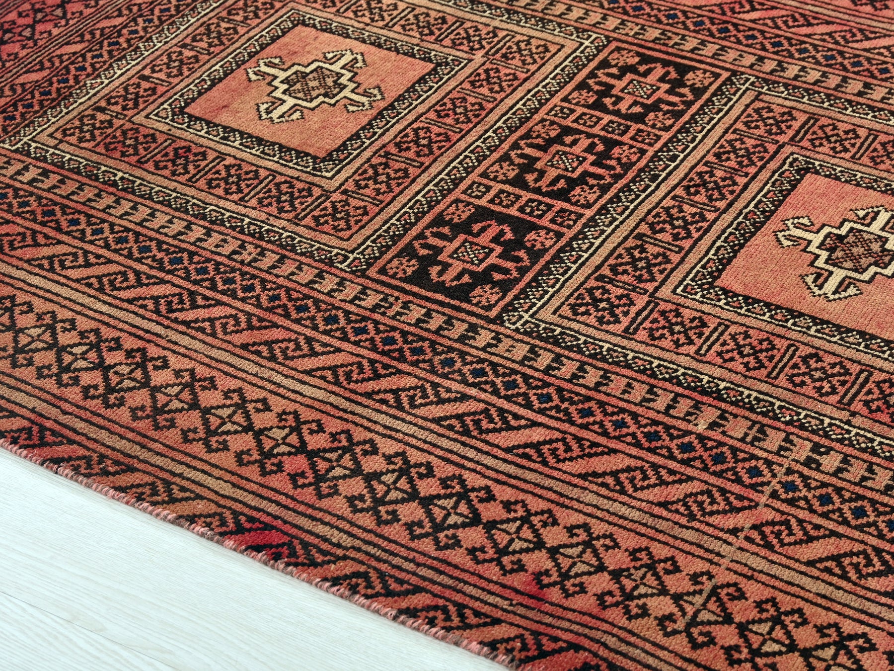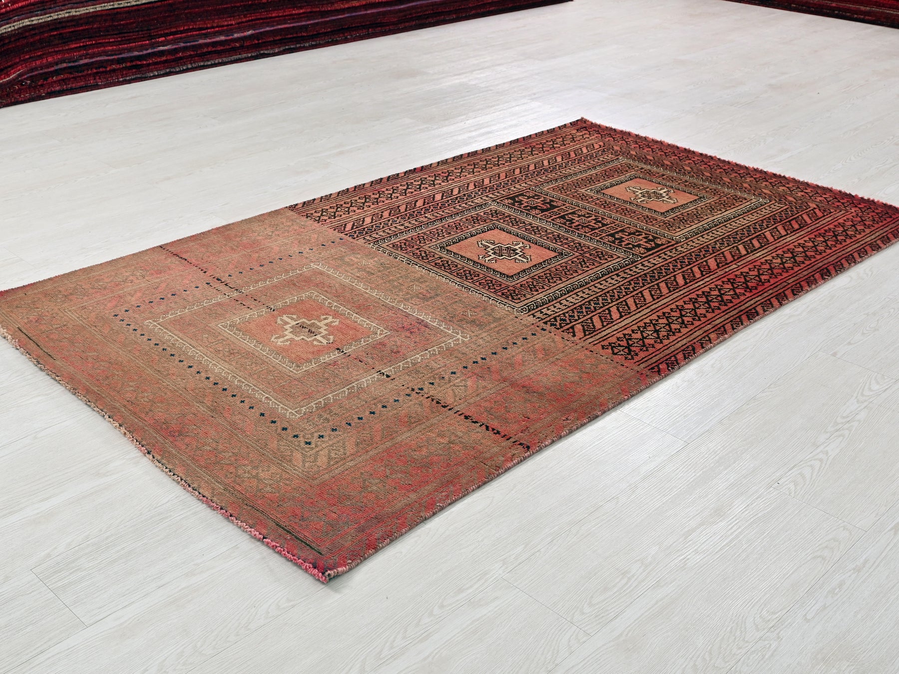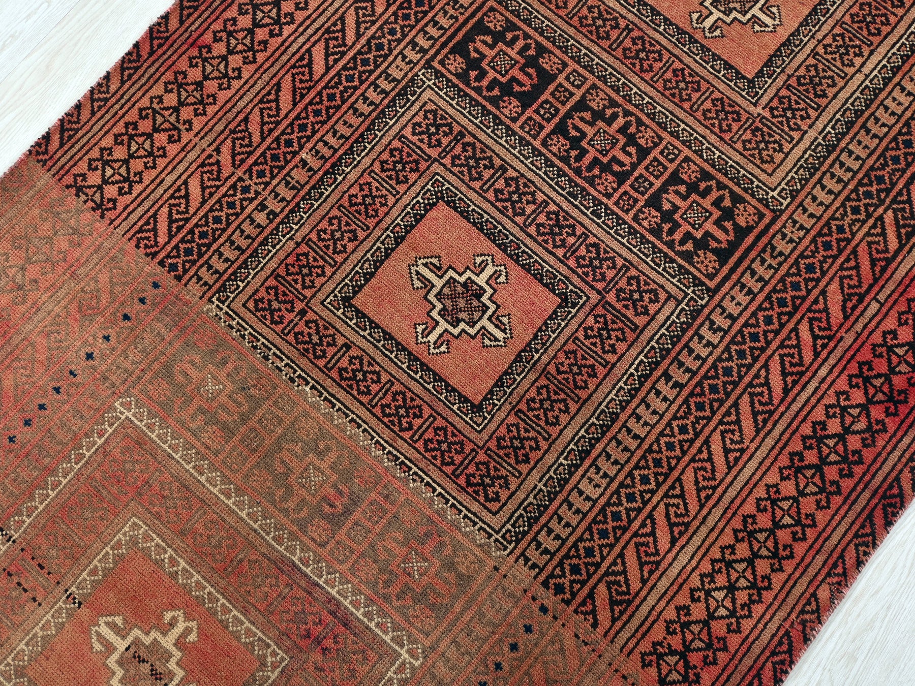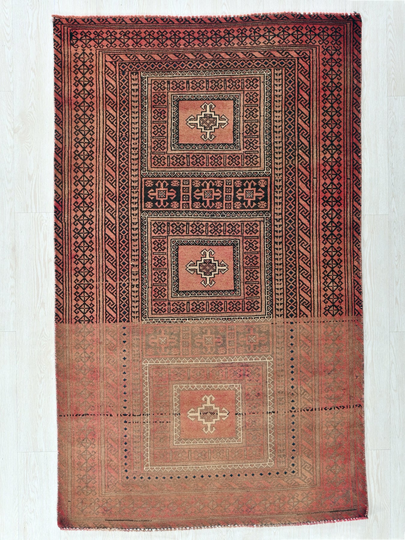 This is a hand-knotted, one-of-a-kind vintage rug. Due to the nature of this piece, there may be slight imperfections in its wear, shape, dimensions, and color. All of our rugs are professionally cleaned and repaired.