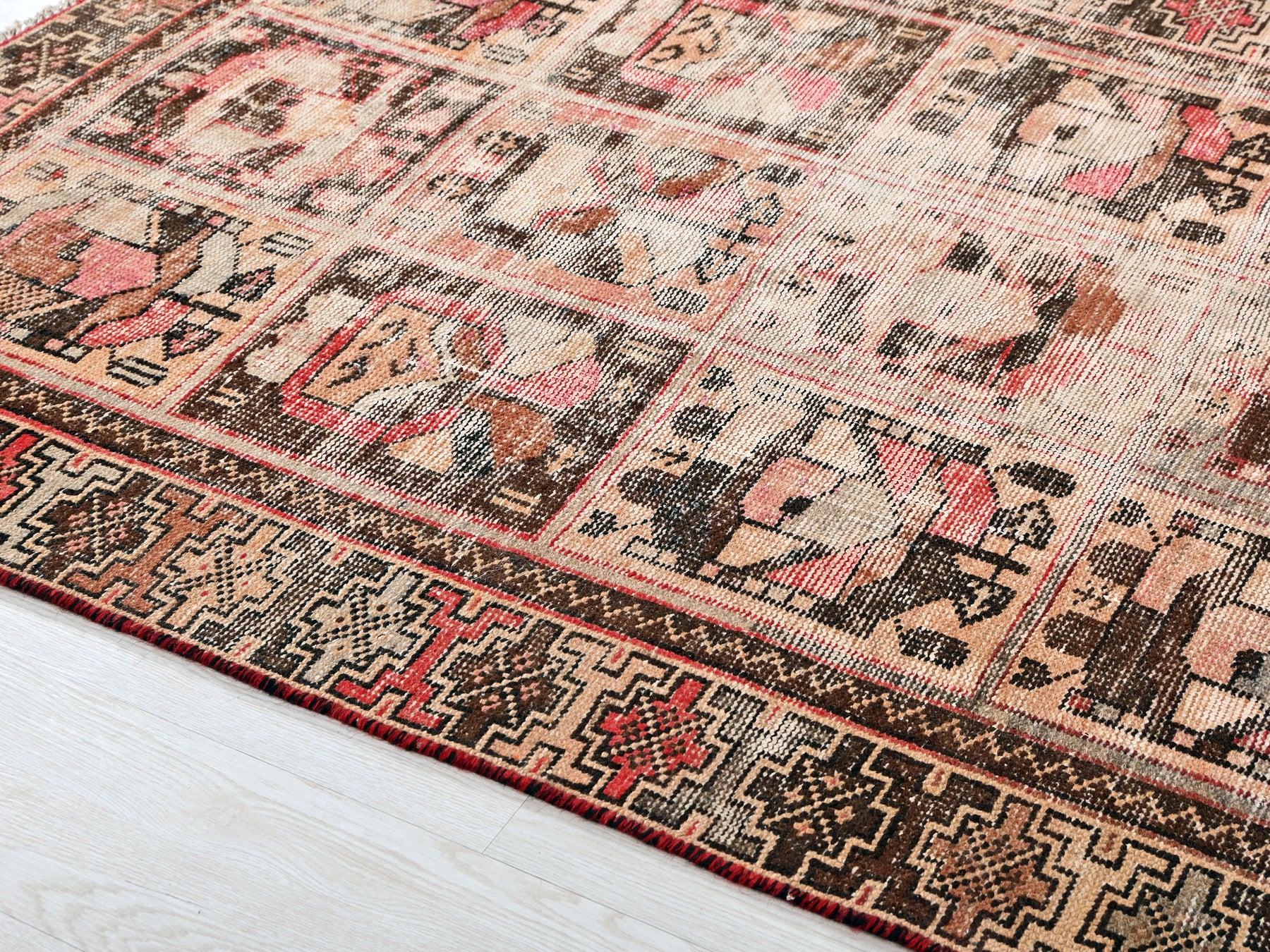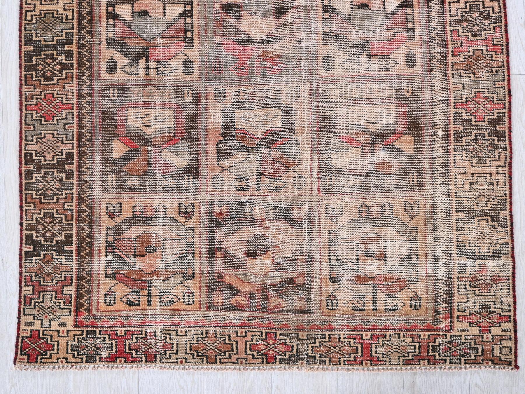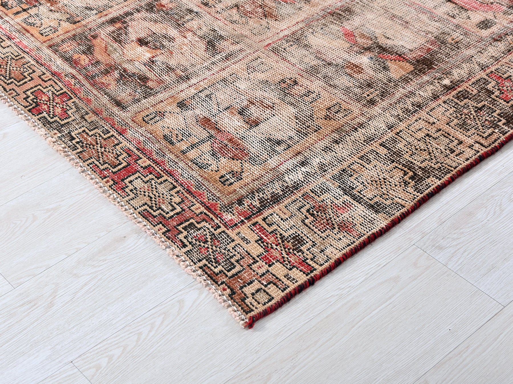 This is a hand-knotted, one-of-a-kind vintage rug. Due to the nature of this piece, there may be slight imperfections in its wear, shape, dimensions, and color. All of our rugs are professionally cleaned and repaired.