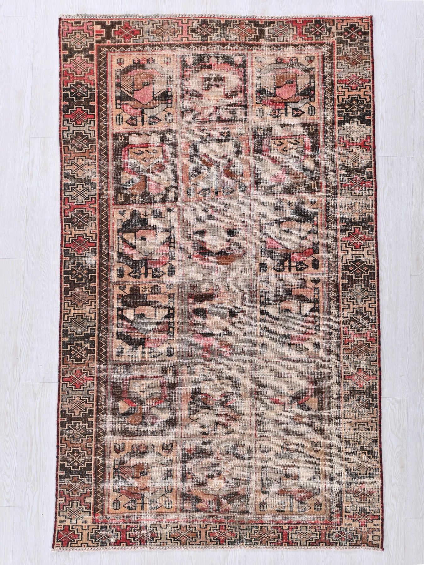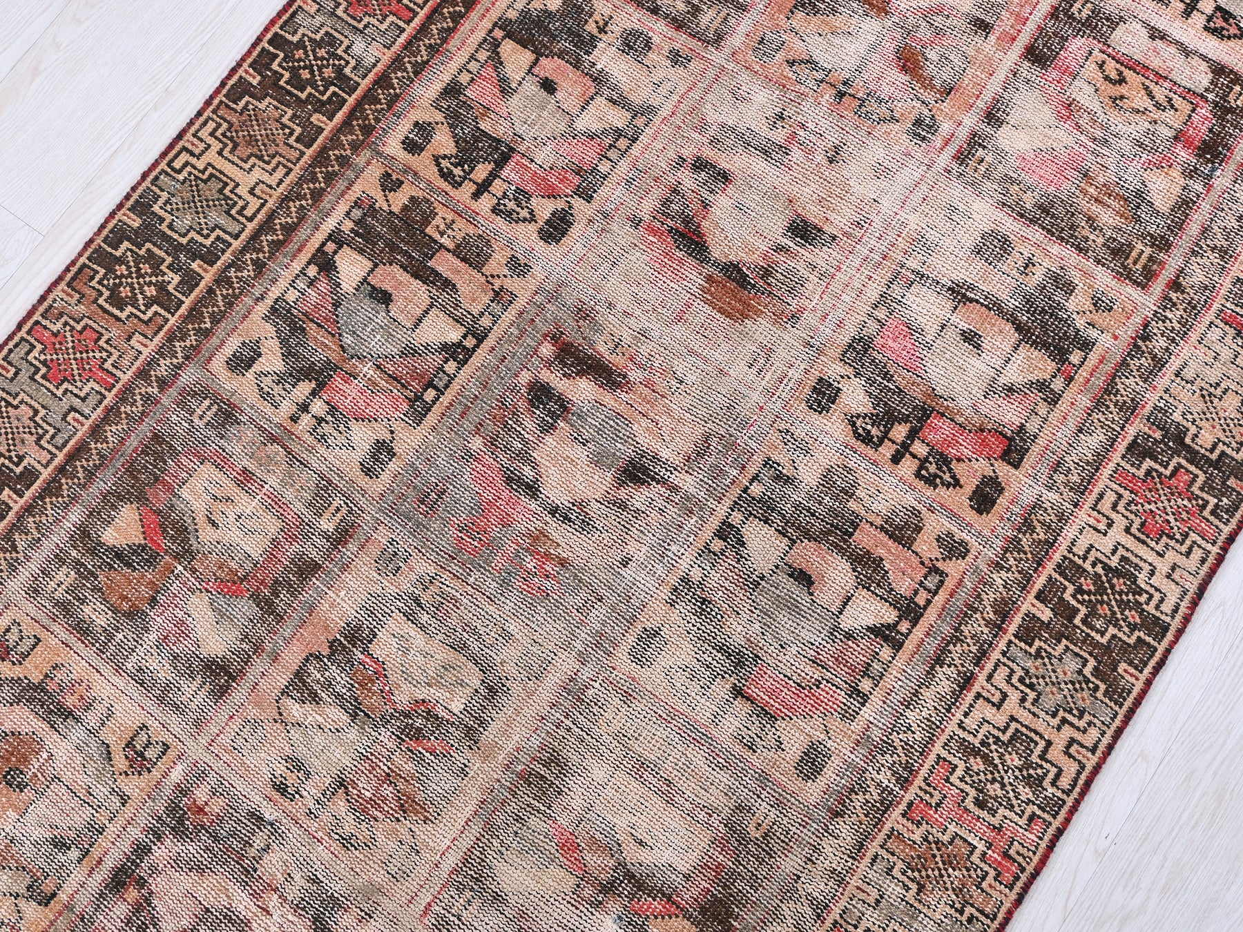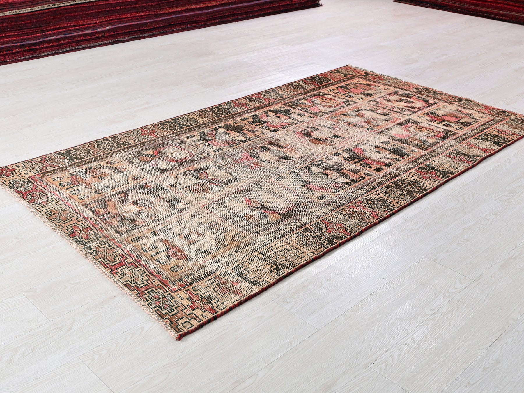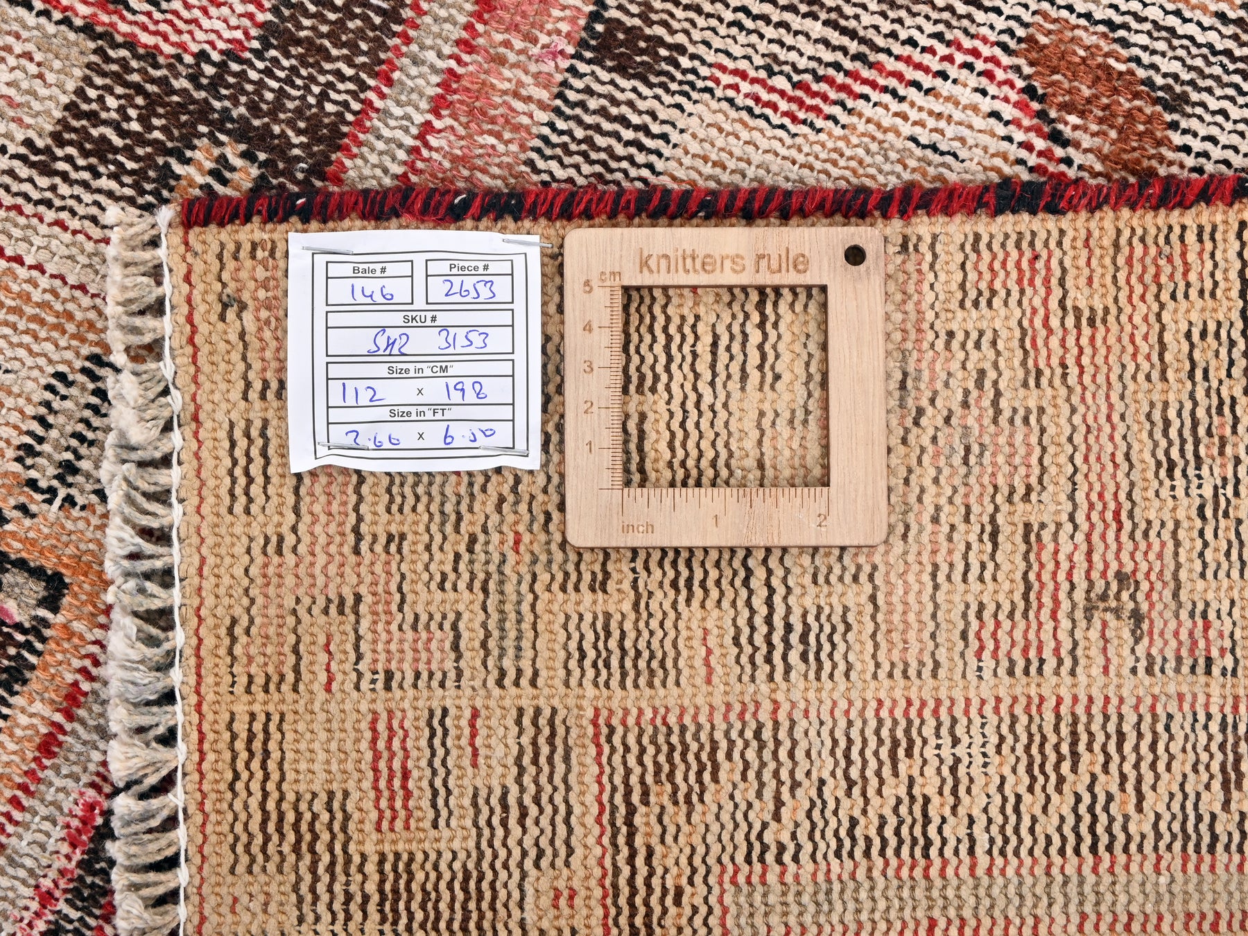 This is a hand-knotted, one-of-a-kind vintage rug. Due to the nature of this piece, there may be slight imperfections in its wear, shape, dimensions, and color. All of our rugs are professionally cleaned and repaired.