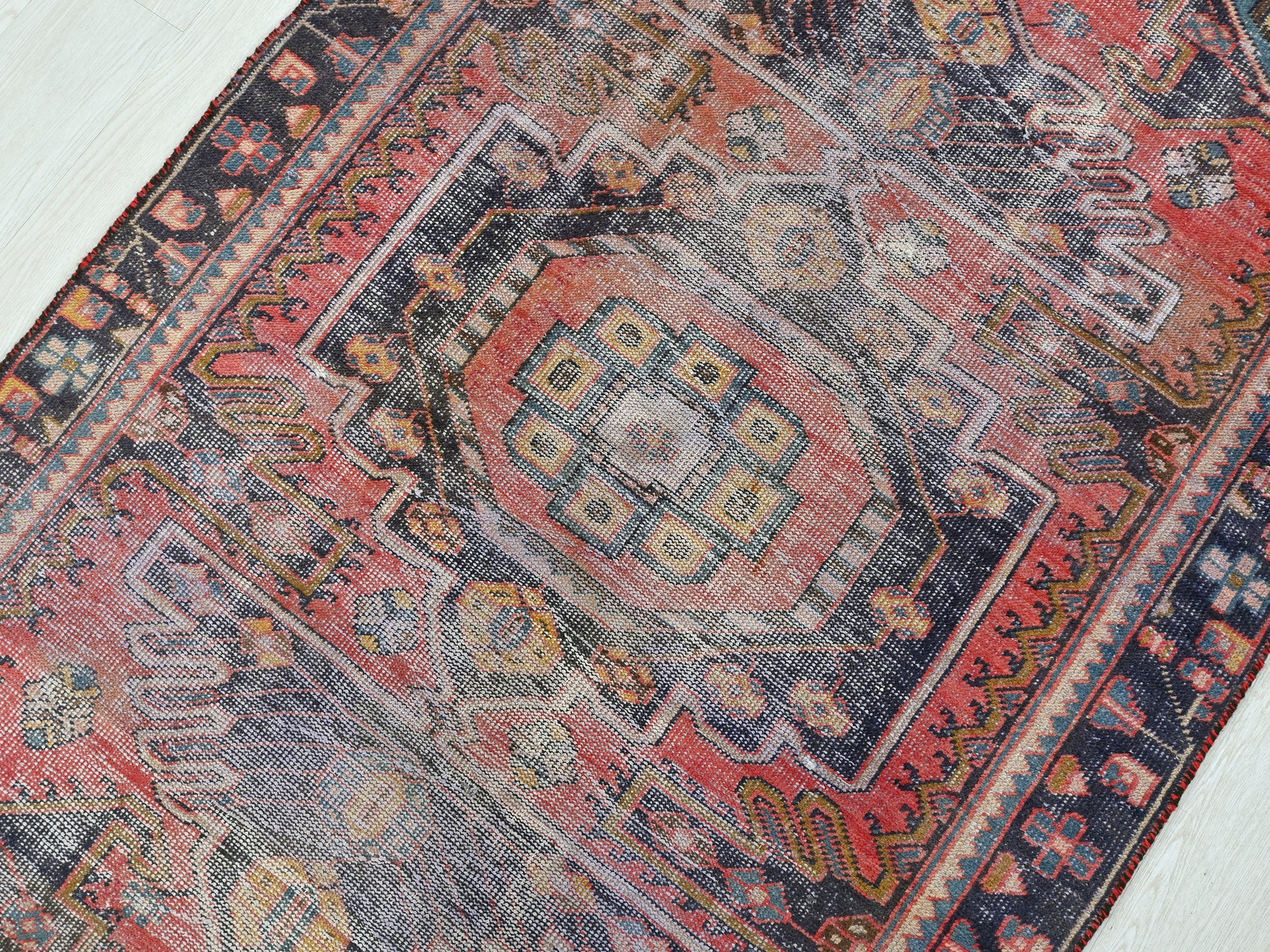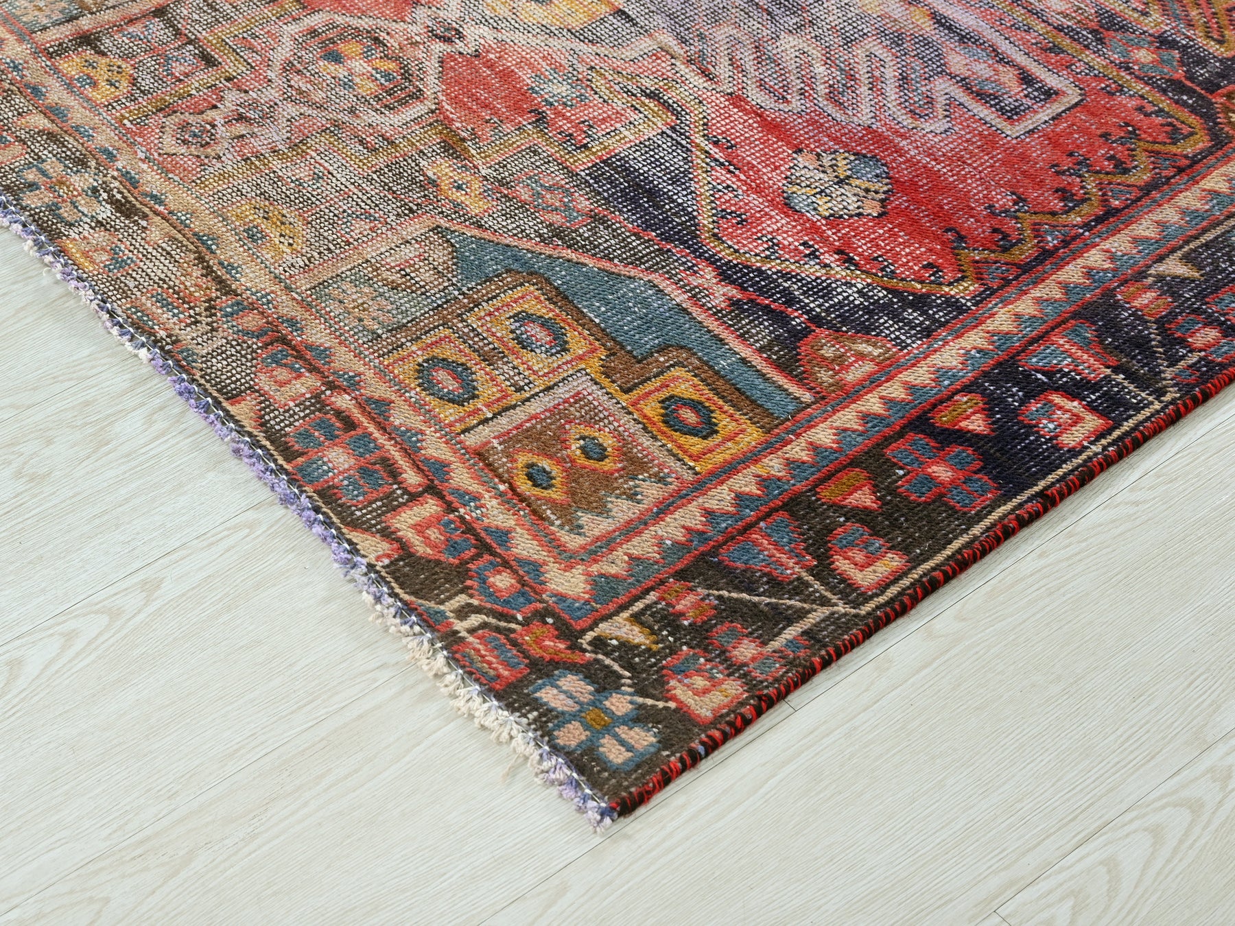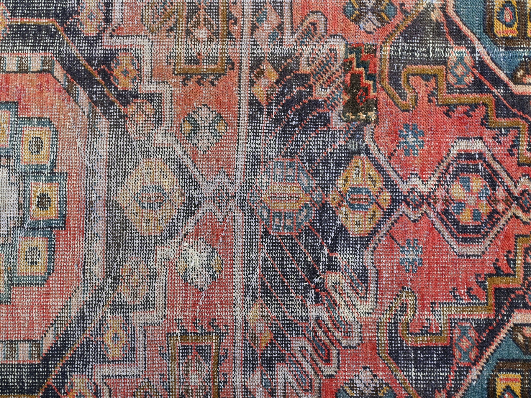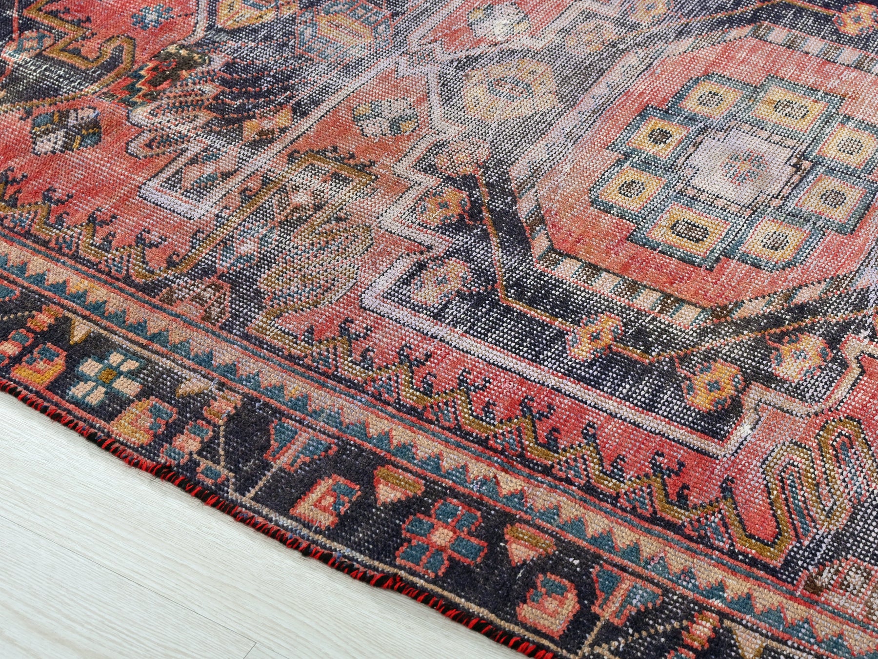 This is a hand-knotted, one-of-a-kind vintage rug. Due to the nature of this piece, there may be slight imperfections in its wear, shape, dimensions, and color. All of our rugs are professionally cleaned and repaired.