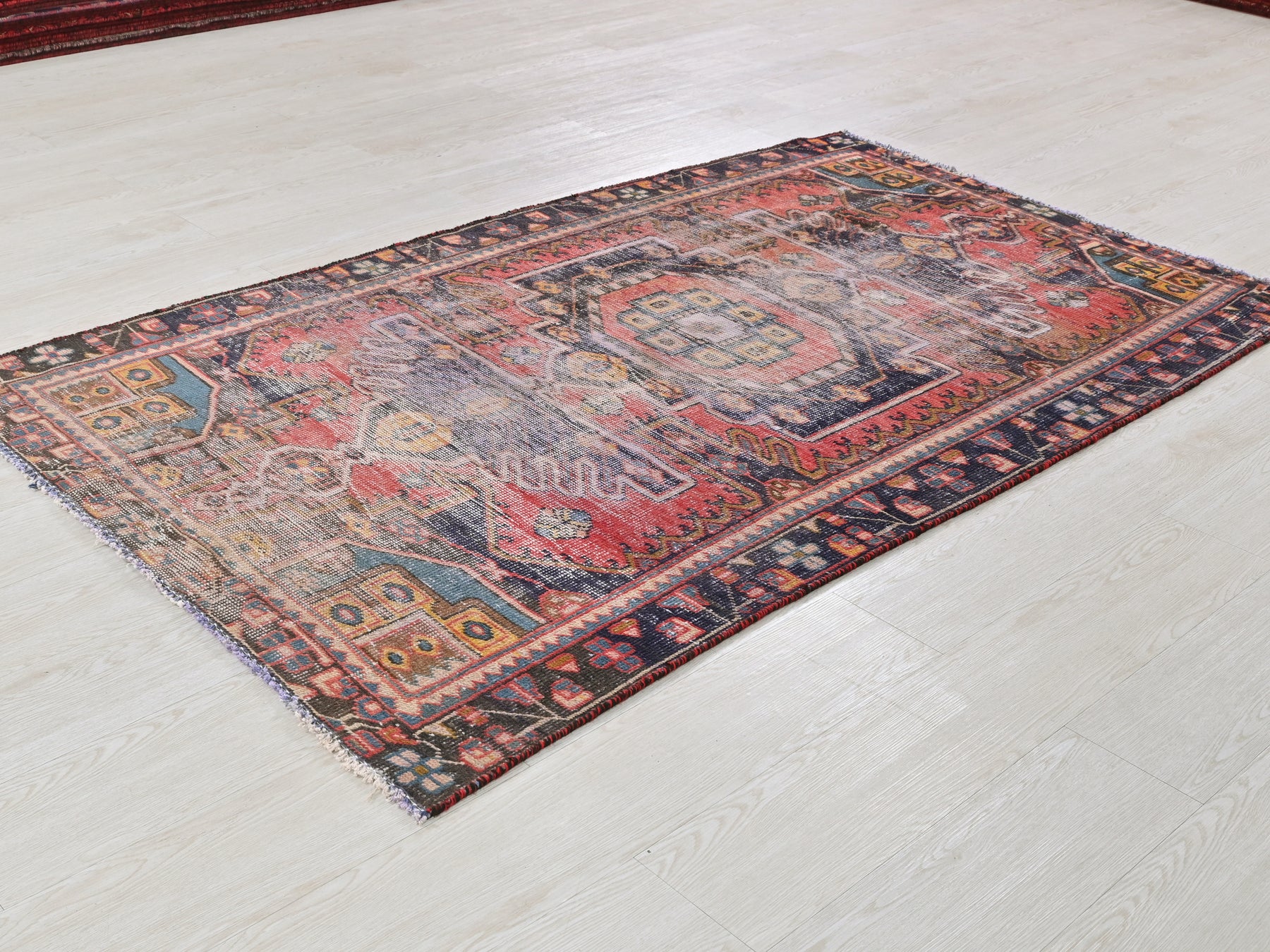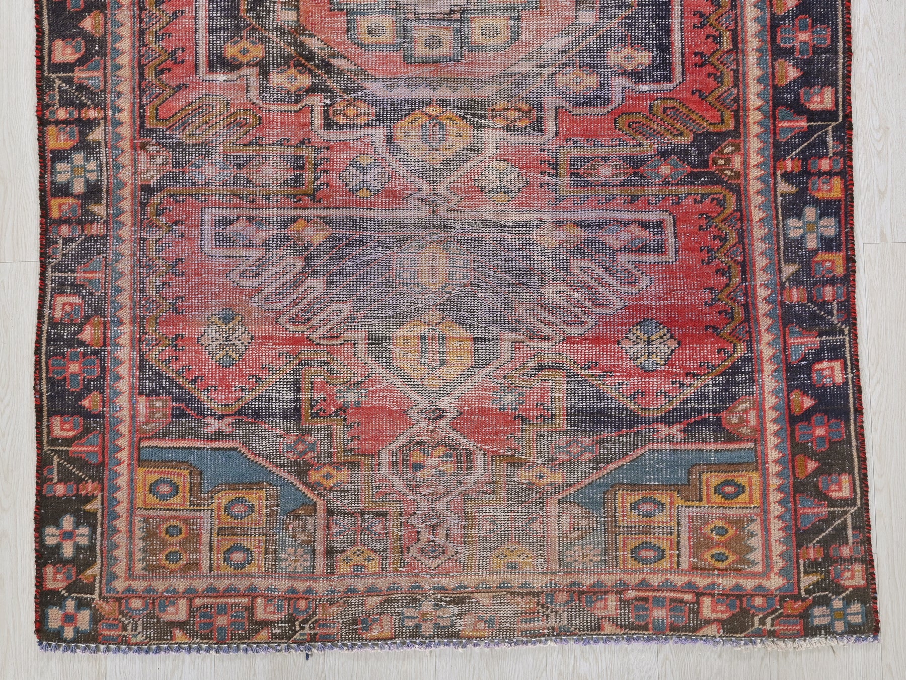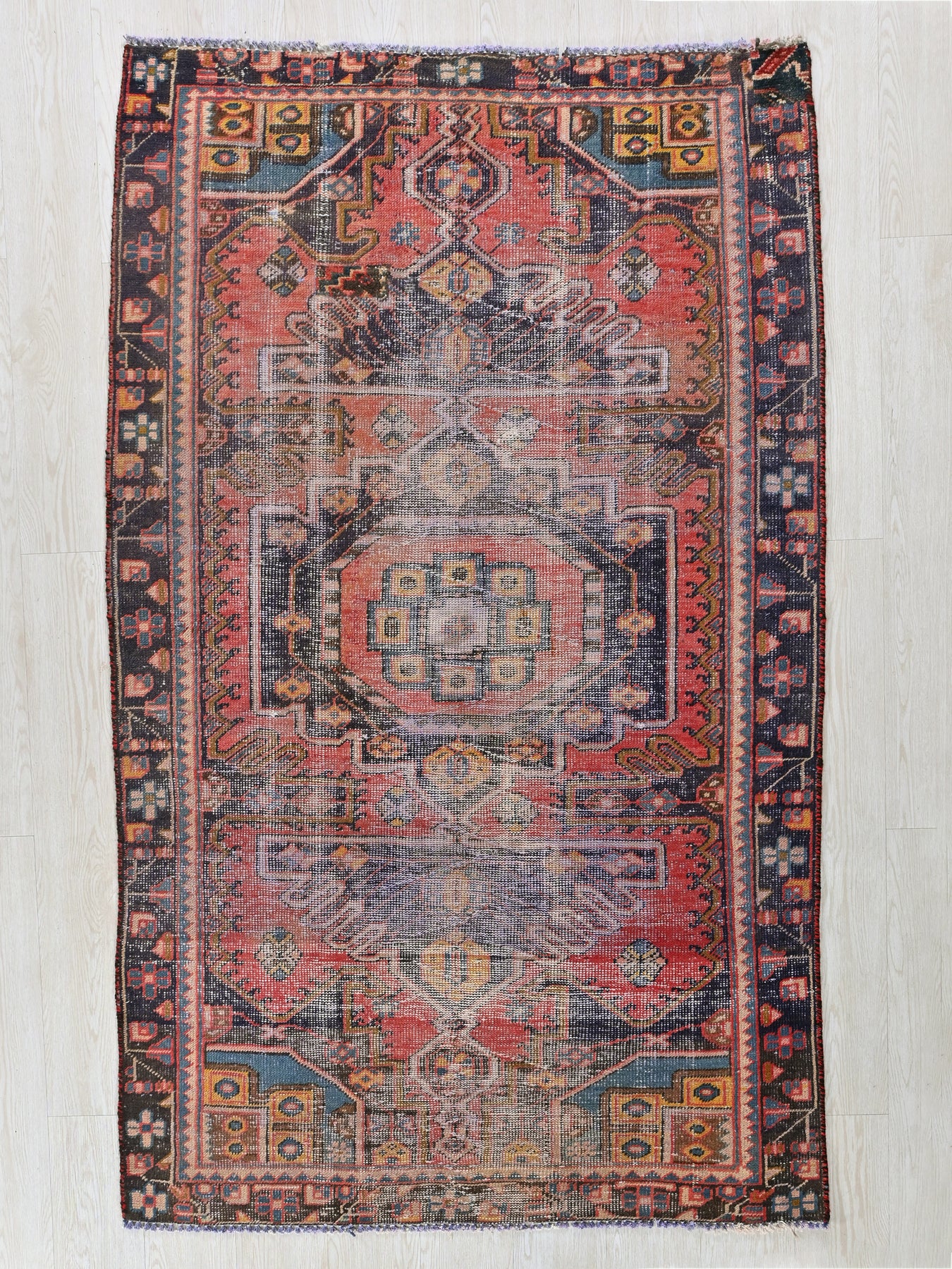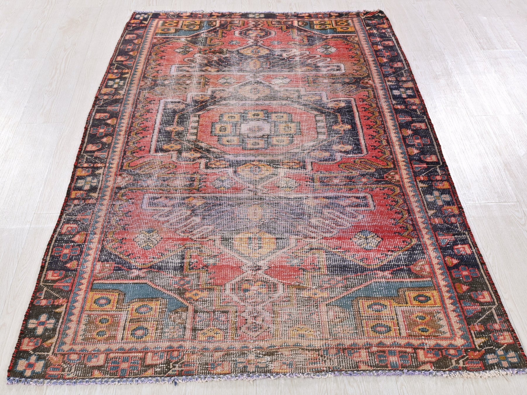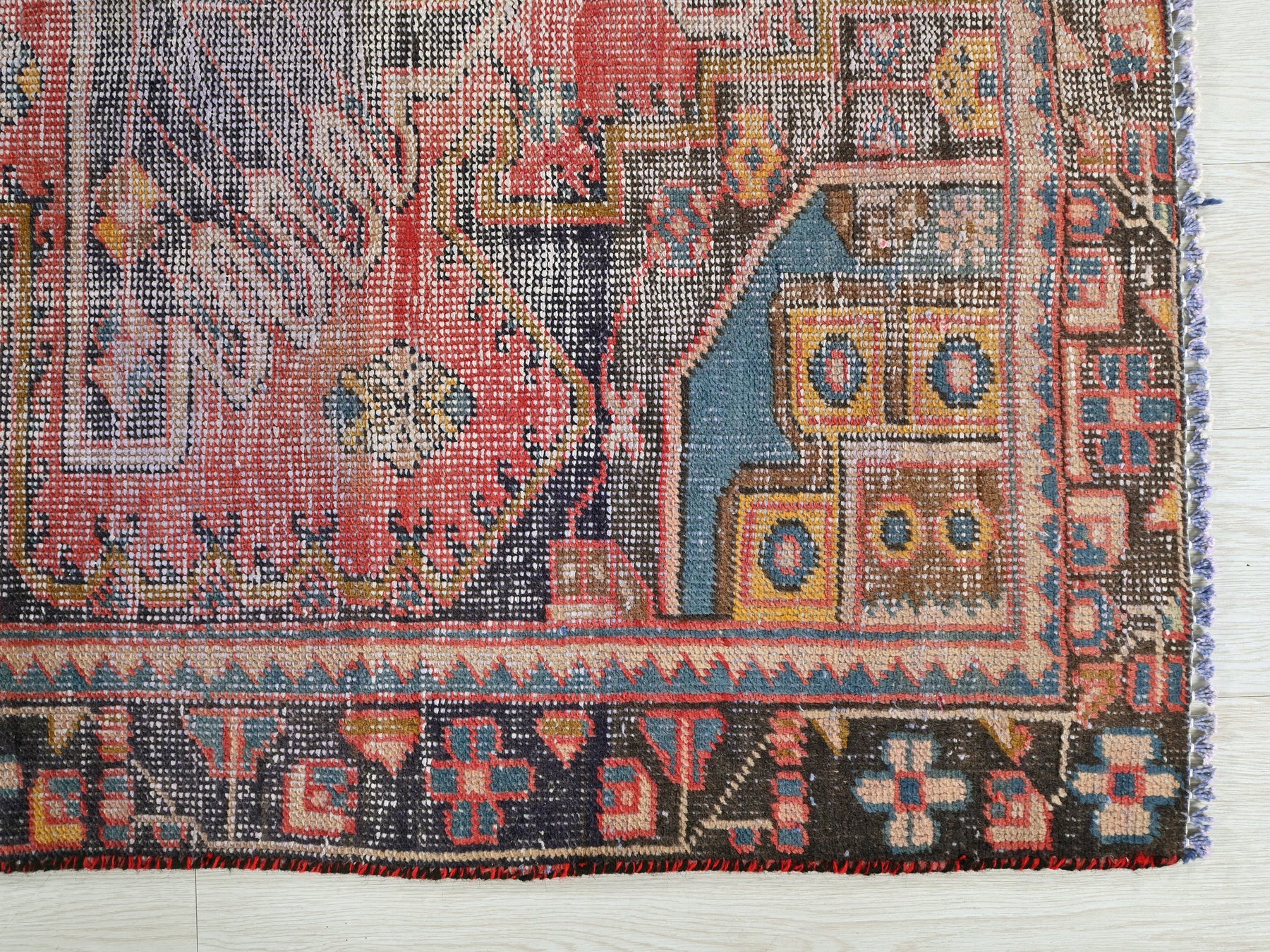 This is a hand-knotted, one-of-a-kind vintage rug. Due to the nature of this piece, there may be slight imperfections in its wear, shape, dimensions, and color. All of our rugs are professionally cleaned and repaired.