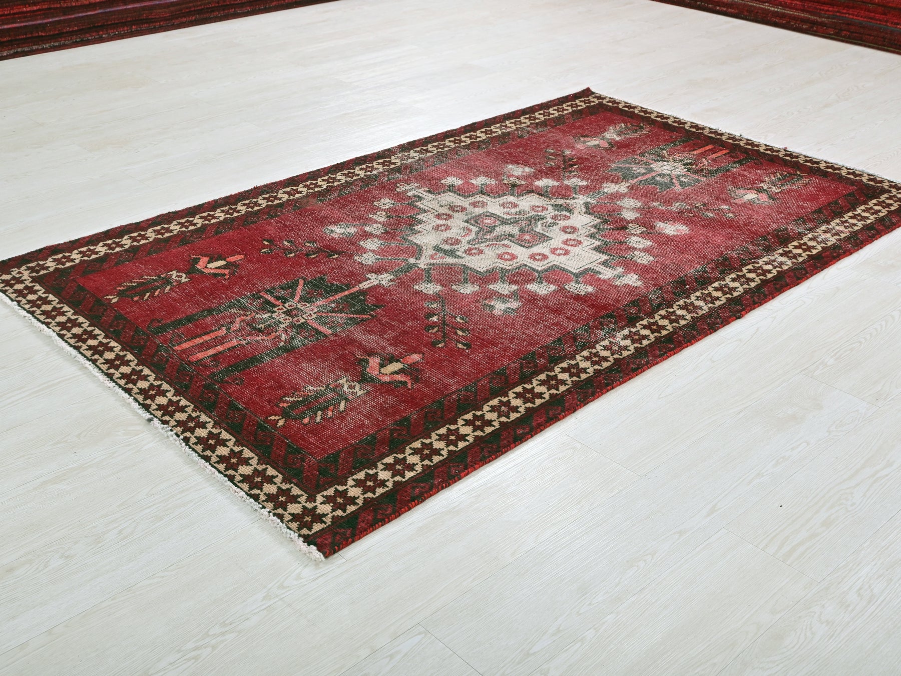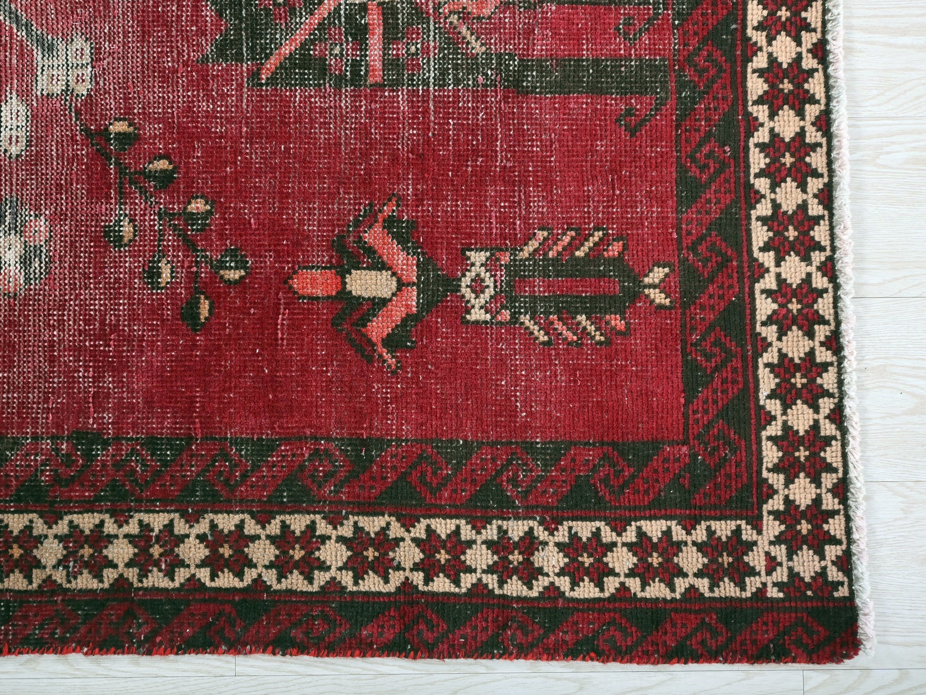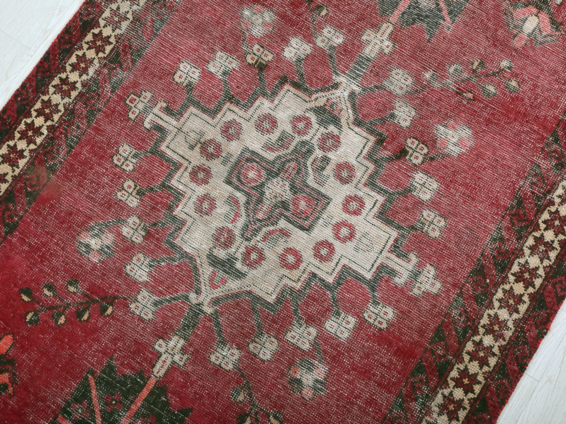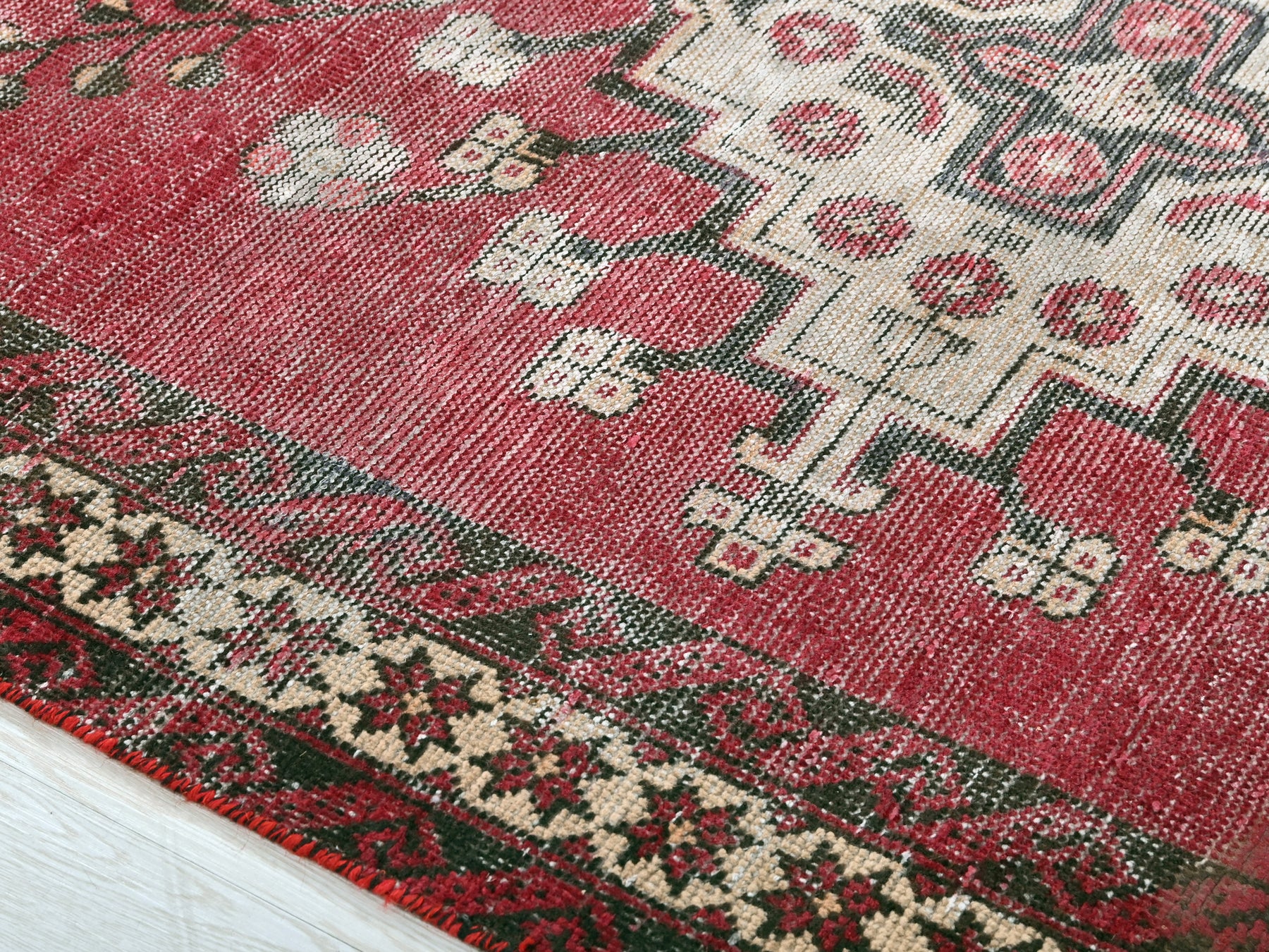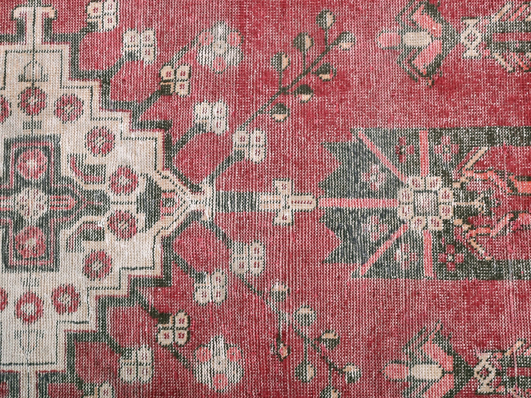 This is a hand-knotted, one-of-a-kind vintage rug. Due to the nature of this piece, there may be slight imperfections in its wear, shape, dimensions, and color. All of our rugs are professionally cleaned and repaired.