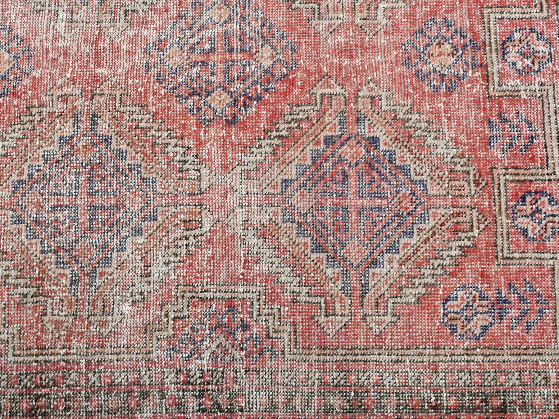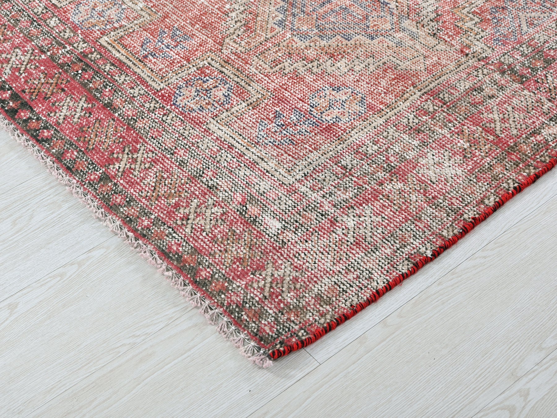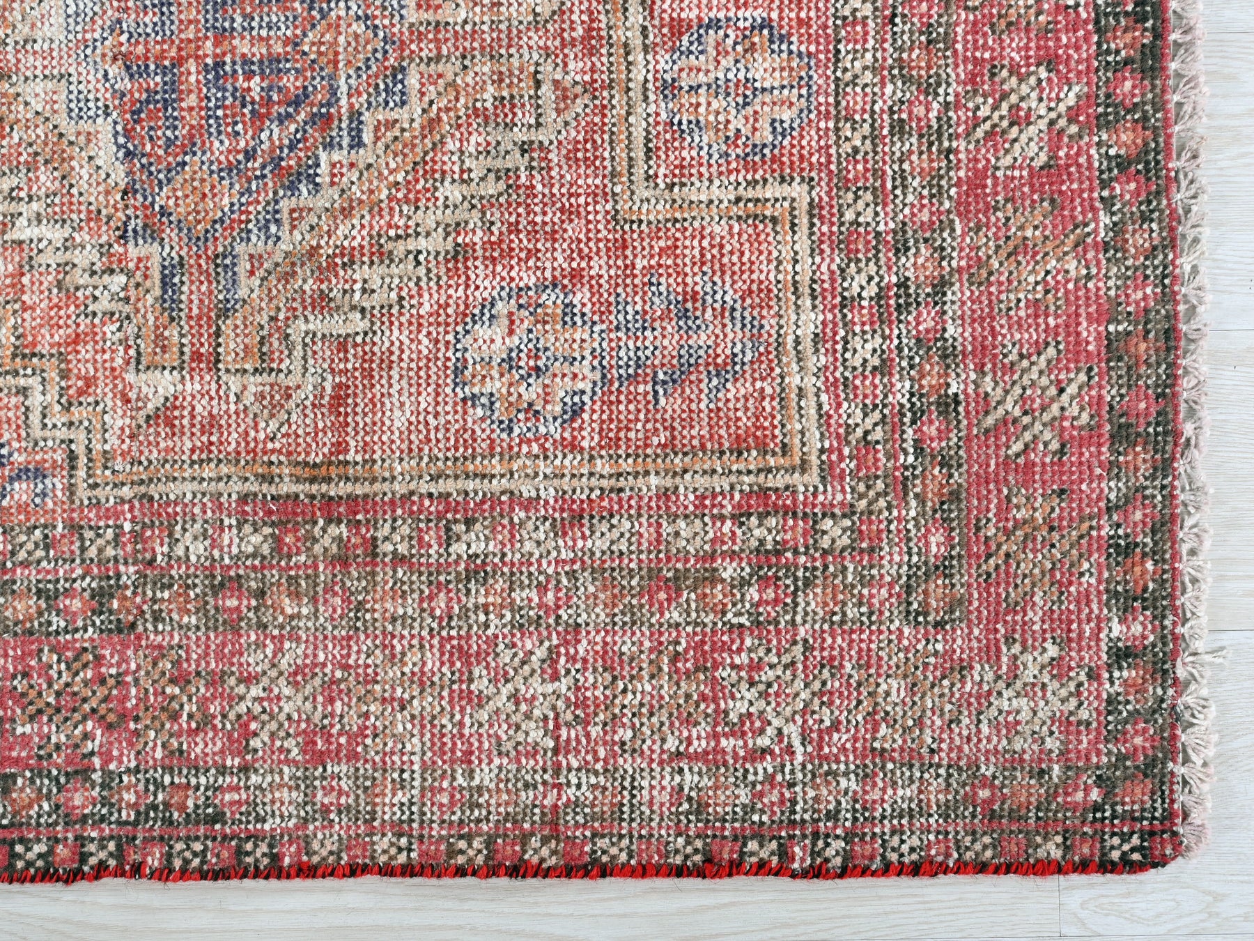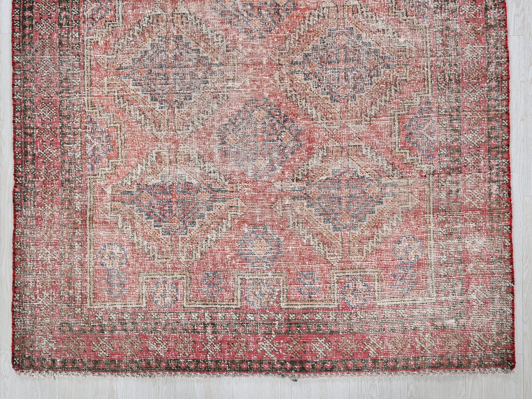 This is a hand-knotted, one-of-a-kind vintage rug. Due to the nature of this piece, there may be slight imperfections in its wear, shape, dimensions, and color. All of our rugs are professionally cleaned and repaired.