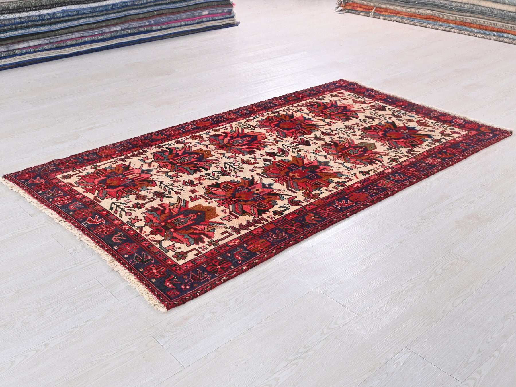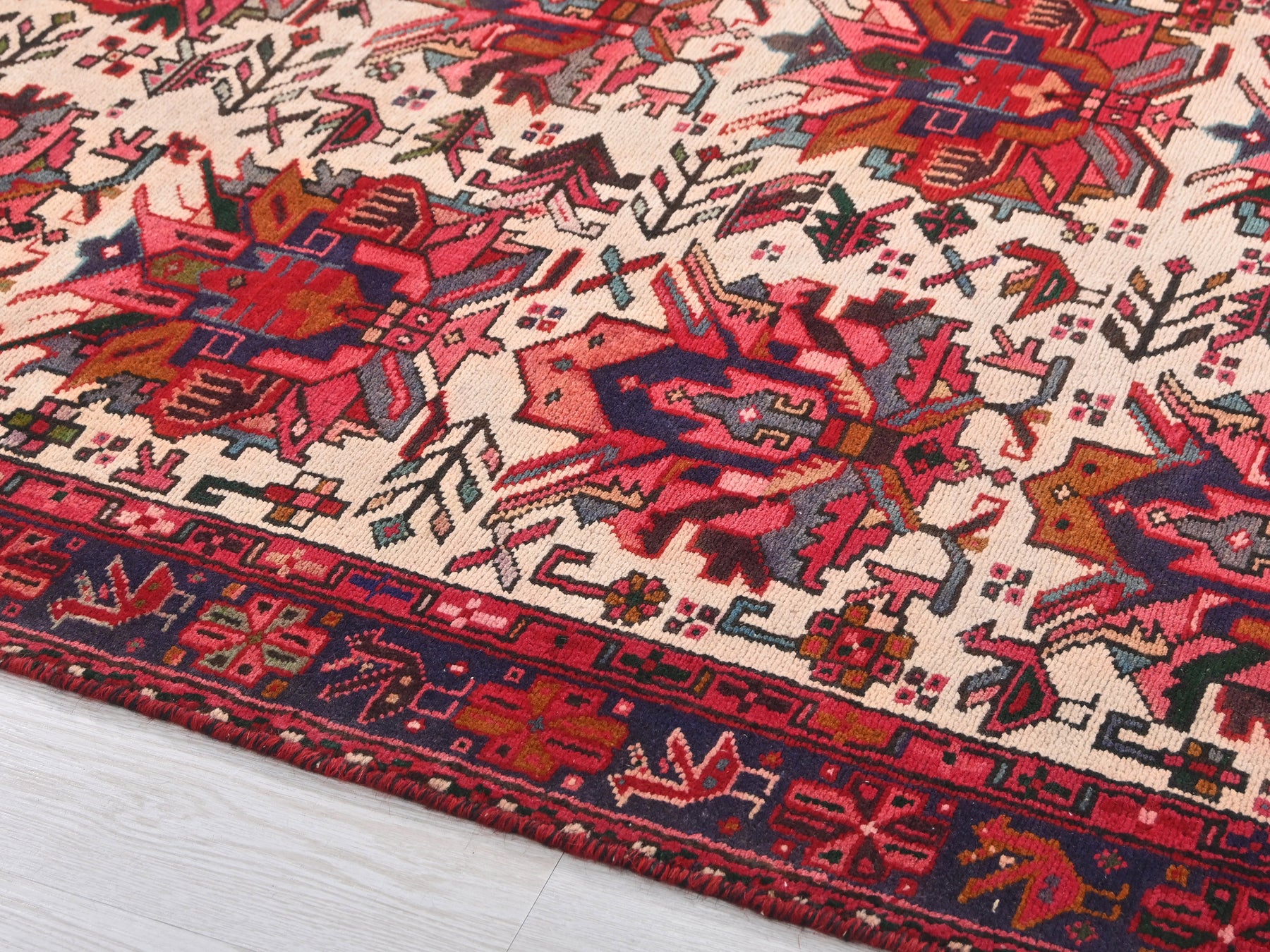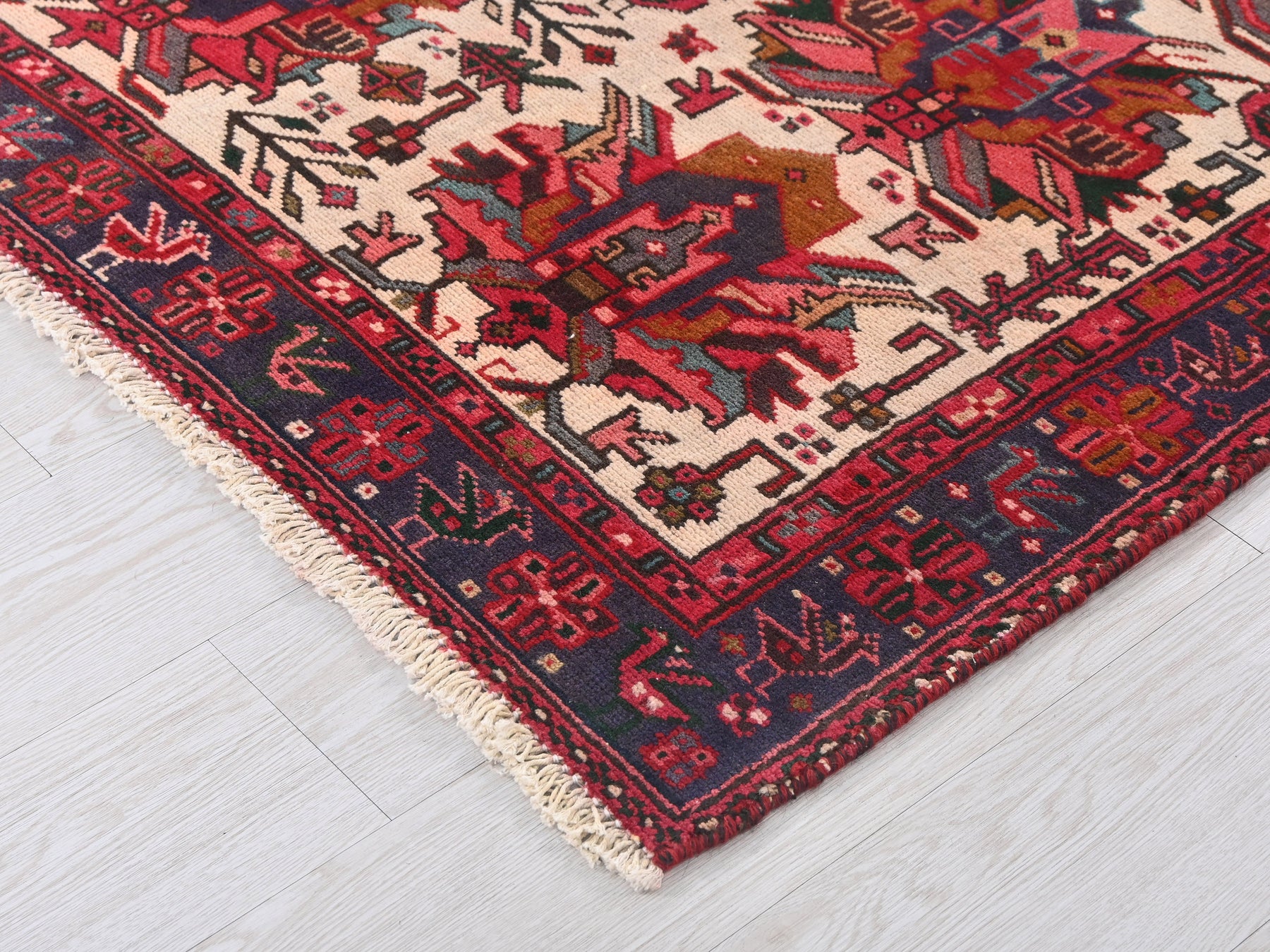 This is a hand-knotted, one-of-a-kind vintage rug. Due to the nature of this piece, there may be slight imperfections in its wear, shape, dimensions, and color. All of our rugs are professionally cleaned and repaired.