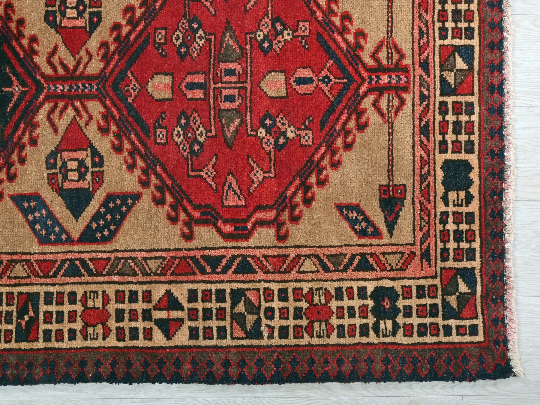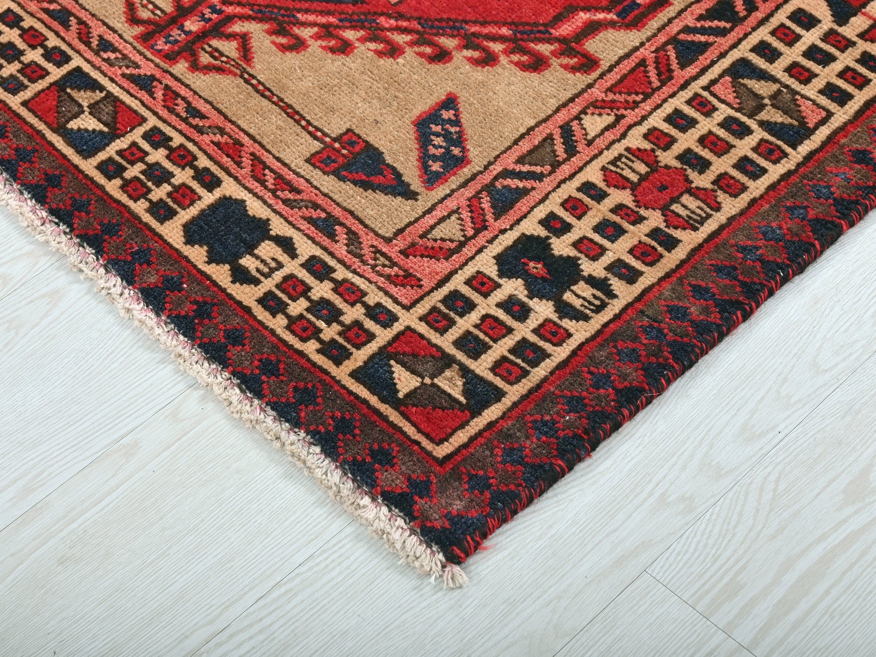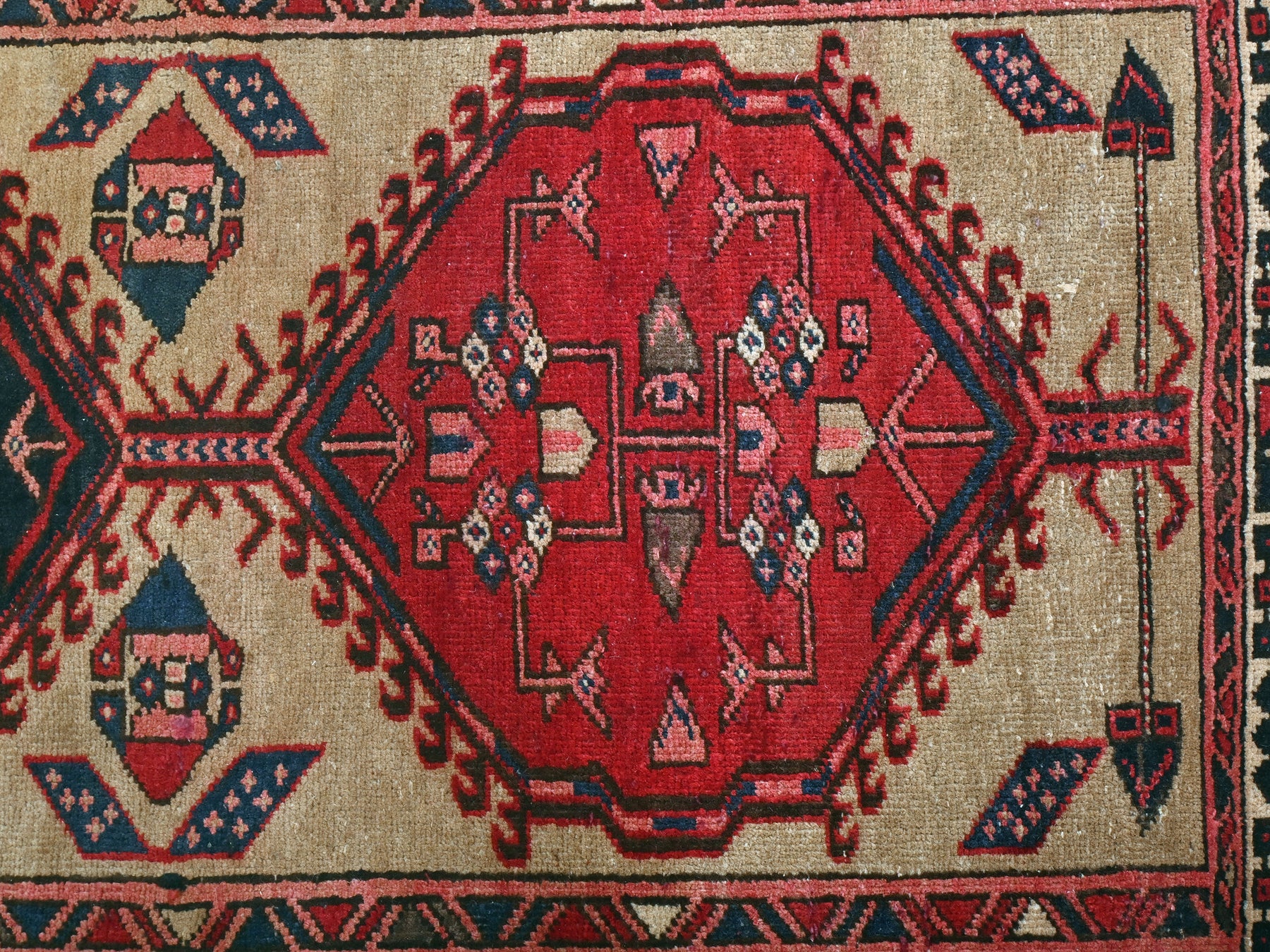 This is a hand-knotted, one-of-a-kind vintage rug. Due to the nature of this piece, there may be slight imperfections in its wear, shape, dimensions, and color. All of our rugs are professionally cleaned and repaired.
